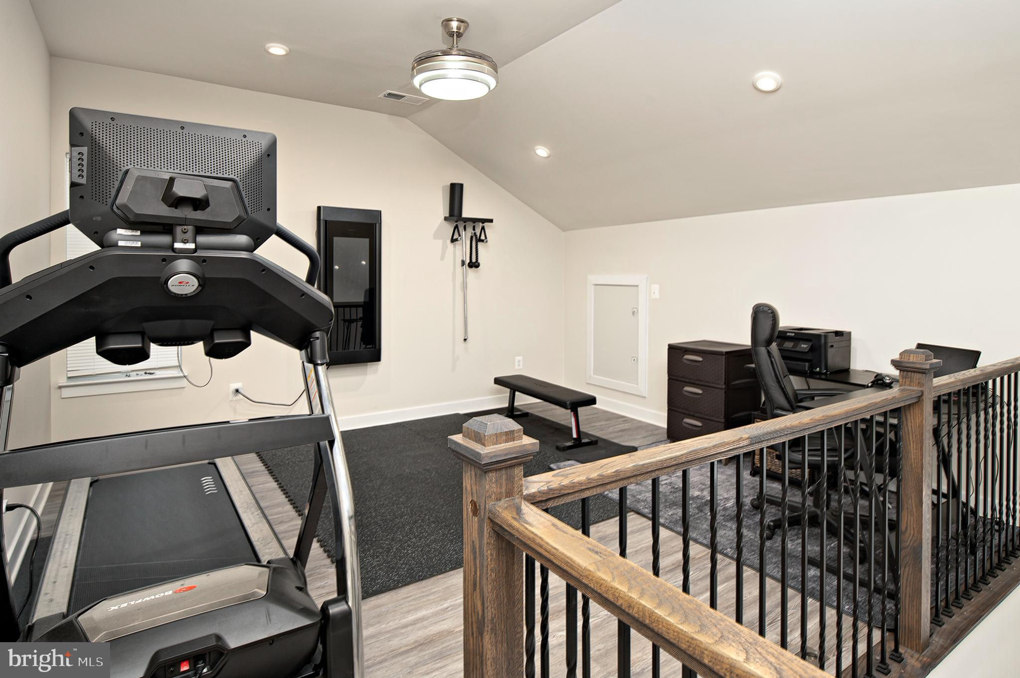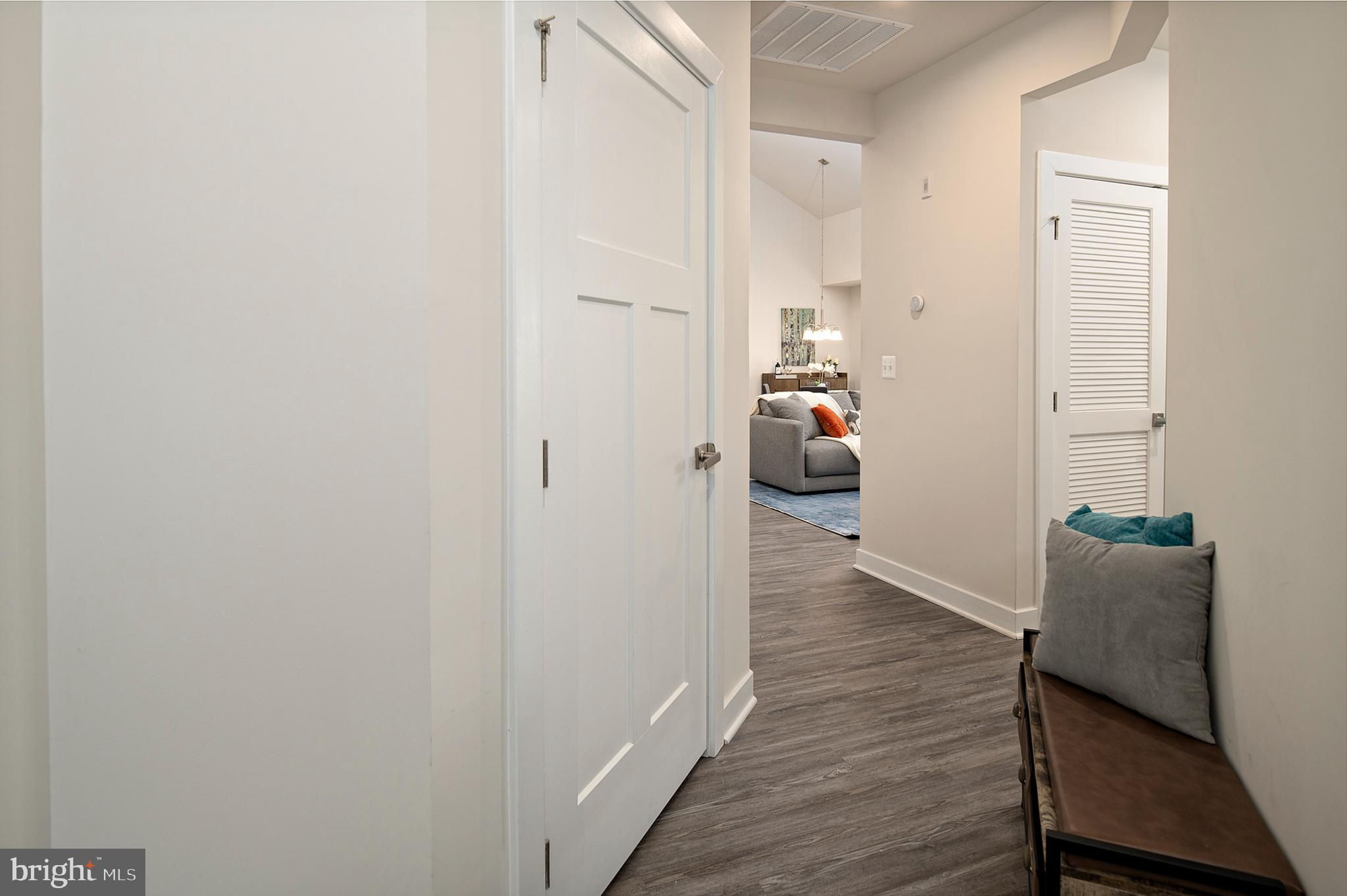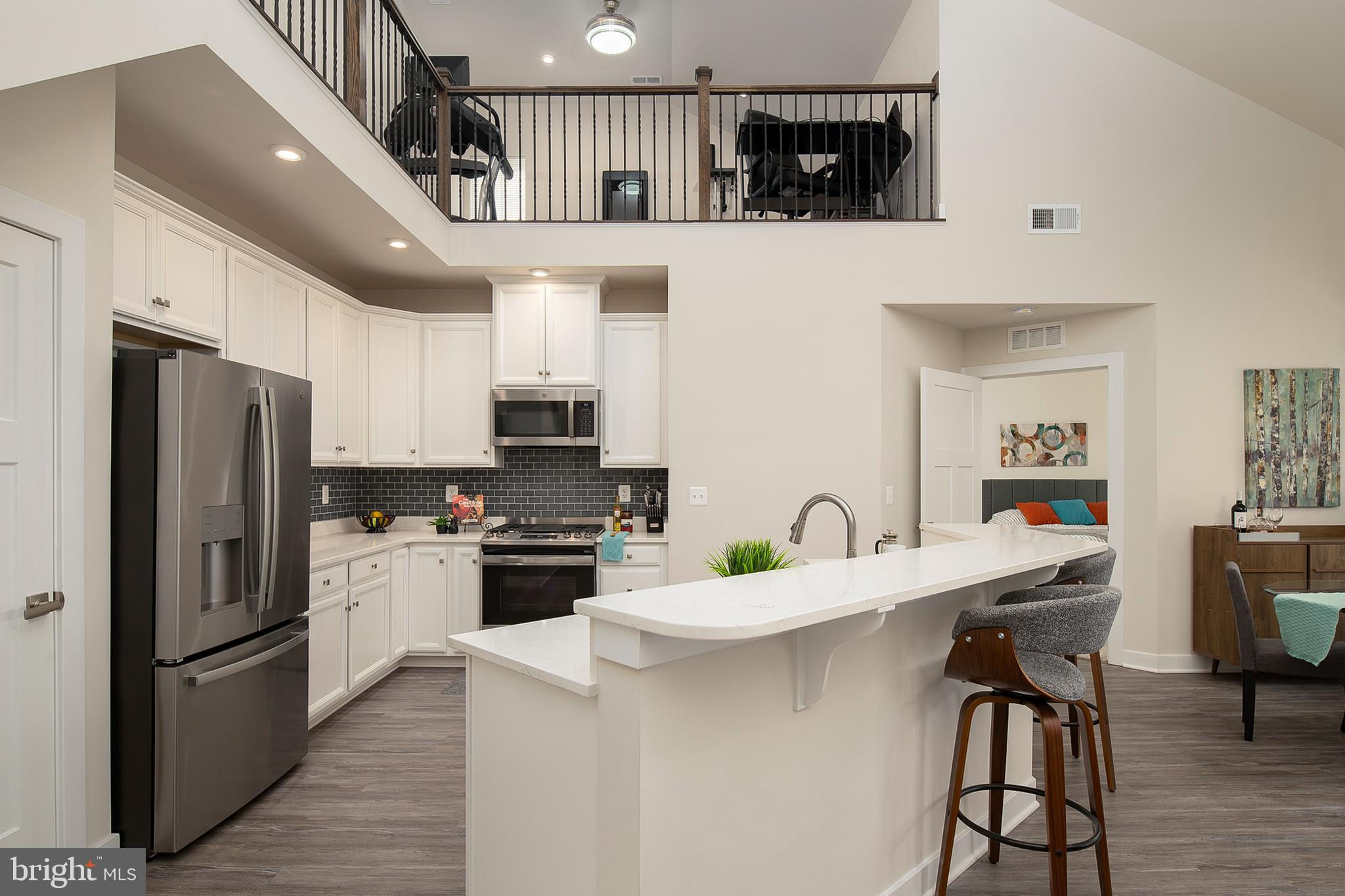 Experience secure, easy living in this 1.5-level condo located in Laurel of Howard County, featuring two spacious bedrooms, two bathrooms, and a loft that overlooks the main living area. The gourmet kitchen boasts a six-burner gas stove, custom backsplash, stainless steel appliances, and quartz countertops, including a large kitchen island. Floors are finished with laminate vinyl plank in common areas and carpet in bedrooms. High vaulted ceilings add to the ambiance. A balcony off the living area offers views of the doggie park. The primary bedroom features two walk-in closets with custom organizers. Each bedroom and the loft are equipped with modern Fandelier Ceiling Fans. Additionally, the unit includes a tankless hot water heater for instant hot water. The Paddock Pointe Community's future plans include a community garden, walking trail, and retail shops and restaurants, all adjacent to the Laurel Racetrack. Condo fees grant complimentary membership to the Laurel Racetrack. Moreover, this secured building is equipped with an elevator servicing all floors. This condo, constructed in 2021, is in pristine condition. The Condo Association plans to upgrade the carpet in hallways and the elevator to laminate flooring by the end of the year. They will also be painting in the common areas. Seize the chance to join the sought-after new community of Paddock Pointe.