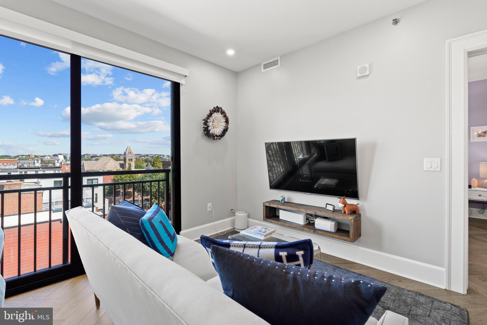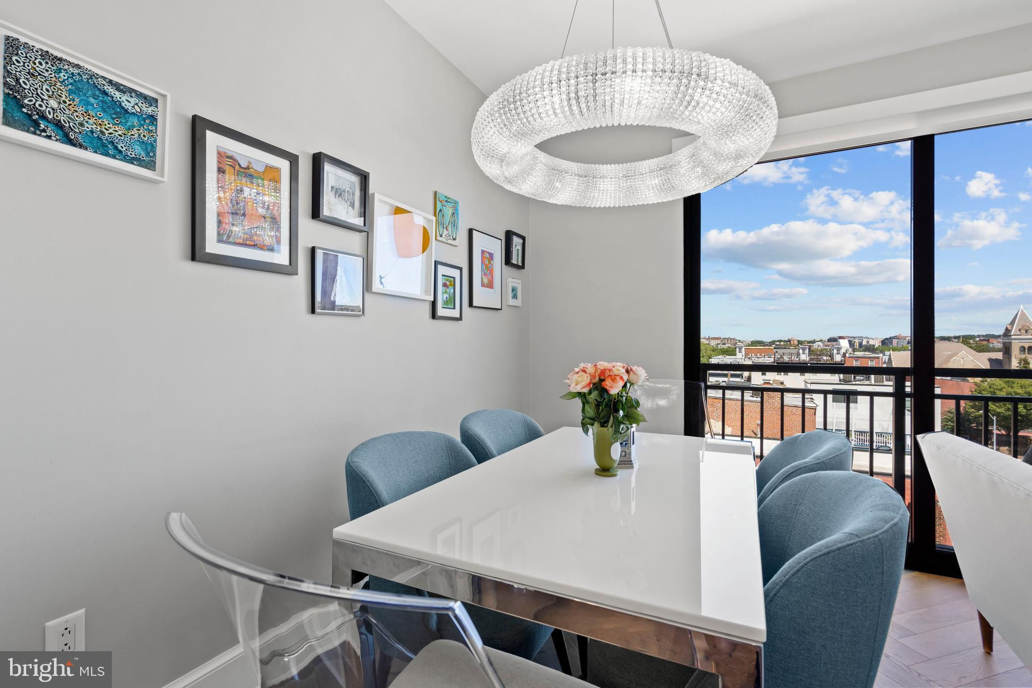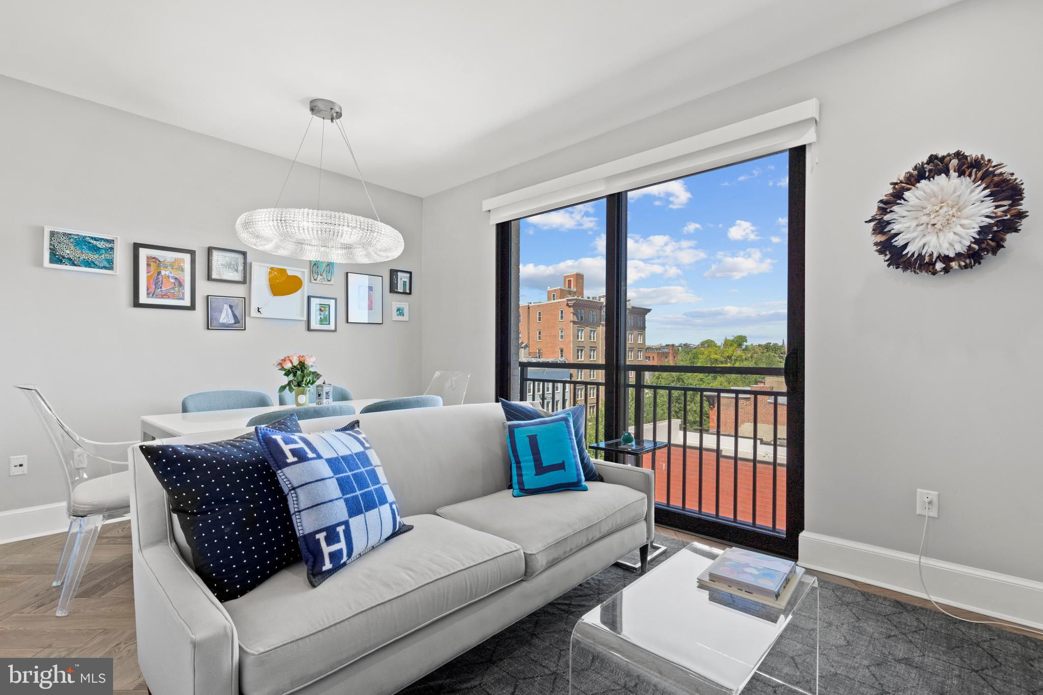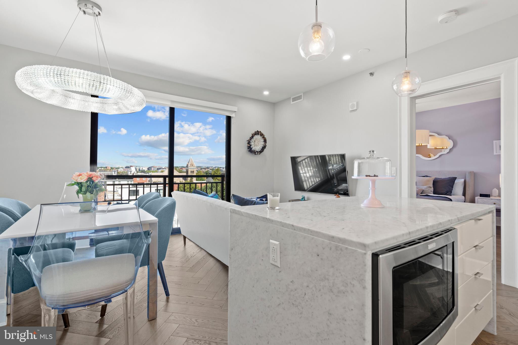 Welcome to 1011 M St NW #608 — a luminous 2BR/2BA residence showcasing designer finishes and sweeping city views in one of Shaw’s most sought-after buildings. This sophisticated home features floor-to-ceiling windows, newly installed European oak herringbone floors, and a stunning marble kitchen with gas cooking. Thoughtful upgrades abound: Custom closets throughout, including a walk-in by California Closets in the primary suite. Guest bedroom with a luxury Resource Furniture Murphy bed & desk, offering both style and functionality for versatile living. Spa-like bathrooms with Toto bidets, Restoration Hardware mirrors, and Nebia by Moen showerheads. Statement lighting from Restoration Hardware and CB2. Smart entry with the August lock system. An additional highlight is the private storage room outfitted with Elfa shelving—a rare city luxury. 10Eleven is a boutique, amenity-rich, concrete-constructed building with interiors curated by renowned designer Darryl Carter. Residents enjoy a stylish lounge, library, rooftop deck with panoramic views, serene courtyard, and attentive on-site management. The location is unmatched: just steps from Logan Circle, CityCenter, and within walking distance of five Metro stations. This is a must-see home in a must-see building. Click the video tour for a closer look!