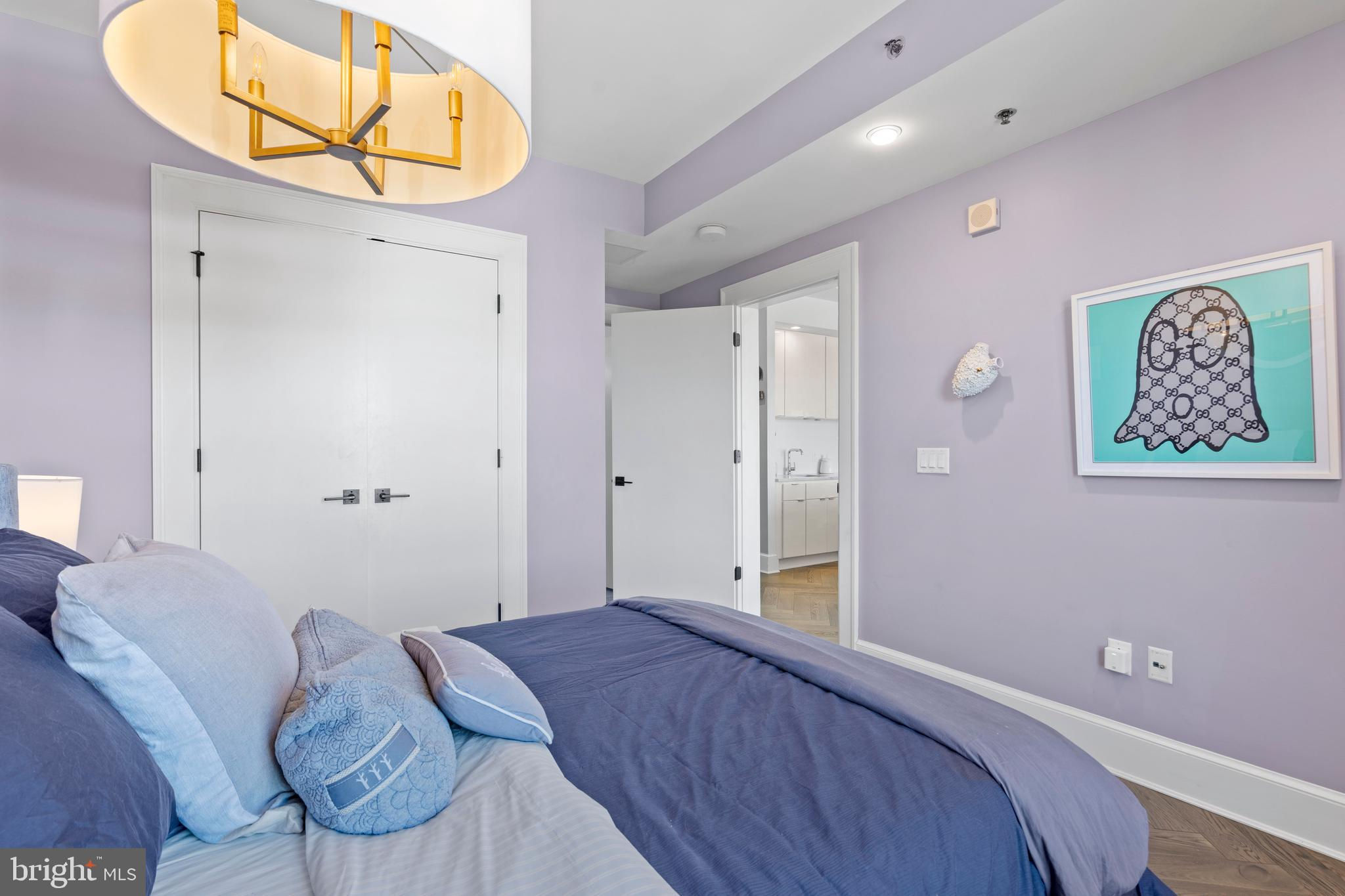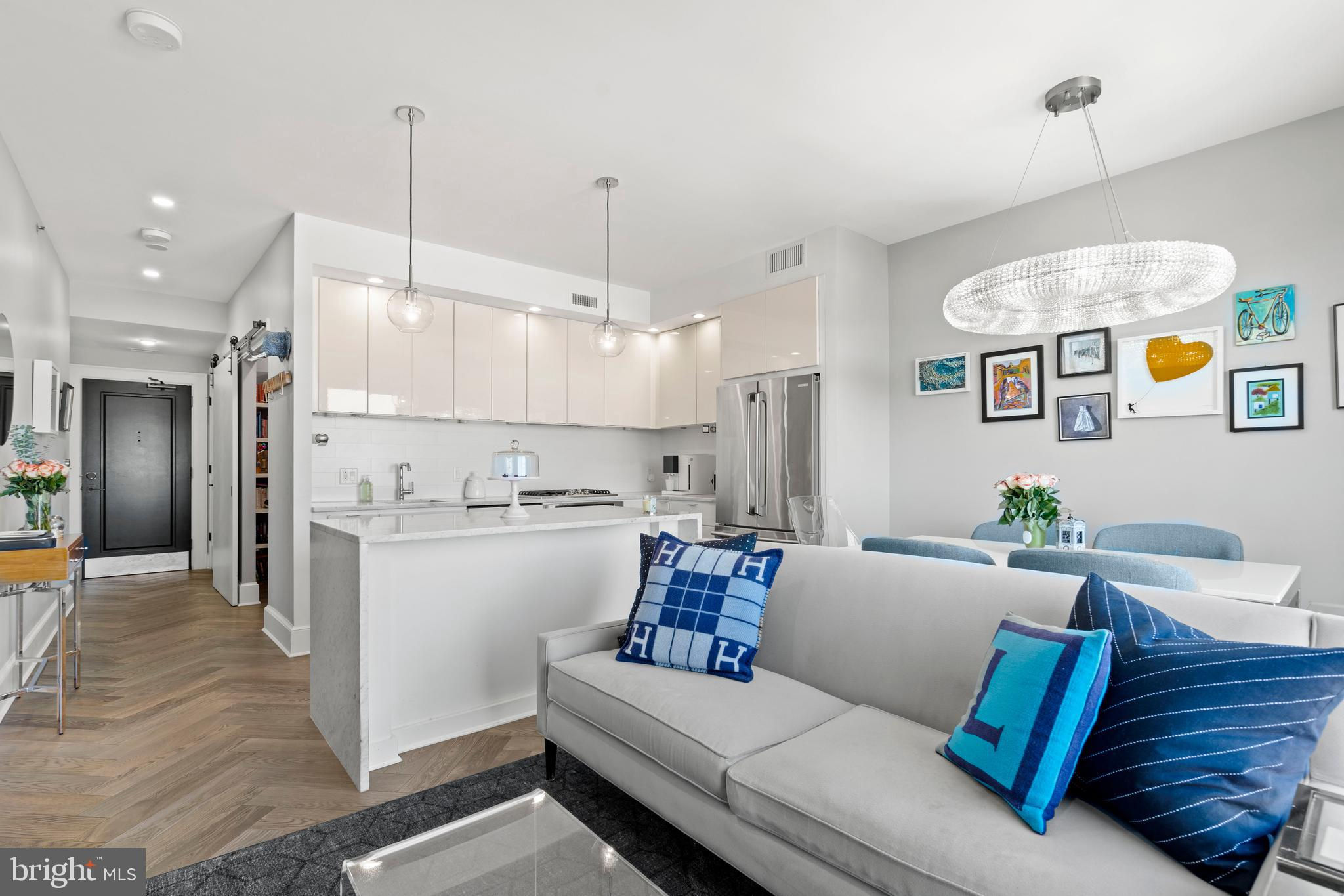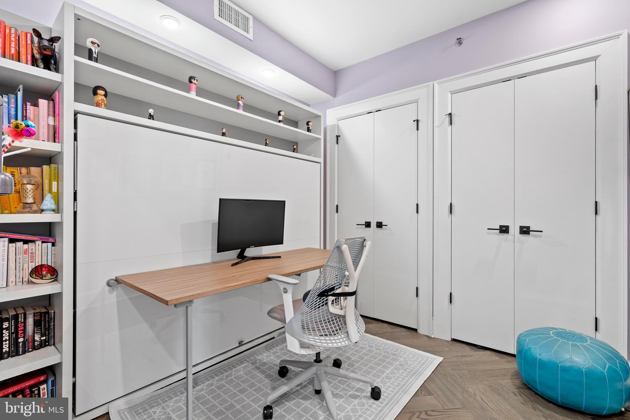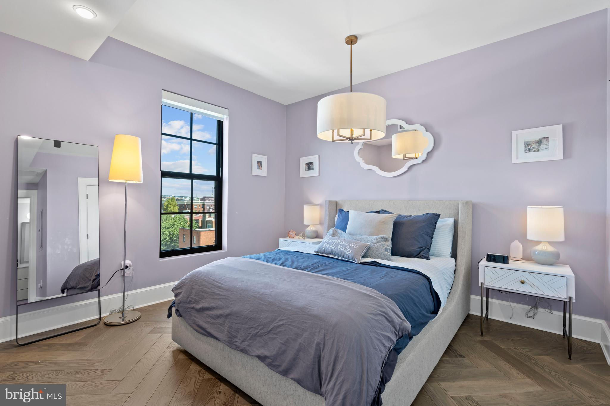Welcome to 1011 M St NW #608 — a luminous 2BR/2BA residence showcasing designer finishes and sweeping city views in one of Shaw’s most sought-after buildings. This sophisticated home features floor-to-ceiling windows, newly installed European oak herringbone floors, and a stunning marble kitchen with gas cooking. Thoughtful upgrades abound: Custom closets throughout, including a walk-in by California Closets in the primary suite. Guest bedroom with a luxury Resource Furniture Murphy bed & desk, offering both style and functionality for versatile living. Spa-like bathrooms with Toto bidets, Restoration Hardware mirrors, and Nebia by Moen showerheads. Statement lighting from Restoration Hardware and CB2. Smart entry with the August lock system. An additional highlight is the private storage room outfitted with Elfa shelving—a rare city luxury. 10Eleven is a boutique, amenity-rich, concrete-constructed building with interiors curated by renowned designer Darryl Carter. Residents enjoy a stylish lounge, library, rooftop deck with panoramic views, serene courtyard, and attentive on-site management. The location is unmatched: just steps from Logan Circle, CityCenter, and within walking distance of five Metro stations. This is a must-see home in a must-see building. Click the video tour for a closer look!