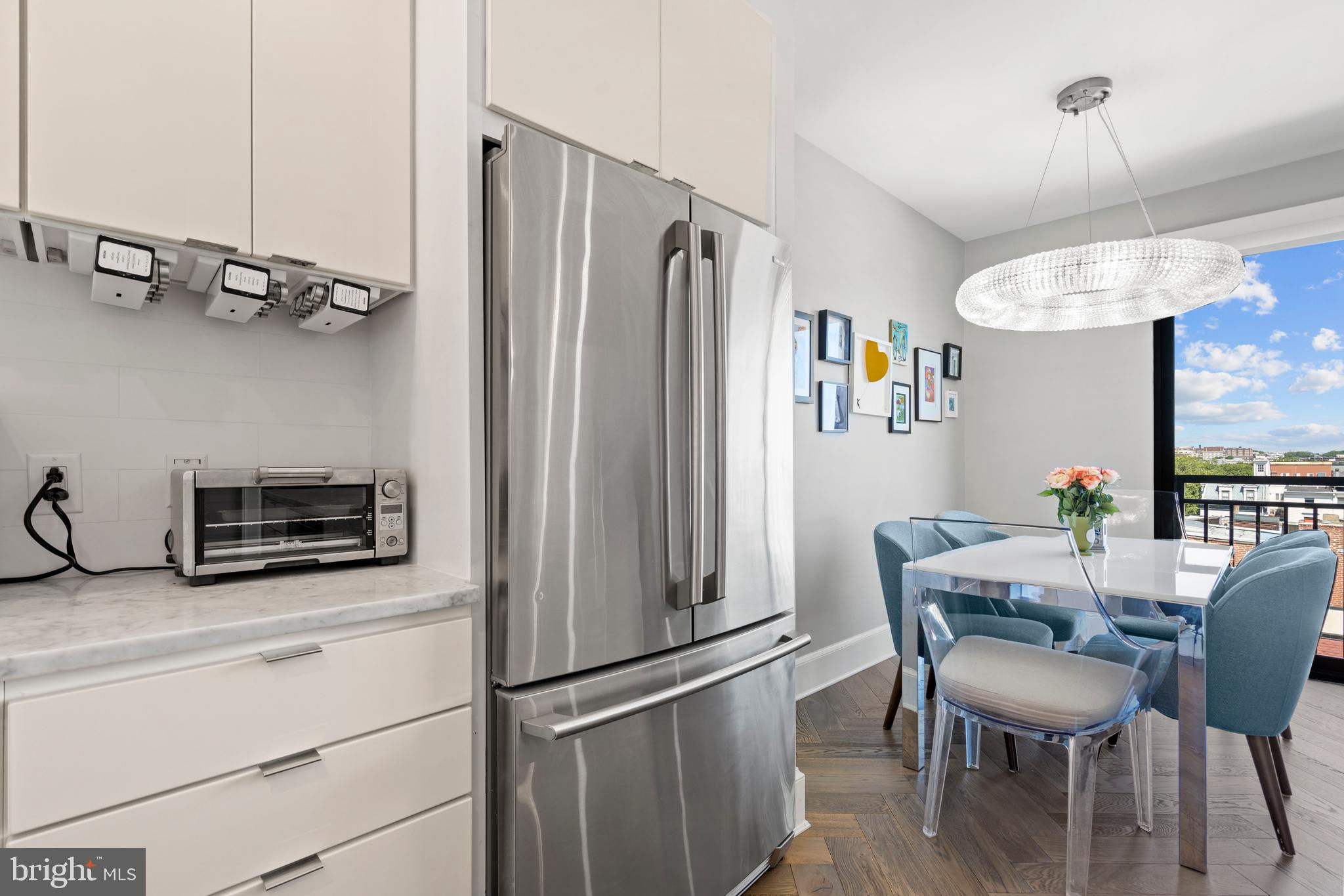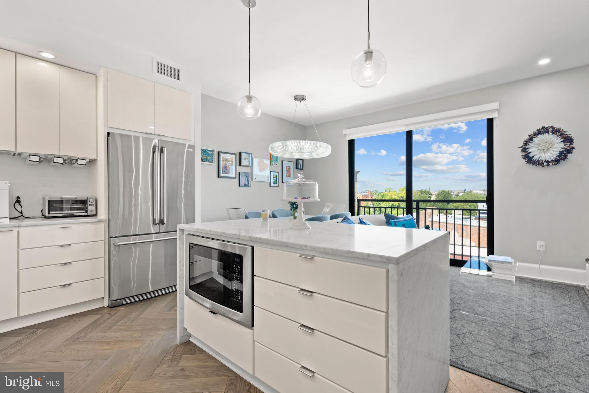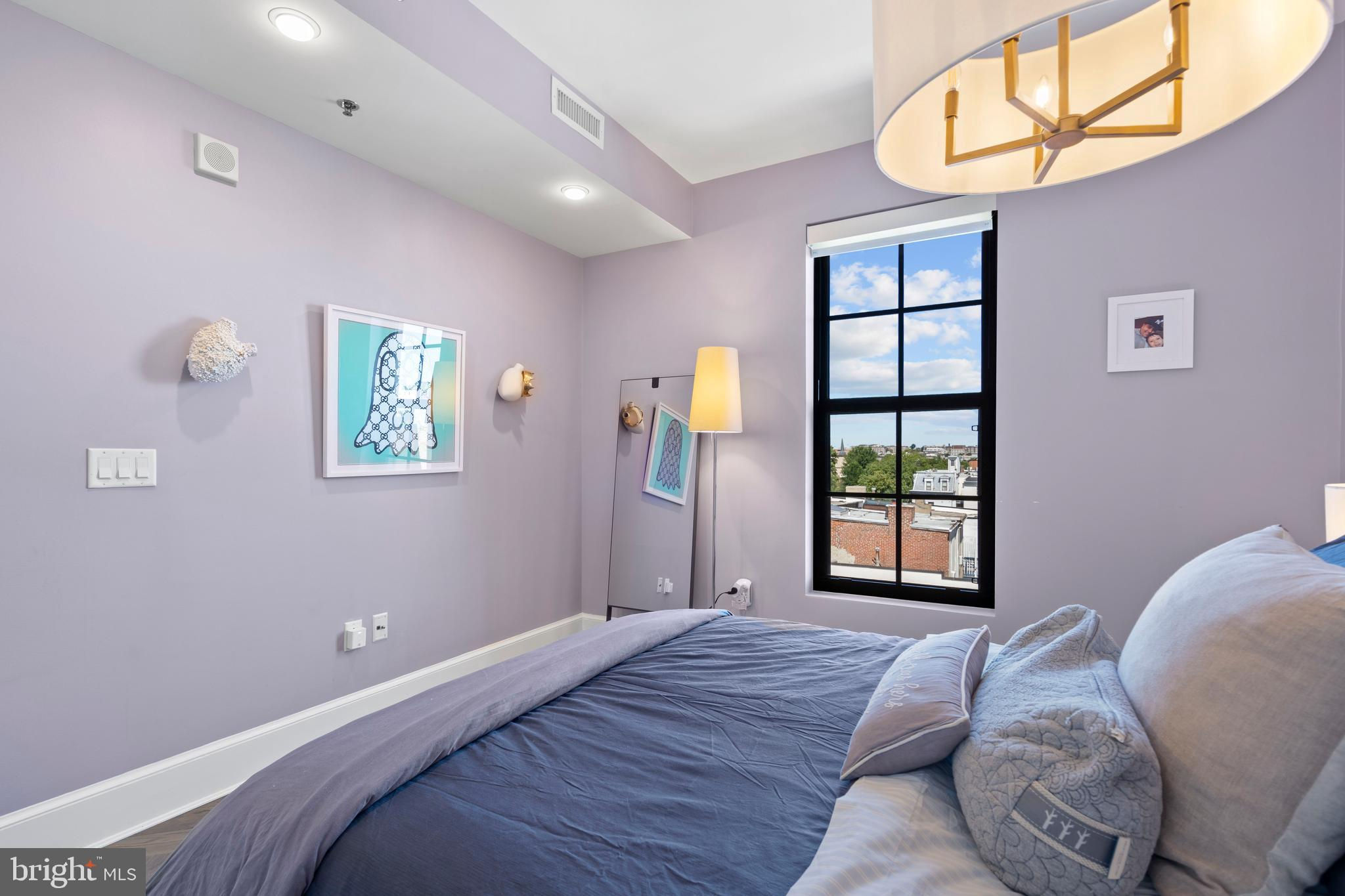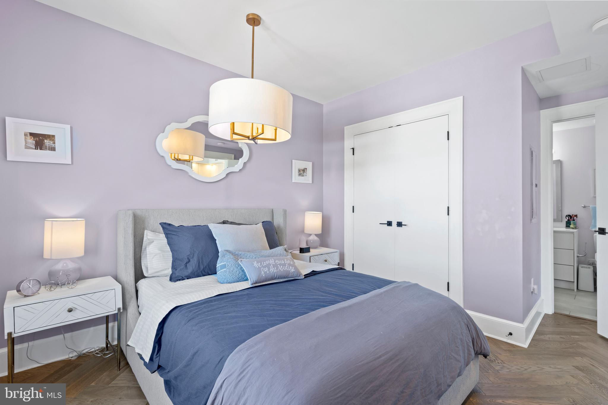 Welcome to 1011 M St NW #608 — a luminous 2BR/2BA residence showcasing designer finishes and sweeping city views in one of Shaw’s most sought-after buildings. This sophisticated home features floor-to-ceiling windows, newly installed European oak herringbone floors, and a stunning marble kitchen with gas cooking. Thoughtful upgrades abound: Custom closets throughout, including a walk-in by California Closets in the primary suite. Guest bedroom with a luxury Resource Furniture Murphy bed & desk, offering both style and functionality for versatile living. Spa-like bathrooms with Toto bidets, Restoration Hardware mirrors, and Nebia by Moen showerheads. Statement lighting from Restoration Hardware and CB2. Smart entry with the August lock system. An additional highlight is the private storage room outfitted with Elfa shelving—a rare city luxury. 10Eleven is a boutique, amenity-rich, concrete-constructed building with interiors curated by renowned designer Darryl Carter. Residents enjoy a stylish lounge, library, rooftop deck with panoramic views, serene courtyard, and attentive on-site management. The location is unmatched: just steps from Logan Circle, CityCenter, and within walking distance of five Metro stations. This is a must-see home in a must-see building. Click the video tour for a closer look!