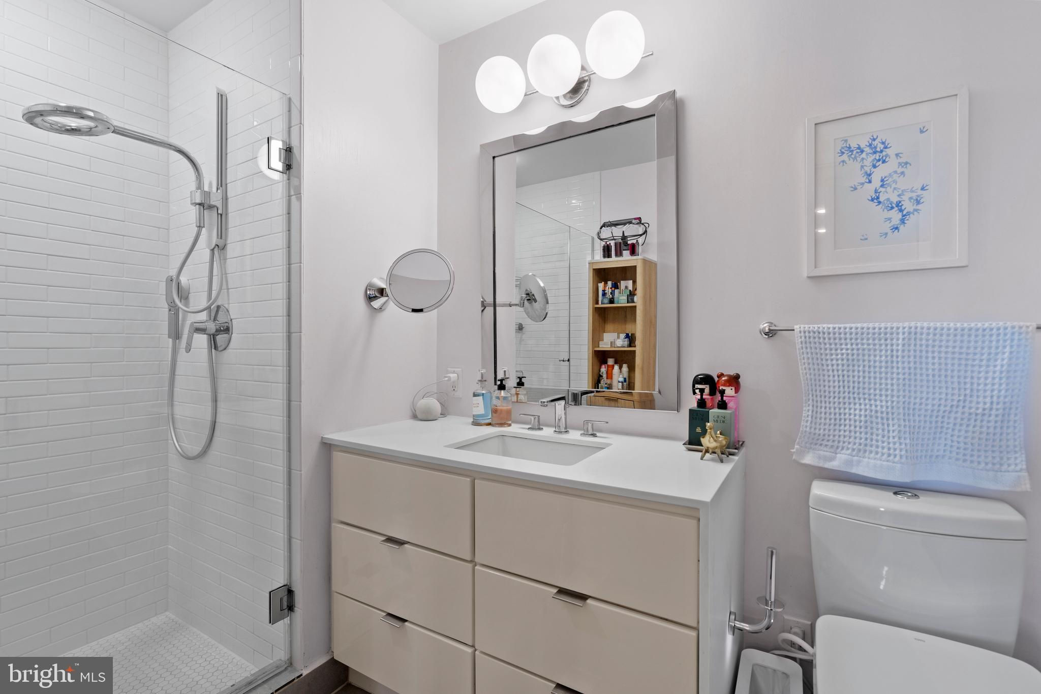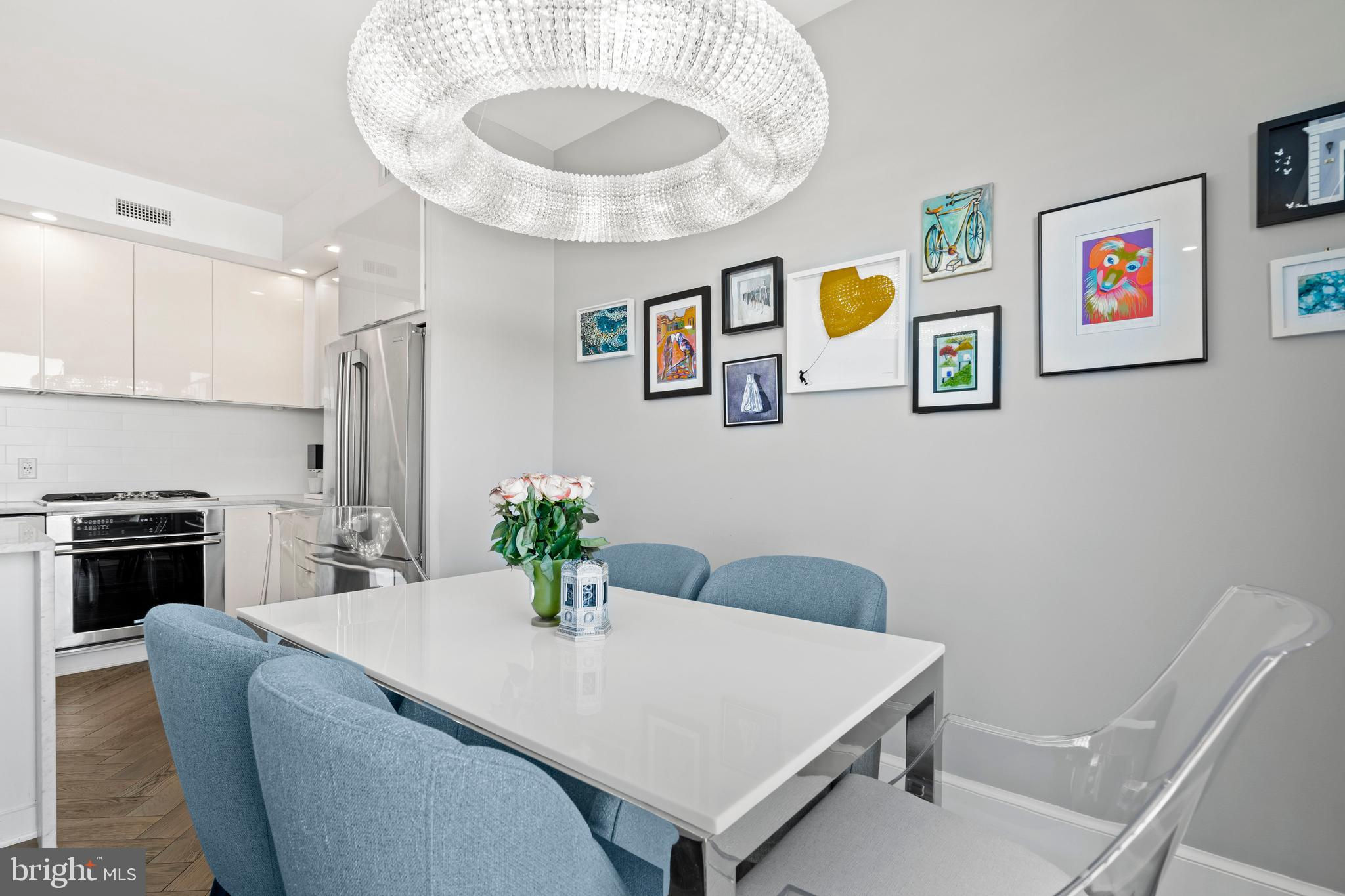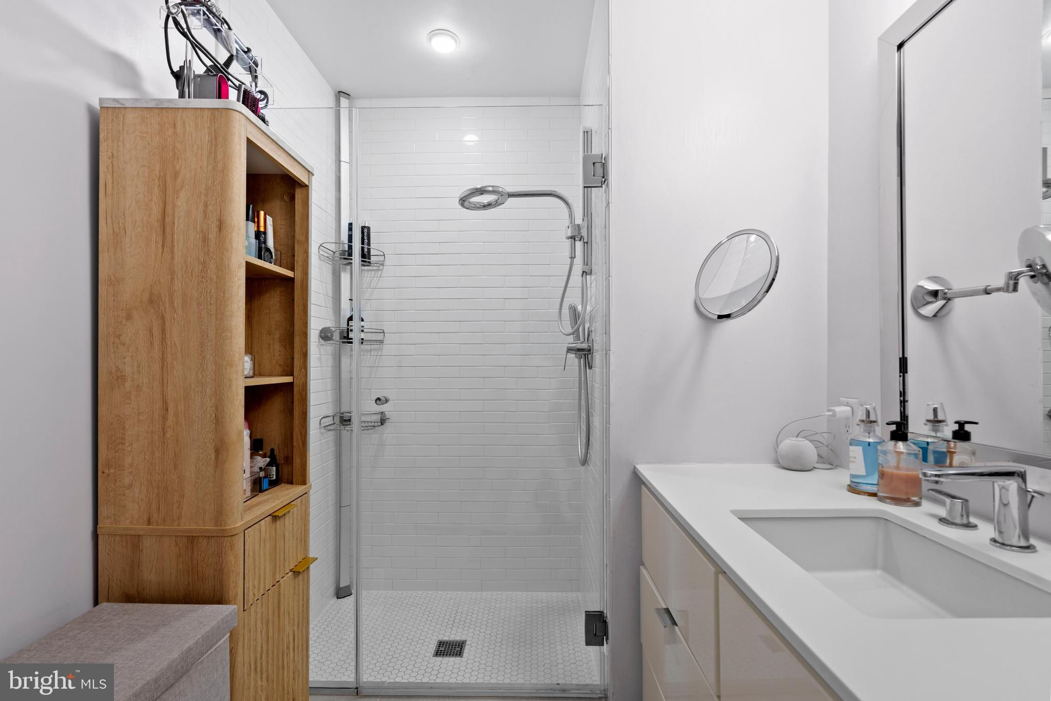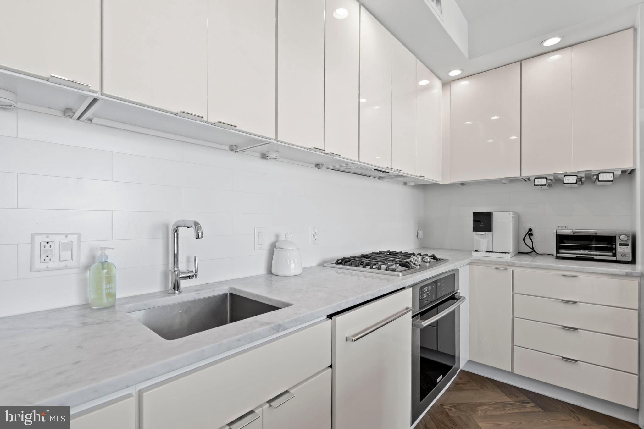 Welcome to 1011 M St NW #608 — a luminous 2BR/2BA residence showcasing designer finishes and sweeping city views in one of Shaw’s most sought-after buildings. This sophisticated home features floor-to-ceiling windows, newly installed European oak herringbone floors, and a stunning marble kitchen with gas cooking. Thoughtful upgrades abound: Custom closets throughout, including a walk-in by California Closets in the primary suite. Guest bedroom with a luxury Resource Furniture Murphy bed & desk, offering both style and functionality for versatile living. Spa-like bathrooms with Toto bidets, Restoration Hardware mirrors, and Nebia by Moen showerheads. Statement lighting from Restoration Hardware and CB2. Smart entry with the August lock system. An additional highlight is the private storage room outfitted with Elfa shelving—a rare city luxury. 10Eleven is a boutique, amenity-rich, concrete-constructed building with interiors curated by renowned designer Darryl Carter. Residents enjoy a stylish lounge, library, rooftop deck with panoramic views, serene courtyard, and attentive on-site management. The location is unmatched: just steps from Logan Circle, CityCenter, and within walking distance of five Metro stations. This is a must-see home in a must-see building. Click the video tour for a closer look!