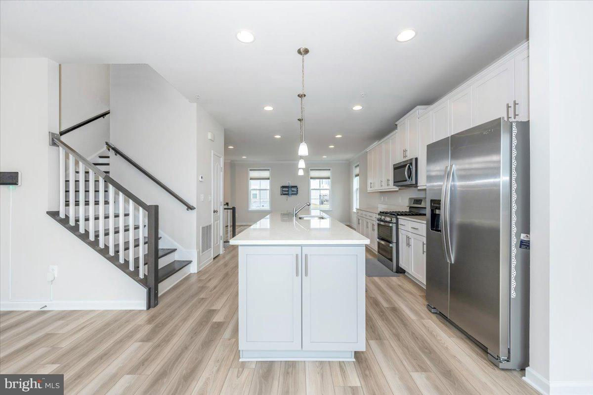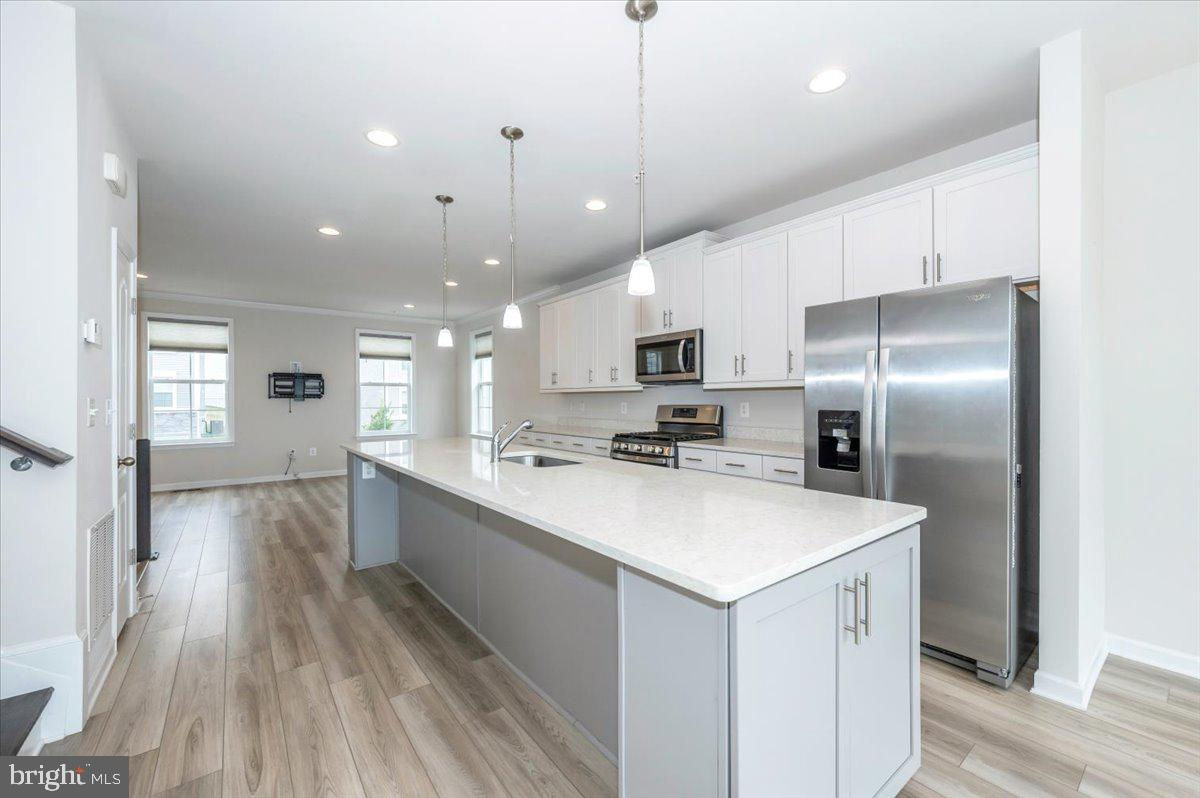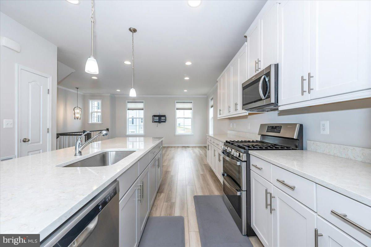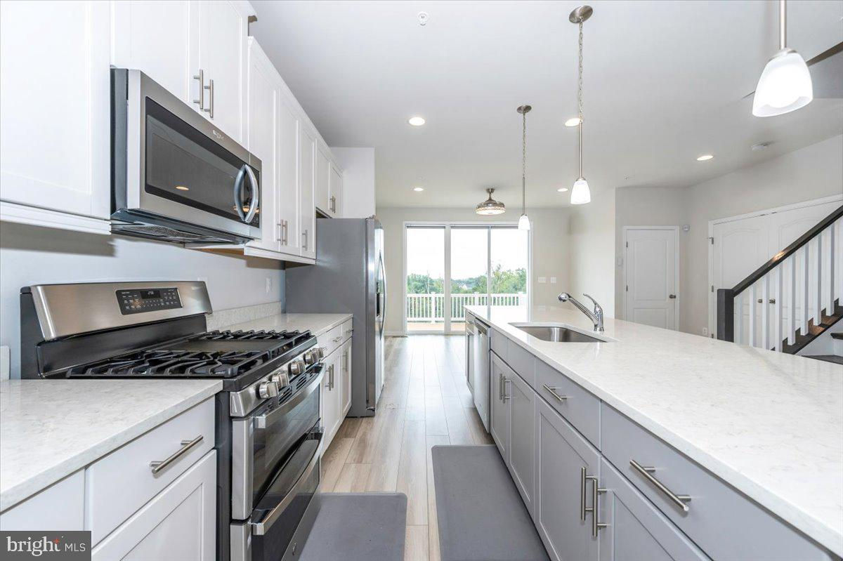 Beautiful and stunning end unit townhouse with over 2,600 sq. ft. of living space! Step inside and be greeted by a bright, open-concept floor plan designed for both comfort and entertaining. Enjoy the spacious kitchen, flooded with natural light, featuring white cabinetry, an impressive 12-foot island, gleaming quartz countertops, stainless steel appliances, and a double conventional/convection oven—a true chef’s dream. The kitchen and living areas are enhanced with custom top-down/bottom-up blinds, offering both style and functionality. The open living and dining area flows seamlessly to the outdoors. On the main level, step out onto the generous deck overlooking private scenery and enjoy the mesmerizing sunset views—perfect for relaxing evenings or entertaining guests. When it’s time to unwind, retreat to the luxurious owner’s suite, complete with a large walk-in closet and custom room-darkening fabric blinds for a peaceful night’s sleep. This home boasts 9-foot ceilings, recessed lighting throughout, and a two-car garage. You’ll also find thoughtful storage solutions—including a hidden nook under the entry stairwell, overhead garage storage racks, and plenty of additional space for organization. With its modern finishes, abundance of natural light, and the perfect blend of indoor and outdoor living, this home is move-in ready.