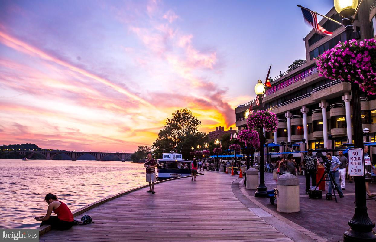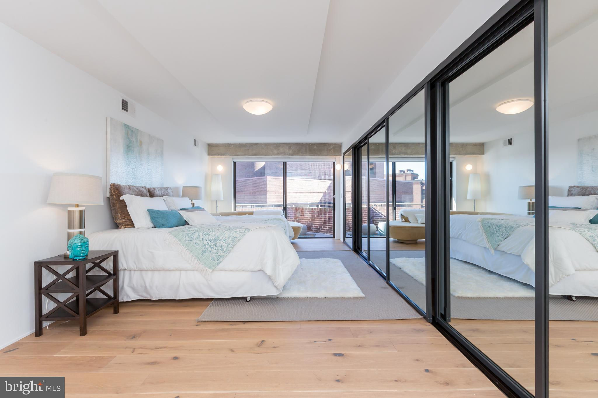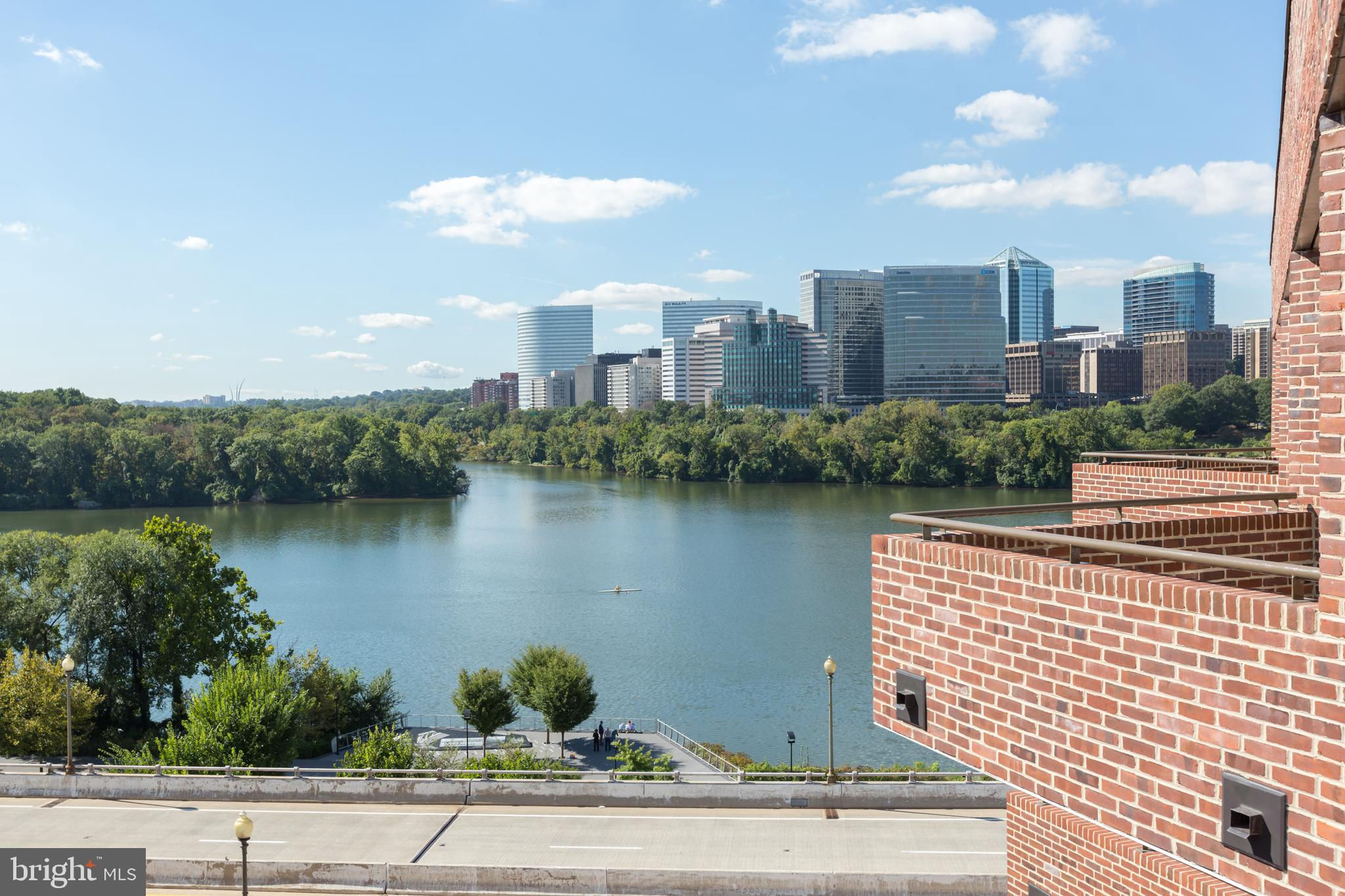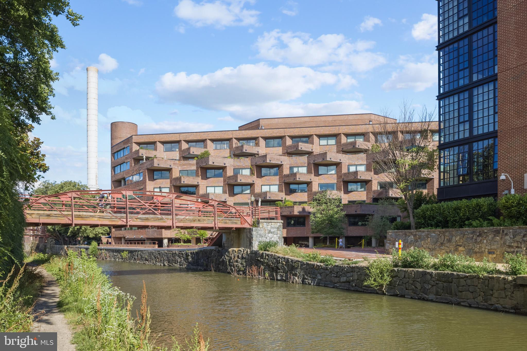 Meticulously renovated, this unique top-floor residence at the Flour Mill embodies a sophisticated, modern design. The duplex's open layout is accentuated by exposed concrete columns, custom features, and elegant marble surfaces throughout. It boasts hardwood floors, a sleek kitchen with designer-grade finishes, spa-like bathrooms, a wood-burning fireplace, ample closet space, and two private balconies offering views of the Potomac River and Rosslyn skyline. Located at 1015 33rd Street NW, the building offers a front desk, additional storage, and guaranteed on-site rental parking. The Georgetown Waterfront Park and the vibrant shopping and dining of M Street are just a short stroll away. The neighboring Flour Mill office buildings, particularly the one at 1000 Potomac Street NW, are being transformed into a 135-unit residential development featuring 8,000 square feet of retail space, as announced by the developers. This project involves replacing the façade of the South building and redesigning the landscape of the inner plaza. It also includes a new 450-square-foot residential lobby and a penthouse dedicated to residential amenities.