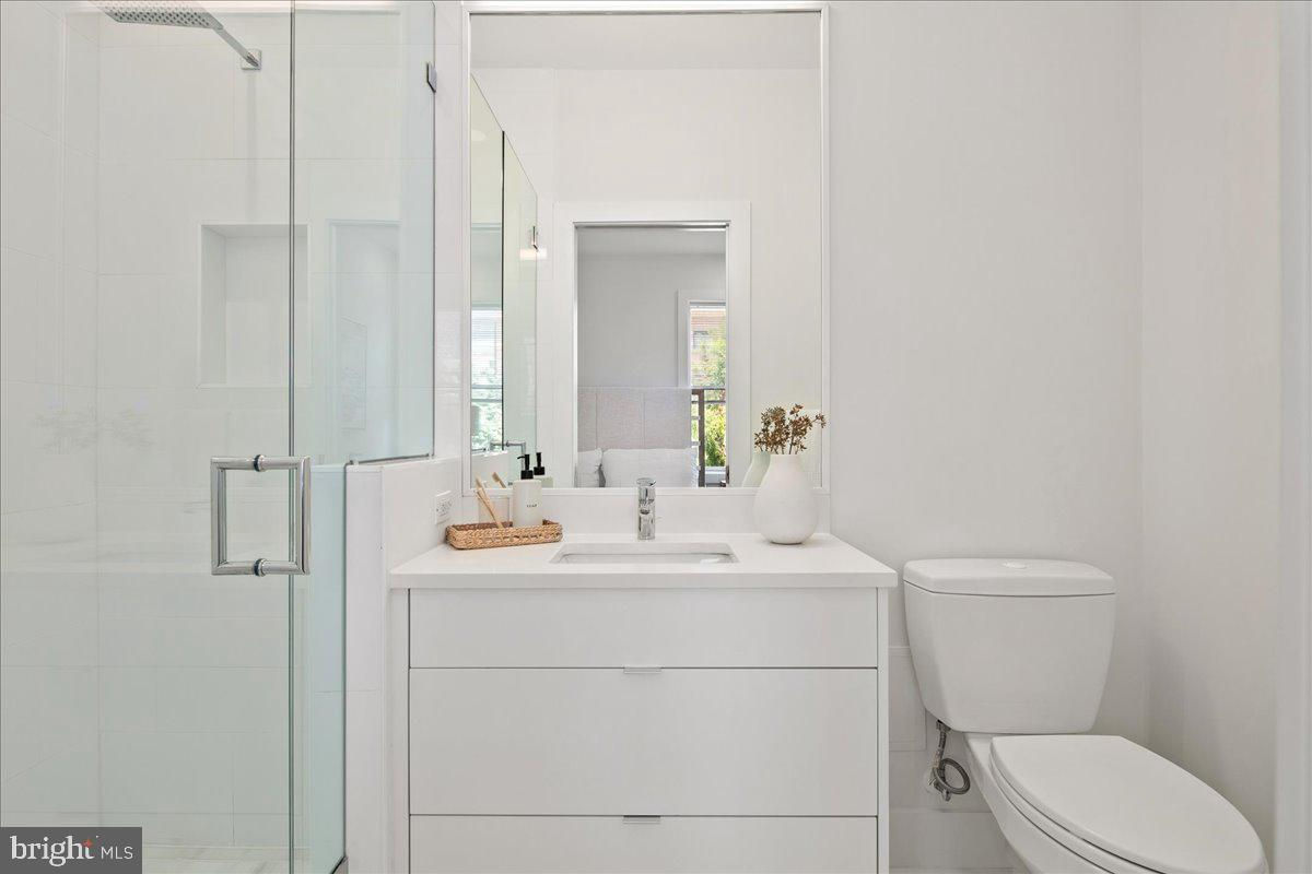 Welcome home to this stunning urban retreat in the heart of Washington, DC. This elegant and modern residence, designed by Ditto Residential, offers a sophisticated lifestyle with its meticulously crafted features and prime location. Walking up you’ll immediately notice the wonderfully landscaped front yard, maintained by the condo association, making this feel more like a townhome than condo. As you enter through the private entrance, you are greeted by beautifully refinished oak flooring which carries throughout the home and tall ceilings that create an airy, sunlit ambiance. The living room, with its large bay window, streams in natural light, enhancing the home's modern allure. The freshly painted interior complements the sleek and contemporary design, making this home ready to move in and start living. The gourmet kitchen is a chef's dream, featuring stainless steel appliances, custom floor-to-ceiling artisan cabinets, quartz countertops, and a striking waterfall island. This residence boasts three bedrooms and two luxurious bathrooms spanning over three levels. The lower level is where you will find two of the bedrooms as well as a sleek full bathroom featuring marble tile and tub/shower combination. The stackable washer and dryer are on this level. On the upper level is the stunning primary suite, complete with a wall of custom built-ins, providing ample clothes storage, and ensuite bathroom with marbled shower. Just off the primary suite is a door leading you to your private large roof deck, where you can enjoy breathtaking views of the city. With clear views on the Washington Monument, this will be the spot to be on July 4th! The freshly painted interior complements the sleek and contemporary design, making this home ready to move in and start living. Both HVAC units have been replaced in the last year, ensuring comfort in all seasons. With a remarkable 99 walk and bike score, this home is conveniently located near multiple grocery stores and some of DC's best restaurants and shopping in Logan Circle, Shaw, and U Street. The U Street Metro (green/yellow line) is just one block away as is The Coffee Bar. The freshly painted interior complements the sleek and contemporary design, making this home ready to move in and start living. Both HVAC units have been replaced in the last year.