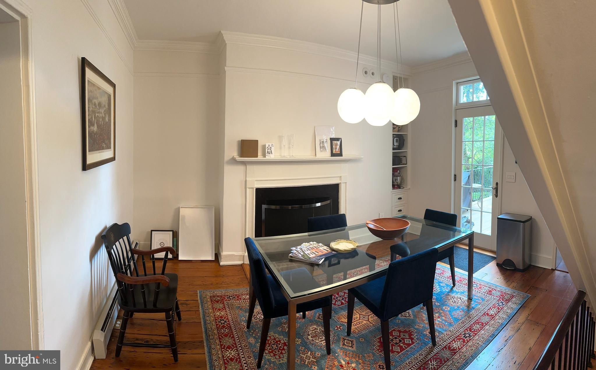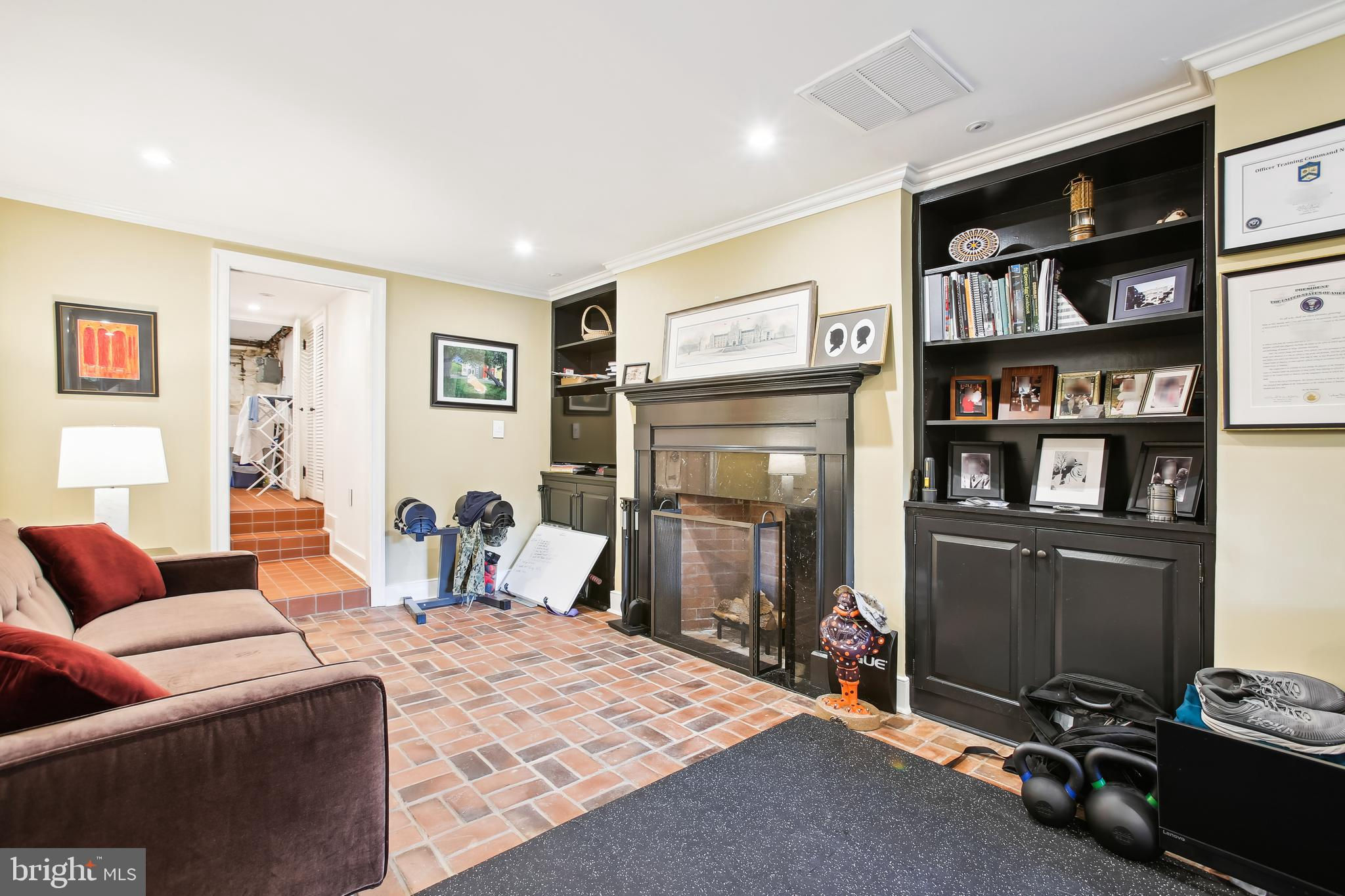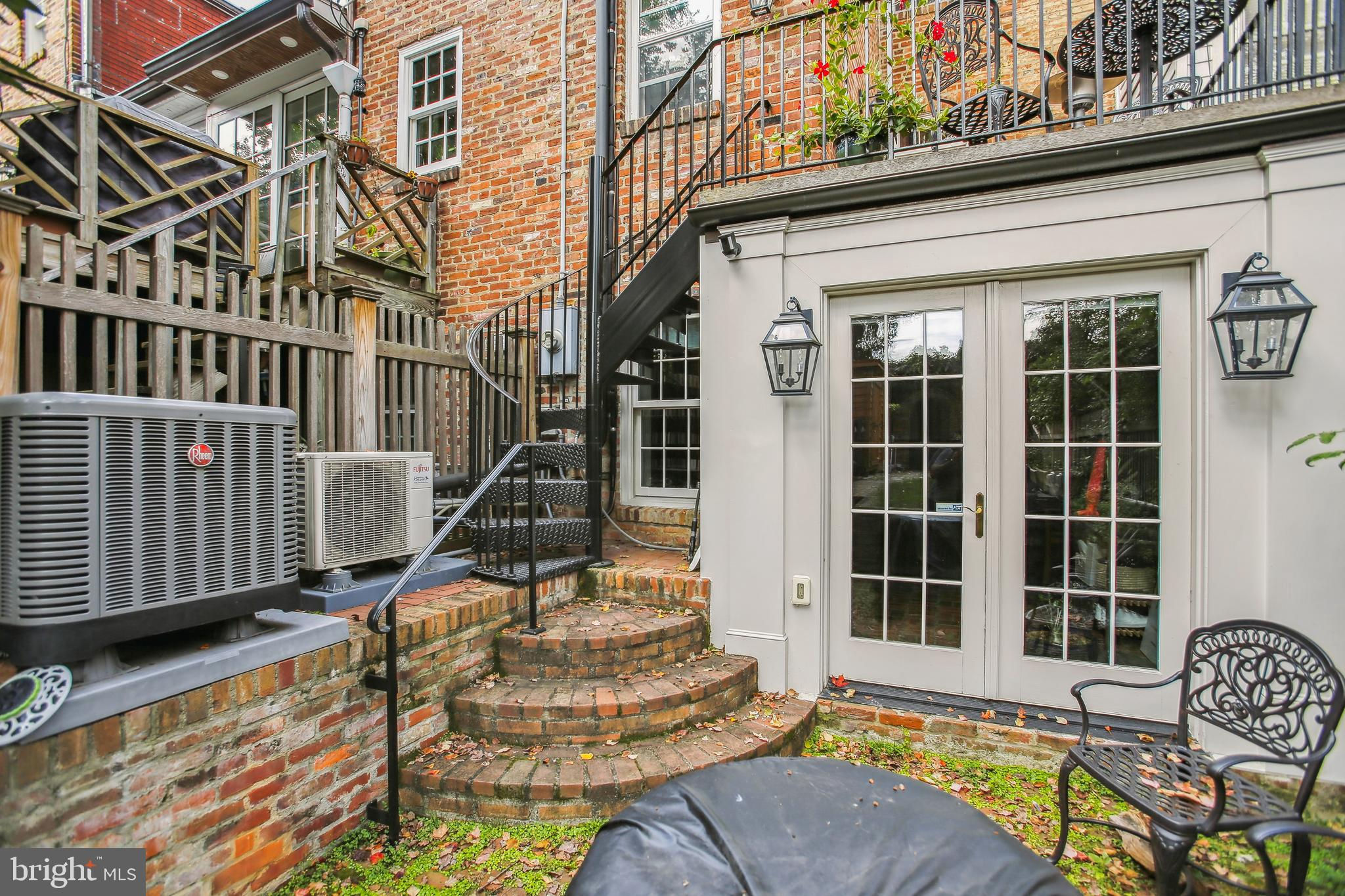Located on Prince Street in the heart of Alexandria’s Historic District and one block from King Street, this plaqued brick Federal Style townhouse is one of 4 homes built by Alexander Veitch in 1818. Fully renovated in 2017, with extensive additions by the current owner, the house blends historic charm along with modern conveniences and function. • Three/Four bedrooms, Two full baths, • Formal living and dining rooms with 9-foot ceilings and fireplaces on the main level; with built-in bookcases; crown, chair rail and picture-frame moldings; original paneling, chandeliers, and original wide-plank heart pine flooring • Separate dining room has a French door leading to a mahogany deck overlooking the garden • High-end kitchen features Thermador appliances, granite counters, and a heated floor with re-milled old heart pine planks •Restored, fully functioning windows throughout. Installed storm windows with screens on all windows 2021. • Recessed lights in kitchen, baths, lower level and 3rd floor bedroom/office. • Replaced all switches and outlets with upgraded versions 2021. • Replaced lights in both bathrooms and dining room 2021. • Added lights over all bookcases 2021. • Installed sump pump on outside patio 2021. • Five restored fireplaces; living room and lower-level family room are functional; other 3 only need new liners. • 9-foot ceilings on main level and second level; lower level was excavated to 8.5 feet. • Current owner replaced A/C in 2021 with larger unit and increased number of vents in all rooms. Minisplit system added in basement 2021. Space Pak small duct air conditioning system; ceiling fan in primary bedroom. • Gas furnace replaced 2021. Gas hydronic heating system features radiant floor heat in the basement, kitchen and baths; and hot water baseboard heat elsewhere with rapid hot water delivery through an efficient manifold system. • Insulated attic ceiling, 2021. • Outside of house repainted, 2022. • Spacious storage shed added in 2022. Basement dug for high ceiling clearance. Bright lower level with French doors to the patio and garden; functioning wood burning fireplace with built-ins, large family room or guest room with recessed lights, ample storage, a full bath with original cast iron tub, utility room and a laundry room featuring front-loading Maytag washer/dryer and a laundry sink. • Underpinnings for basement addition can support a 3-story build-out. • Attic space restored, and ceiling raised to 7.5 feet; recessed lights, exposed beams, re-milled heart pine floors and lots of storage. This can be used as a bedroom or as a perfect home office area. • All electricals and plumbing upgraded during renovation. • Standing seam red metal roof replaced in 1990’s; painted in 2019. Rubber roof over basement addition under mahogany deck. • Pre-wired for cable, conduits for speakers, etc. • Alarm system. • Modern baths with custom fixtures, ceramic tile and heated floors. • Original boot scraper at the main entrance. • Original 6-panel doors restored with rim-lock hardware; all other doors solid wood. • Basement addition has deck above it off of dining room with metal railings and spiral staircase to lower-level brick patio. • Garden area with brick stairs, appropriate fencing and brick path leading to alley. Established plantings including boxwoods and roses. • High-end exterior light fixtures at front entry, on the deck and at the patio level. • Metro accessible; one block from King Street shops and restaurants; short walk to waterfront and Carlyle Place, including Whole Foods and CVS. • Previous owner was granted approval by the Board of Architectural Review to add parking off the alley. • Floorplans can be found under Documents Section