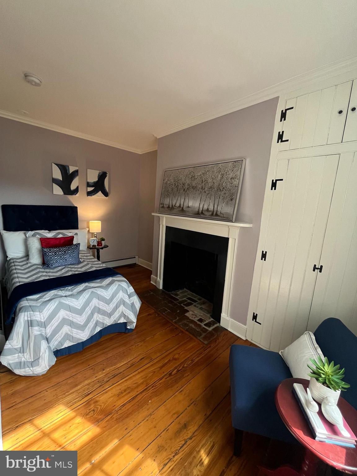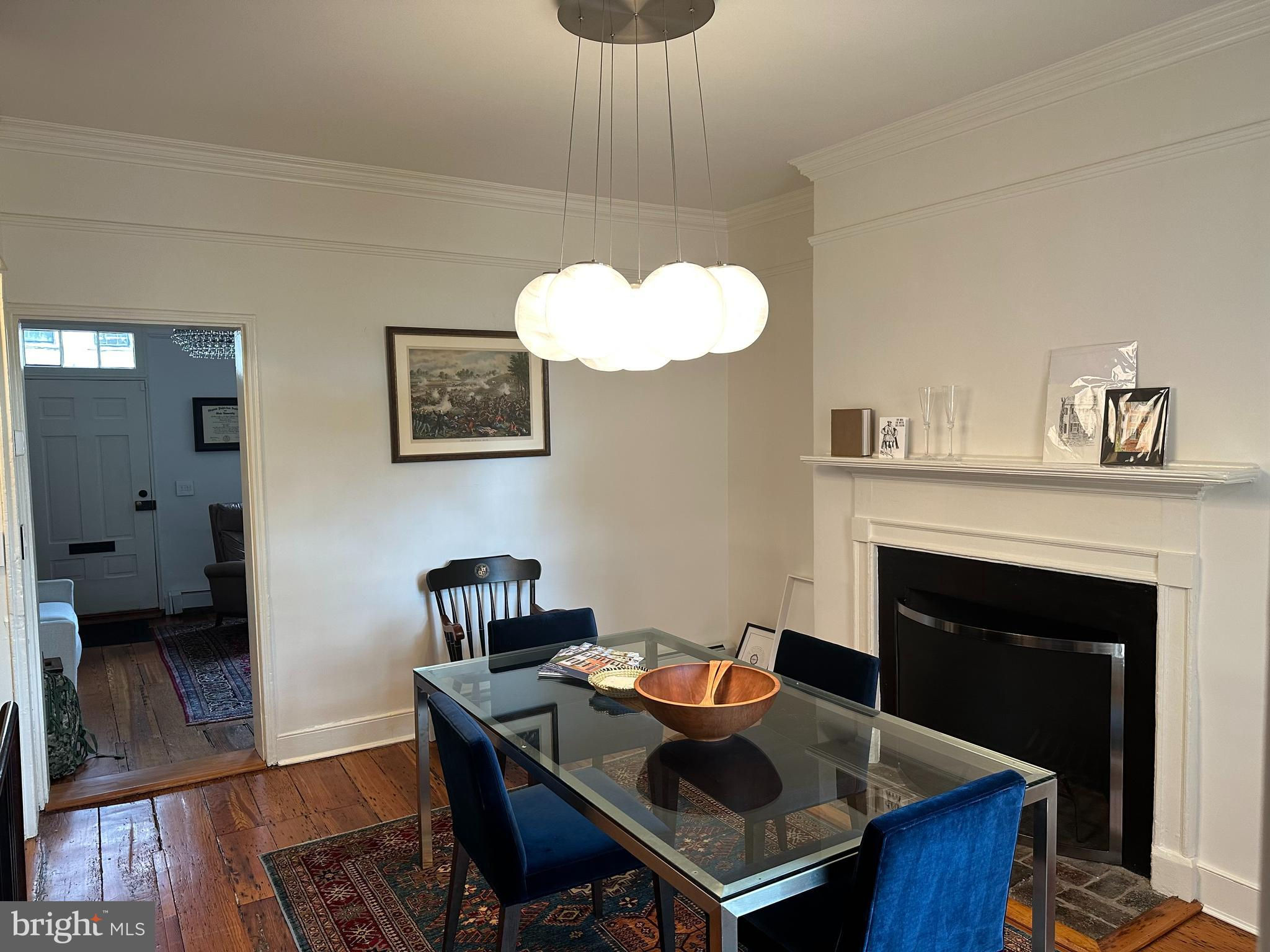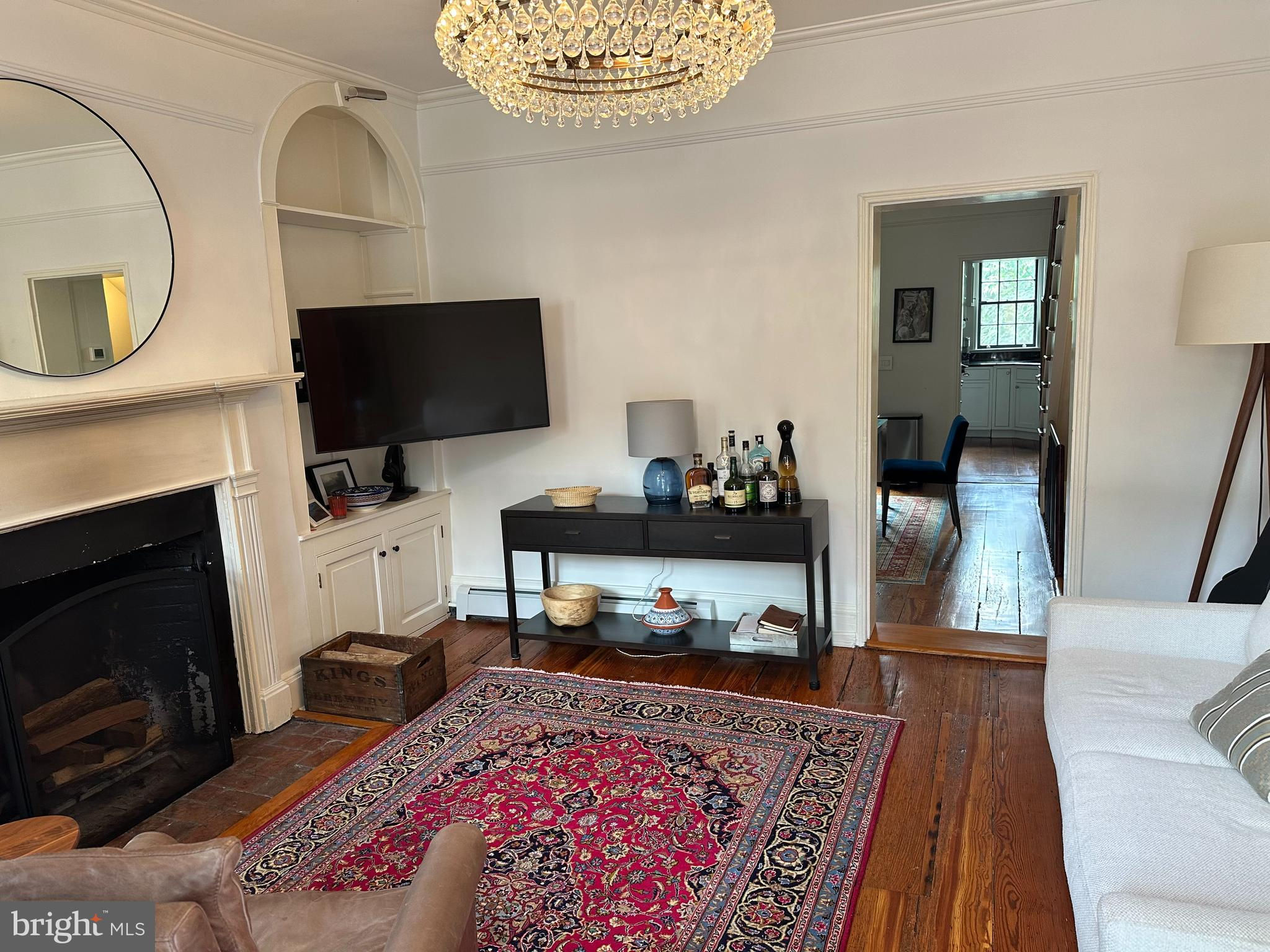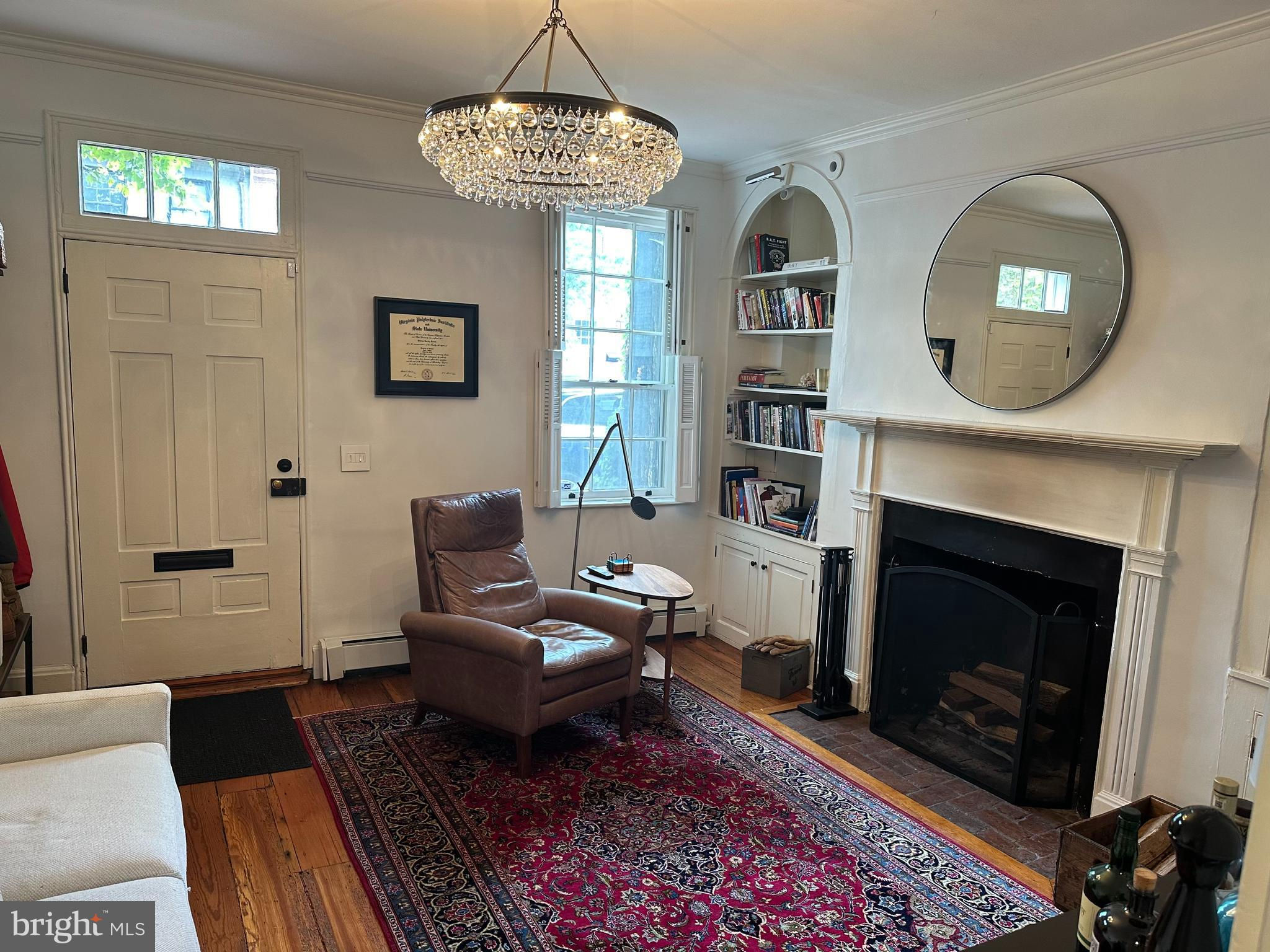 Located on Prince Street in the heart of Alexandria’s Historic District and one block from King Street, this plaqued brick Federal Style townhouse is one of 4 homes built by Alexander Veitch in 1818. Fully renovated in 2017, with extensive additions by the current owner, the house blends historic charm along with modern conveniences and function. • Three/Four bedrooms, Two full baths, • Formal living and dining rooms with 9-foot ceilings and fireplaces on the main level; with built-in bookcases; crown, chair rail and picture-frame moldings; original paneling, chandeliers, and original wide-plank heart pine flooring • Separate dining room has a French door leading to a mahogany deck overlooking the garden • High-end kitchen features Thermador appliances, granite counters, and a heated floor with re-milled old heart pine planks •Restored, fully functioning windows throughout. Installed storm windows with screens on all windows 2021. • Recessed lights in kitchen, baths, lower level and 3rd floor bedroom/office. • Replaced all switches and outlets with upgraded versions 2021. • Replaced lights in both bathrooms and dining room 2021. • Added lights over all bookcases 2021. • Installed sump pump on outside patio 2021. • Five restored fireplaces; living room and lower-level family room are functional; other 3 only need new liners. • 9-foot ceilings on main level and second level; lower level was excavated to 8.5 feet. • Current owner replaced A/C in 2021 with larger unit and increased number of vents in all rooms. Minisplit system added in basement 2021. Space Pak small duct air conditioning system; ceiling fan in primary bedroom. • Gas furnace replaced 2021. Gas hydronic heating system features radiant floor heat in the basement, kitchen and baths; and hot water baseboard heat elsewhere with rapid hot water delivery through an efficient manifold system. • Insulated attic ceiling, 2021. • Outside of house repainted, 2022. • Spacious storage shed added in 2022. Basement dug for high ceiling clearance. Bright lower level with French doors to the patio and garden; functioning wood burning fireplace with built-ins, large family room or guest room with recessed lights, ample storage, a full bath with original cast iron tub, utility room and a laundry room featuring front-loading Maytag washer/dryer and a laundry sink. • Underpinnings for basement addition can support a 3-story build-out. • Attic space restored, and ceiling raised to 7.5 feet; recessed lights, exposed beams, re-milled heart pine floors and lots of storage. This can be used as a bedroom or as a perfect home office area. • All electricals and plumbing upgraded during renovation. • Standing seam red metal roof replaced in 1990’s; painted in 2019. Rubber roof over basement addition under mahogany deck. • Pre-wired for cable, conduits for speakers, etc. • Alarm system. • Modern baths with custom fixtures, ceramic tile and heated floors. • Original boot scraper at the main entrance. • Original 6-panel doors restored with rim-lock hardware; all other doors solid wood. • Basement addition has deck above it off of dining room with metal railings and spiral staircase to lower-level brick patio. • Garden area with brick stairs, appropriate fencing and brick path leading to alley. Established plantings including boxwoods and roses. • High-end exterior light fixtures at front entry, on the deck and at the patio level. • Metro accessible; one block from King Street shops and restaurants; short walk to waterfront and Carlyle Place, including Whole Foods and CVS. • Previous owner was granted approval by the Board of Architectural Review to add parking off the alley. • Floorplans can be found under Documents Section
