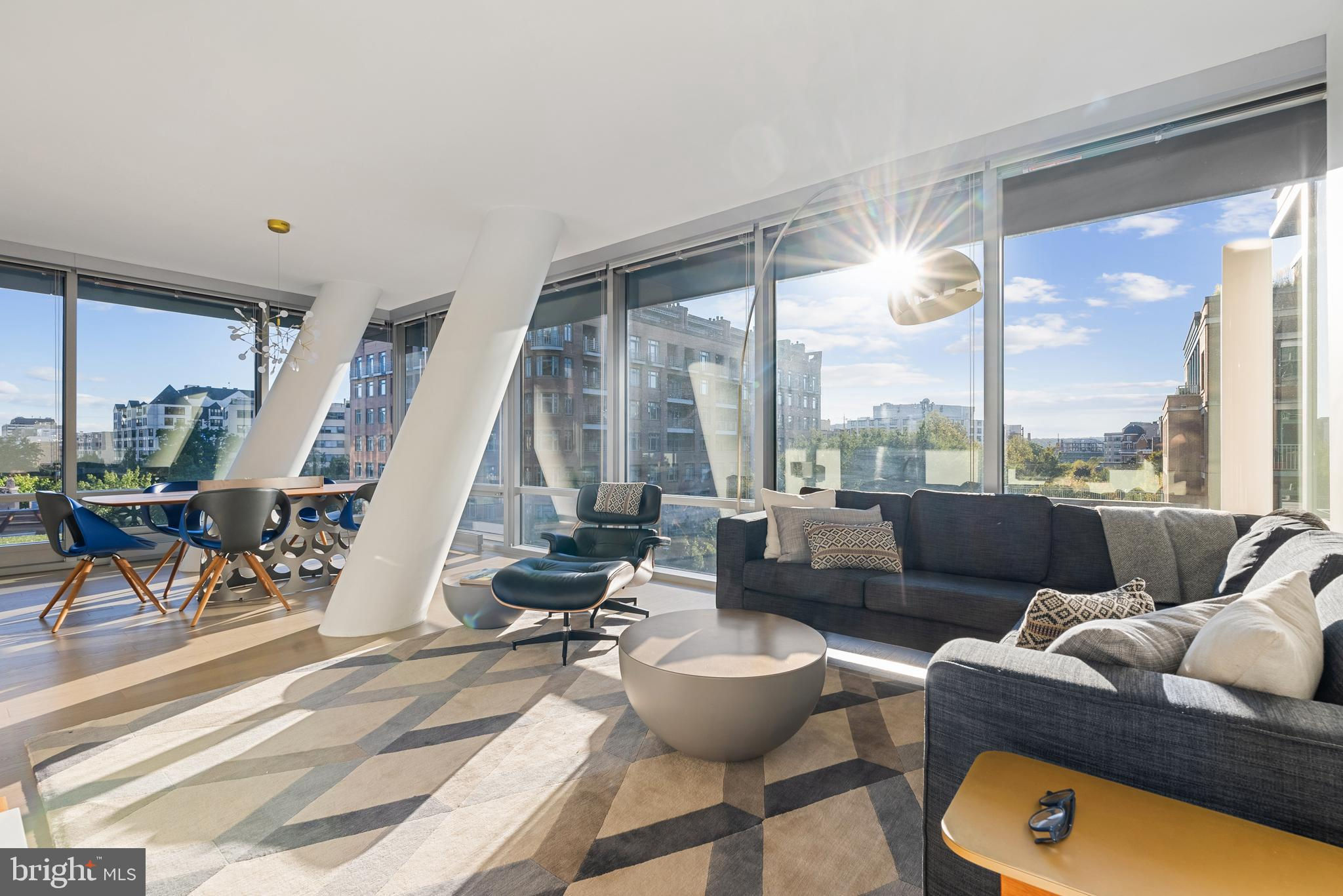 There’s only one place in Washington that’s truly the prime West End power address. Where walls of glass meet open sky. A place defined by light, luxury, and an effortless rhythm of city living. This is Residence 53. Where entertaining can happen at scale—indoors or above the skyline. As one of the few coveted corner residences in Westlight, Residence 53 offers an unmatched sense of openness and privacy. Triple-glazed floor-to-ceiling window walls—rated at an impressive Sound Transmission Class (STC) 42, quieter than most airports—wrap the home in natural light and frame sweeping city and treetop views. Each window is fitted with custom automatic shades for precision light control. Wide-plank natural oak floors ground the space, while the fluid open layout invites effortless entertaining. The kitchen balances form and function with Italian high-gloss cabinetry, quartzite countertops, and integrated Bosch and Thermador appliances. Natural-gas cooking vents directly to the outside—an uncommon luxury in city residences. Where privacy and serenity define every bedroom retreat. Each of the three bedrooms is a sanctuary lit through those same acoustically superior windows with custom shades. The primary suite offers blackout shades for the most luxurious sleep. Generous closets including a custom walk-in, and a spa-inspired bath featuring Waterworks fixtures and a teak-slatted shower floor round out the spacious suite. Where wellness and design work in perfect harmony. LEED Gold certified, Westlight provides HEPA-grade fresh air and near-silent interiors—a rare standard of urban wellness. The dramatic lobby, anchored by a 50-foot living green wall, sets a tranquil tone the moment you arrive. Where service is both white-glove and intuitive. Residents enjoy 24/7 concierge, doorman, porter, and onsite engineer services. Amenities include a state-of-the-art fitness center with Peloton and Technogym equipment, dog-wash station, and bicycle storage. Residence 53 conveys with two private, controlled-access garage spaces near the e-charging station and a secure storage space. Where life rises above the city. Unwind or entertain atop D.C.’s only 25-meter rooftop pool, complete with grill terrace and clubroom with catering kitchen. With Michelin-guide dining (Nobu, Blue Duck Tavern, Rasika), the Kennedy Center, Downtown, and Dupont art galleries just blocks away, Westlight 53 (5-C) isn’t just a home—it’s a lifestyle statement.