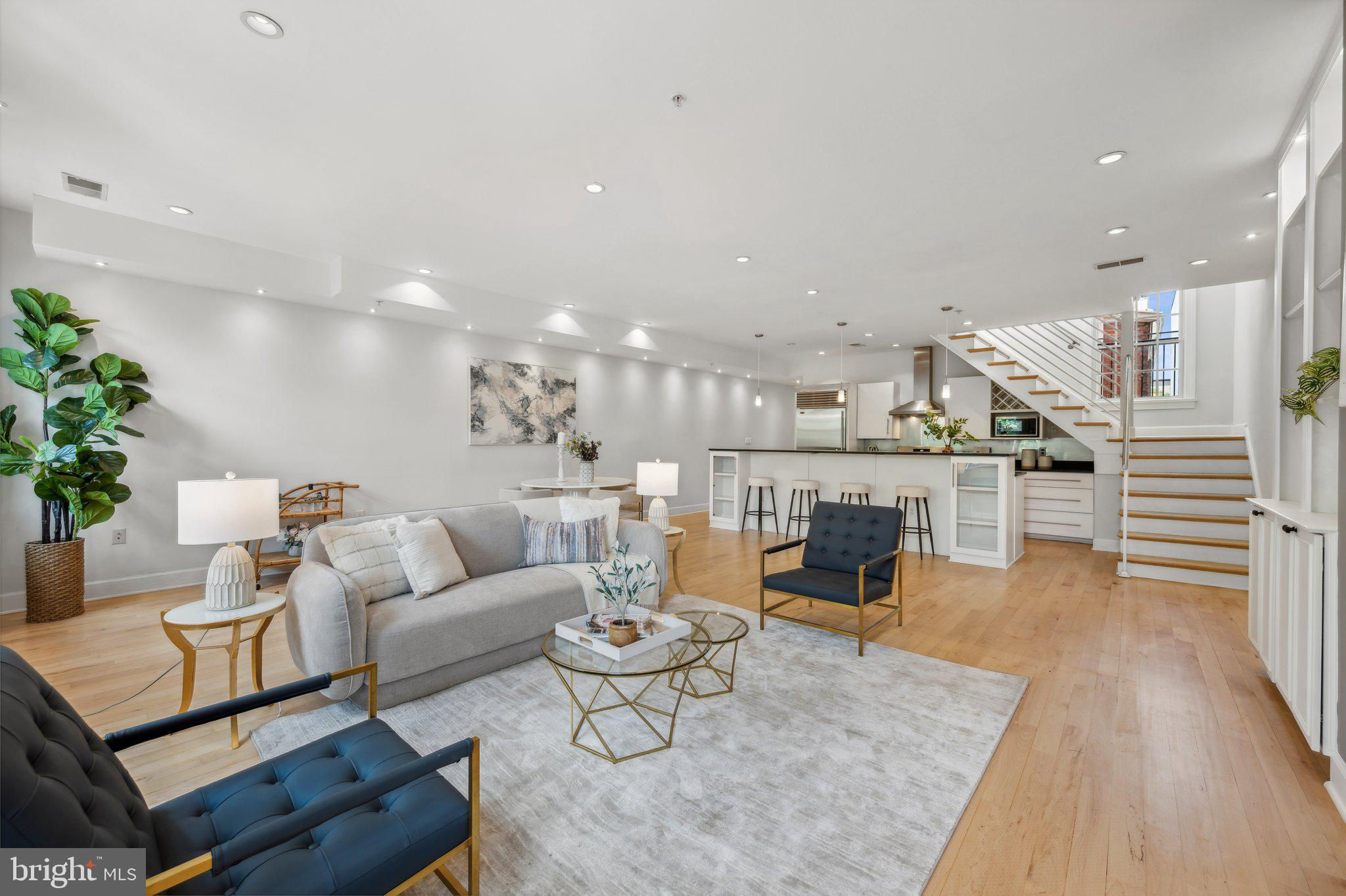 *Take advantage of a PRICE IMPROVEMENT and today's lower rates. Stunning bi-level penthouse condo in a renovated, classic Federal-style boutique building. This spacious home offers approximately 1,700 sq/ft of living space with abundant natural light, high ceilings, and beautiful views of mature trees. The main floor features a spacious living area with LED gallery-style lighting and recently added custom-made built-in bookcases, showcasing the perfect blend of style and functionality. The chef's kitchen boasts top-of-the-line Bosch and Subzero appliances, ideal for culinary enthusiasts, as well as lots of counter space for prepping and entertaining. An oversized bedroom with ample storage and a renovated bathroom complete the main floor. Upstairs, you'll find a fabulous primary suite with a fully renovated en-suite bathroom and a large closet with a full-size washer and dryer. The bedroom opens to a beautiful renovated and oversized deck, perfect for relaxation, gardening, and entertaining. This unique property has been upgraded with a new HVAC system, ensuring optimal comfort throughout the year. The roof of the building was recently replaced in March 2022. Convenience is at your doorstep, with easy access to a variety of restaurants, shops, and cafes. Enjoy the vibrant dining scene on 14th Street, and popular spots like Blagden Alley, Petite Cerise, Supra, Cause/Amazonia, Nina May, Tiger Fork, Le Diplomate, and The Dabney. Whole Foods and Trader Joe's are also nearby for your grocery needs. You'll have easy access to Dupont, Logan Circle, Shaw, and major metro lines, making commuting and exploring the city a breeze. Low fees, a gated PARKING space, and a pet-friendly building add to the appeal of this remarkable home. Don't miss this exceptional opportunity to own a truly special condo.