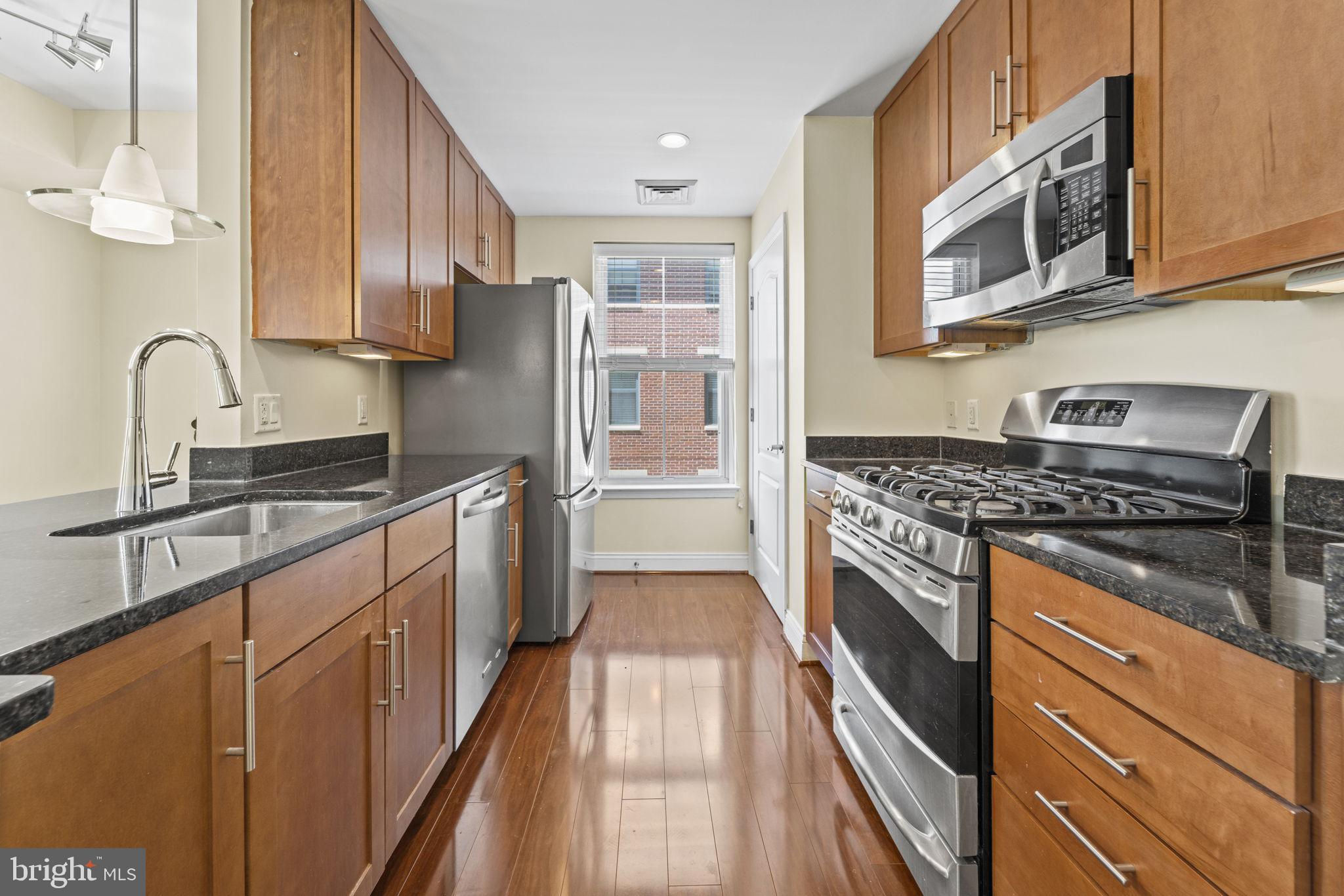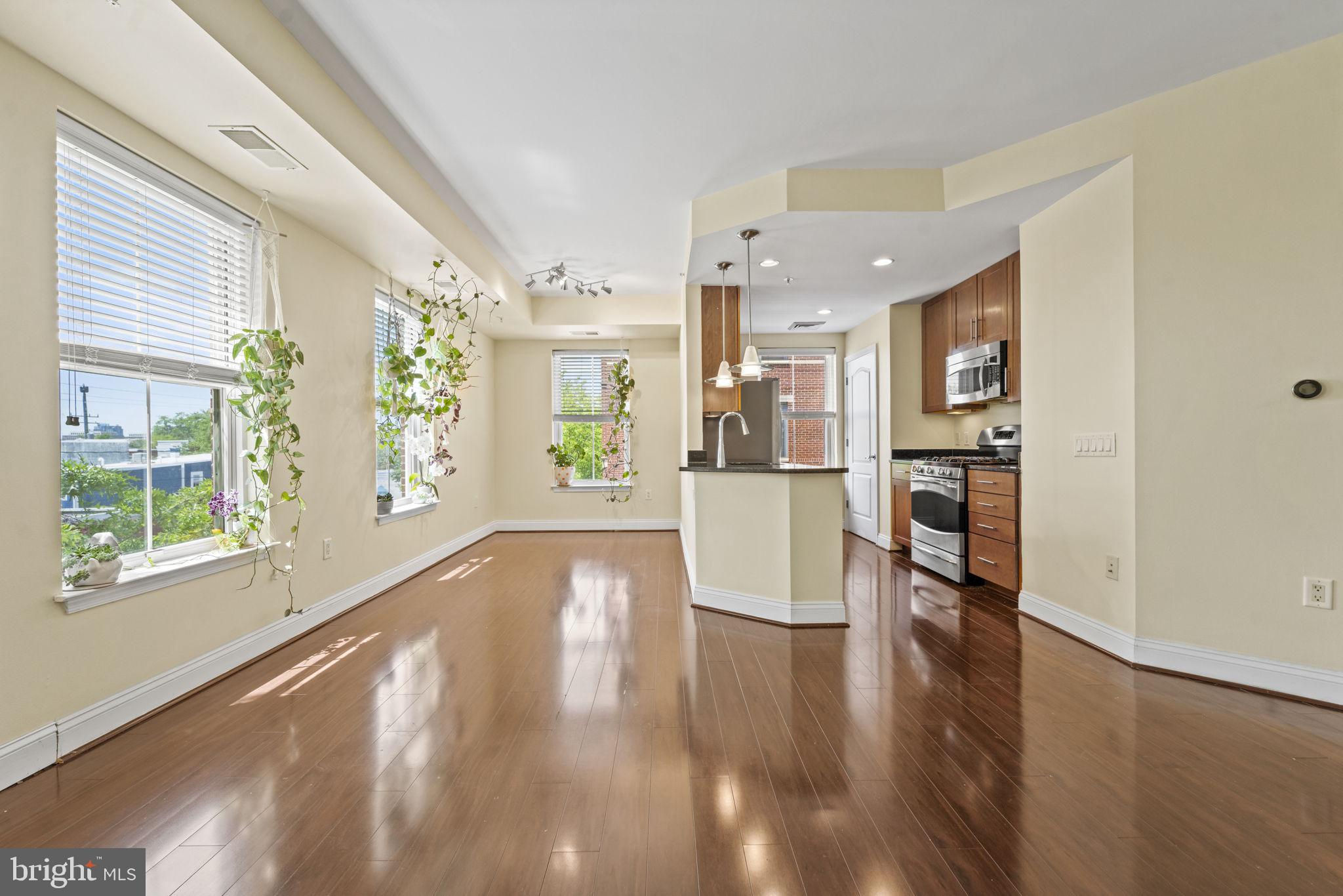 Bright and vibrant, this 2-bedroom, 2-bathroom corner-unit condominium in The Henry, nestled in the heart of Old Town Alexandria, boasts a multitude of enticing features. Strategically located within a short stroll to both the Braddock Metro and King Street Metro, as well as the charming shops and eateries along King Street, convenience meets luxury in this prime locale. Upon entry, you're greeted by an open-concept living space seamlessly blending the kitchen, living, and dining areas, ideal for both entertaining and everyday living. Divided wings house the bedrooms, ensuring privacy and tranquility. Custom-built shelving units in the foyer and living room lend a unique charm to the ambiance, while soundproof windows in the master bedroom offer serene views of tree-lined Oronoco Street. Revel in unobstructed vistas of the majestic Masonic Temple from the dining room and kitchen windows. A host of recent upgrades enhances the comfort and functionality of the home, including a new heater installed in 2022, HVAC/AC system in 2023, and a LG washer and dryer replaced in 2020, as well as custom shelving installations in all bedroom and hallway closets. The kitchen is adorned with stainless steel appliances, complemented by a 5-burner gas stove for culinary enthusiasts. The Henry boasts a plethora of amenities, including a breathtaking rooftop deck providing panoramic views of Old Town, complete with BBQ grills and tables for al fresco dining. Residents also enjoy access to a fitness center, club room with a pool table, theater, and party space. Additionally, two underground garage parking spaces and a generous storage unit are deeded with the property. With cable and internet included in the condo fee, every modern convenience is accounted for in this exceptional residence. Experience the epitome of urban luxury living at The Henry, where sophistication meets unparalleled convenience in the heart of Old Town Alexandria.