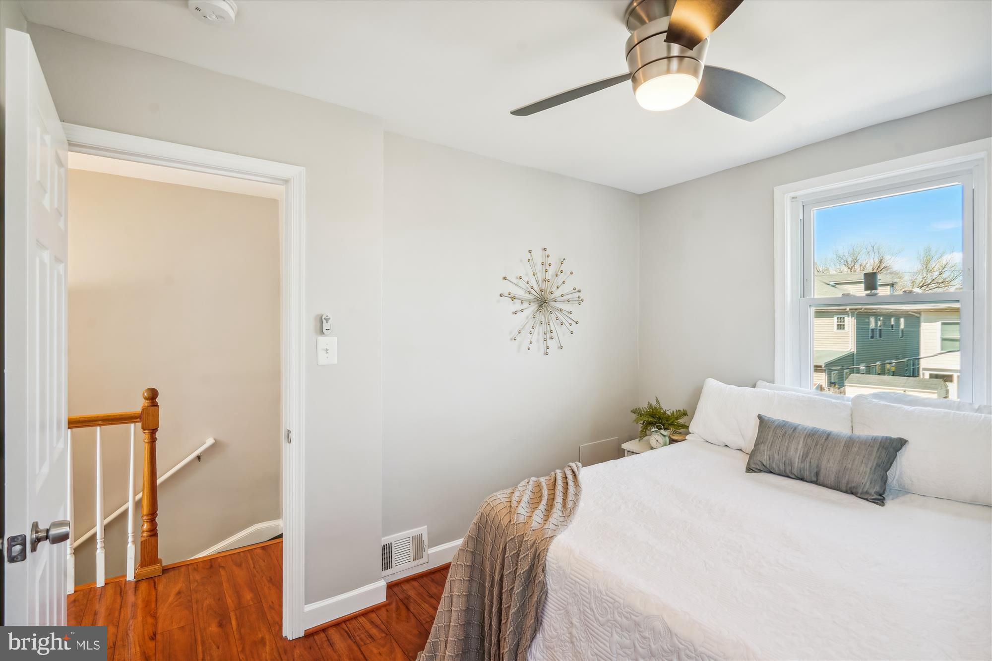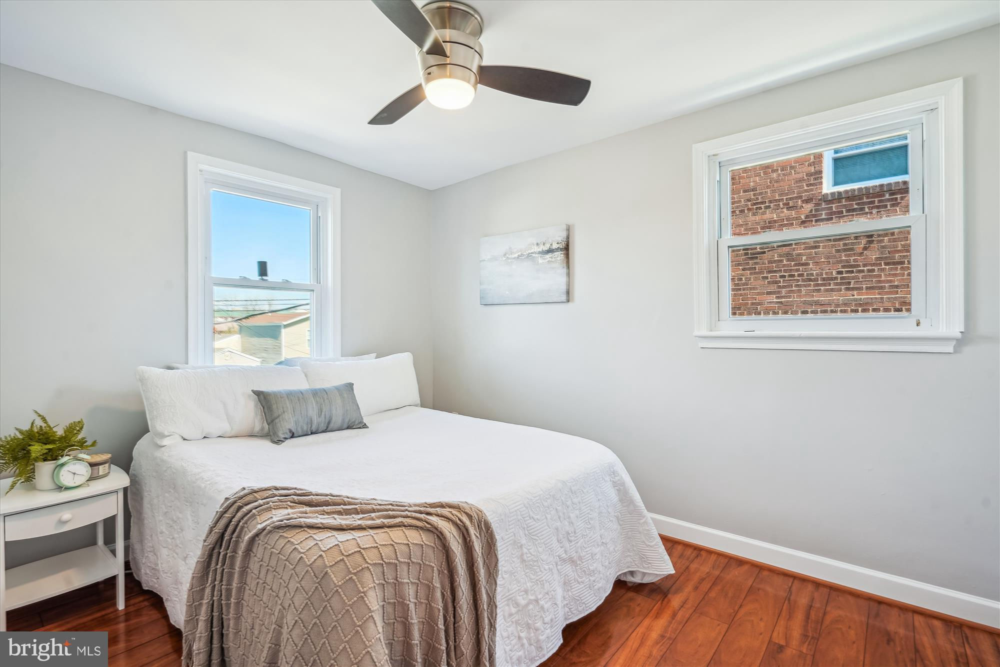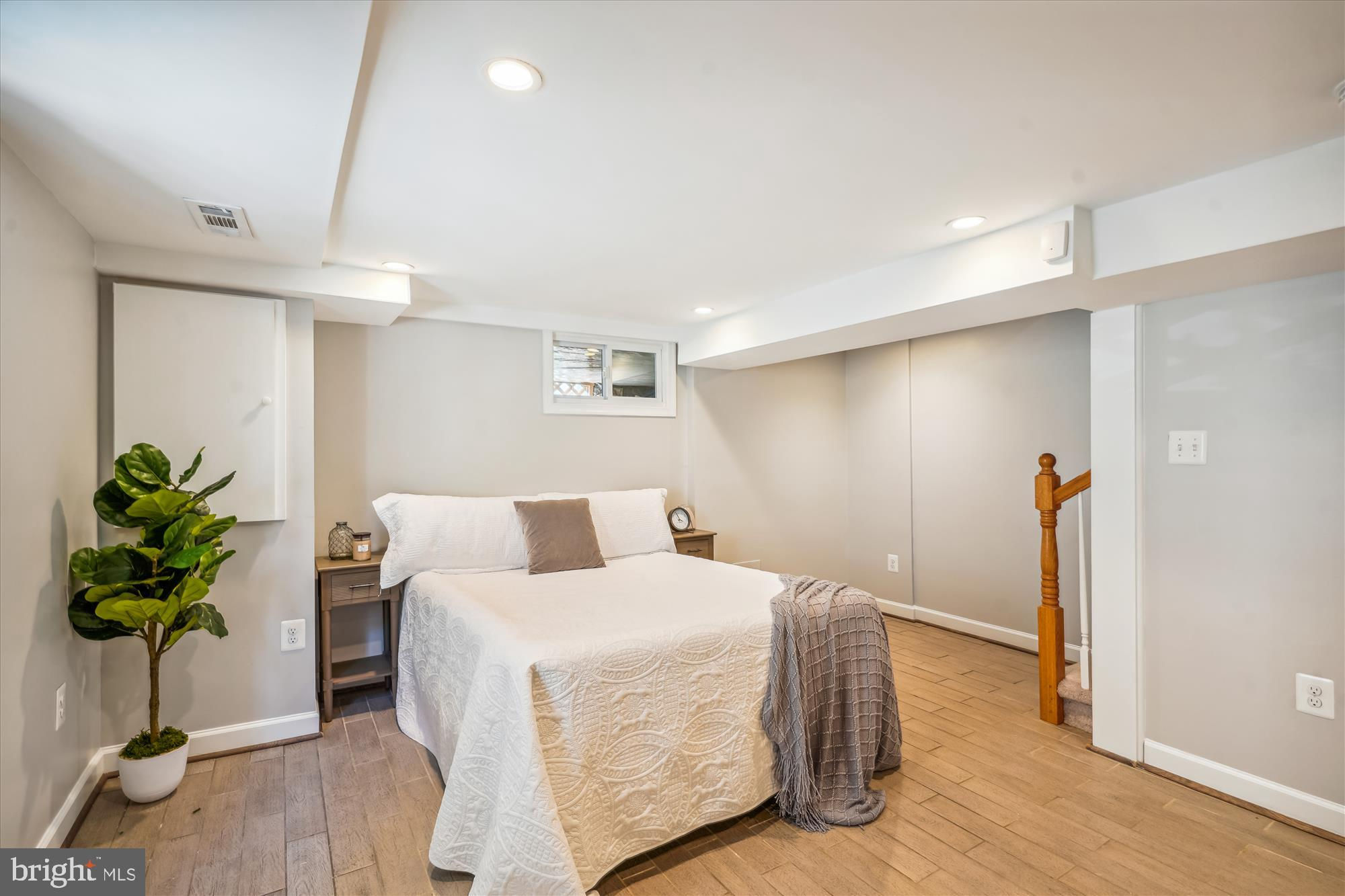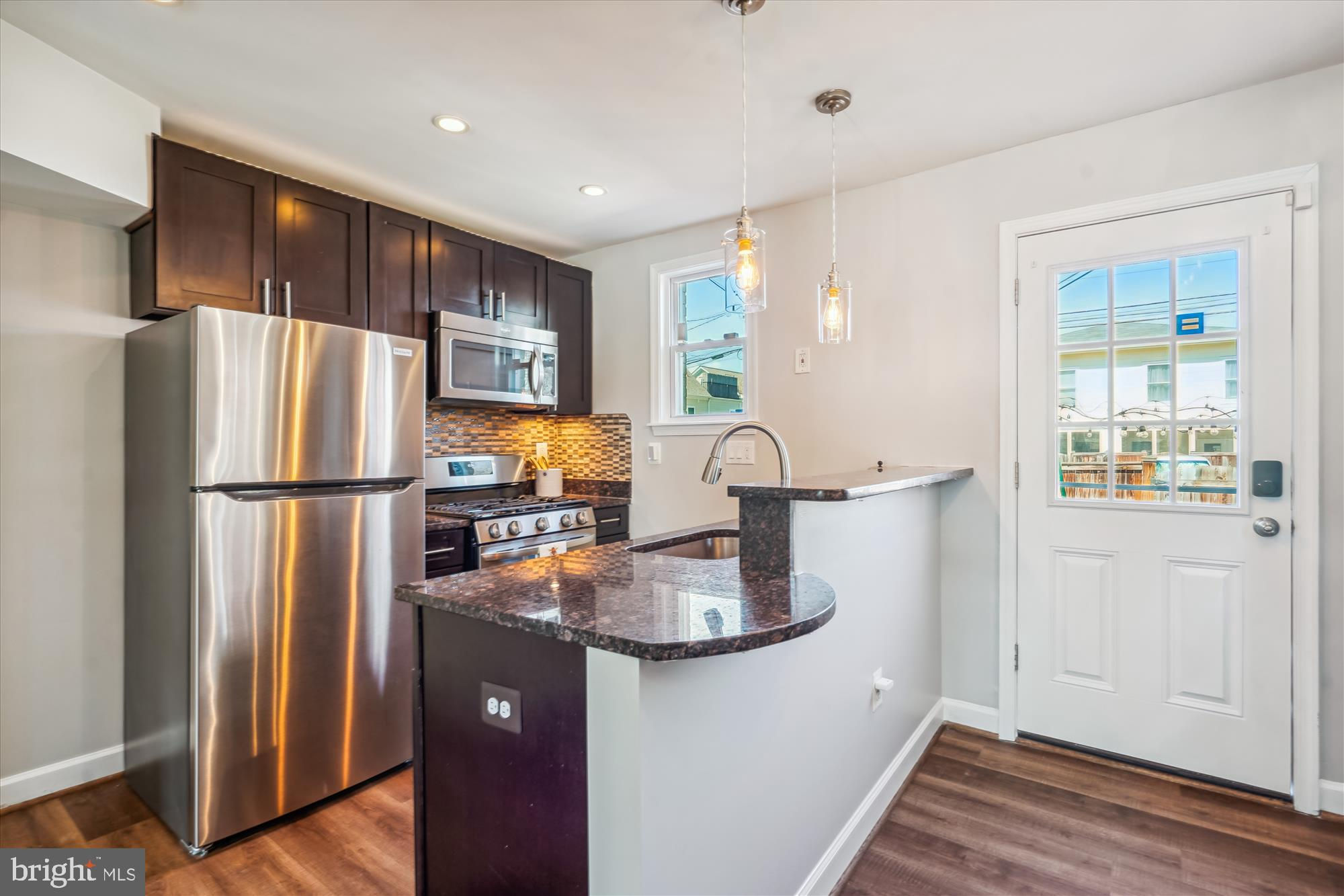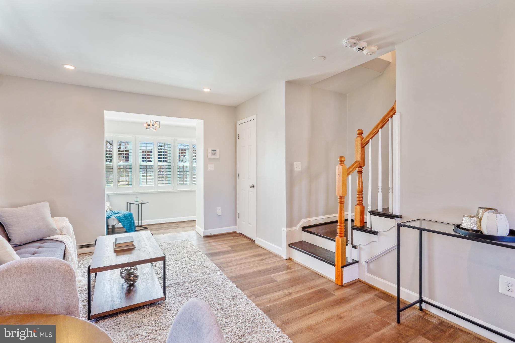 Beautifully updated 3 bedroom, 2.5 bathroom end-unit townhome in charming Del Ray! This home features fresh paint and high-end updates throughout. The home opens to a sunroom, perfect to use an in-home office or a mud room. The light-filled living room is accented with recessed lighting and LVP flooring. The open updated kitchen is accented with beautiful espresso cabinetry, granite countertops, stainless steel appliances including a NEW refrigerator & stove (2024) and newer disposal (2022), mosaic tile backsplash, pendant lighting over the breakfast bar, & an additional prep kitchen with butcher block countertops & endless storage options! A RARE rustic-inspired main level powder room accented with ceramic wood-look tile & pendant lighting completes this level. The upper level includes a primary bedroom that features a ceiling fan & 2 closets, one with custom built-ins. An additional bedroom with a ceiling fan and a nice sized closet, and a renovated full bathroom with stone-inspired ceramic tiling & a waterfall showerhead complete this level. The fully finished lower level, accented with wood-look tile and recessed lighting, features an incredibly spacious 3rd bedroom, a laundry space with full-sized washer & dryer, and an updated full bathroom with modern finishes including oversized tile flooring, a raised vanity, a spa-like sliding glass door shower with waterfall showerhead, & linen closet. A large patio with ample room for raised bed gardens, grilling with friends, or enjoying the ambiance of string lights under the stars completes this lovely home. Other features include a new roof (2023), new gutters (2023), & TWO parking spaces directly behind the home. PRIME LOCATION! This home is conveniently located within walking distance of the Potomac Yard Metro & shopping plaza, Del Ray's dynamic dining and shopping scene, three grocery stores, and scenic parks & bike trails. Enjoy easy access to DC, Reagan National Airport, & Pentagon City, all while being in one of the most dog-friendly neighborhoods in the DC metro area. This home offers an enviable blend of urban accessibility and community charm, perfect for commuters and local explorers alike.