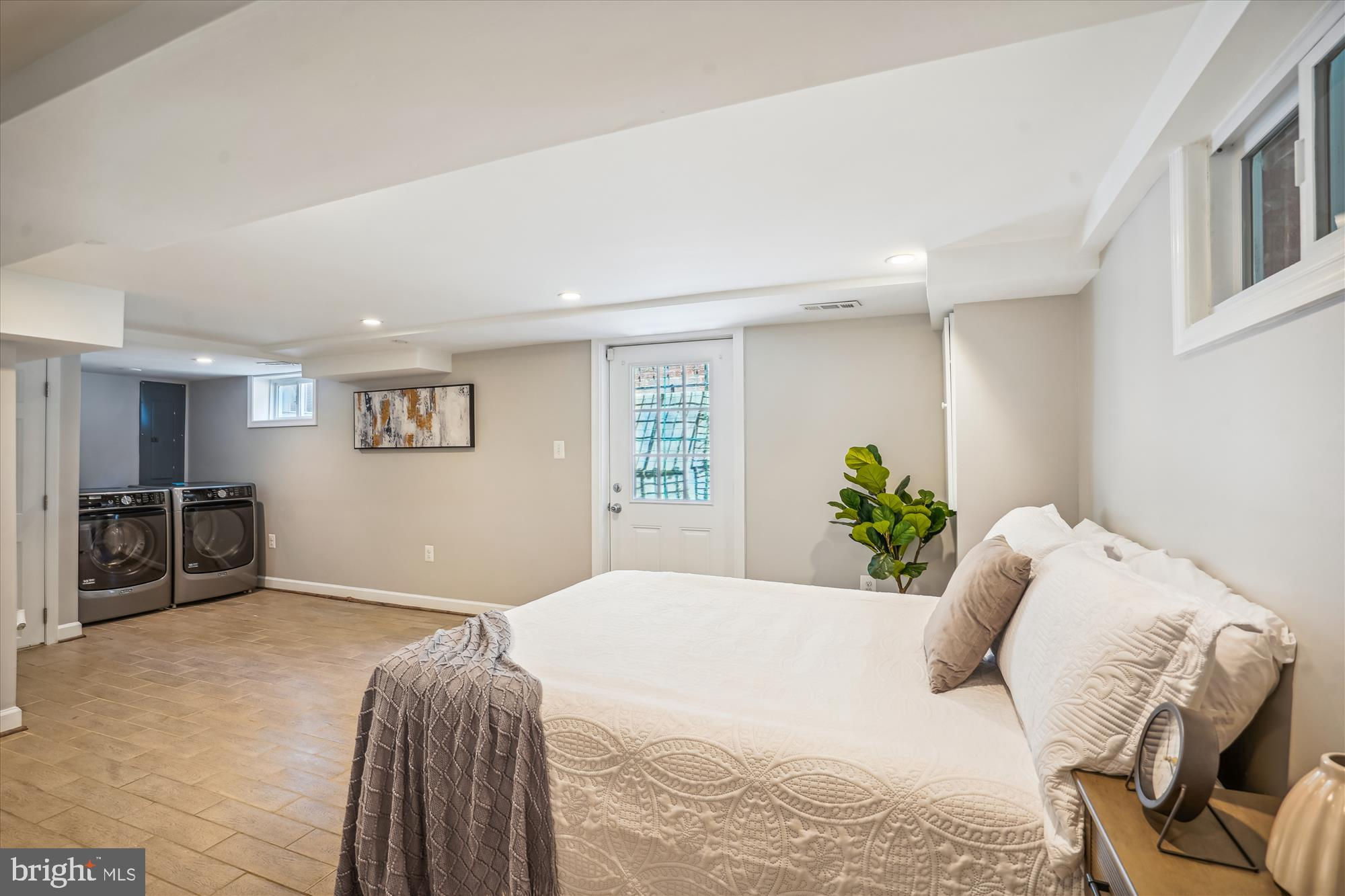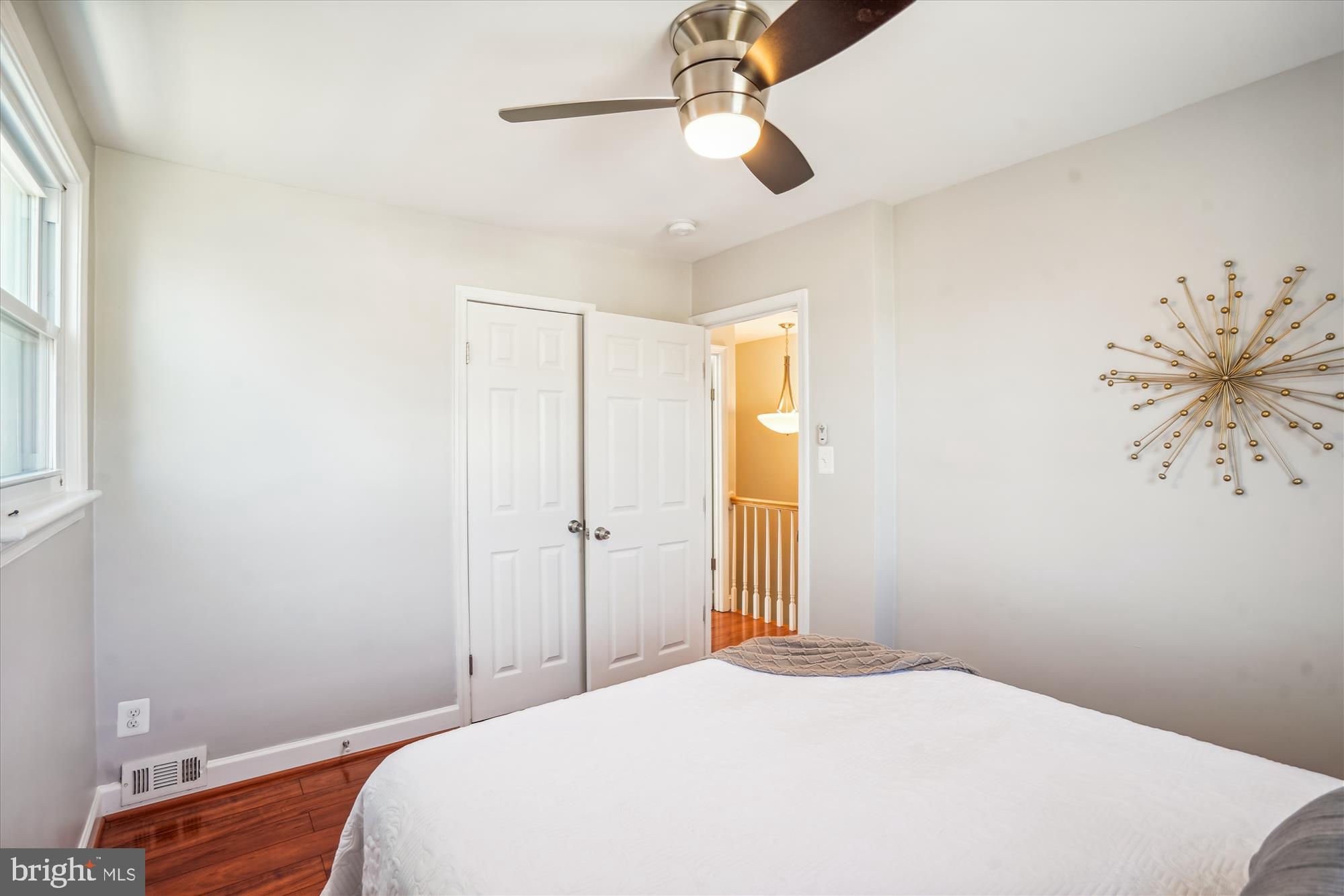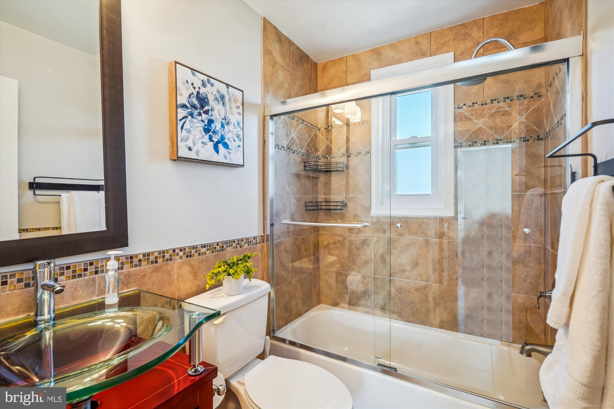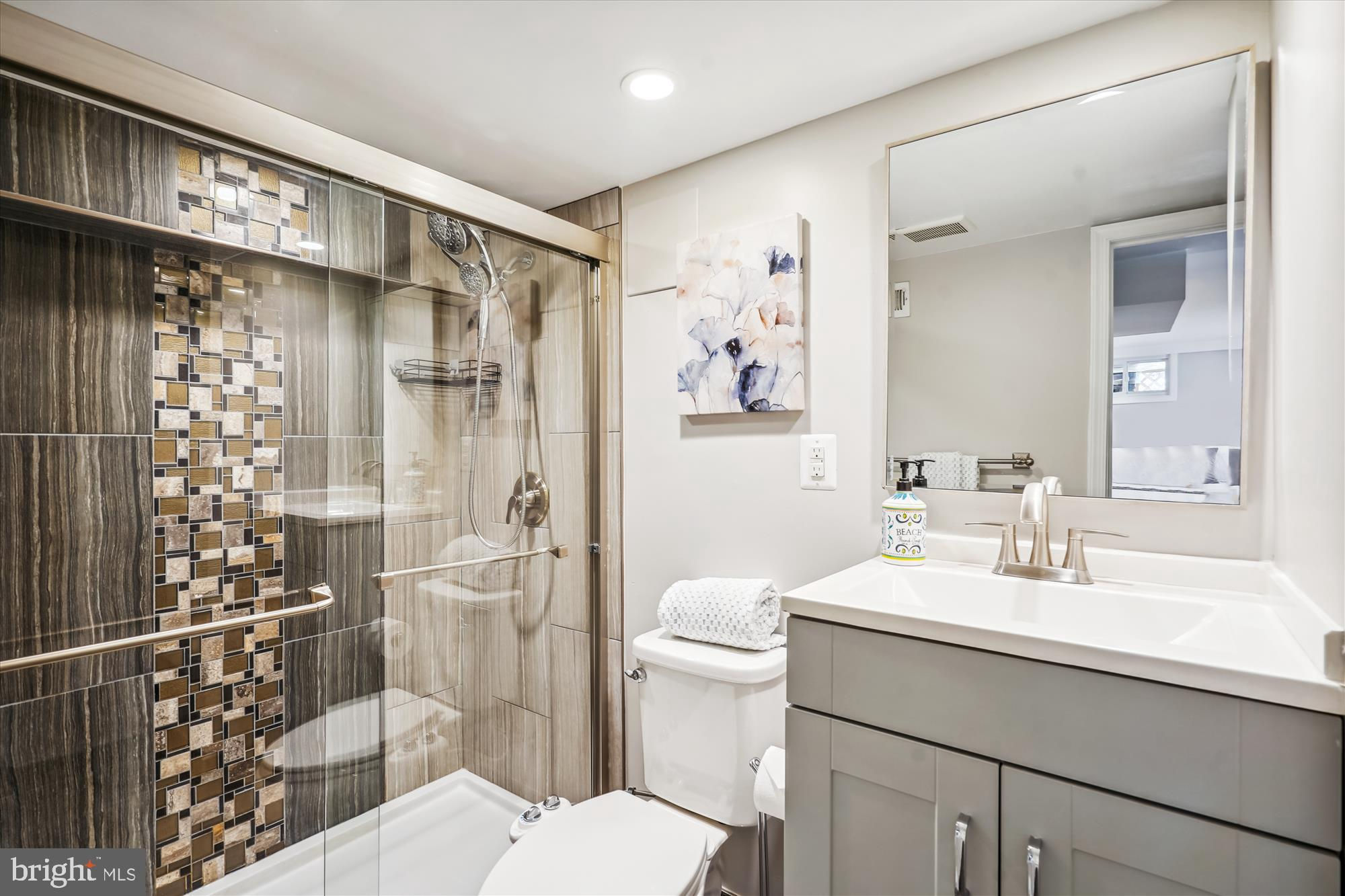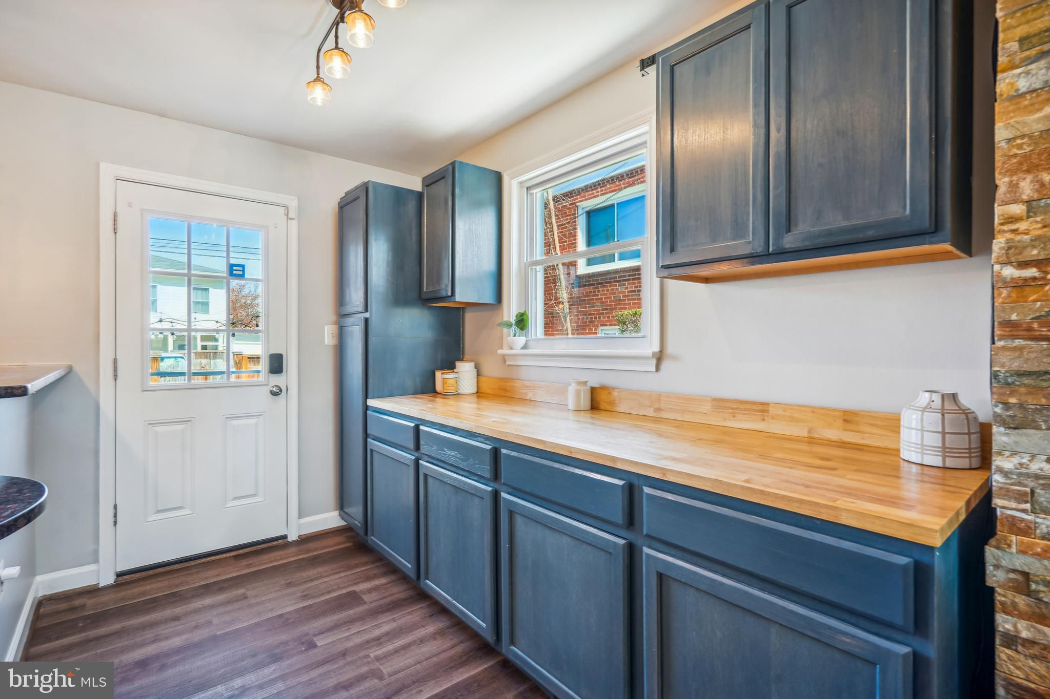 Beautifully updated 3 bedroom, 2.5 bathroom end-unit townhome in charming Del Ray! This home features fresh paint and high-end updates throughout. The home opens to a sunroom, perfect to use an in-home office or a mud room. The light-filled living room is accented with recessed lighting and LVP flooring. The open updated kitchen is accented with beautiful espresso cabinetry, granite countertops, stainless steel appliances including a NEW refrigerator & stove (2024) and newer disposal (2022), mosaic tile backsplash, pendant lighting over the breakfast bar, & an additional prep kitchen with butcher block countertops & endless storage options! A RARE rustic-inspired main level powder room accented with ceramic wood-look tile & pendant lighting completes this level. The upper level includes a primary bedroom that features a ceiling fan & 2 closets, one with custom built-ins. An additional bedroom with a ceiling fan and a nice sized closet, and a renovated full bathroom with stone-inspired ceramic tiling & a waterfall showerhead complete this level. The fully finished lower level, accented with wood-look tile and recessed lighting, features an incredibly spacious 3rd bedroom, a laundry space with full-sized washer & dryer, and an updated full bathroom with modern finishes including oversized tile flooring, a raised vanity, a spa-like sliding glass door shower with waterfall showerhead, & linen closet. A large patio with ample room for raised bed gardens, grilling with friends, or enjoying the ambiance of string lights under the stars completes this lovely home. Other features include a new roof (2023), new gutters (2023), & TWO parking spaces directly behind the home. PRIME LOCATION! This home is conveniently located within walking distance of the Potomac Yard Metro & shopping plaza, Del Ray's dynamic dining and shopping scene, three grocery stores, and scenic parks & bike trails. Enjoy easy access to DC, Reagan National Airport, & Pentagon City, all while being in one of the most dog-friendly neighborhoods in the DC metro area. This home offers an enviable blend of urban accessibility and community charm, perfect for commuters and local explorers alike.