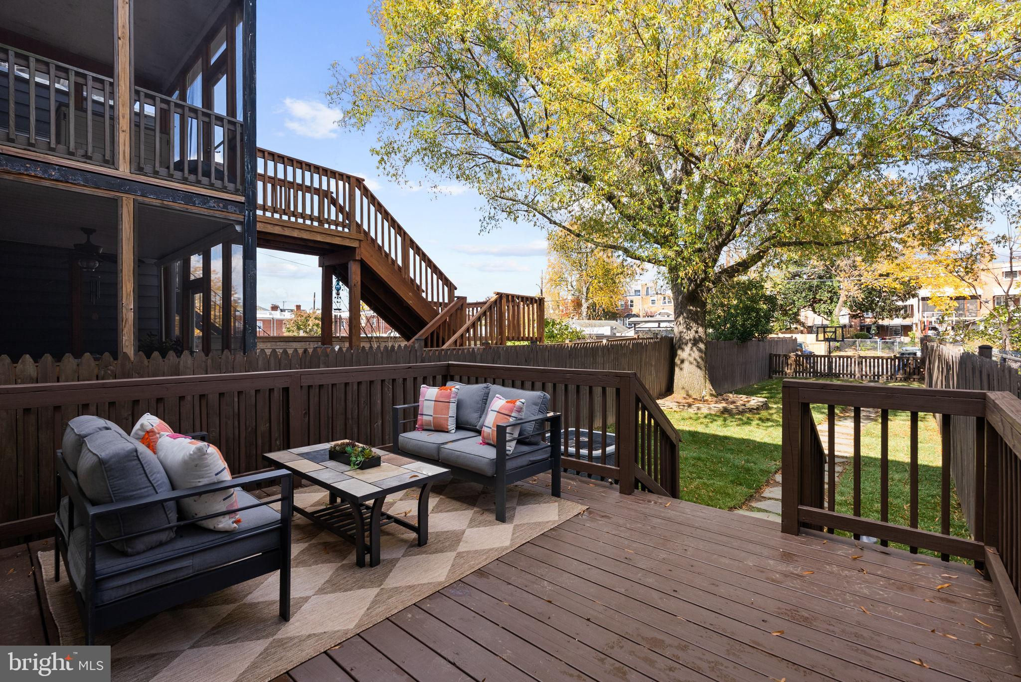 Welcome to 113 Hamilton Street NW- a turnkey home within walking distance of Metro, featuring one of the finest outdoor spaces in Brightwood Park/Petworth. Inside, natural light fills the open main level, creating an inviting flow from the living area to the dining space and kitchen. The kitchen includes marble countertops, updated stainless steel appliances, a gas range, white cabinetry, and a breakfast bar that’s perfect for casual meals or entertaining. French doors lead to a refinished deck that overlooks one of the home’s best features- a deep, fenced backyard anchored by a stunning mature willow oak tree that provides shade and character throughout the seasons. Upstairs, the home features three comfortable bedrooms, including a primary suite with vaulted ceilings, recessed lighting, custom closets, and a spa-like en suite bath with an oversized marble shower and rain head. A full hall bath and laundry on the bedroom level is very convenient. The lower level offers great flexibility with a guest suite or in-law space, complete with a bedroom, full bath, wet bar, and private rear entrance. It’s ideal for guests, an au pair, or a home office. Recent updates include refinished and restained hardwood floors, new flooring and built-in shelves in the basement bedroom and closet, and a coat closet added on the main level. The backyard boasts a professionally installed drainage system to divert water away from the home, and outdoor living is elevated with a freshly refinished deck. The entire home has been newly painted, offering a fresh and move-in-ready feel. The property includes a two-car parking pad and ample street parking. Residents love the close-knit community, walkability to Fort Totten Metro, and local favorites like La Coop Coffee, Everyday Sundae, ANXO Cider, and Brightwood Pizza & Bottle. Short distance to Fort Totten Metro and the Kennedy St revitalization. Neighborhood parks, schools, and easy access to Rock Creek Park and downtown make this a location that truly has it all.