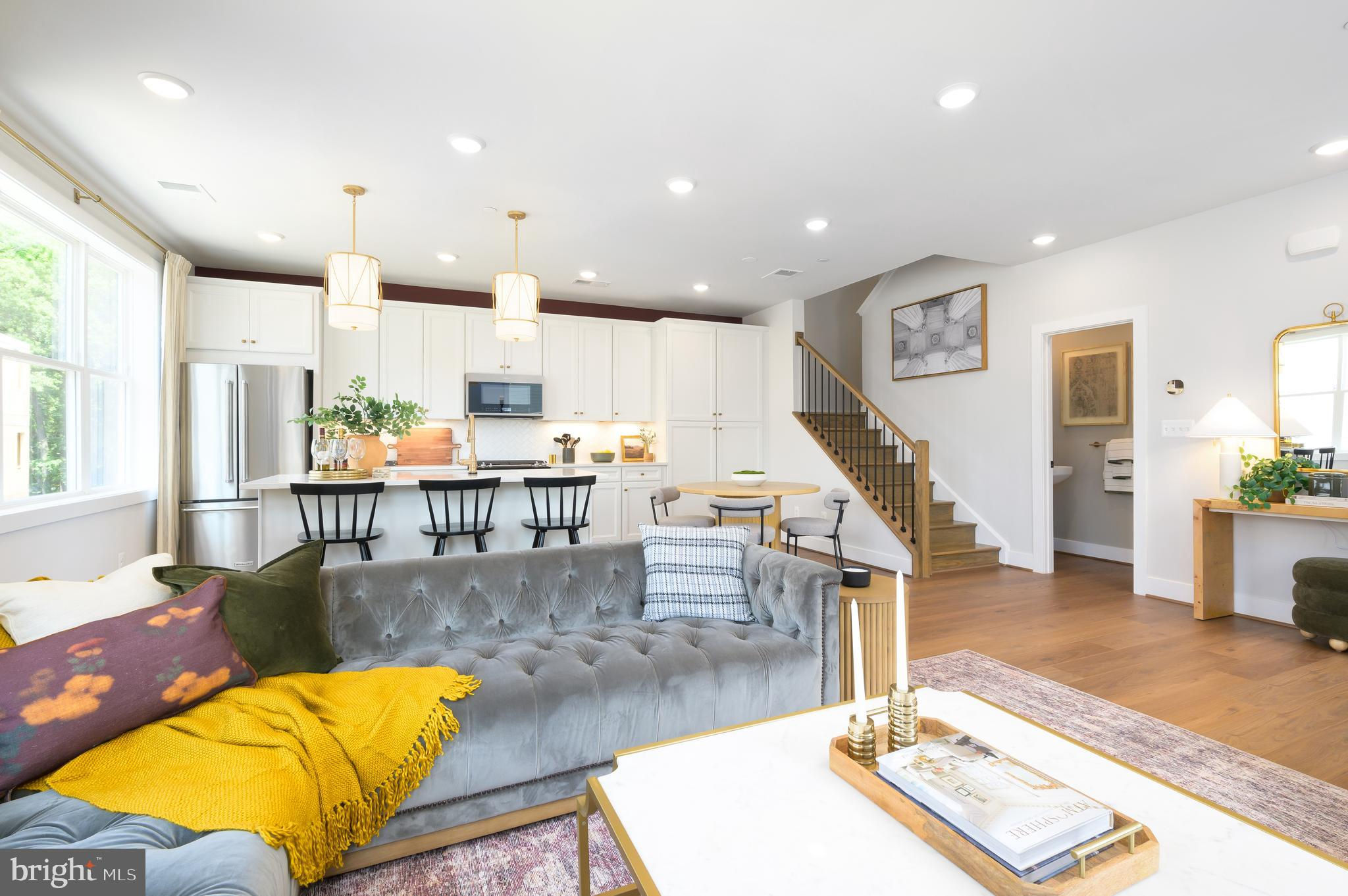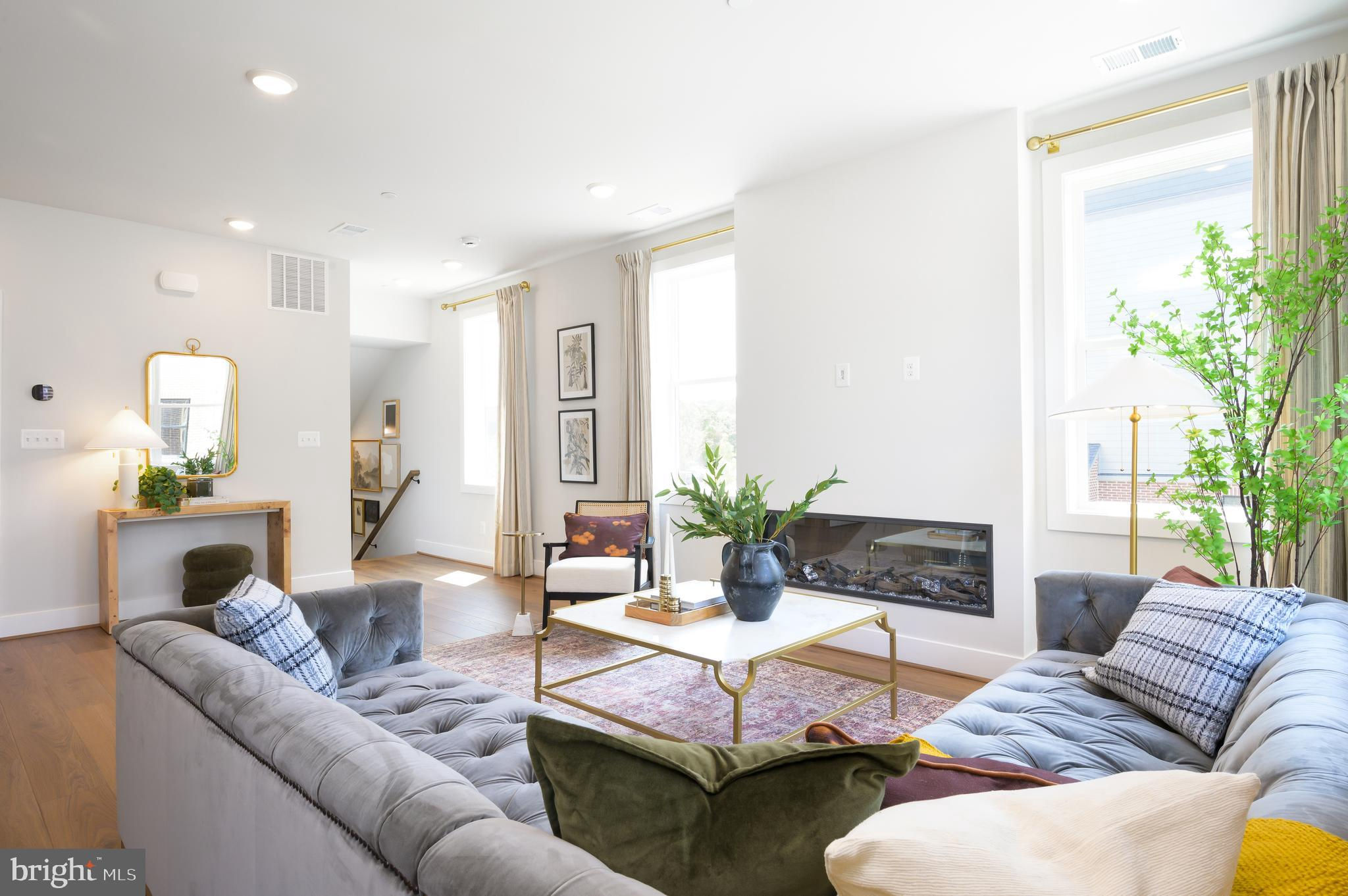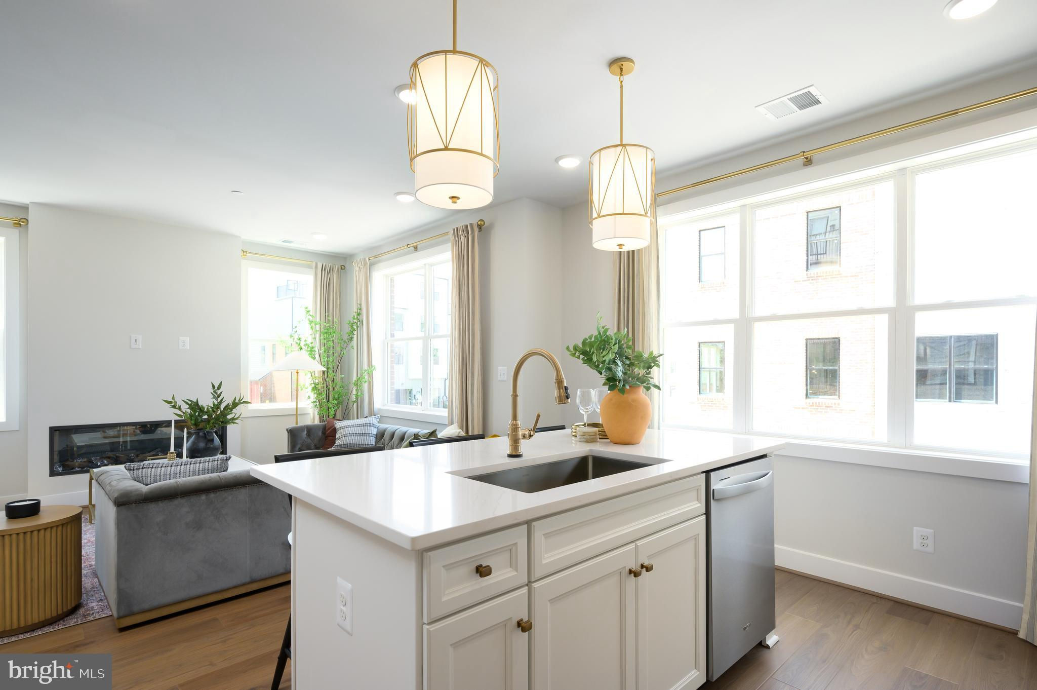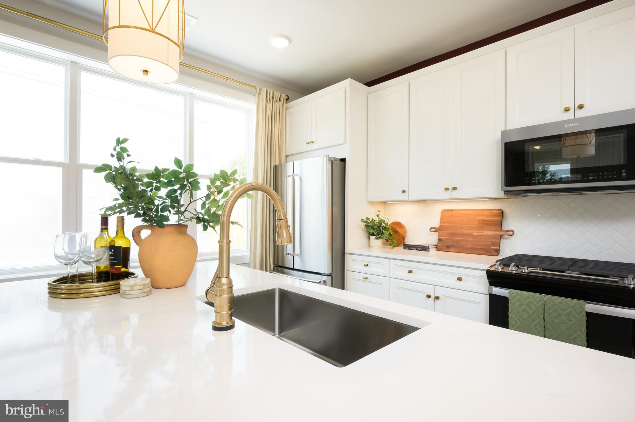 The main level rises to any occasion with an open design connecting the kitchen, dining, and great room in a way that highlights high style and function. The Stylish kitchen is complete with Gunny cabinets, Calacatta Gold quartz countertops, matte black hardware, a large center island with waterfall, and KitchenAid stainless steel appliances. Step up to the second floor, which features two roomy secondary bedrooms, a hall bath, and a laundry room. The third level is surely all about you. An entire floor becomes a dedicated primary suite with a dual vanity, and even your very own private outdoor terrace access. Photos shown are of similar home.