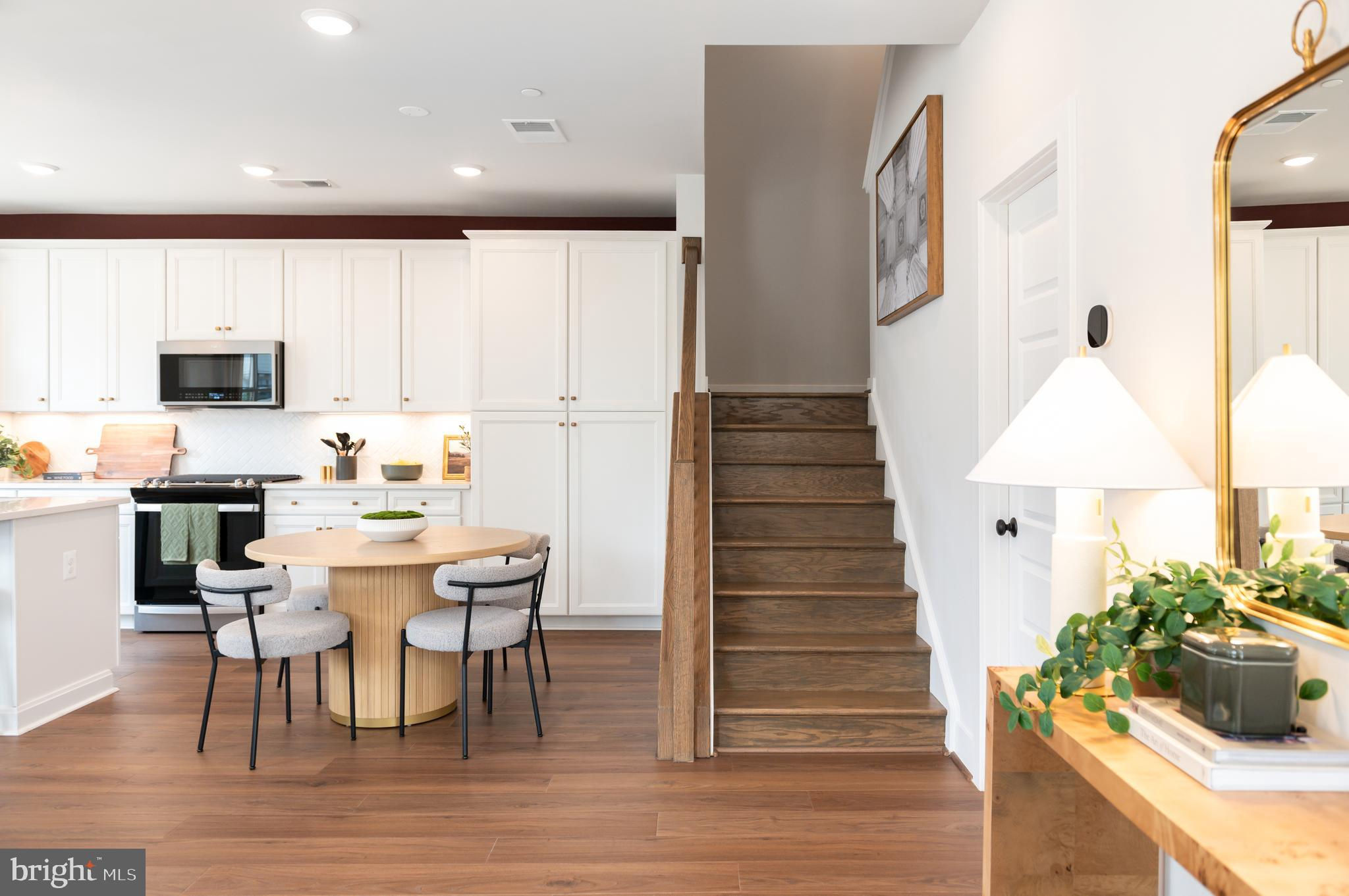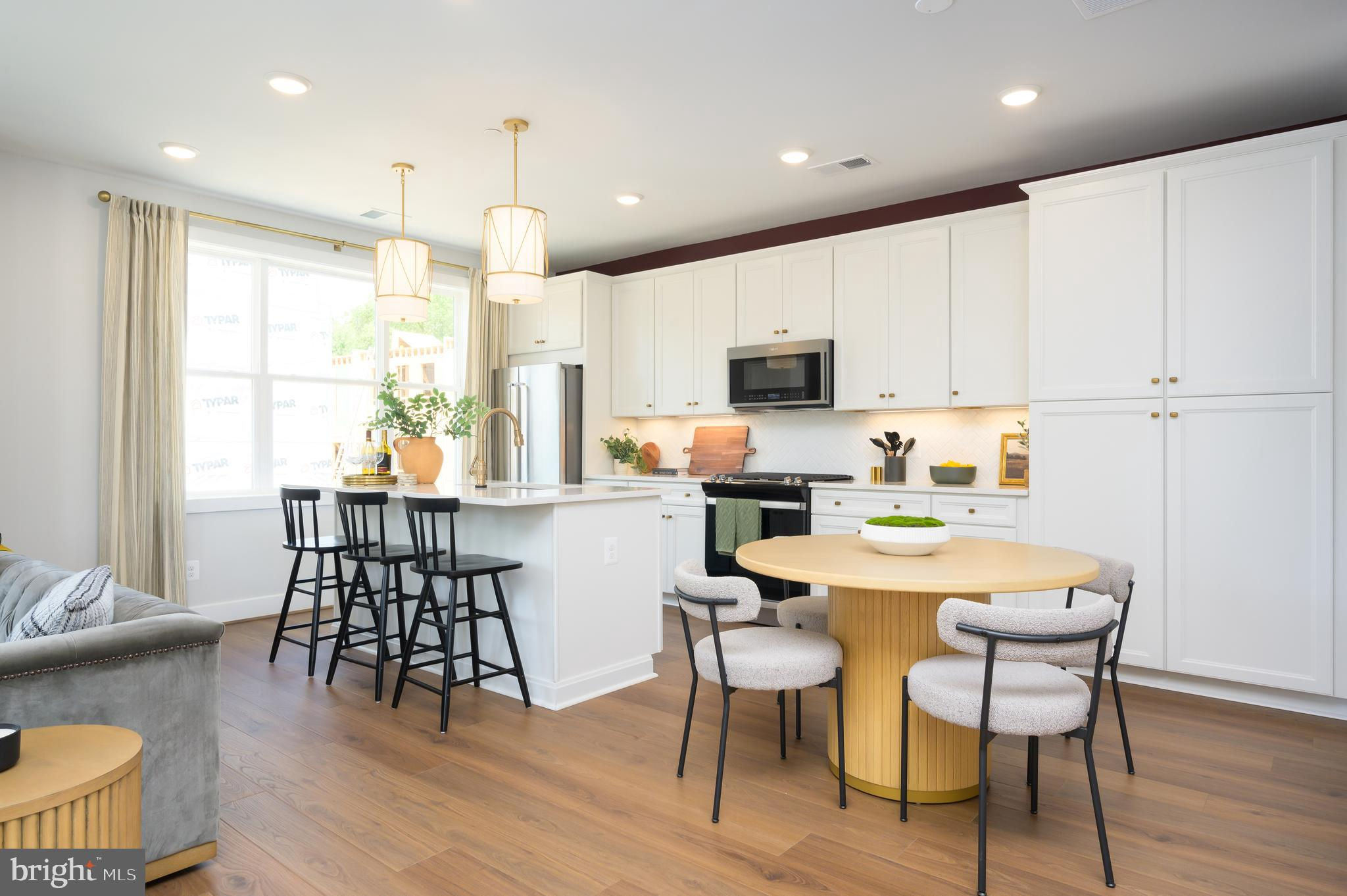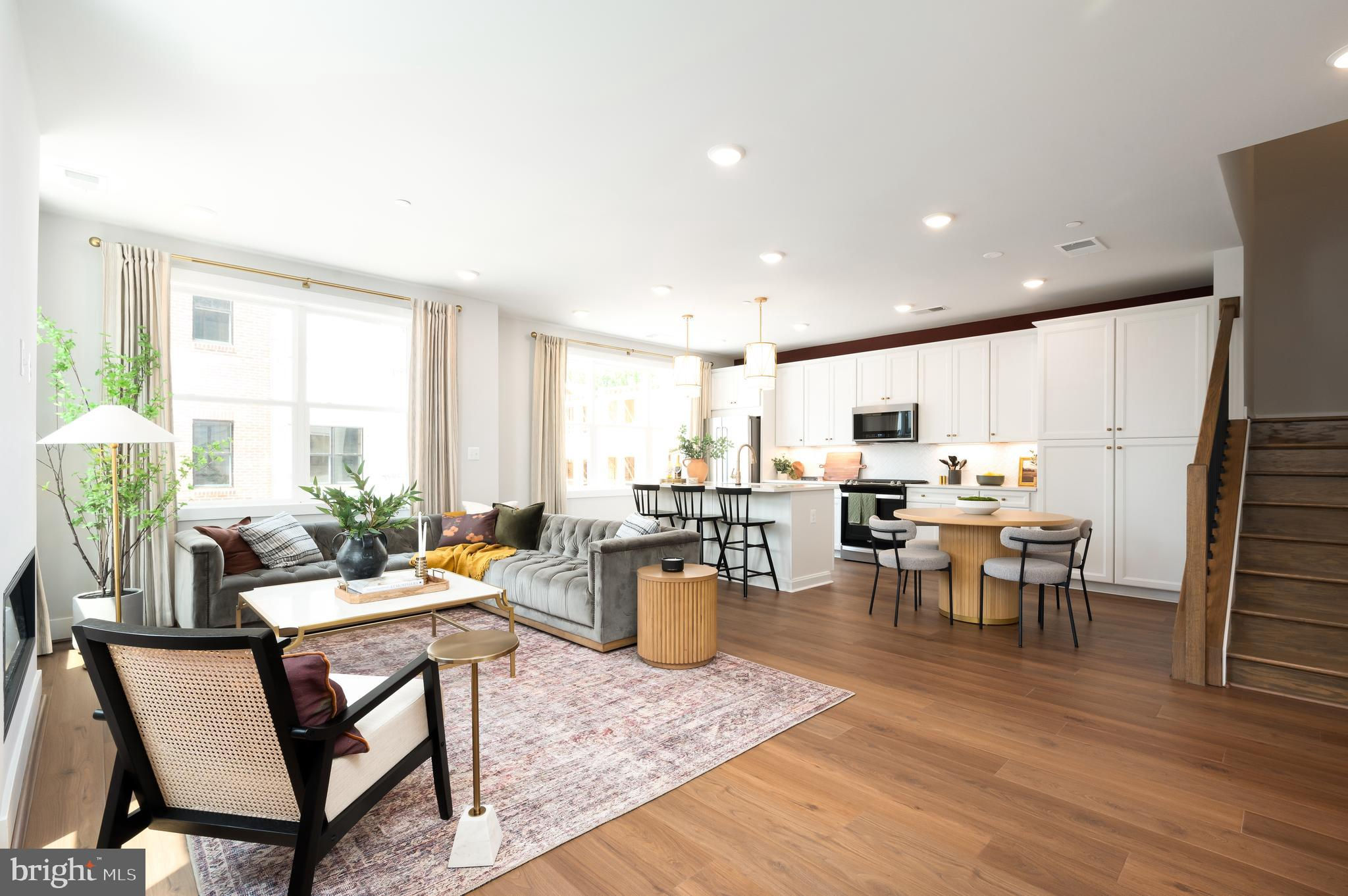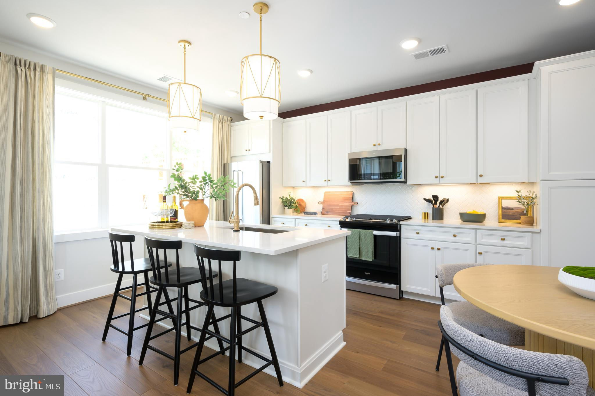 The main level rises to any occasion with an open design connecting the kitchen, dining, and great room in a way that highlights high style and function. The Stylish kitchen is complete with Gunny cabinets, Calacatta Gold quartz countertops, matte black hardware, a large center island with waterfall, and KitchenAid stainless steel appliances. Step up to the second floor, which features two roomy secondary bedrooms, a hall bath, and a laundry room. The third level is surely all about you. An entire floor becomes a dedicated primary suite with a dual vanity, and even your very own private outdoor terrace access. Photos shown are of similar home.