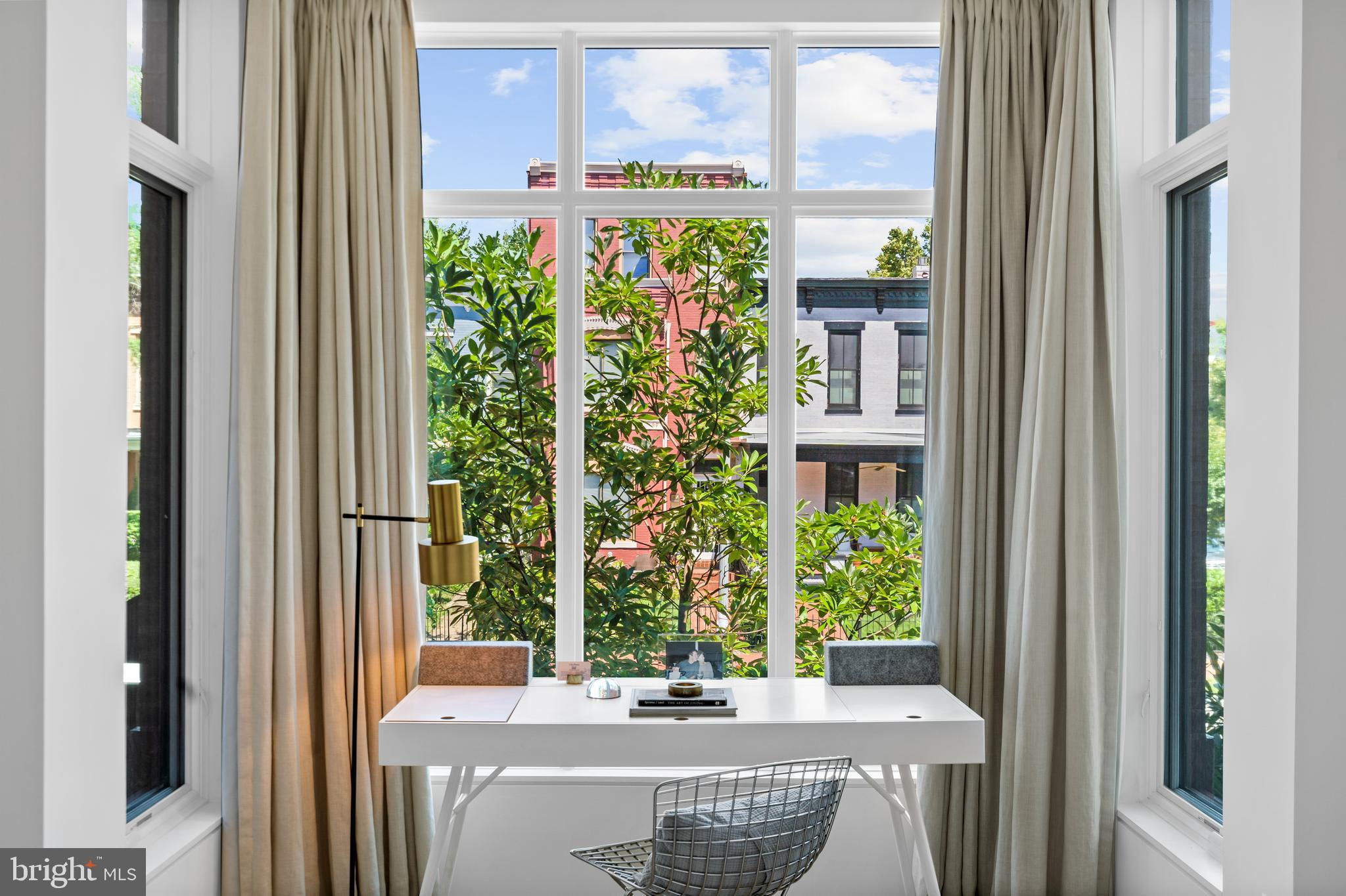 Welcome to this thoughtfully designed duplex residence, offering architectural precision and timeless detail. Built in 2016 by renowned developer Ditto Residential and tastefully upgraded by the owner in 2022, this home blends modern design with timeless finishes. One of only two units in the building, it offers a private entrance, the exclusivity of boutique living, and the advantage of a low condo fee. The main level showcases an open layout with seamless flow from living to kitchen to dining. At its center is a striking 13-foot island—ideal for casual dining and entertaining—paired with Thermador appliances, abundant storage, and custom cabinetry accented by Croft brass hardware and a Kalista faucet. A full glass wall in the dining area frames the landscaped patio, flooding the space with natural light. A discreetly tucked-away half bath completes the level. Outdoors, the private patio is enclosed by soaring 14-foot privacy walls that create both seclusion and abundant sunlight, complemented by professional landscaping of Shorb Landscaping, an irrigation system, and herb planting container—an effortless extension of the main living space -- ideal for entertaining or enjoying a quiet moment of retreat. Upstairs, the primary suite easily accommodates a king bed and features an oversized custom walk-in closet, floor-to-ceiling windows with motorized blackout shades, and a spa-like bath with a dual vanity and glass shower. The second bedroom includes a built-in desk nook and its own ensuite with tub perfect for those quick dog washes when needed. Additional features include white oak floors, Circa lighting by Kelly Wearstler, dimmers throughout, a Ring security system, and private rental parking less than 100 yards away. Seller paid homeowner's warranty. Perfectly positioned in the heart of Logan Circle, just steps to Le Diplomate, The Coffee Bar, Doi Moi, Whole Foods, Call Your Mother, and more.