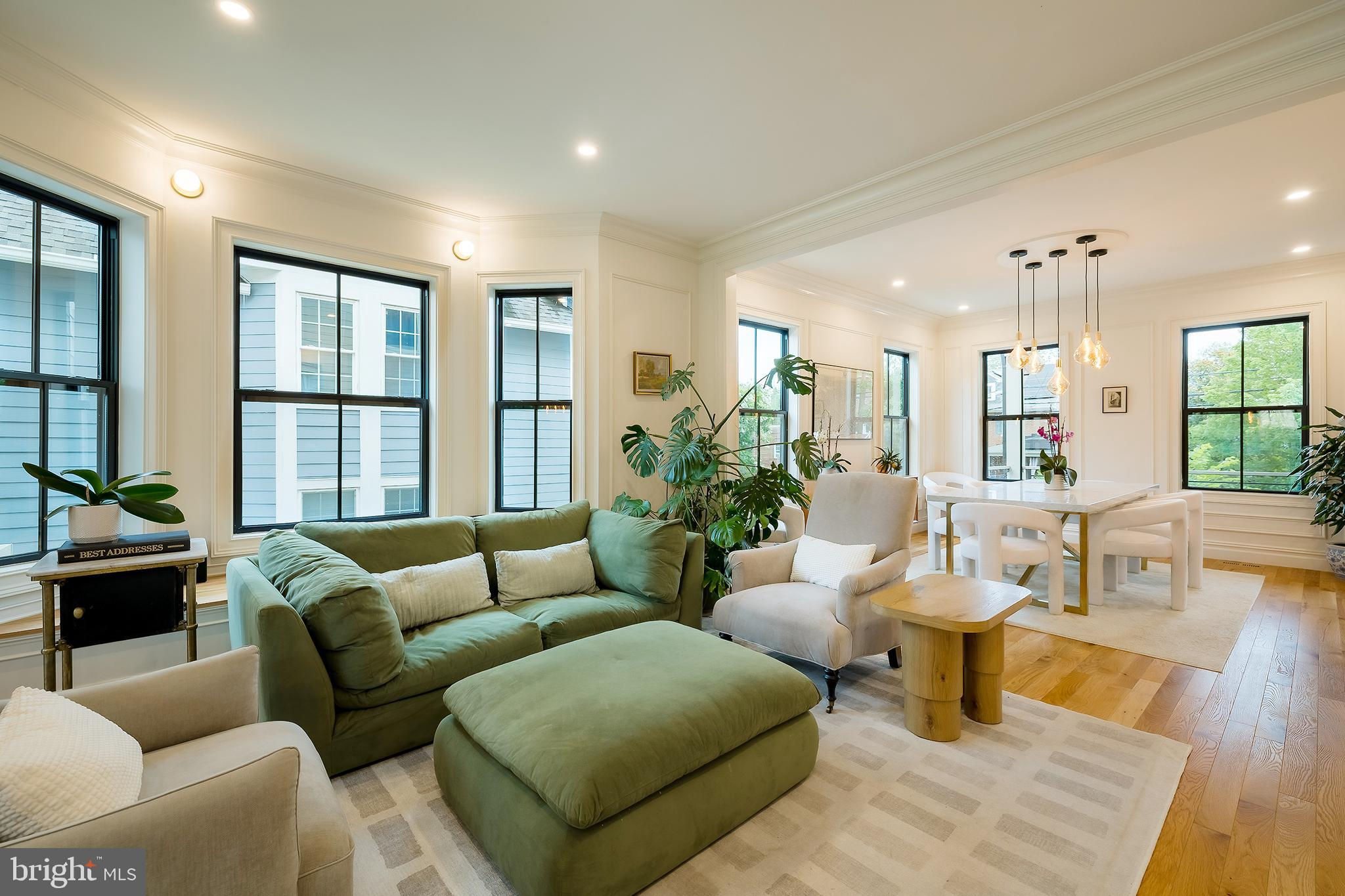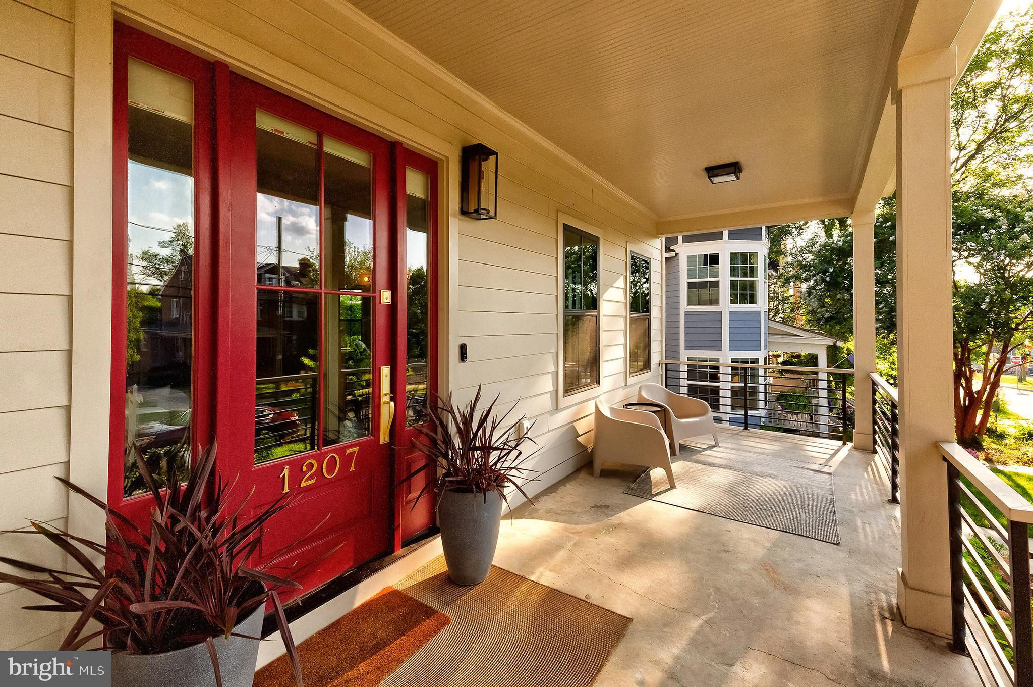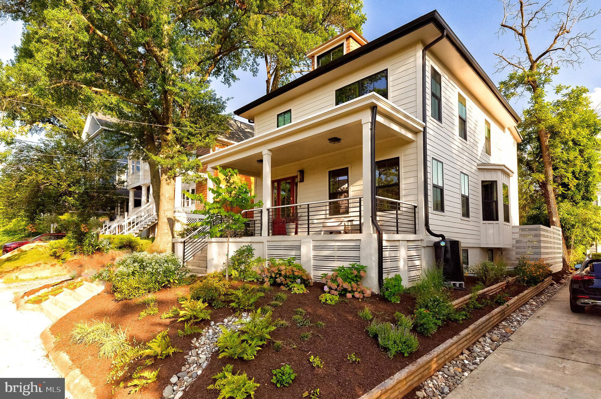 While Brookland was not subdivided from its former farmsteads until 1887, its genesis can be traced back to 1687 when Lord Baltimore granted more than 1,000 acres to Ninian Beall. In 1830, Jehiel Brooks came into possession of 200 acres of this original tract and lent his name to the neighborhood. Brookland is now an eclectic mix of architectural styles including Colonial Revivals, Tudor Revivals, Bungalows, Craftsmans, and American Foursquares. The neighborhood offers a small-town suburban setting with restaurants and retail along 12th and Monroe Streets, NE, while being convenient to downtown DC via public transportation and the Metropolitan Branch Trail. The house at 1207 Randolph Street, NE, is a clear expression of the American Foursquare style. Its massing with hipped roof and center dormer maximizes usable interior space while retaining a small footprint, offering 3,200 square feet across four finished levels. Its generous windows are sympathetic to the original style, creating a luminous space throughout the year. The deep front porch provides a welcome, shaded living space. The current owners undertook a thorough renovation in 2023 that comprised every facet of the property. The house offers contemporary living with an aesthetic that combines the best elements of traditional and current interior design. It has energy-efficient systems, new windows and doors, and insulation, as well as front, rear, and side gardens planted with native pollinators, drought-tolerant flowering bushes and shrubs, and high-impact shade trees. One-half of the main floor is an open concept that is composed of a living room, dining room, and kitchen that walks out to the rear garden. There is a powder room, large foyer, and mudroom with laundry that is located just inside the entrance from the driveway. The second-floor primary suite has a view onto the rear garden and includes a generous en suite bathroom, and a custom walk-in closet from California Closets with home office. The second floor has two additional bedrooms, a hall bathroom, and linen closet. The finished third floor could serve various uses. The basement offers eight-foot ceilings, tall casement windows, and a full-light door that allow natural light to permeate the space. There is a fourth bedroom and full bathroom, gym, large storage room, and den that could be enclosed as a fifth bedroom or office. The house is set on a deep, level lot with off-street parking for up to three cars with a 60-amp electric car charger. It is located one block from Yes! Organic Market and Cool Coffee and is a short walk to the Brookland Metro, CVS, and Trader Joe’s.