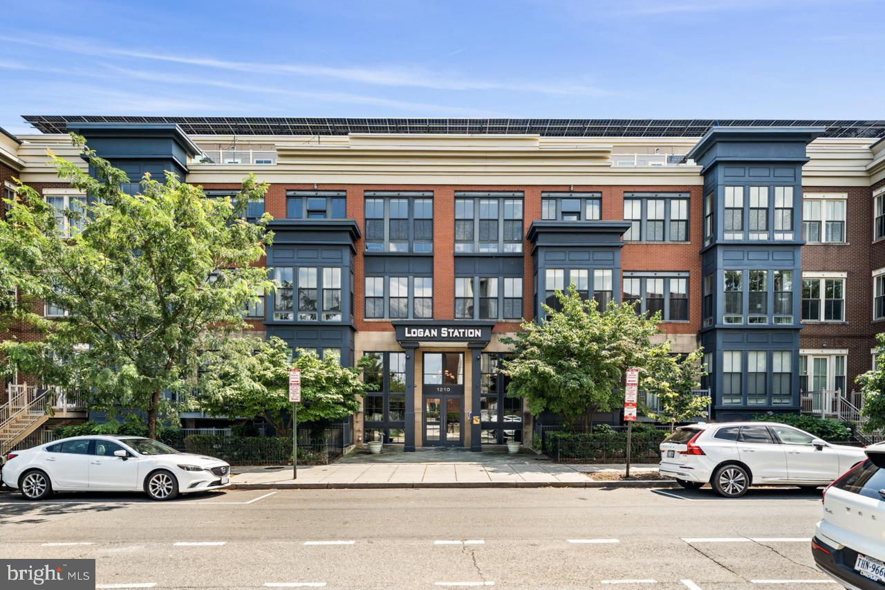 Welcome to this warm and inviting residence in the highly sought after Logan Station Condominium. This home boasts brand new wide plank wood floors and airy 10-foot ceilings that create an open and inviting atmosphere. The living and dining area seamlessly connects to a large kitchen, featuring stainless steel appliances, quartz countertops, and ample storage. An upgraded HVAC system ensures year-round comfort and efficiency. The home boasts expansive storage with one walk in closet, a large coat closet, a large secondary closet, and more! Enjoy abundant natural light from the south-facing private balcony. You'll be immersed in the vibrant atmosphere of DC, with beloved spots like Le Diplomate and a wide array of restaurants, bars, and shops. This ideal location offers coveted parking and a private outdoor space. This building is pet-friendly and includes the convenience of an elevator.
