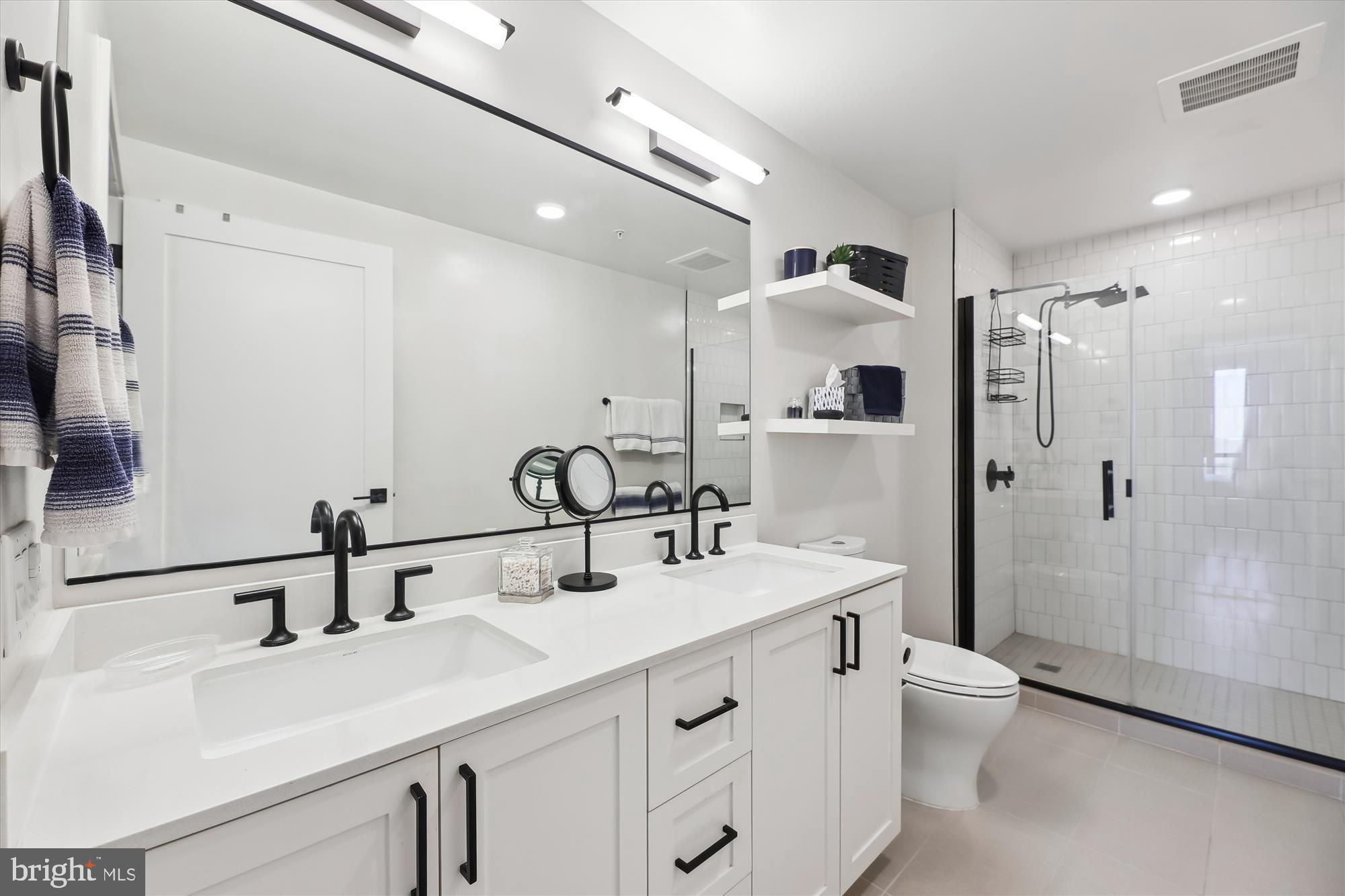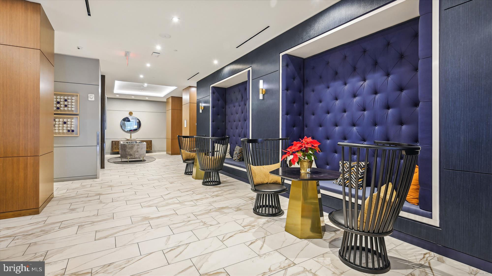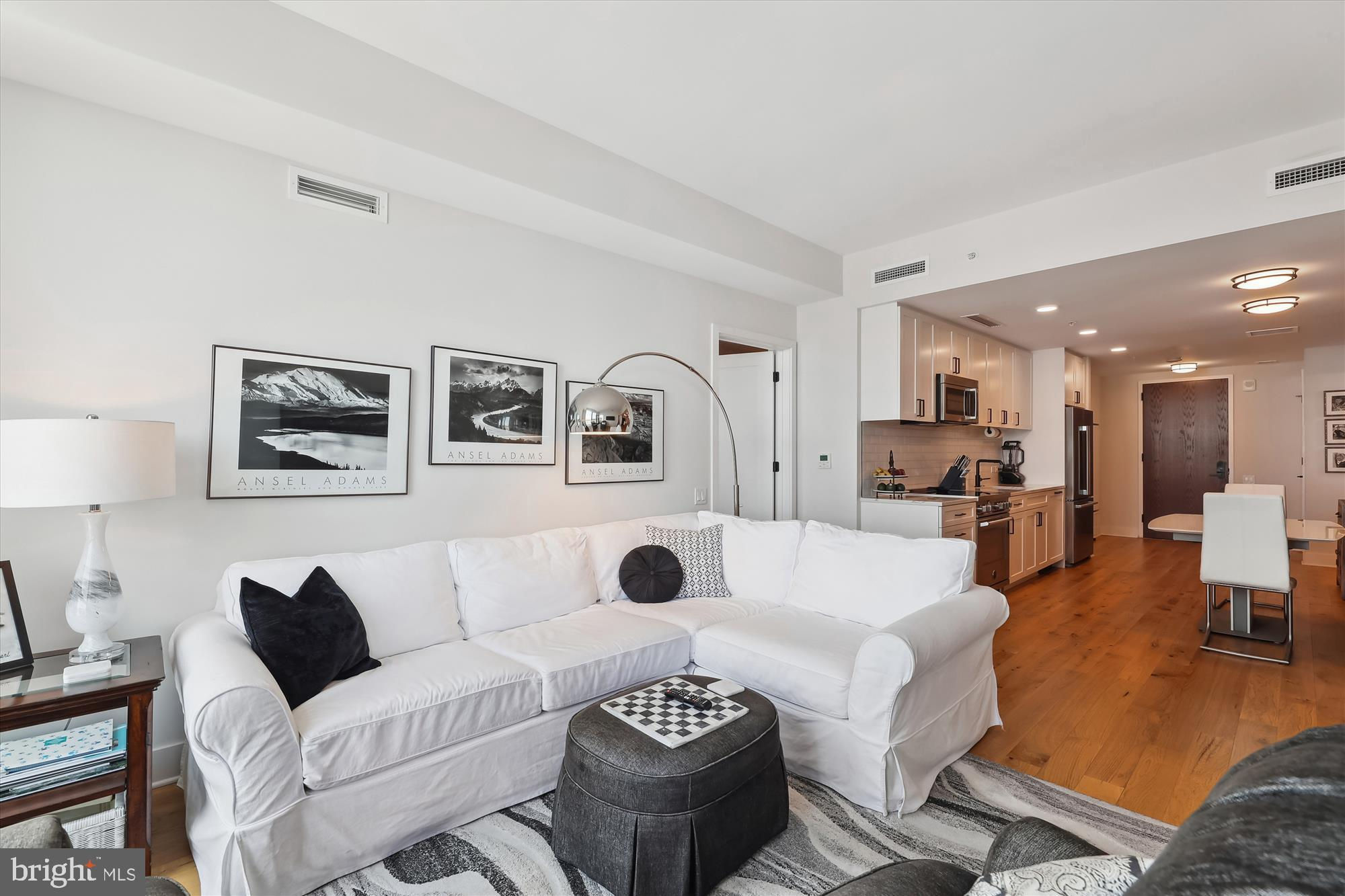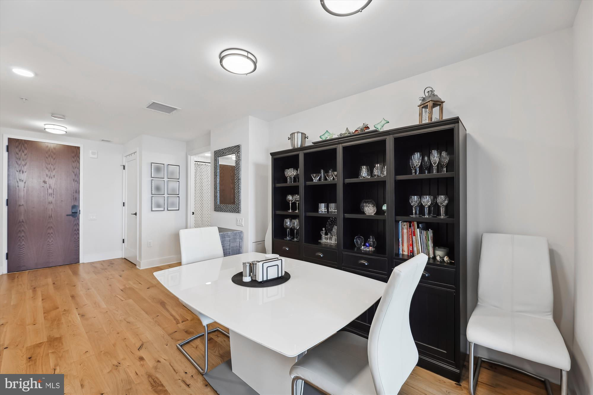 Step into The Avidian, nestled in the Navy Yard neighborhood, a harmonious blend of urban convenience and cozy community vibes. This two-bedroom, two-bath condo in the New Traditionalist color palette exudes modern elegance, featuring white cabinets with black handles and upgraded Bosch appliances. With slow-closed doors, a stackable Bosch washer and dryer, and custom closets in both spacious bedrooms, this unit is tailored for a sophisticated lifestyle. The building amenities include a rooftop pool, sundeck, lounge, fire pit, and grill dining tables, offering a luxurious retreat. On the lobby level, residents can unwind in the lounge with a café, billiards, and fireplace or stay active in the fitness center, Zen garden, or yoga deck. Pet owners will appreciate the convenience of the pet spa and dog play area. Commuting is a breeze with easy access to major transportation routes, including Interstate 395 and 695, and proximity to the Navy Yard ballpark on the green line. This 14-story building boasts high ceilings, 5-inch wide oak flooring, custom backsplash, under-cabinet lighting, and soft-close cabinetry. Enjoy the convenience of custom roller shades, a latch keyless entry system, and the option for an underground parking spot. Both bathrooms are generously sized, with the primary bath featuring a double vanity and an enormous shower stall, designed for comfort and luxury. Live in style at The Viviane, where every detail is crafted for refined urban living.