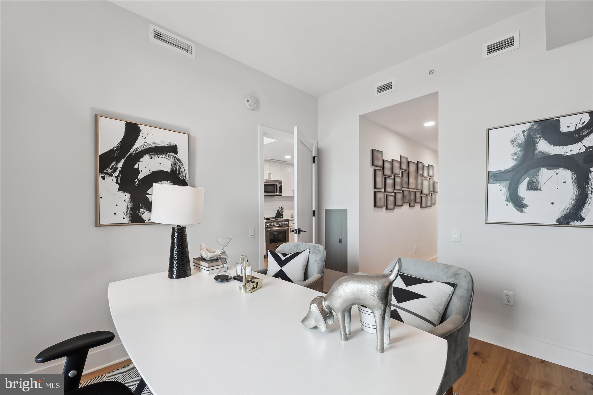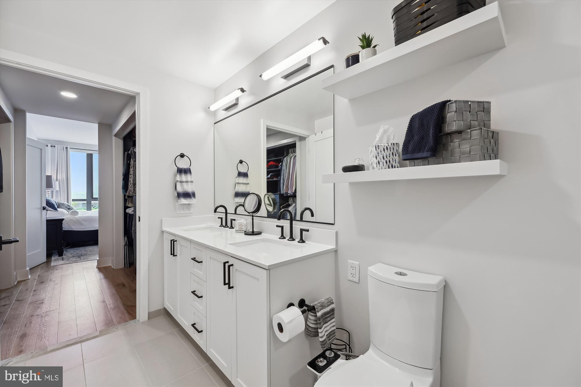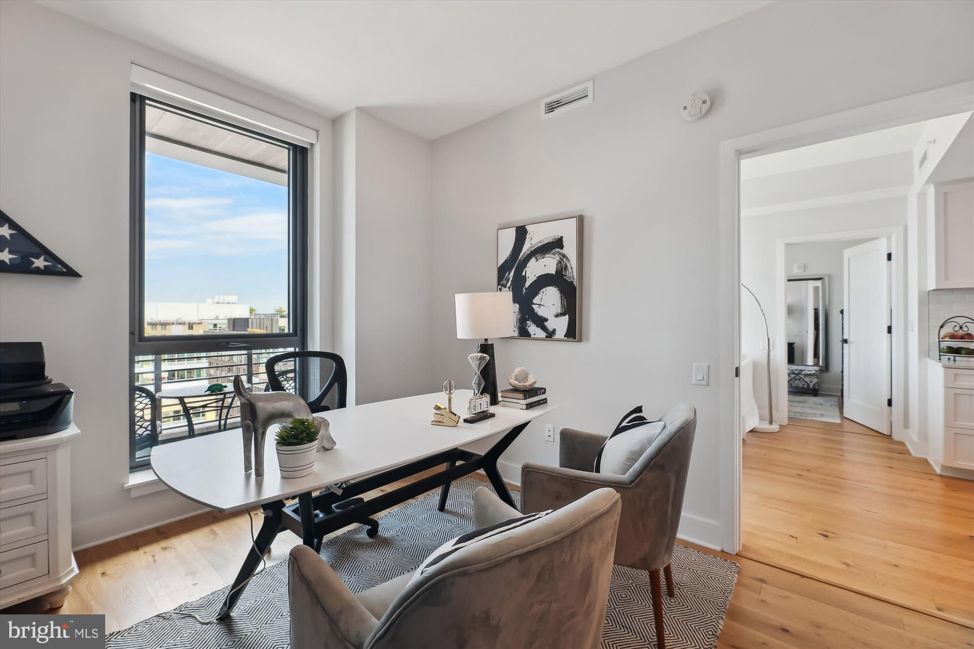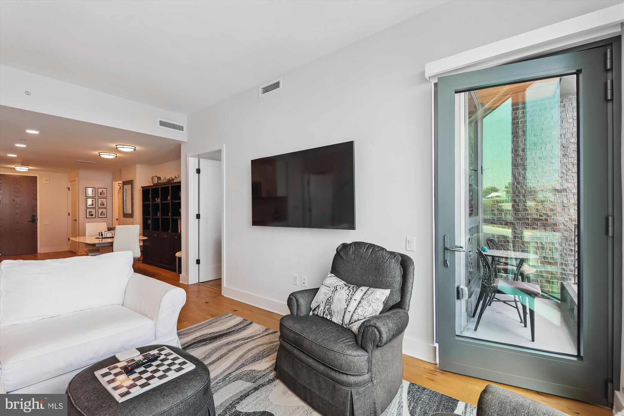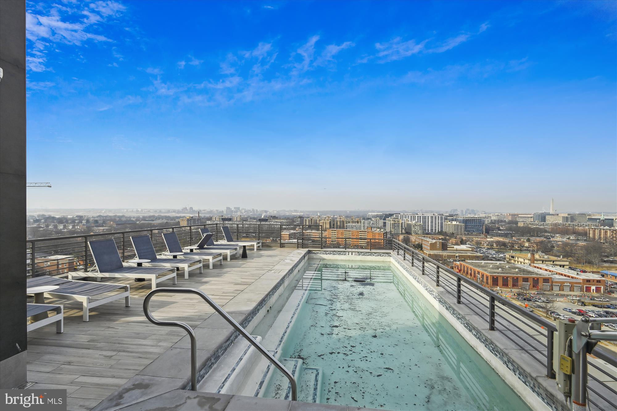 Step into The Avidian, nestled in the Navy Yard neighborhood, a harmonious blend of urban convenience and cozy community vibes. This two-bedroom, two-bath condo in the New Traditionalist color palette exudes modern elegance, featuring white cabinets with black handles and upgraded Bosch appliances. With slow-closed doors, a stackable Bosch washer and dryer, and custom closets in both spacious bedrooms, this unit is tailored for a sophisticated lifestyle. The building amenities include a rooftop pool, sundeck, lounge, fire pit, and grill dining tables, offering a luxurious retreat. On the lobby level, residents can unwind in the lounge with a café, billiards, and fireplace or stay active in the fitness center, Zen garden, or yoga deck. Pet owners will appreciate the convenience of the pet spa and dog play area. Commuting is a breeze with easy access to major transportation routes, including Interstate 395 and 695, and proximity to the Navy Yard ballpark on the green line. This 14-story building boasts high ceilings, 5-inch wide oak flooring, custom backsplash, under-cabinet lighting, and soft-close cabinetry. Enjoy the convenience of custom roller shades, a latch keyless entry system, and the option for an underground parking spot. Both bathrooms are generously sized, with the primary bath featuring a double vanity and an enormous shower stall, designed for comfort and luxury. Live in style at The Viviane, where every detail is crafted for refined urban living.
