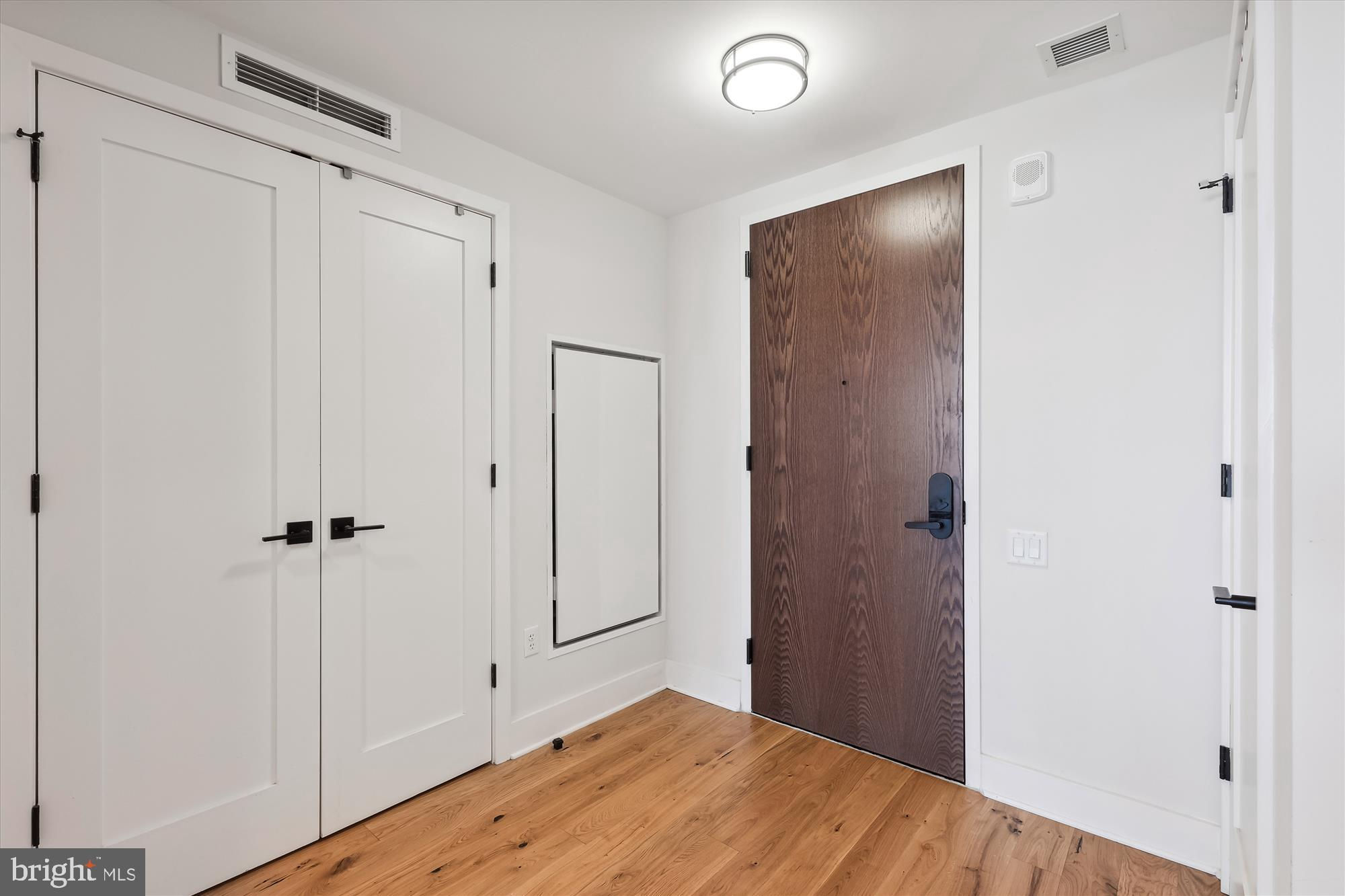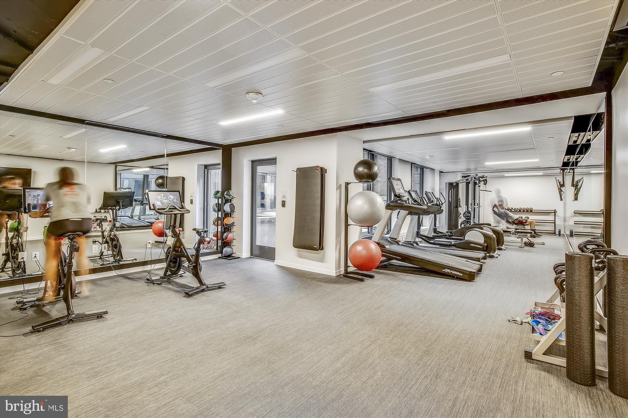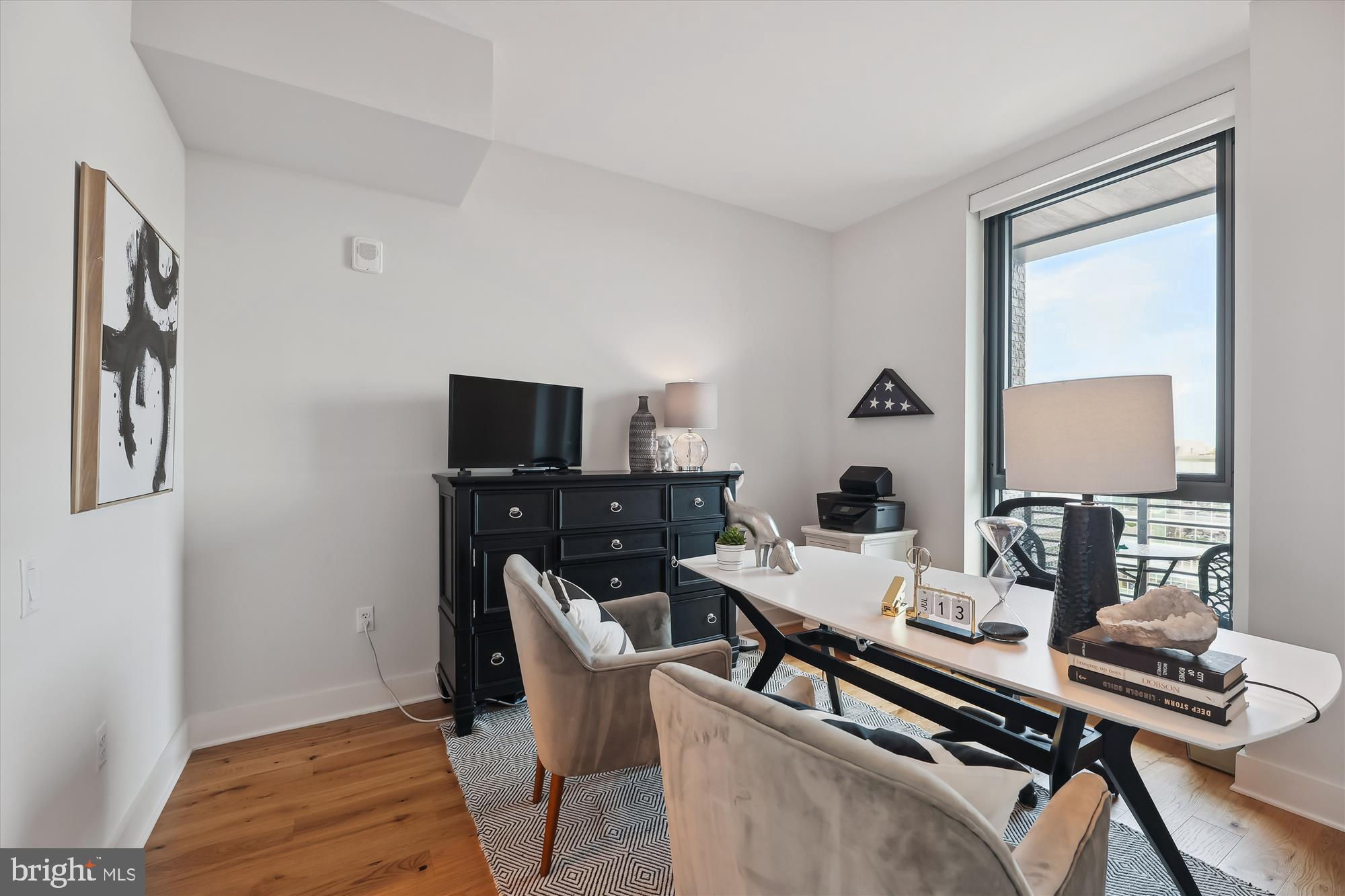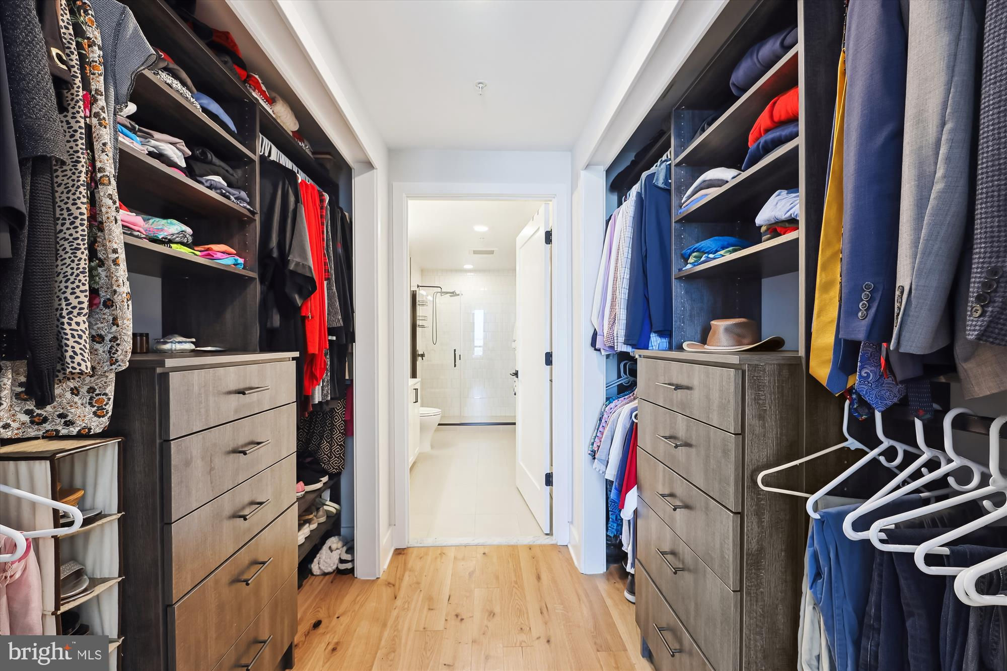Step into The Avidian, nestled in the Navy Yard neighborhood, a harmonious blend of urban convenience and cozy community vibes. This two-bedroom, two-bath condo in the New Traditionalist color palette exudes modern elegance, featuring white cabinets with black handles and upgraded Bosch appliances. With slow-closed doors, a stackable Bosch washer and dryer, and custom closets in both spacious bedrooms, this unit is tailored for a sophisticated lifestyle. The building amenities include a rooftop pool, sundeck, lounge, fire pit, and grill dining tables, offering a luxurious retreat. On the lobby level, residents can unwind in the lounge with a café, billiards, and fireplace or stay active in the fitness center, Zen garden, or yoga deck. Pet owners will appreciate the convenience of the pet spa and dog play area. Commuting is a breeze with easy access to major transportation routes, including Interstate 395 and 695, and proximity to the Navy Yard ballpark on the green line. This 14-story building boasts high ceilings, 5-inch wide oak flooring, custom backsplash, under-cabinet lighting, and soft-close cabinetry. Enjoy the convenience of custom roller shades, a latch keyless entry system, and the option for an underground parking spot. Both bathrooms are generously sized, with the primary bath featuring a double vanity and an enormous shower stall, designed for comfort and luxury. Live in style at The Viviane, where every detail is crafted for refined urban living.