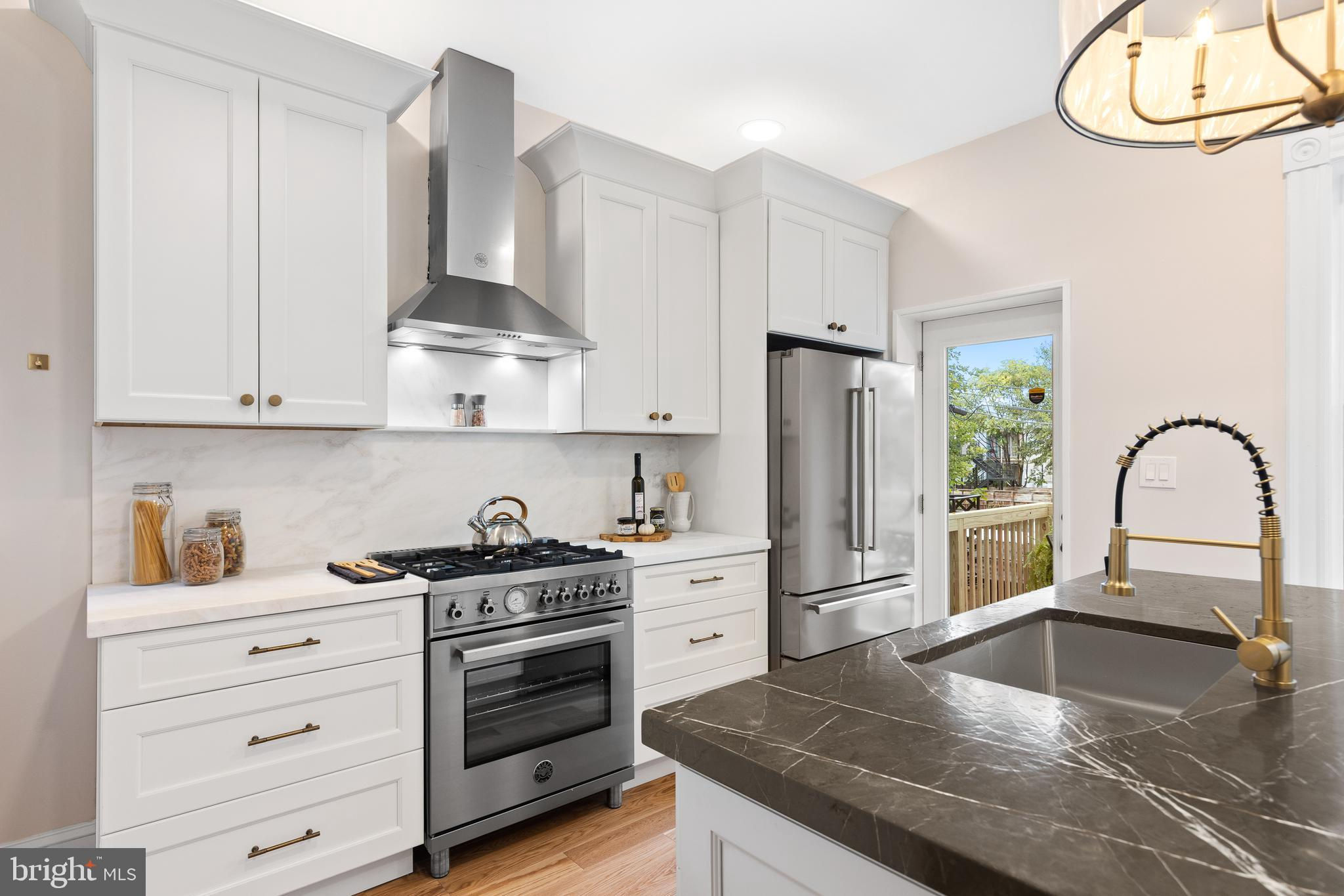 Step into timeless DC charm with this beautifully updated Victorian era row home at 1213 Otis Place. Blending historic character with modern updates, this move-in ready residence offers the best of both worlds — classic architectural details and thoughtfully designed spaces ideal for today’s lifestyle. Featuring four bedrooms and three and a half baths, this home spans three beautifully finished levels — highlighted by a striking 3 level turret with Southern exposure that floods the interior with natural light and architectural charm. Main level boasts breathtaking open space - offering a seamless flow for easy entertaining between the spacious living, dining and kitchen areas, complete with new hardwood floors, soaring ceilings, and designer finishes. The luxurious gourmet kitchen boasts Stainless Steel Italian Bertazzoni appliances, beautiful custom painted cabinetry with crown molding, calcutta bianco honed marble counters, built in pantry/china cabinet/dry bar area, stunning eat-in island with gorgeous Pietra Leather Marble counter and striking designer chandelier with direct access to the outdoor deck and rear yard — perfect for morning coffee, weekend brunches, evening cocktails and more with friends and family. Upstairs, boasts three nice sized bedrooms and beautifully updated full baths - Hall bath features large wet room with gorgeous tile and marble, claw tub and vanity. Expansive front bedroom flooded with natural light through the expansive windows, back bedroom with gorgeous ensuite bathroom, and additional bedroom. Large finished lower level with new LVP offers fabulous new full bathroom with basketweave marble tile and vanity, bedroom and flex space for rec room, game room, movie room, bar, and great for in-law suite/au pair or investment rental ADU with separate rear entrance. A private backyard completes the home with parking for two cars and brand-new fence and plantings. Nestled in one of DC’s most dynamic neighborhoods, this home places you at the heart of it all. Stroll to the beloved 11th Street strip, home to local favorites like The Coupe and Michelin-starred Queen’s English, or explore the iconic 14th Street Corridor with its boutique dining, indie shops, and vibrant nightlife. Surrounded by green escapes like Upshur Park, Twin Oaks Garden, Piney Branch Park, and the National Zoo, you’ll enjoy nature without leaving the city. With two nearby Metro stops, major bus lines, and commuter routes, getting to downtown DC, Georgetown, or Adams Morgan is effortless. Plus, you’re just minutes from premier medical centers and public transit—ideal for professionals, families, and anyone craving convenience with character. This is more than a location—it’s a lifestyle. Stop by and visit us SUNDAY 10/12/25, 2-4PM for an OPEN HOUSE!