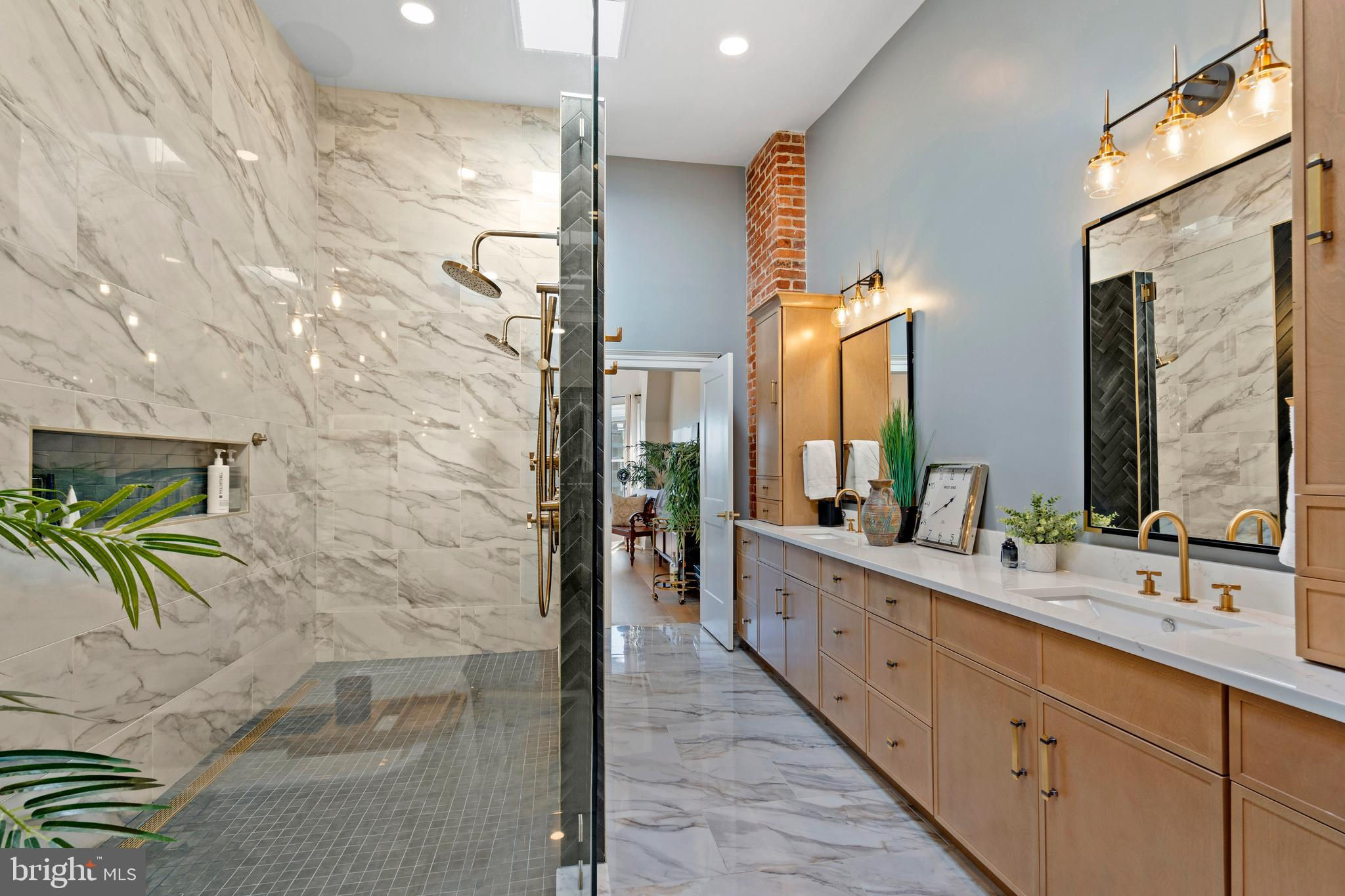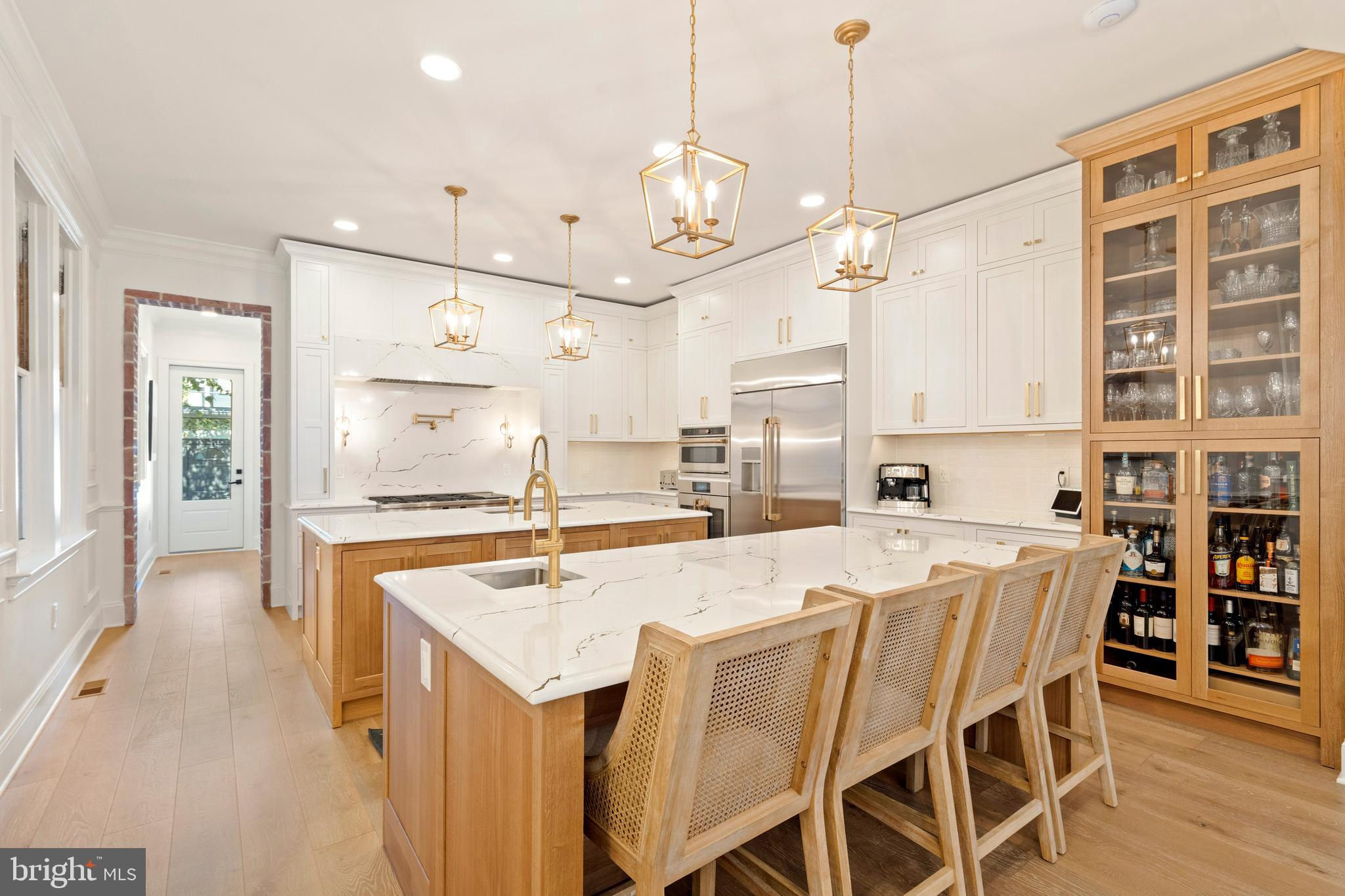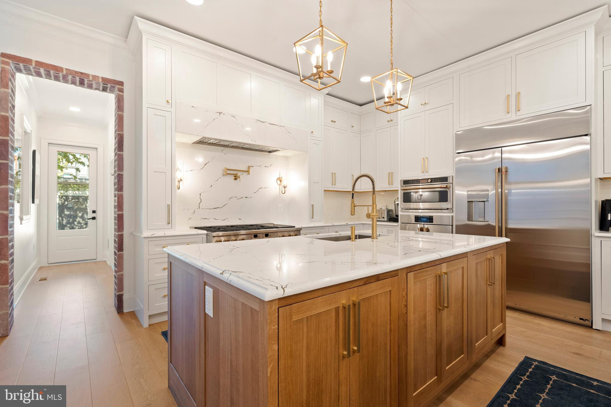 An Extraordinary Grand Victorian in the Heart of Columbia Heights could be yours. Welcome to this truly exceptional Grand Victorian townhouse, a seamless fusion of historic elegance and contemporary luxury, nestled in vibrant Columbia Heights/ U Street. Spanning four meticulously designed levels, this stately residence has been transformed by its architect-inspired owners into a one-of-a-kind custom home. From the moment you enter, the attention to detail is evident. The heart of the home is a Chef’s Gourmet Kitchen—an entertainer’s dream—featuring dual 10-foot islands, matching Cafe Commercial stainless steel appliances which include a 6-burner gas cooktop with a powerful canopy hood. There is an abundance of storage within custom shaker cabinetry topped with stunning Calcutta Quartz counters from Cambria (the Highest grade was installed and has a lifetime warranty). Though this early 20th-century gem already had strong architectural bones, the current owners envisioned more than a renovation—they undertook a full-scale transformation. What began as a kitchen and bathroom update evolved into a comprehensive reimagining, including brand new flooring throughout entire home, NEW HVAC/Central Heating system (previously radiator heating) drywall, electrical systems, staircases, and ceilings. Recessed and statement lighting fixtures have been installed throughout to bring warmth and sophistication to every room, especially the oversized bedrooms. Original 1910 and updated wall moldings accentuate the soaring ceilings on each level, while rich textures and bold colors define the ultra-luxurious bathrooms. The home retains its original character with preserved wood-burning fireplaces, hallway entry mirrors, and stained glass in the living and dining rooms (Restoration Hardware chandeliers will convey), blending old-world charm with modern flair. Let's not forget the stunning wide plank engineered white oak flooring that has been installed throughout this fabulous home. Upstairs, a former bedroom has been reconfigured into a lavish walk-in closet for the primary suite, leading to what can only be described as a “bathroom of the century,” complete with leather-embossed wall finishes for an unforgettable spa-like experience. Seeking serenity or a change of pace? A private, screened-in rooftop deck with fabulous views awaits just beyond the home office or guest suite—your perfect hideaway above the city. The fully finished basement includes its own private entrance, offering endless flexibility as a guest suite, in-law apartment, or potential income-generating unit.