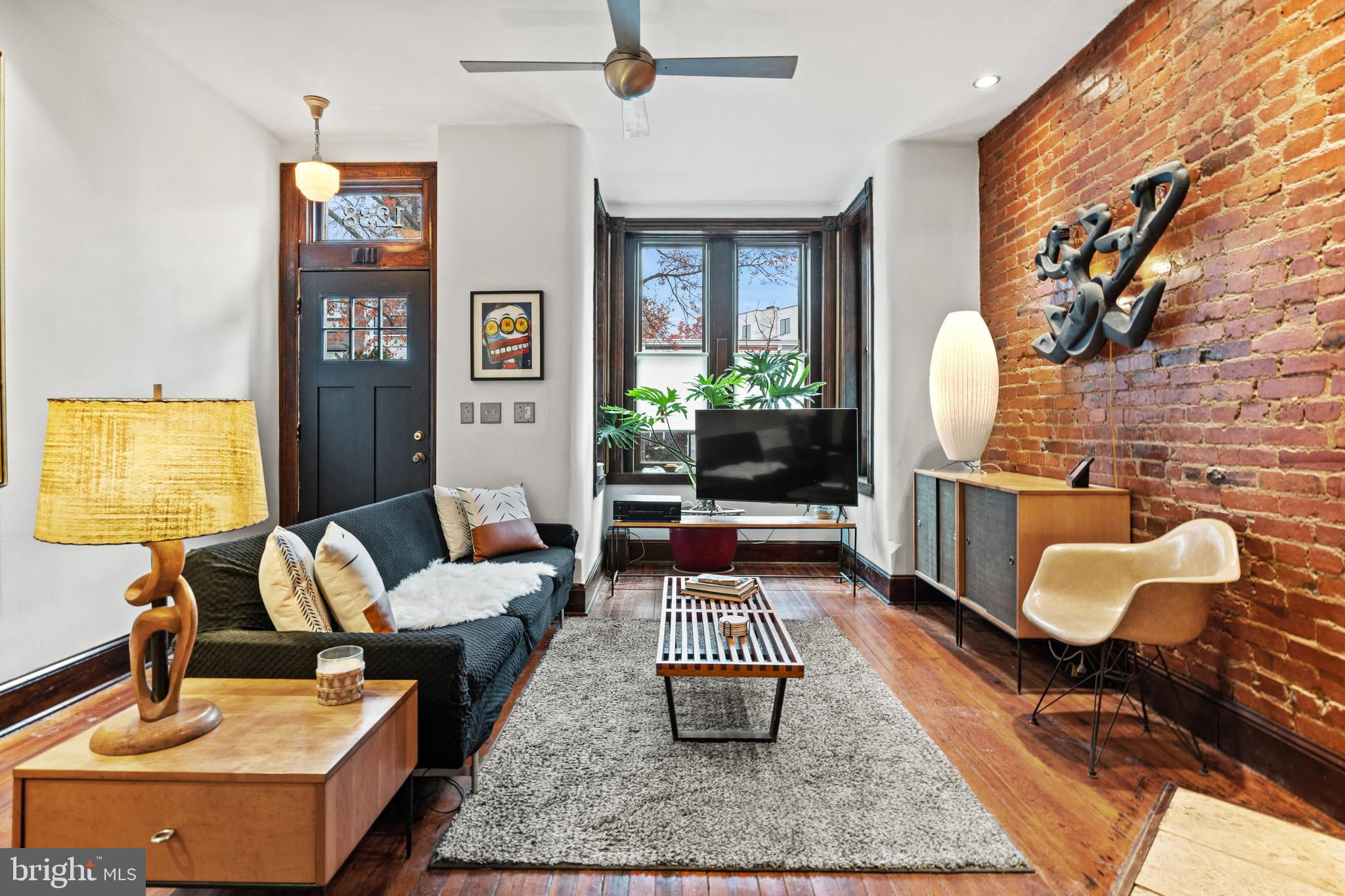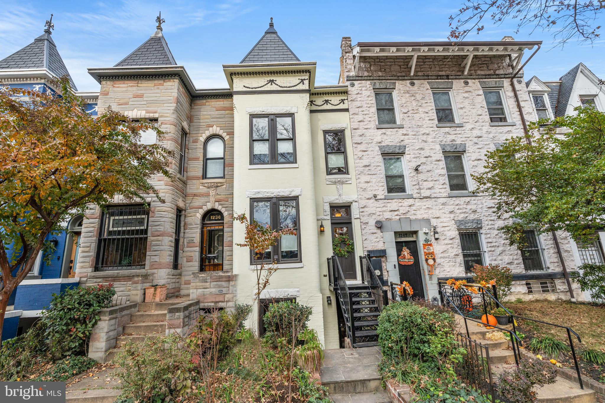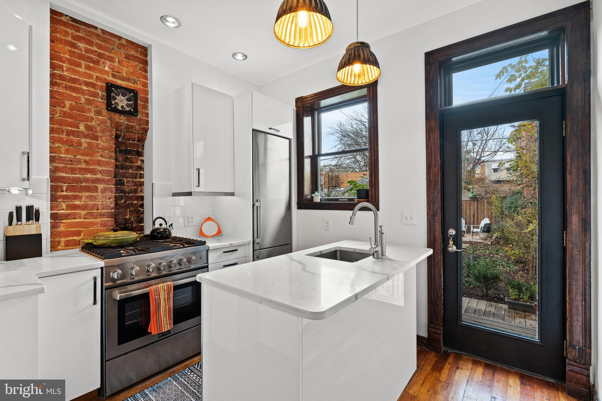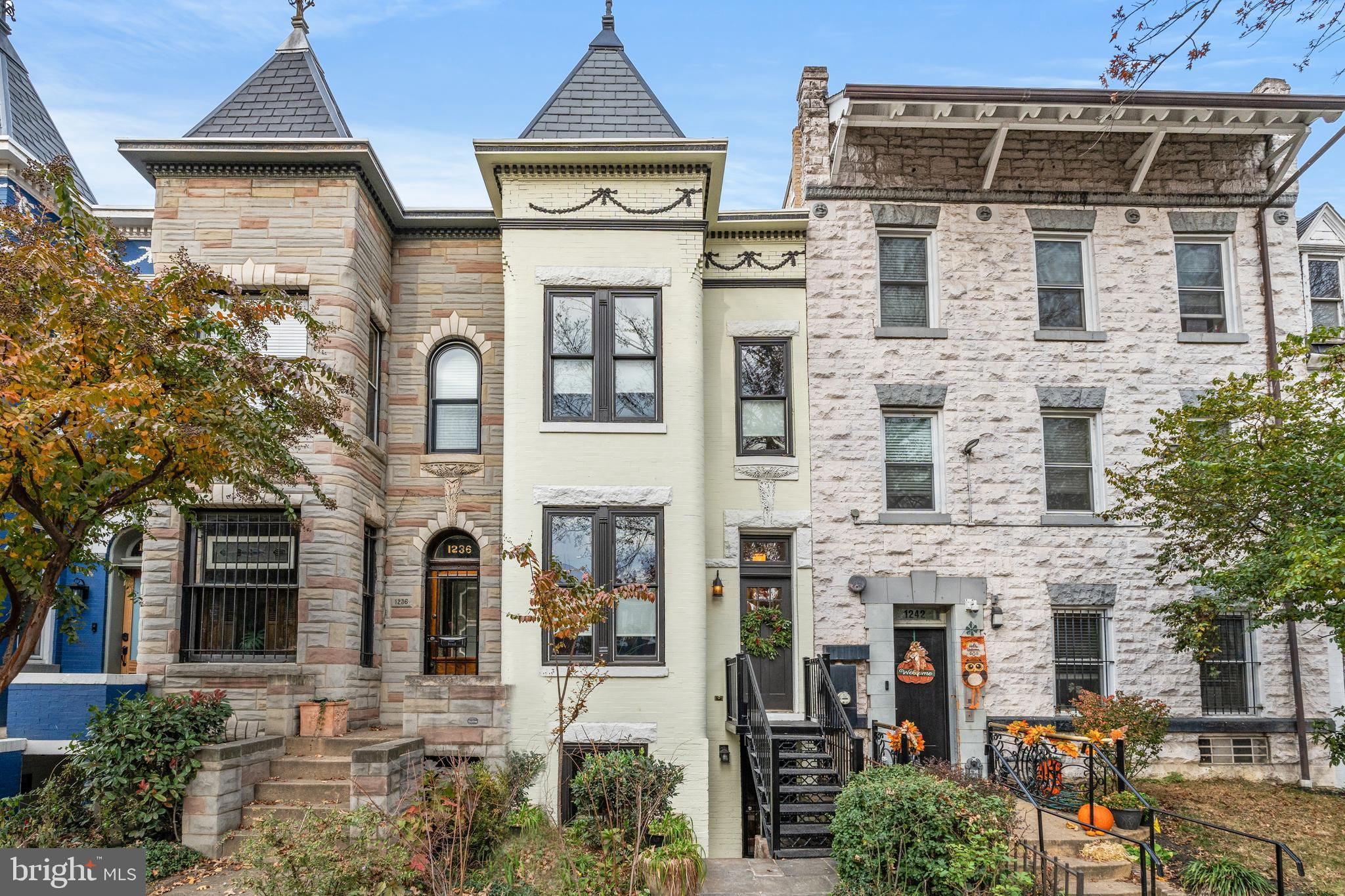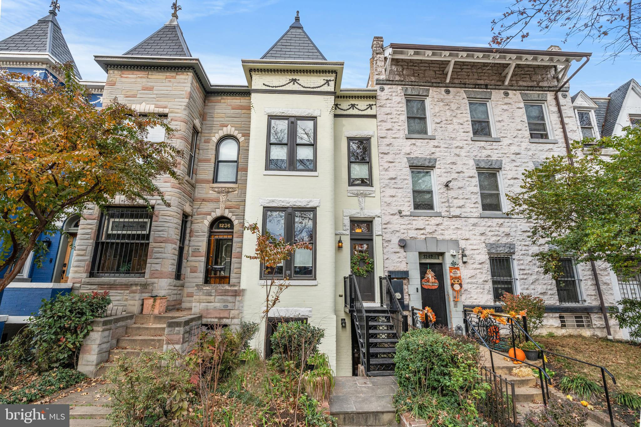 This house has been lovingly taken care of & restored over 22 years w/this owner. The raised main level accessed by steel front steps provides the house w/extra privacy. The house features the original, restored hardwood floors. The seller also restored the chestnut & old growth Southern pine trim in the house back to its original unpainted beauty. The newel post on the staircase was reclaimed from a mansion in Philadelphia. The light globe fixtures in the foyer & hallway half bath came from a drug store that is over 100 years old. Entering the living room, you see the original, gorgeous exposed-brick wall. LED or incandescent recessed lights on dimmers highlight the gas fireplace in the raised brick hearth. Dimmers have been added throughout the house that allows you to tailor the light to your mood. The four ceiling fans are of mid-century design & bring a nice mix of new with the old. There is plenty of light & room for entertaining your friends & family. The separate dining room features a gorgeous brick wall & George Nelson mid-century ceiling bubble lamp. The kitchen has been completely renovated w/quartz countertops, white cabinets, Italian gas stove, German Liebherr refrigerator & beautifully restored pine hardwood floors. While the kitchen is new & modern, it also features original & period details like the exposed brick chimney & two hanging kitchen lights above the island which are solid brass from a turn-of-the-century railroad station. The house features high ceilings w/main level at 9’5” and upper level at 8’11.” The large back yard is fully enclosed w/a horizontal wood fence & features both a deck & separate fire pit area. A sliding wooden gate completely separates the two-car parking from the entertaining area & large garden. The backyard has extensive perennial landscaping, a peach tree (which produced over one hundred peaches in 2023), a blackberry bush & subtle exterior lighting. There is also an outdoor dog wash station for your furry friends! The 8’ commercial garage door provides secure off-street parking. Up to three cars can be parked off-street by utilizing the graveled fire pit area if needed. The lower level has both front & rear access! The space features an updated in-law suite with a bedroom and full bathroom. The laundry is also located on this level. The upstairs features two large bedrooms. The front bedroom has a bump out where the turret is & would make for a great reading nook! The radiator in this front bedroom is not functional & has been left as a reminder of the house’s original aesthetic. The full bathroom upstairs is large & elegant. There are several skylights in this home. The skylight over the stairs features a stained-glass window surrounded by restored wood moldings. The neighborhood features Queen Vic, Maketto, Granville Moore's & Big Board. Close to Gallaudet University, Whole Foods & Union Market. The Noma-Gallaudet metro stop is 1 mi from the house. Local shopping & restaurants include Aldi, Daru, Toki Underground, Bronze & Pursuit Wine Bar. Improvements: 1. Mini-splits, 2023. All are Bluetooth and remote-operated and can be operated individually. 2. New garage door components and motor, 2023. 3. New shades, 2023. 4. New appliances, 2023 – Liebherr fridge, Verona stove made in Italy. 5. New high tech roof including turret, 2021. 6. Washer and dryer new, 2018. 7. All smoke alarms are hardwired. 8. All three chimneys are tile lined and were rebuilt, 2010. 9. Water heater, 2008 – 40 gal GE Profile. 10. R30 insulation throughout attic, 2005. 11.