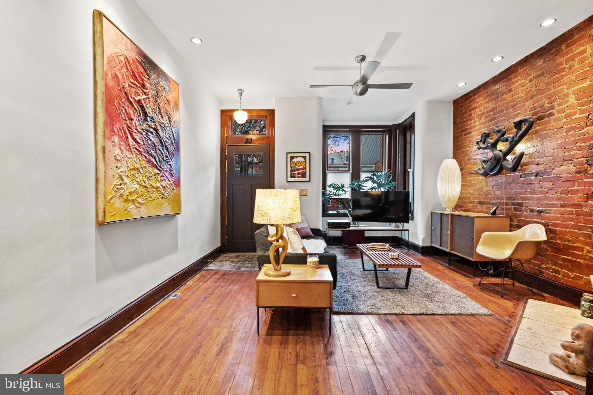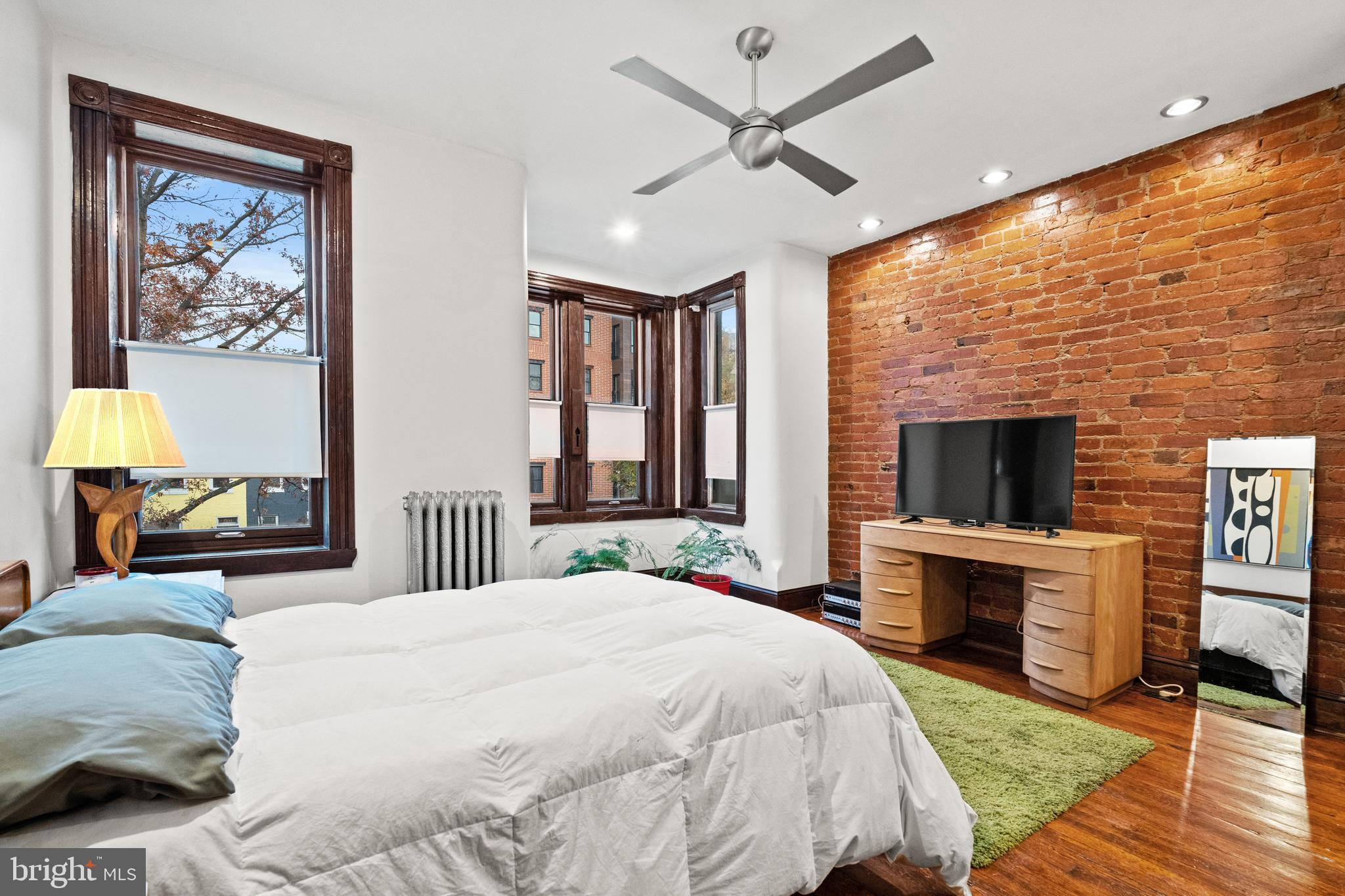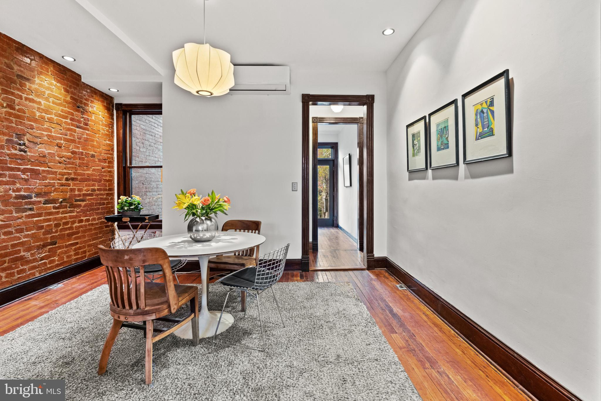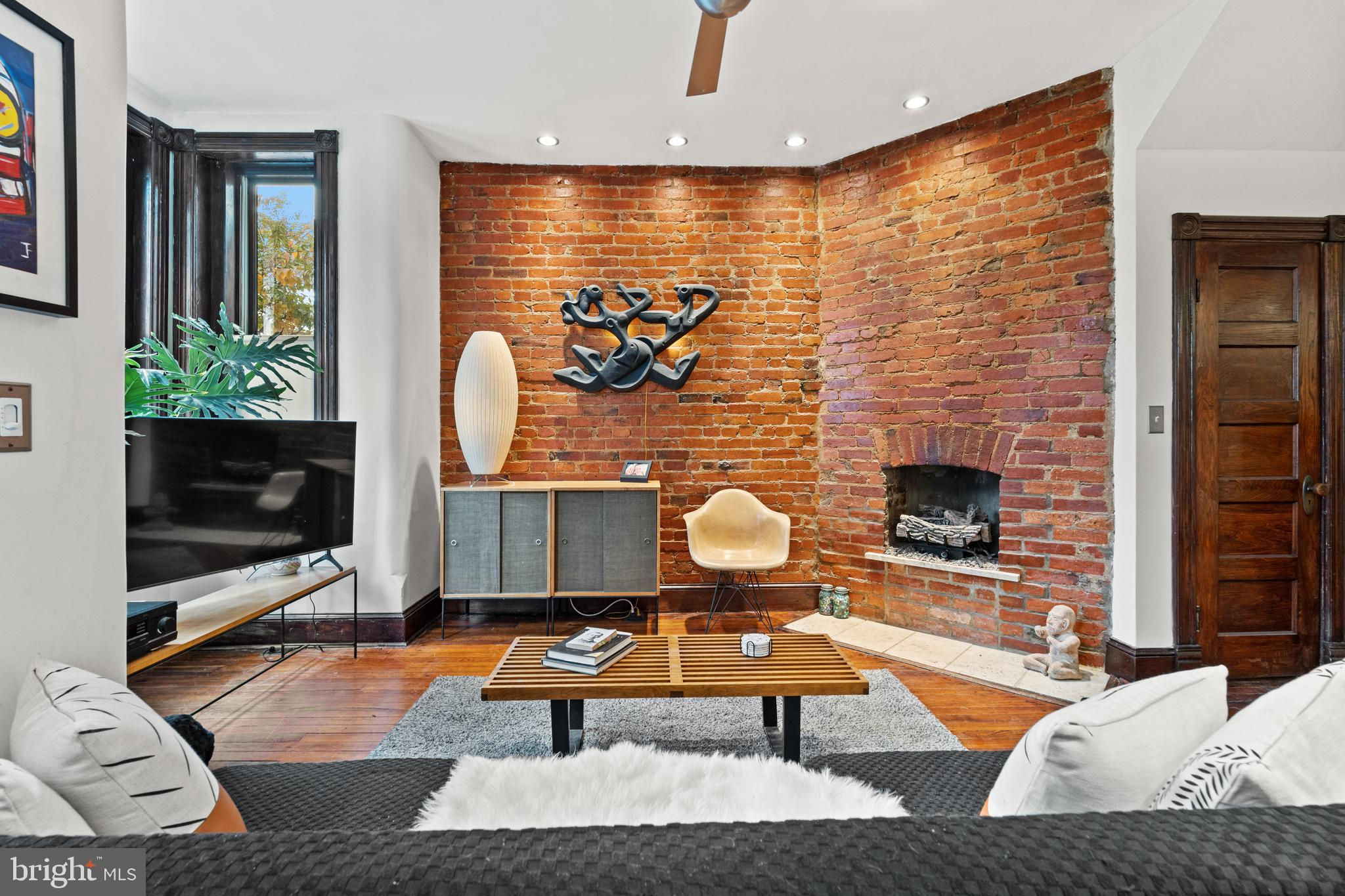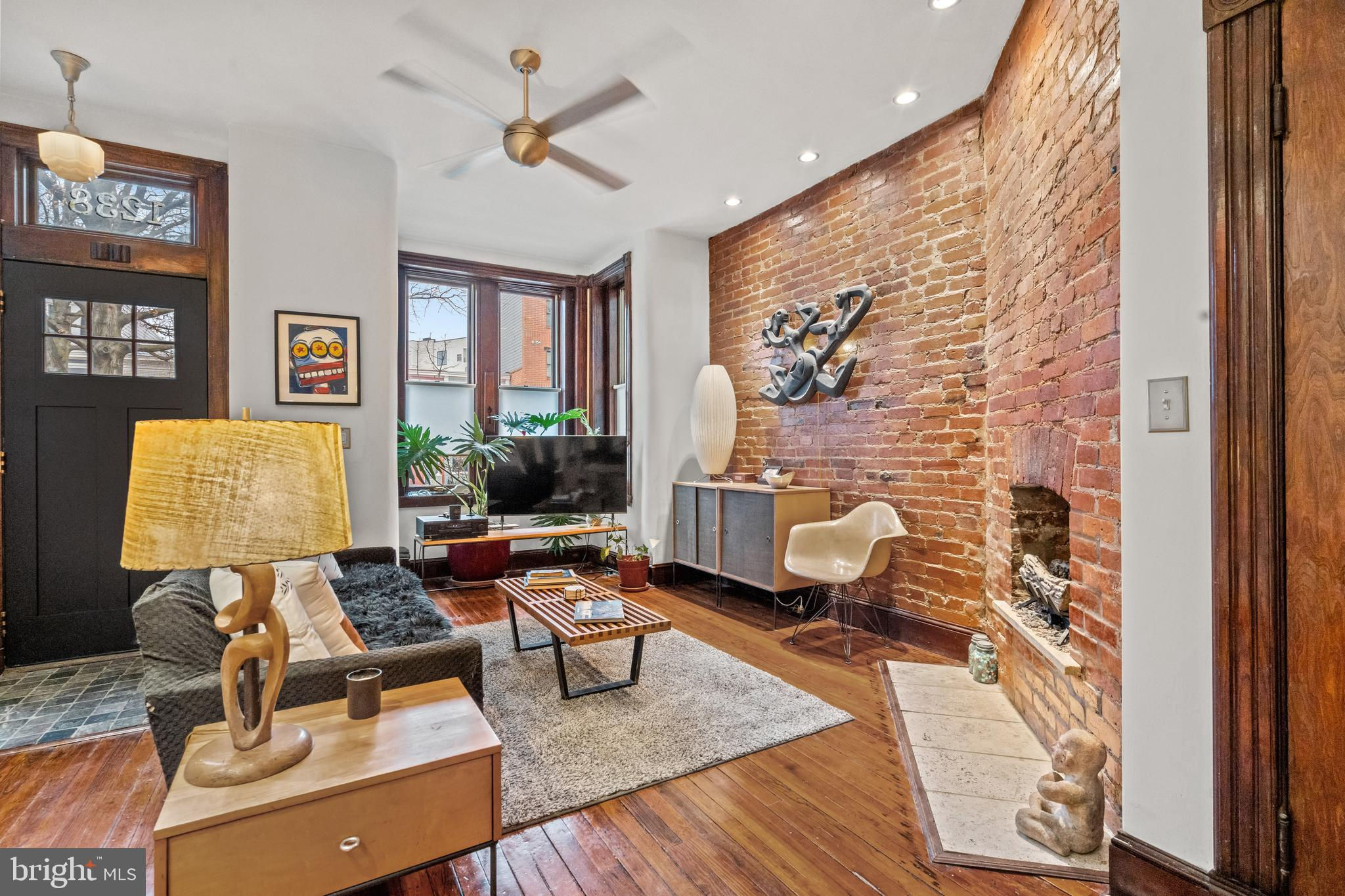 This house has been lovingly taken care of & restored over 22 years w/this owner. The raised main level accessed by steel front steps provides the house w/extra privacy. The house features the original, restored hardwood floors. The seller also restored the chestnut & old growth Southern pine trim in the house back to its original unpainted beauty. The newel post on the staircase was reclaimed from a mansion in Philadelphia. The light globe fixtures in the foyer & hallway half bath came from a drug store that is over 100 years old. Entering the living room, you see the original, gorgeous exposed-brick wall. LED or incandescent recessed lights on dimmers highlight the gas fireplace in the raised brick hearth. Dimmers have been added throughout the house that allows you to tailor the light to your mood. The four ceiling fans are of mid-century design & bring a nice mix of new with the old. There is plenty of light & room for entertaining your friends & family. The separate dining room features a gorgeous brick wall & George Nelson mid-century ceiling bubble lamp. The kitchen has been completely renovated w/quartz countertops, white cabinets, Italian gas stove, German Liebherr refrigerator & beautifully restored pine hardwood floors. While the kitchen is new & modern, it also features original & period details like the exposed brick chimney & two hanging kitchen lights above the island which are solid brass from a turn-of-the-century railroad station. The house features high ceilings w/main level at 9’5” and upper level at 8’11.” The large back yard is fully enclosed w/a horizontal wood fence & features both a deck & separate fire pit area. A sliding wooden gate completely separates the two-car parking from the entertaining area & large garden. The backyard has extensive perennial landscaping, a peach tree (which produced over one hundred peaches in 2023), a blackberry bush & subtle exterior lighting. There is also an outdoor dog wash station for your furry friends! The 8’ commercial garage door provides secure off-street parking. Up to three cars can be parked off-street by utilizing the graveled fire pit area if needed. The lower level has both front & rear access! The space features an updated in-law suite with a bedroom and full bathroom. The laundry is also located on this level. The upstairs features two large bedrooms. The front bedroom has a bump out where the turret is & would make for a great reading nook! The radiator in this front bedroom is not functional & has been left as a reminder of the house’s original aesthetic. The full bathroom upstairs is large & elegant. There are several skylights in this home. The skylight over the stairs features a stained-glass window surrounded by restored wood moldings. The neighborhood features Queen Vic, Maketto, Granville Moore's & Big Board. Close to Gallaudet University, Whole Foods & Union Market. The Noma-Gallaudet metro stop is 1 mi from the house. Local shopping & restaurants include Aldi, Daru, Toki Underground, Bronze & Pursuit Wine Bar. Improvements: 1. Mini-splits, 2023. All are Bluetooth and remote-operated and can be operated individually. 2. New garage door components and motor, 2023. 3. New shades, 2023. 4. New appliances, 2023 – Liebherr fridge, Verona stove made in Italy. 5. New high tech roof including turret, 2021. 6. Washer and dryer new, 2018. 7. All smoke alarms are hardwired. 8. All three chimneys are tile lined and were rebuilt, 2010. 9. Water heater, 2008 – 40 gal GE Profile. 10. R30 insulation throughout attic, 2005. 11.