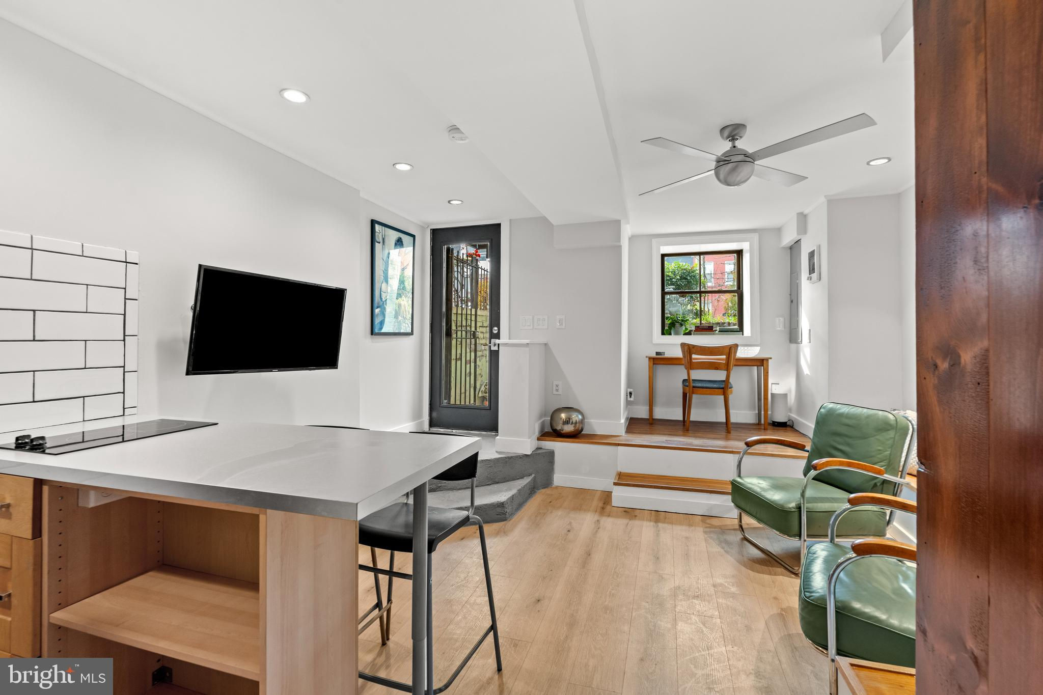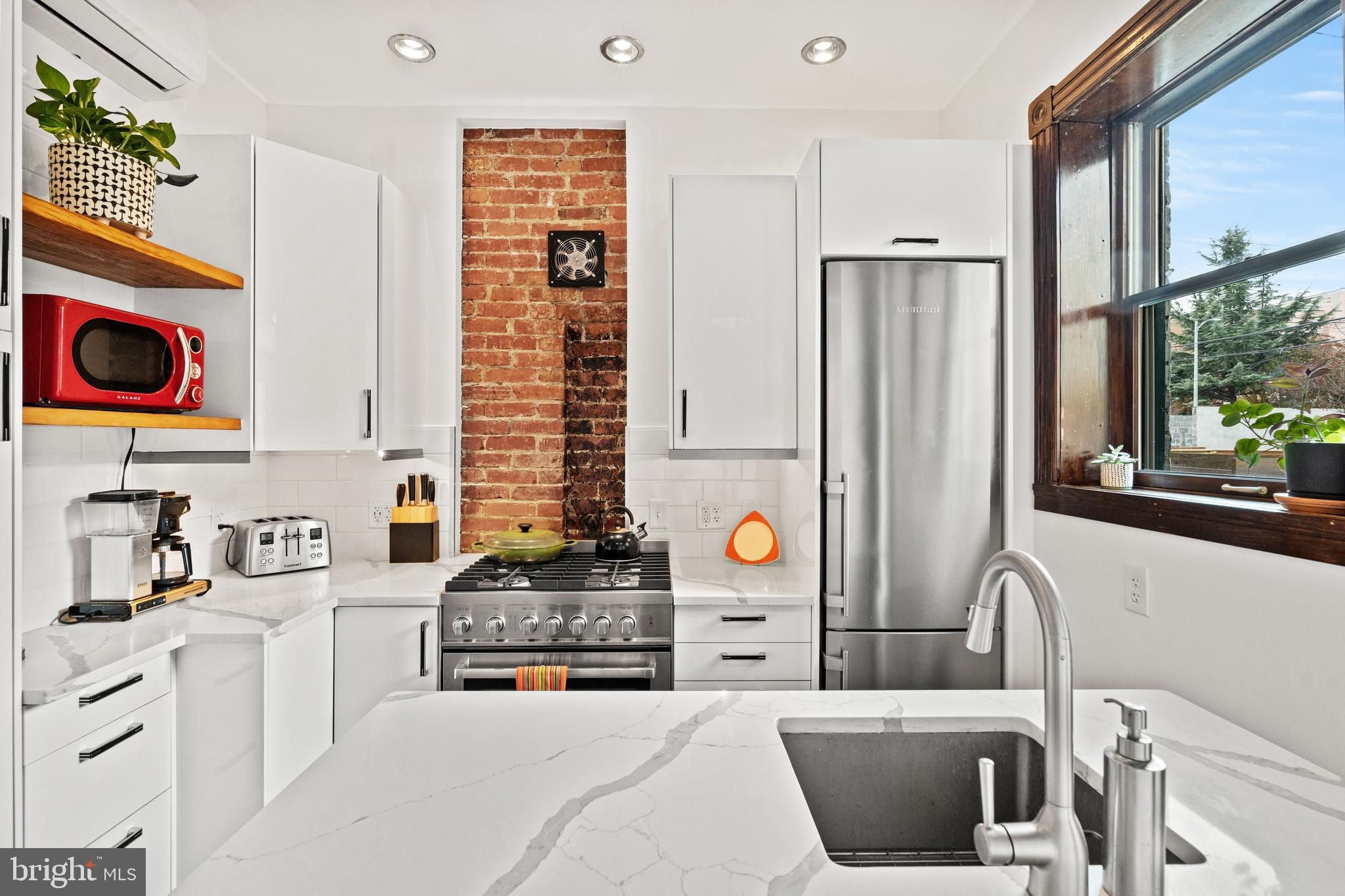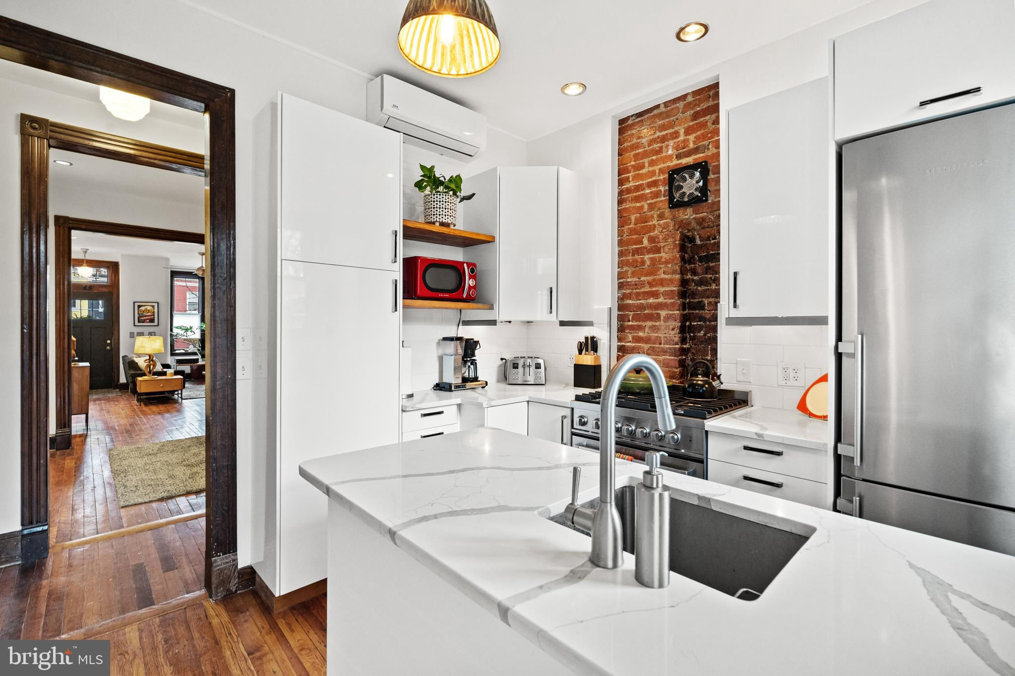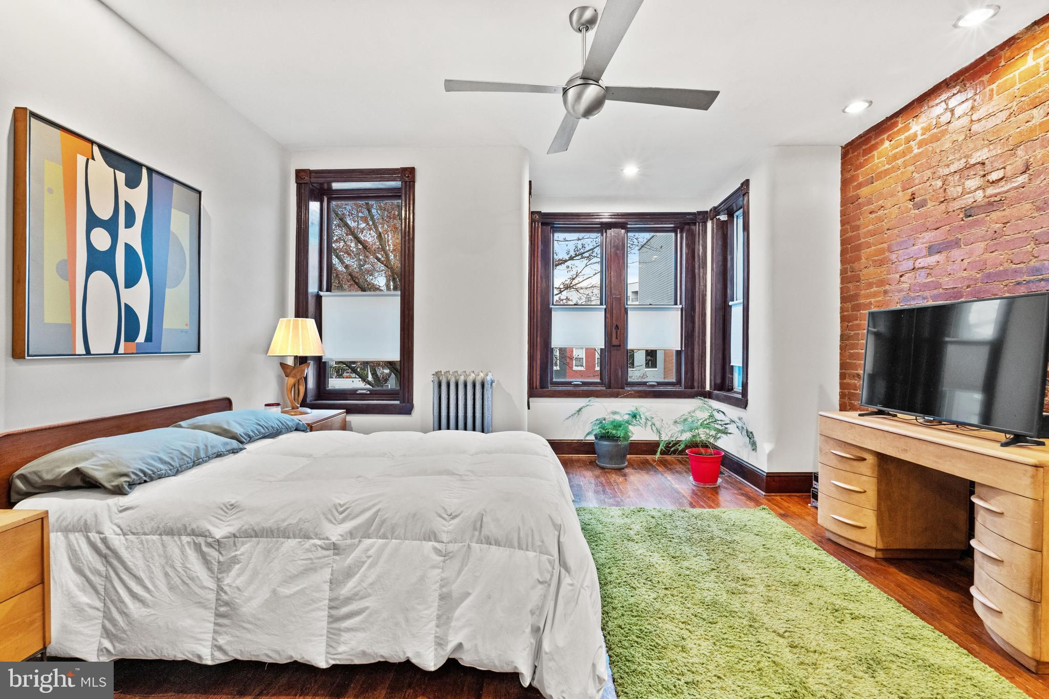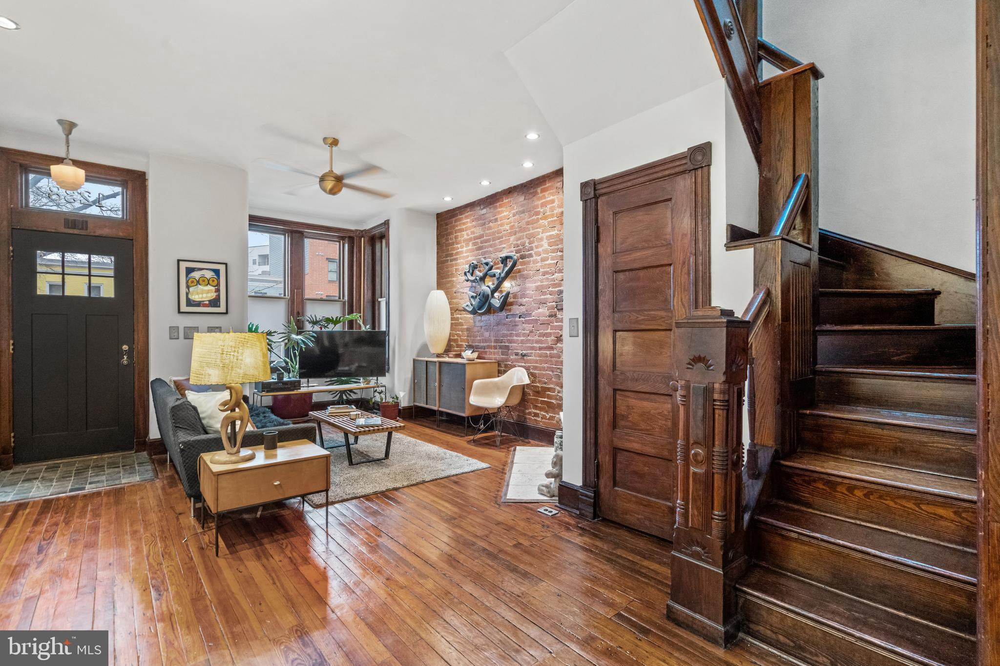 This house has been lovingly taken care of & restored over 22 years w/this owner. The raised main level accessed by steel front steps provides the house w/extra privacy. The house features the original, restored hardwood floors. The seller also restored the chestnut & old growth Southern pine trim in the house back to its original unpainted beauty. The newel post on the staircase was reclaimed from a mansion in Philadelphia. The light globe fixtures in the foyer & hallway half bath came from a drug store that is over 100 years old. Entering the living room, you see the original, gorgeous exposed-brick wall. LED or incandescent recessed lights on dimmers highlight the gas fireplace in the raised brick hearth. Dimmers have been added throughout the house that allows you to tailor the light to your mood. The four ceiling fans are of mid-century design & bring a nice mix of new with the old. There is plenty of light & room for entertaining your friends & family. The separate dining room features a gorgeous brick wall & George Nelson mid-century ceiling bubble lamp. The kitchen has been completely renovated w/quartz countertops, white cabinets, Italian gas stove, German Liebherr refrigerator & beautifully restored pine hardwood floors. While the kitchen is new & modern, it also features original & period details like the exposed brick chimney & two hanging kitchen lights above the island which are solid brass from a turn-of-the-century railroad station. The house features high ceilings w/main level at 9’5” and upper level at 8’11.” The large back yard is fully enclosed w/a horizontal wood fence & features both a deck & separate fire pit area. A sliding wooden gate completely separates the two-car parking from the entertaining area & large garden. The backyard has extensive perennial landscaping, a peach tree (which produced over one hundred peaches in 2023), a blackberry bush & subtle exterior lighting. There is also an outdoor dog wash station for your furry friends! The 8’ commercial garage door provides secure off-street parking. Up to three cars can be parked off-street by utilizing the graveled fire pit area if needed. The lower level has both front & rear access! The space features an updated in-law suite with a bedroom and full bathroom. The laundry is also located on this level. The upstairs features two large bedrooms. The front bedroom has a bump out where the turret is & would make for a great reading nook! The radiator in this front bedroom is not functional & has been left as a reminder of the house’s original aesthetic. The full bathroom upstairs is large & elegant. There are several skylights in this home. The skylight over the stairs features a stained-glass window surrounded by restored wood moldings. The neighborhood features Queen Vic, Maketto, Granville Moore's & Big Board. Close to Gallaudet University, Whole Foods & Union Market. The Noma-Gallaudet metro stop is 1 mi from the house. Local shopping & restaurants include Aldi, Daru, Toki Underground, Bronze & Pursuit Wine Bar. Improvements: 1. Mini-splits, 2023. All are Bluetooth and remote-operated and can be operated individually. 2. New garage door components and motor, 2023. 3. New shades, 2023. 4. New appliances, 2023 – Liebherr fridge, Verona stove made in Italy. 5. New high tech roof including turret, 2021. 6. Washer and dryer new, 2018. 7. All smoke alarms are hardwired. 8. All three chimneys are tile lined and were rebuilt, 2010. 9. Water heater, 2008 – 40 gal GE Profile. 10. R30 insulation throughout attic, 2005. 11.