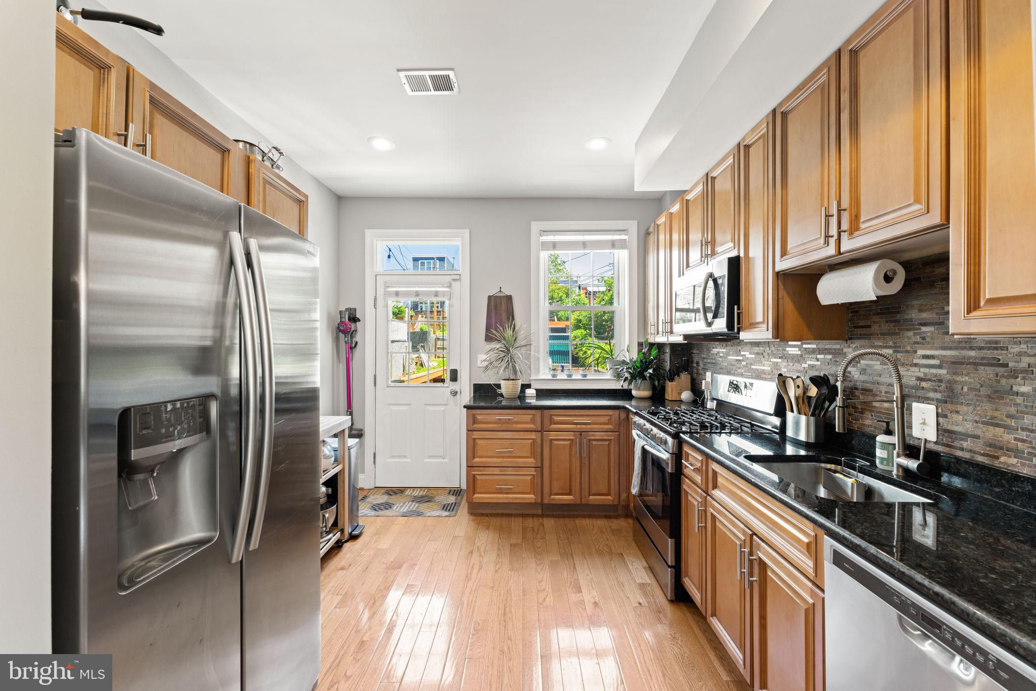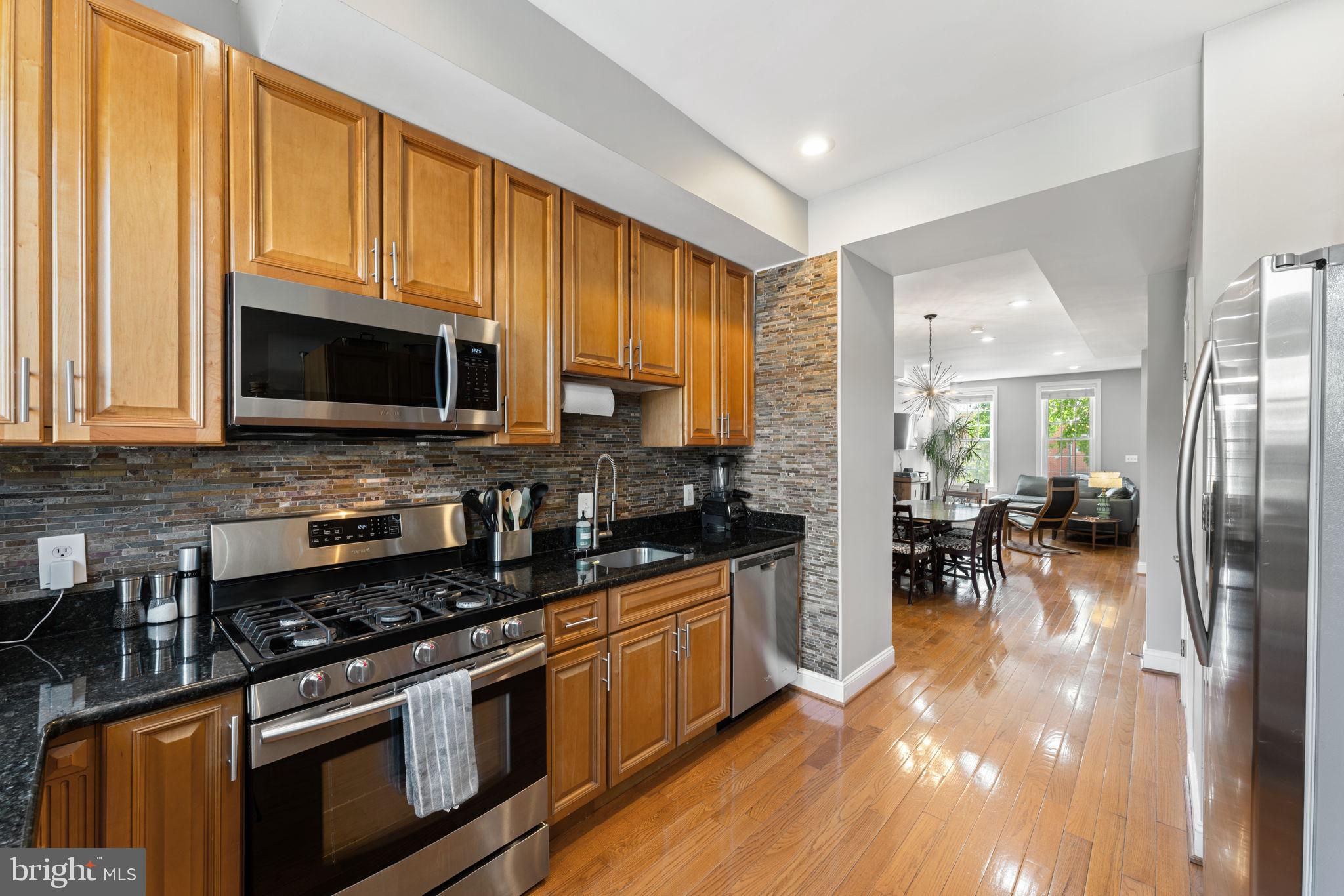 Welcome to this beautiful 4-bedroom, 3.5-bathroom townhome! The house boasts an airy open floor plan with 9-foot ceilings and gleaming hardwood floors (spread across an estimated 2070 square feet of finished living space!). Other key features include: recessed lighting, a main level powder room & generous windows that flood the space with natural light. The expansive kitchen showcases granite countertops, stainless steel appliance & gas cooking, while the backyard retreat offers a deep lot with a deck, ample space for gardening & a private 2 car parking area with roll up garage. The top floor offers 3 bedrooms, 2 full bathrooms & a large skylight illuminating the space. The south facing primary suite impresses with ample closets & a renovated bathroom. The tiled basement serves as a versatile space – complete with an additional bedroom, a full bathroom & convenient front and back entrances. Conveniently situated steps from the lively H Street – renowned for its nightlife, restaurants, farmers’ market, festivals & more! This home also provides easy access to the Gallaudet University & the Union Market district with its plethora of shopping, dining & entertainment options. With close proximity to public transportation, this home offers a perfect blend of comfort, style & urban convenience. Schedule your showing today!