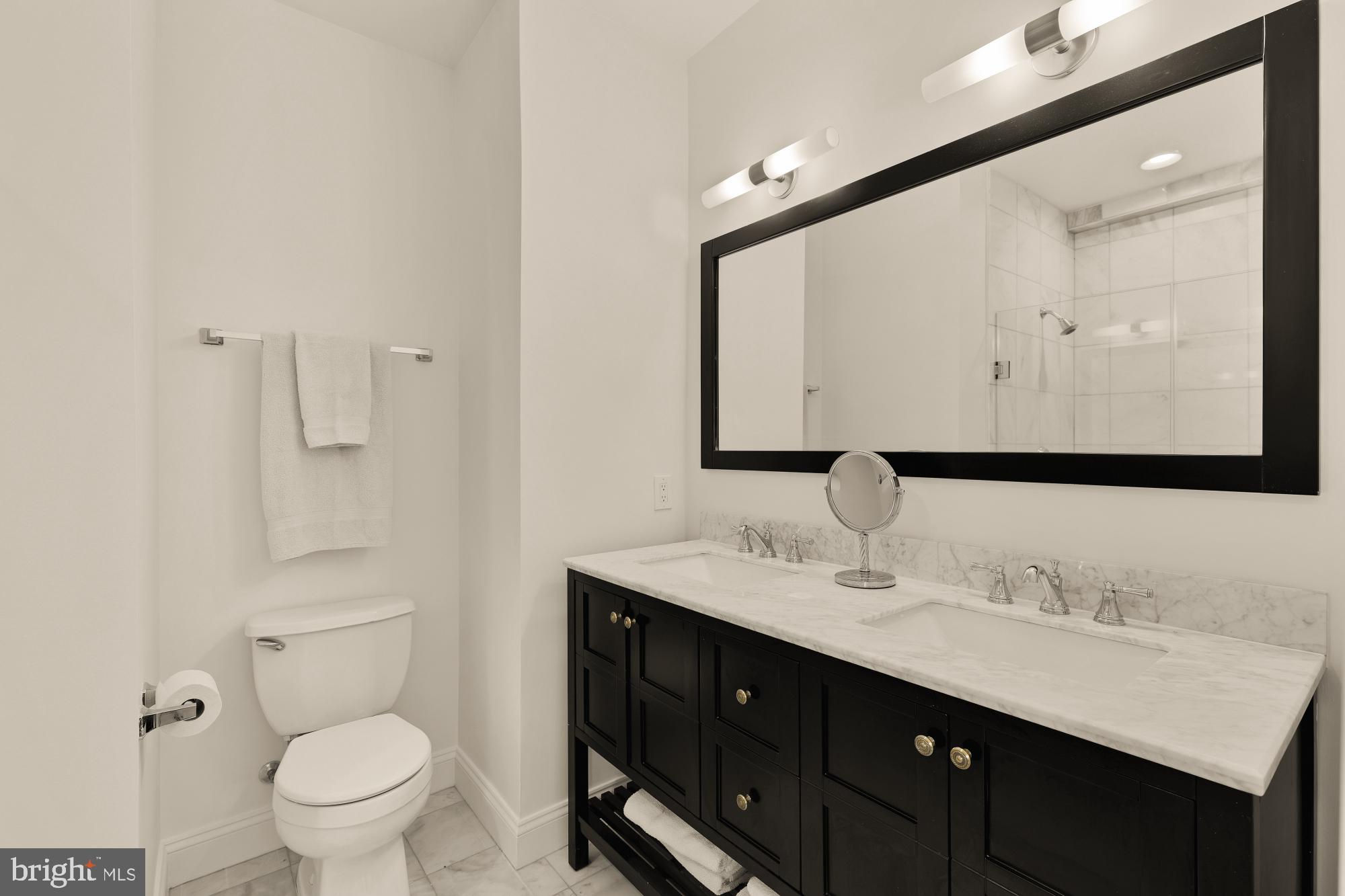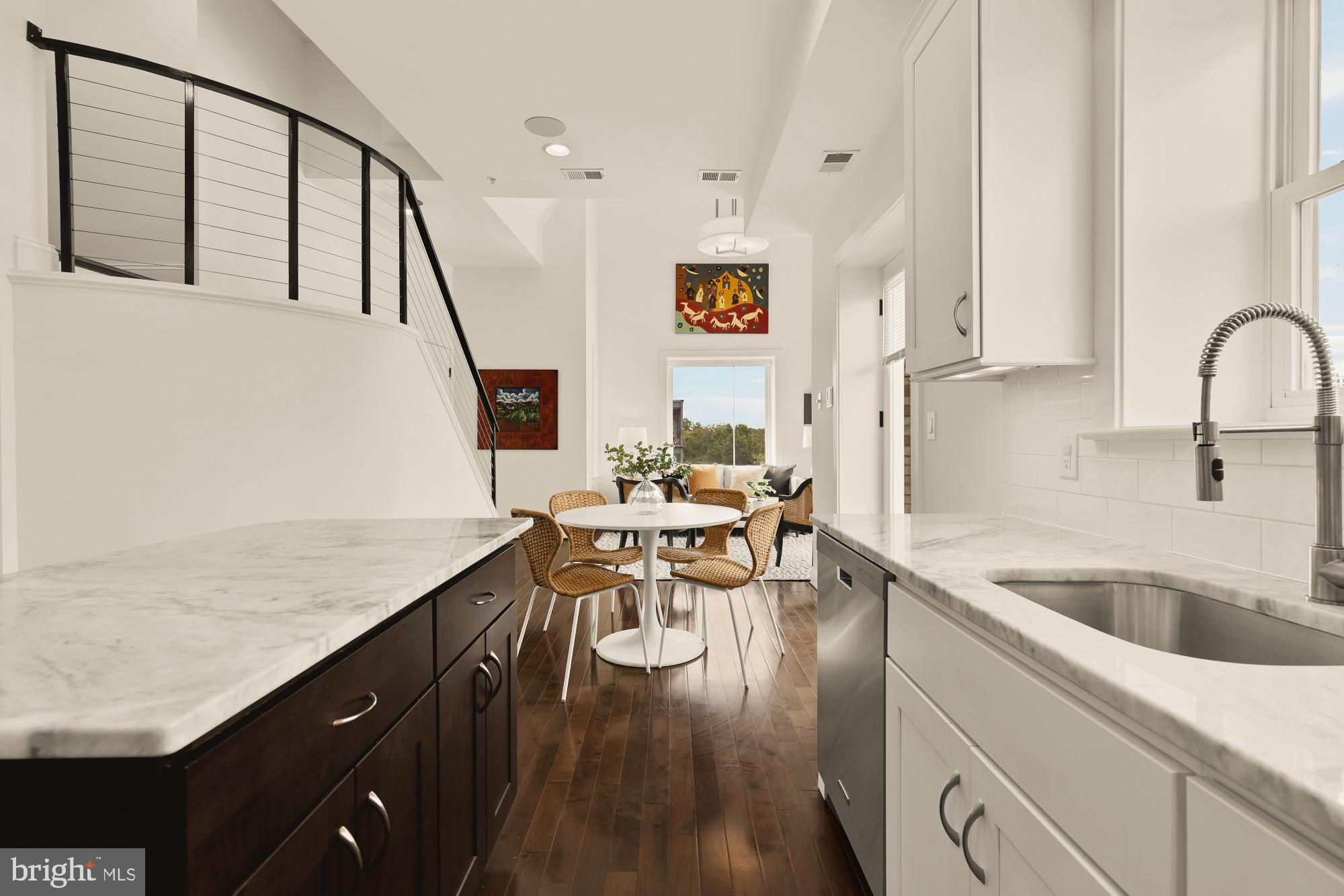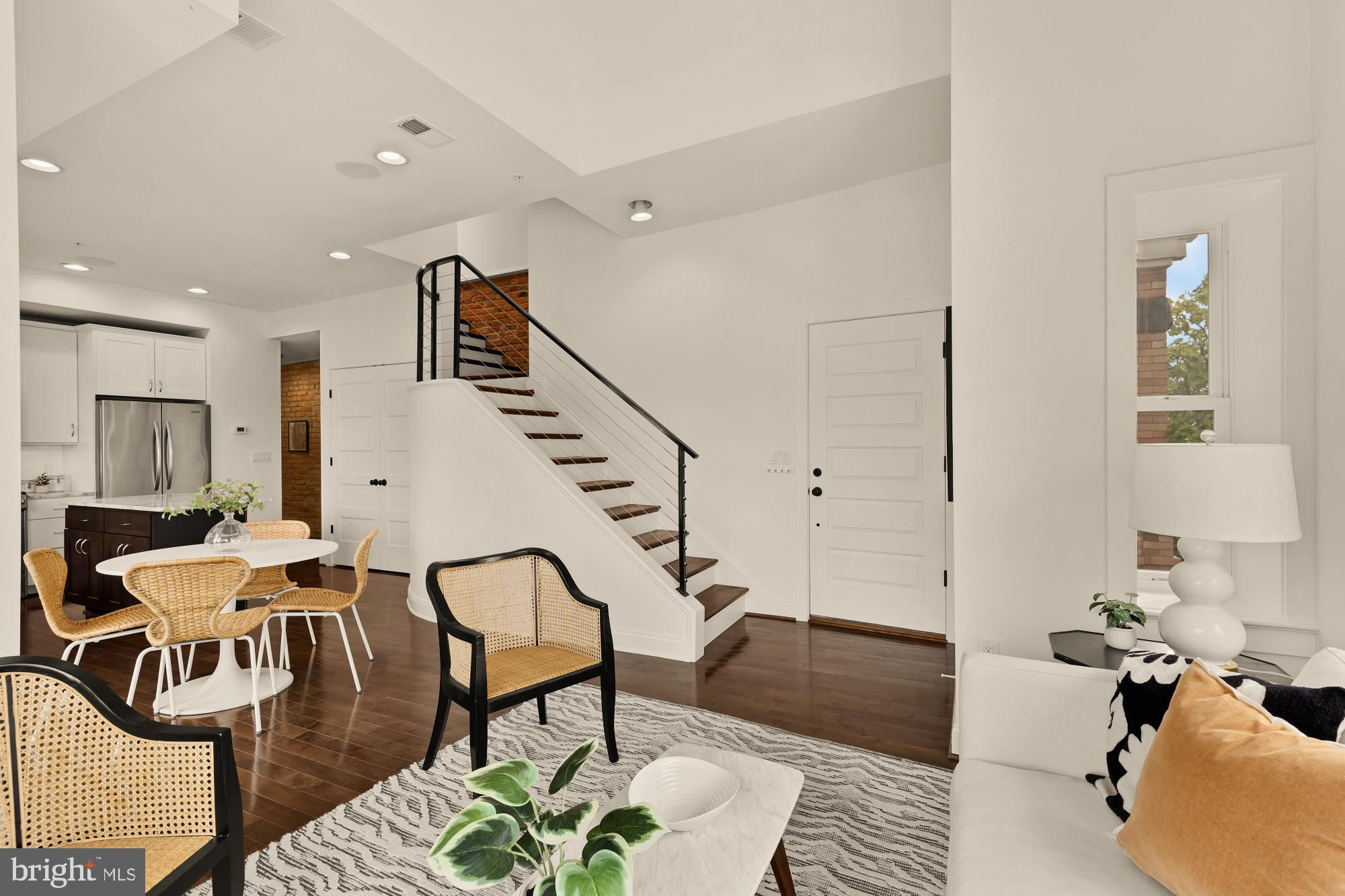 Penthouse living in the heart of Columbia Heights! This top-floor two-bedroom, two-bath condo combines soaring vaulted ceilings, abundant natural light, and thoughtfully designed indoor-outdoor living. The expansive private rooftop deck showcases sweeping views of the Capitol, Washington Monument, and the city skyline, wired for sound and complete with a storage closet. Off the kitchen, a side balcony offers a second retreat, ideal for morning coffee or al fresco dining. Inside, the open layout features a whole-home sound system, in-unit washer and dryer, and a spacious primary suite with en suite bath. The boutique building sits on a rare corner lot, with a shared yard that doubles as a dog run or a gathering space. The location is unmatched—just steps to neighborhood favorites including The Coupe, Thip Khao, El Chucho, Taqueria Habanero, and Wonderland Ballroom. Giant, Target, and the Columbia Heights Metro are nearby for easy errands, while Rock Creek Park is walkable for fresh-air escapes. A brand-new elementary school rising across the street will soon add even more vibrancy to this sought-after community. Vaulted ceilings, two outdoor spaces, a true primary suite, and a prime Columbia Heights location—this penthouse truly has it all.