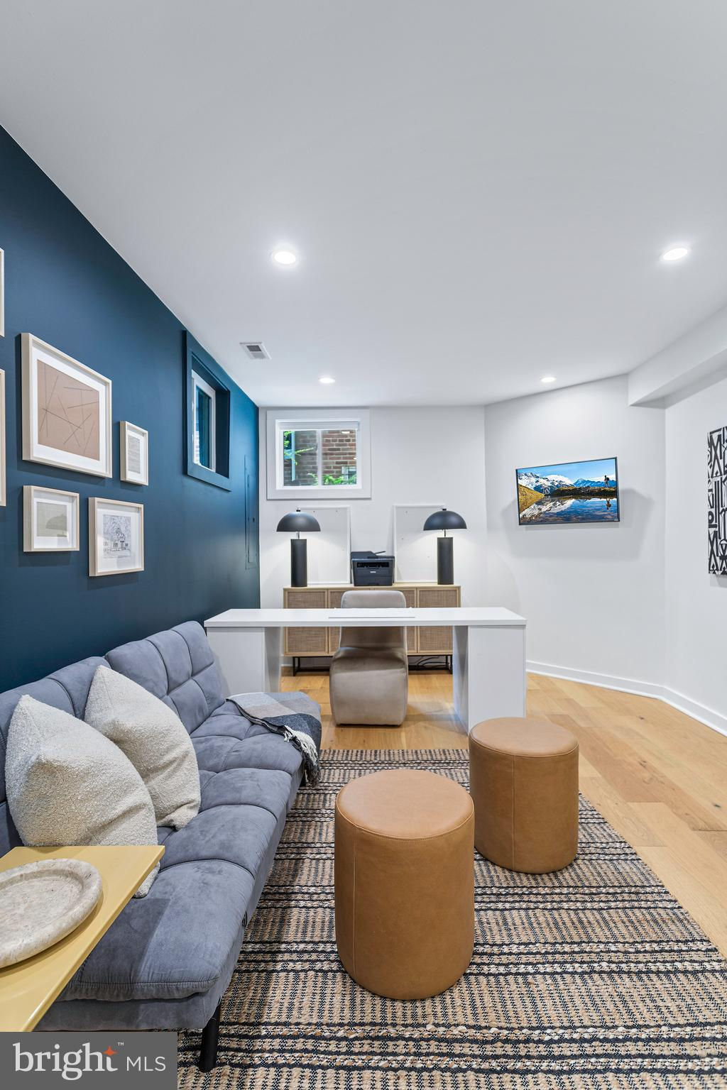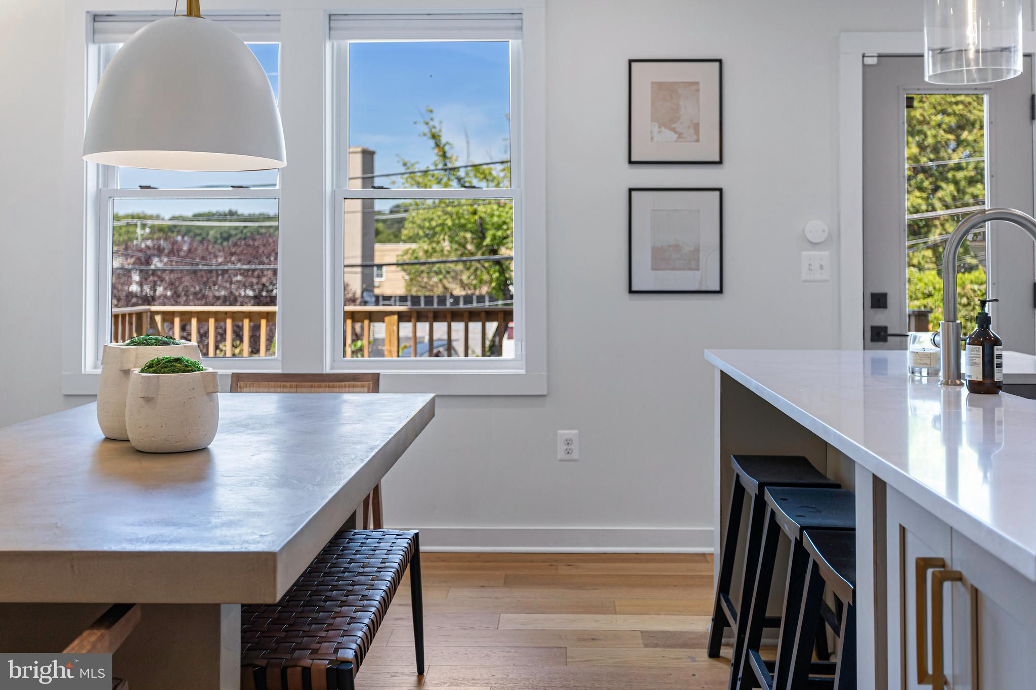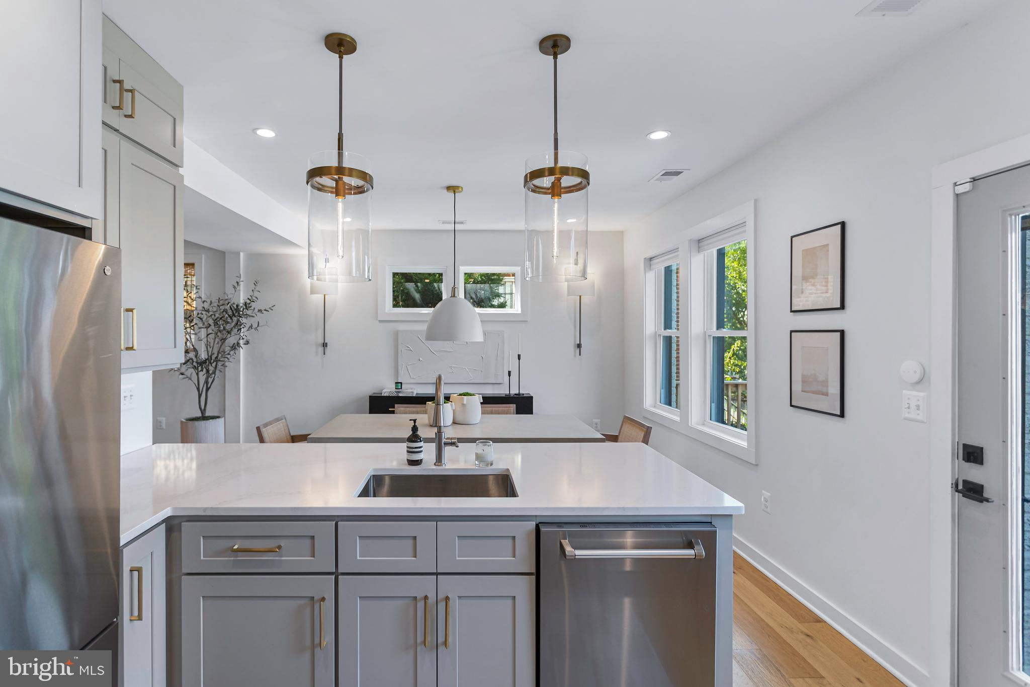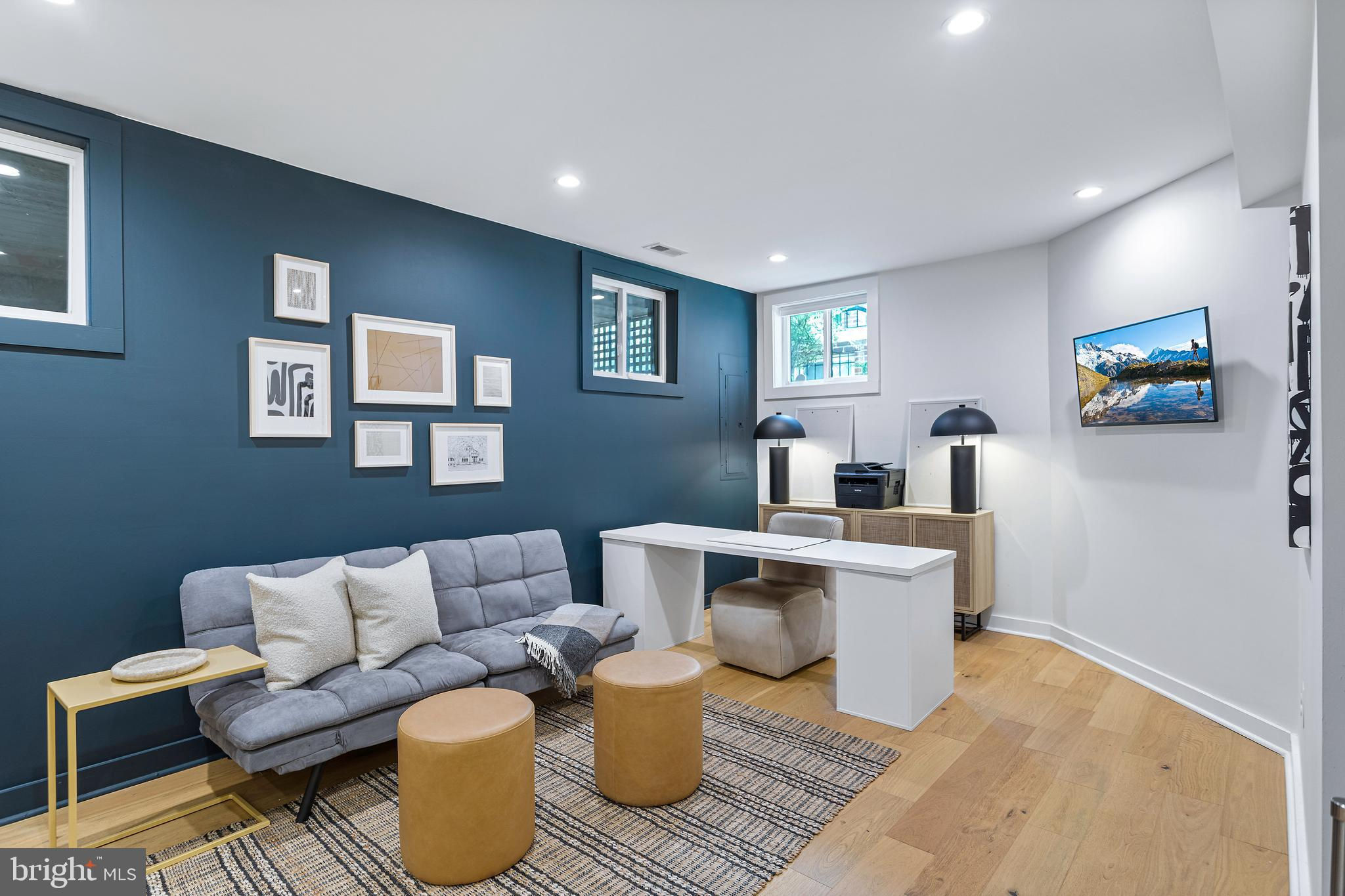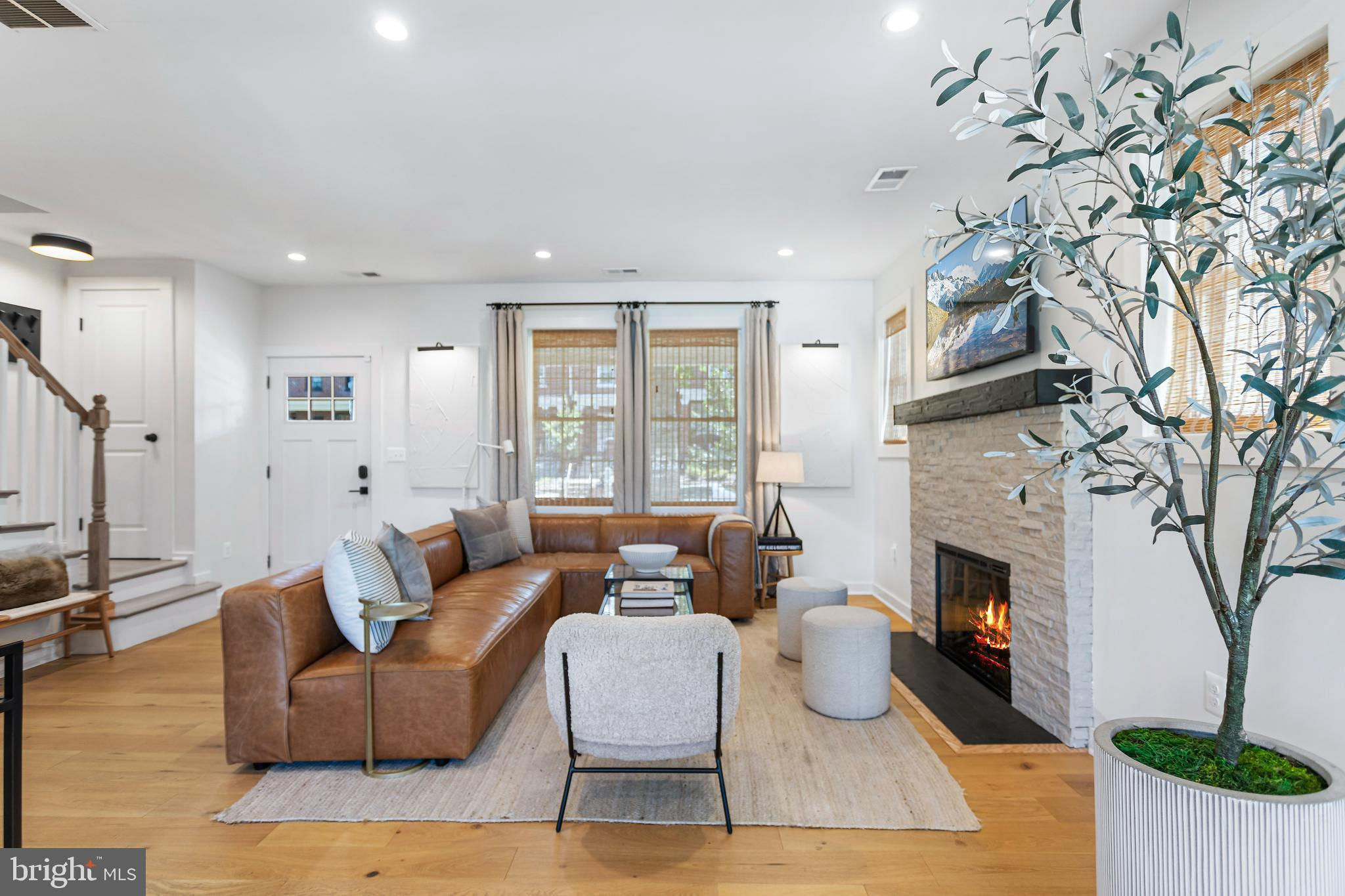 Welcome home to this professionally designed, semi-detached Petworth gem. This home is truly move in-ready with thoughtful upgrades throughout - including custom window treatments, keyless electronic locks and whole-home, mobile controlled Nest / Ring systems. This spacious and sophisticated home features 5 bedrooms and 4 bathrooms spread among 3 levels. Enter just past the large front porch to discover an open floor plan with wide-plank oak flooring, cozy electric fireplace, and main level powder bath. This home features a gorgeous, gourmet kitchen with Italian-made appliances by Bertazzoni, quartz countertops, and lighting by Restoration Hardware. The kitchen is open to the adjacent dining space flooded with ample natural light. The upper level features 3 bedrooms, 2 full bathrooms, and convenient 2nd floor laundry. The well-equipped primary suite features ample closet space ready for you to customize and a luxurious ensuite bathroom. The lower level is a rare find with an 8’-6” ceiling height and its own private entrance. The space includes another full-size washer/dryer, kitchenette, full bathroom, and 2 bedrooms - one that is currently being used as a home gym. The lower level is perfectly suited to utilize as an in-law suite or income producing Airbnb. The backyard includes a 10’ x 20’ deck with another patio at ground level. The new concrete driveway accommodates up to 2 vehicles for secure off-street parking behind a garage door. CVS and LaCoop coffee directly across the street behind the house. Less than a 5 minute drive from the new Fort Totten metro station development that includes Walmart, Chick-fil-A, OneLife fitness, etc. Schedule a viewing today and experience luxury living at its finest! All square footage and dimensions are approximate, based on reliable sources.