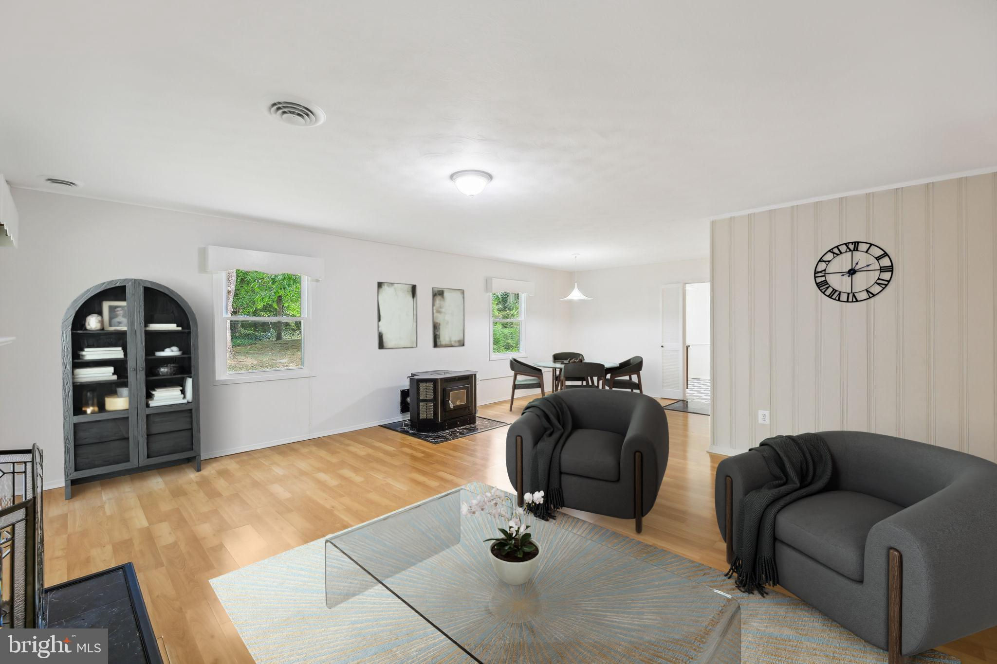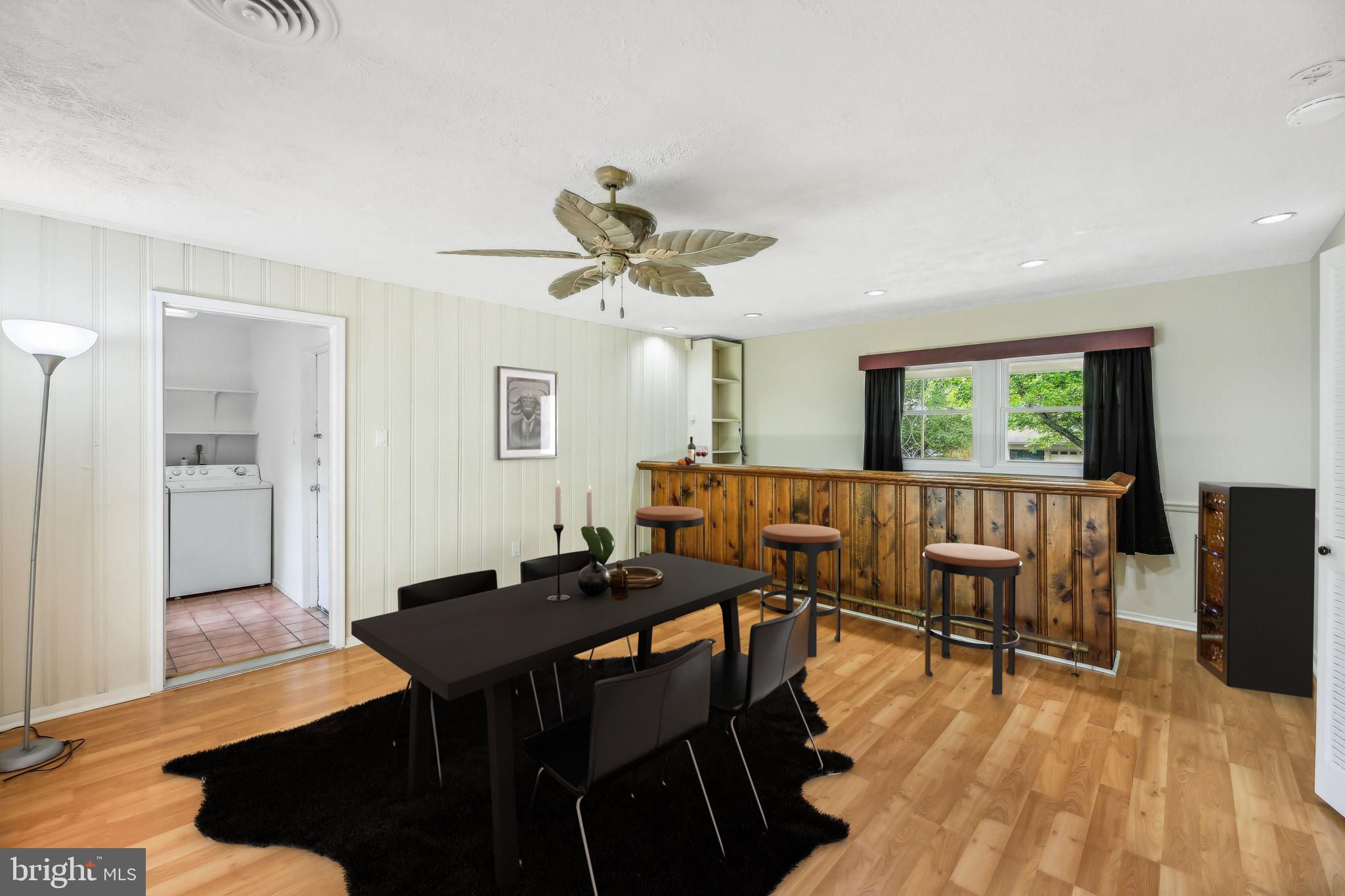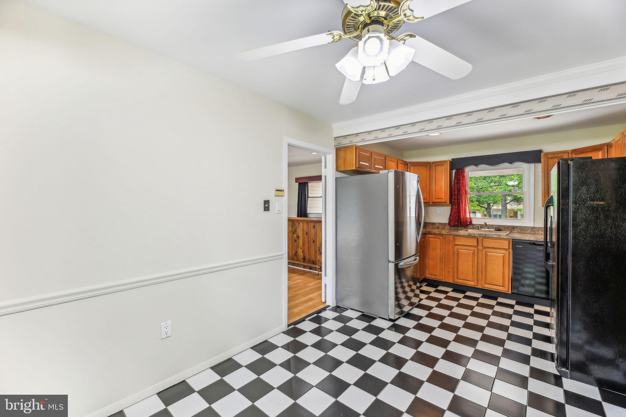 Welcome to this 4-bedroom, 2-bathroom gem located in the sought-after Montpelier subdivision of Laurel. This home features an eat-in kitchen with ample cabinet and countertop space, a new refrigerator, recessed lighting, and a ceiling fan. The owner’s suite is spacious, complete with an en-suite bathroom and a huge closet. The large bedrooms provide plenty of room for family and guests, and the separate dining area is perfect for hosting dinners. The family room includes a dry bar and a flat-screen TV that conveys with the property. Additionally, the home boasts new windows, a 1-year-old gas furnace, a 2-year-old 50-gallon hot water heater, and a 2-year-old roof with leaf gutters. Cozy up by the fireplace or use the free-standing corn/pellet stove for heating. The massive 2-car garage comes with a refrigerator that conveys. Beveled sliding glass door that leads out to a concrete patio in the 2-level backyard with a large storage shed. The neighborhood offers fantastic amenities, including a community pool with a picnic area, a small park, a baseball field, a basketball court, a tennis court, and an open field for various activities. Commuting is a breeze with easy access to routes 295, 95, 198, and Route 1, and the home is conveniently located just a couple of exits away from NSA & Fort Meade. You'll also enjoy a short drive to Laurel Town Center, restaurants, grocery stores, movie theaters, Walmart, Sam's Club, Total Wine, and much more. This home offers a perfect blend of comfort, convenience, and community. Don't miss out on this incredible opportunity!