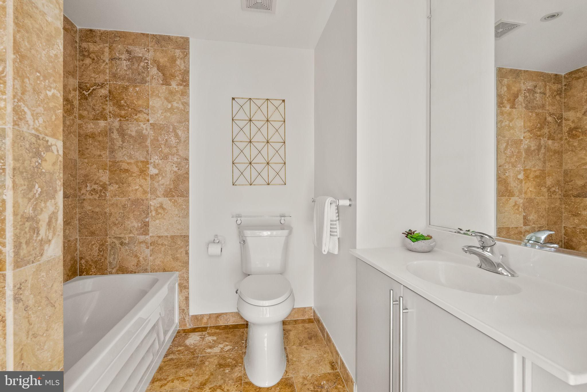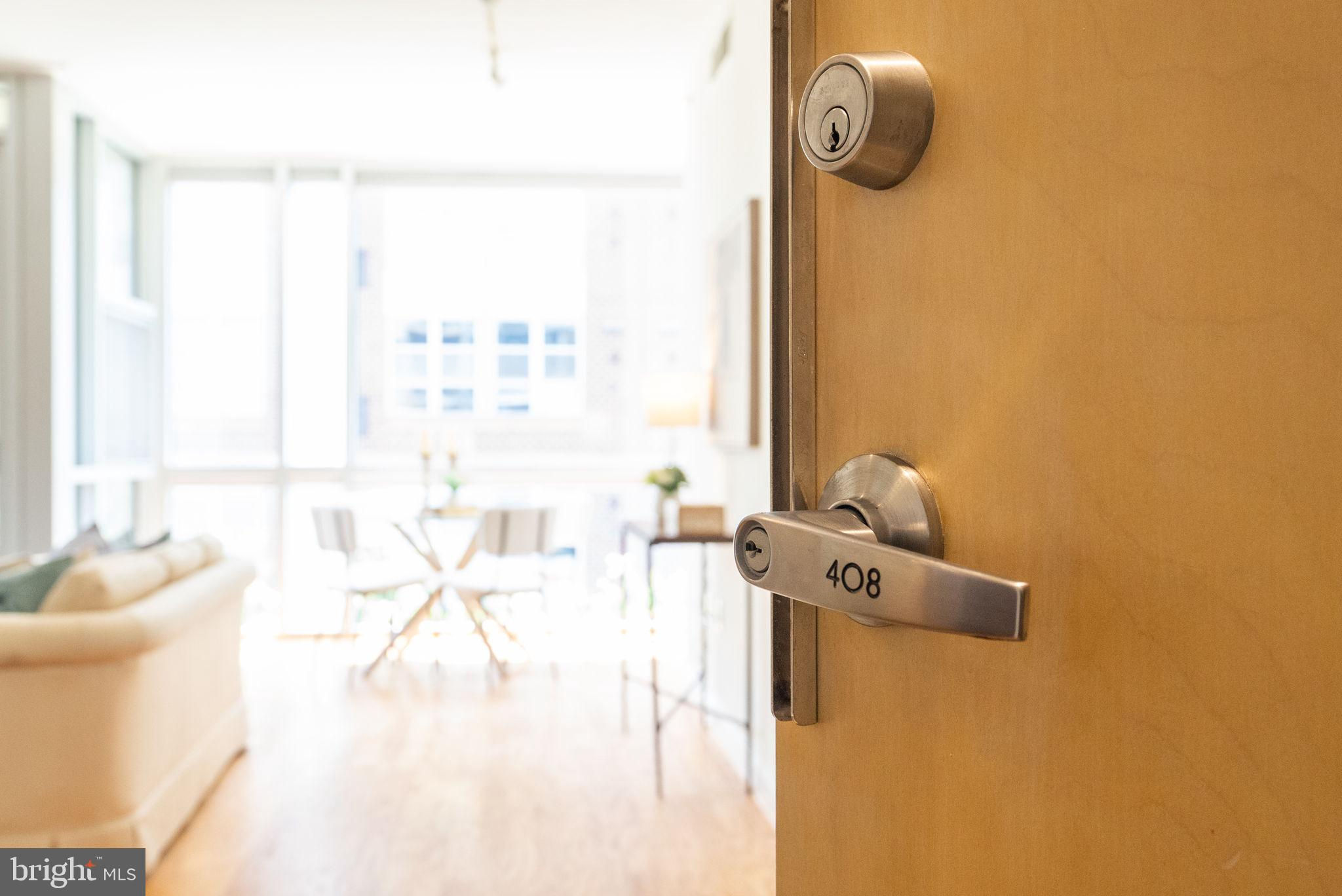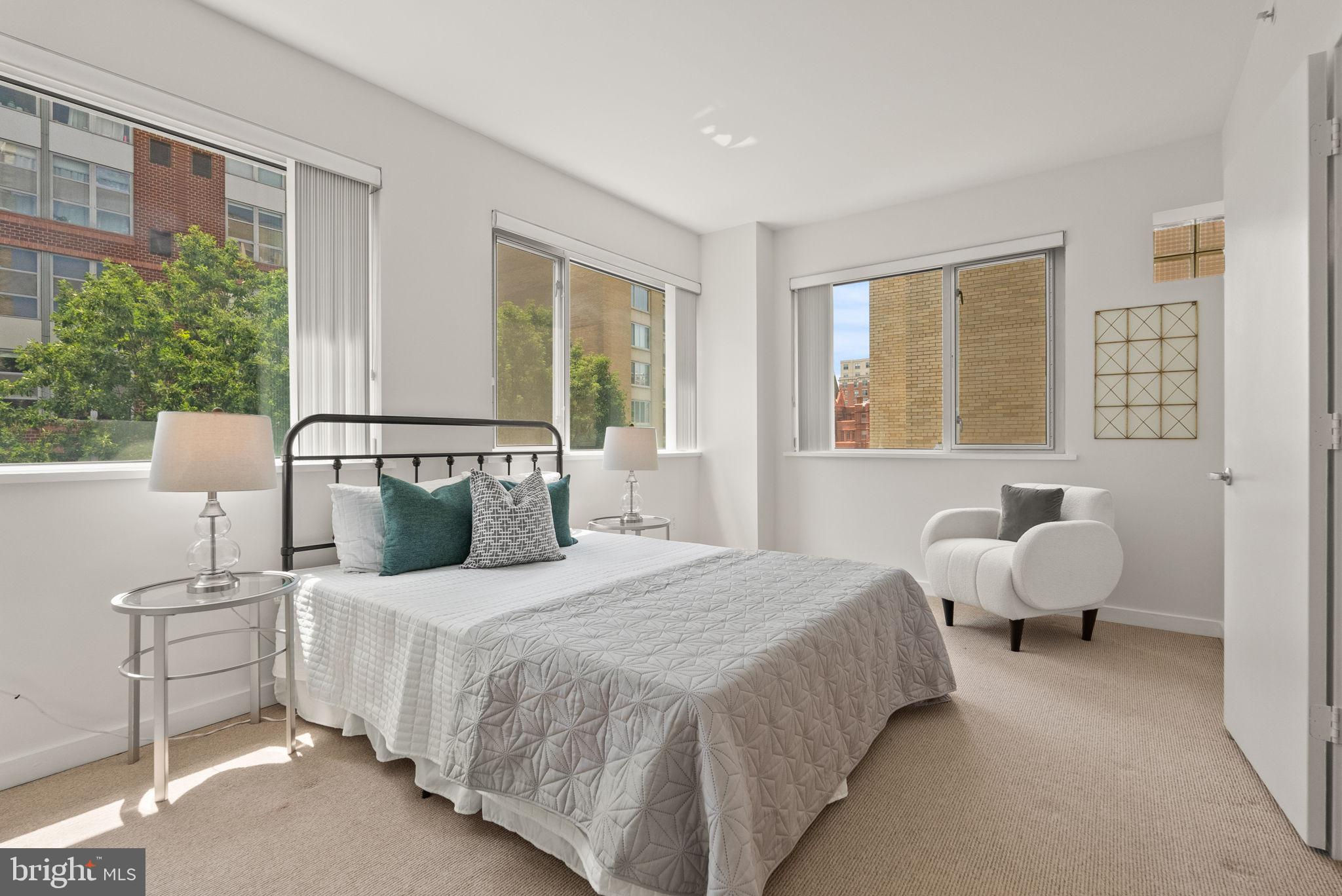 Welcome to this stunning 1,134 SF two-bedroom, two-bathroom condominium at SoLo Piazza, perfectly situated at 13th & N St NW in the vibrant Logan Circle neighborhood. This serene, south-facing unit offers the best of stylish urban living in one of DC’s most desirable buildings. Step inside to find 9’ ceilings, beautifully refinished natural oak hardwood floors, and a fresh coat of paint throughout. Floor-to-ceiling windows flood the open-concept living and dining areas with natural light, while a cozy gas fireplace and a private balcony create a warm, inviting ambiance—perfect for relaxing or entertaining. The sleek European-style kitchen features Poggenpohl cabinetry, granite countertops, a raised breakfast bar, stone floors, and premium stainless steel appliances. A dedicated laundry room with washer/dryer sits conveniently off the foyer, which also showcases elegant stone flooring. Both bedrooms offer privacy and style. The primary suite includes a luxurious ensuite bath with a soaking tub, standing shower, and Sienna Travertine tile. The second bedroom connects directly to the hall bathroom, providing a semi-ensuite layout for guests or roommates. SoLo Piazza offers a serene oasis with upscale amenities: a Zen garden with bamboo and fountains, a concierge (8 AM–5 PM), dual elevators, a rooftop deck with sweeping views and multiple seating areas, secure bike storage, and optional leased garage parking. Pet-friendly (size limit applies), with a 40% rental cap to protect your investment. Walk Score of 98 – steps to the metro, 14th Street nightlife, fine dining, Whole Foods, Trader Joe’s, Giant, Dupont Circle, Adams Morgan, Chinatown, and more. Quick access to National Airport completes this perfect city living package.