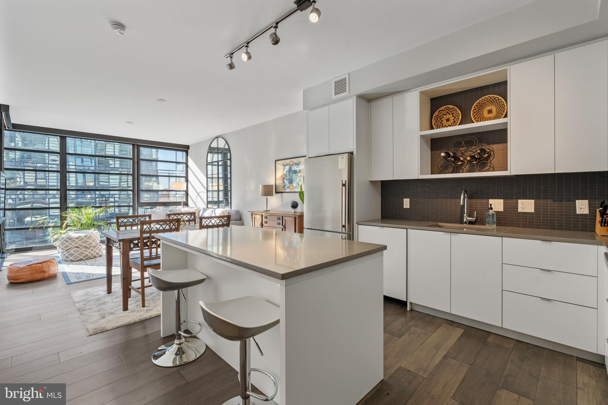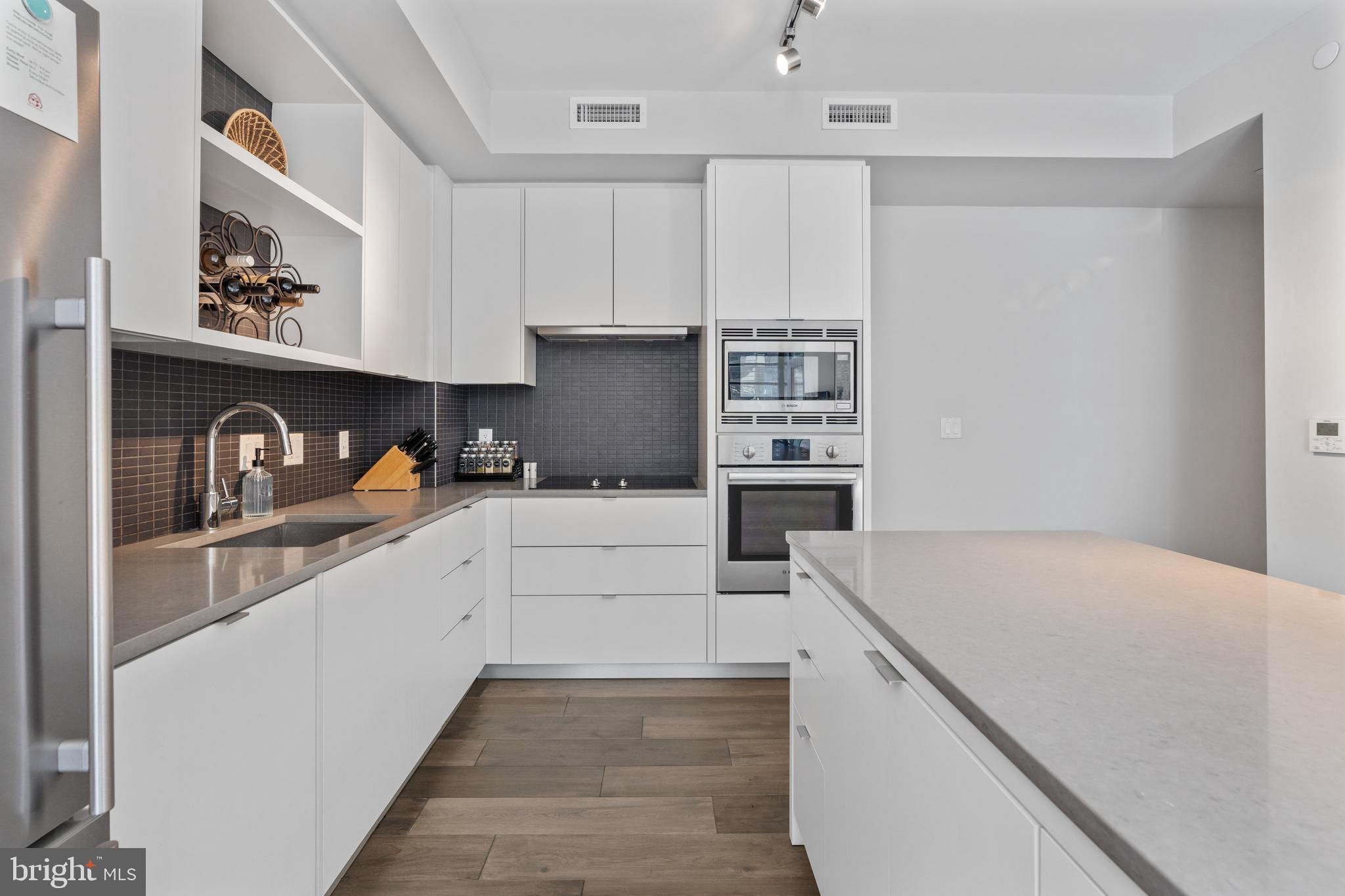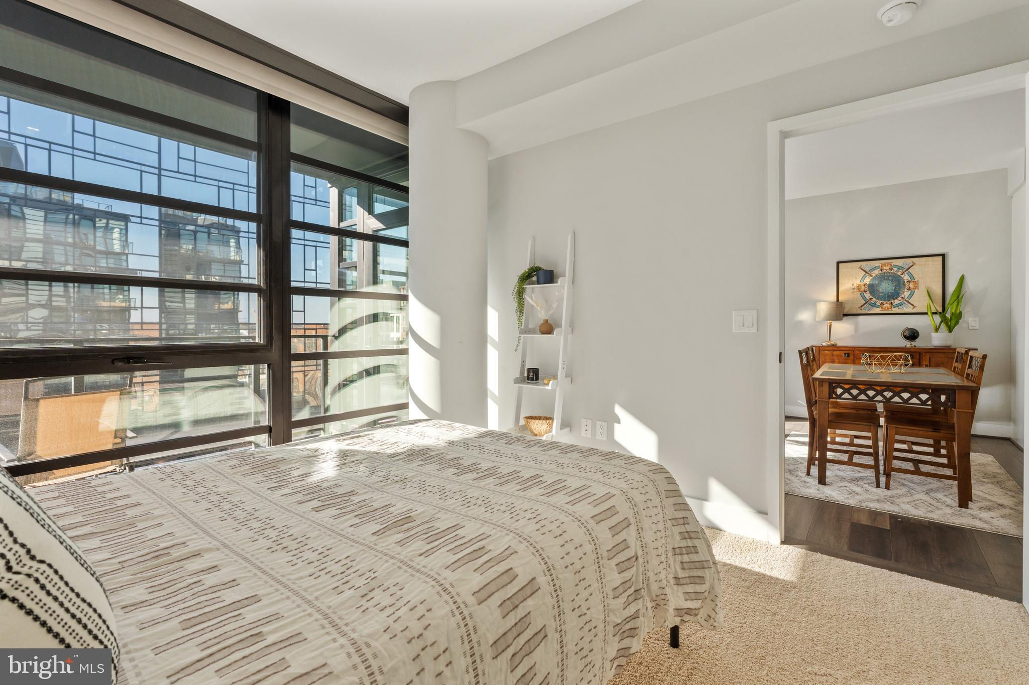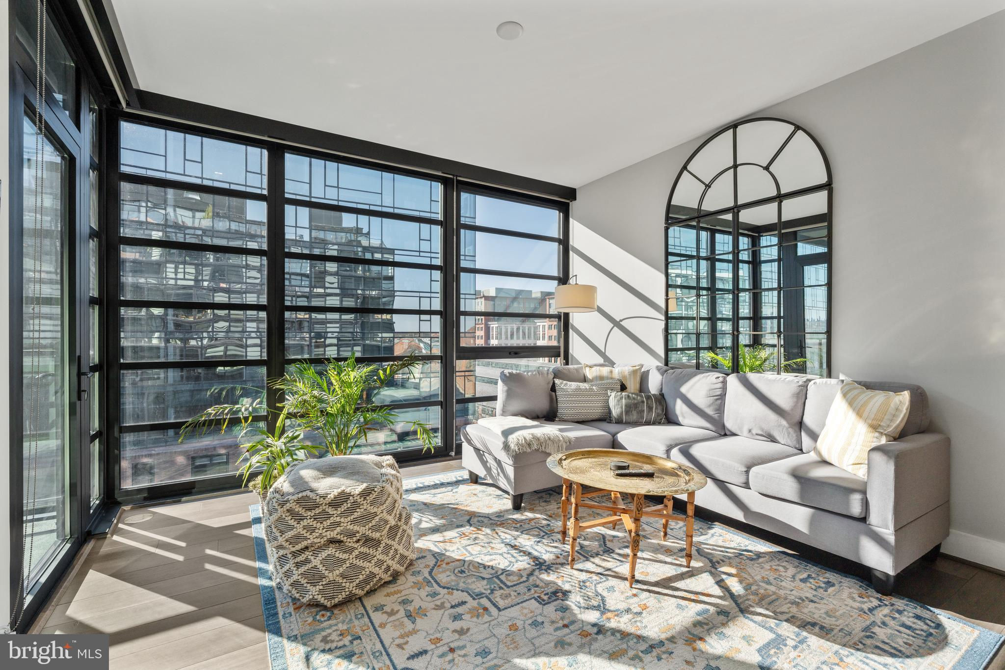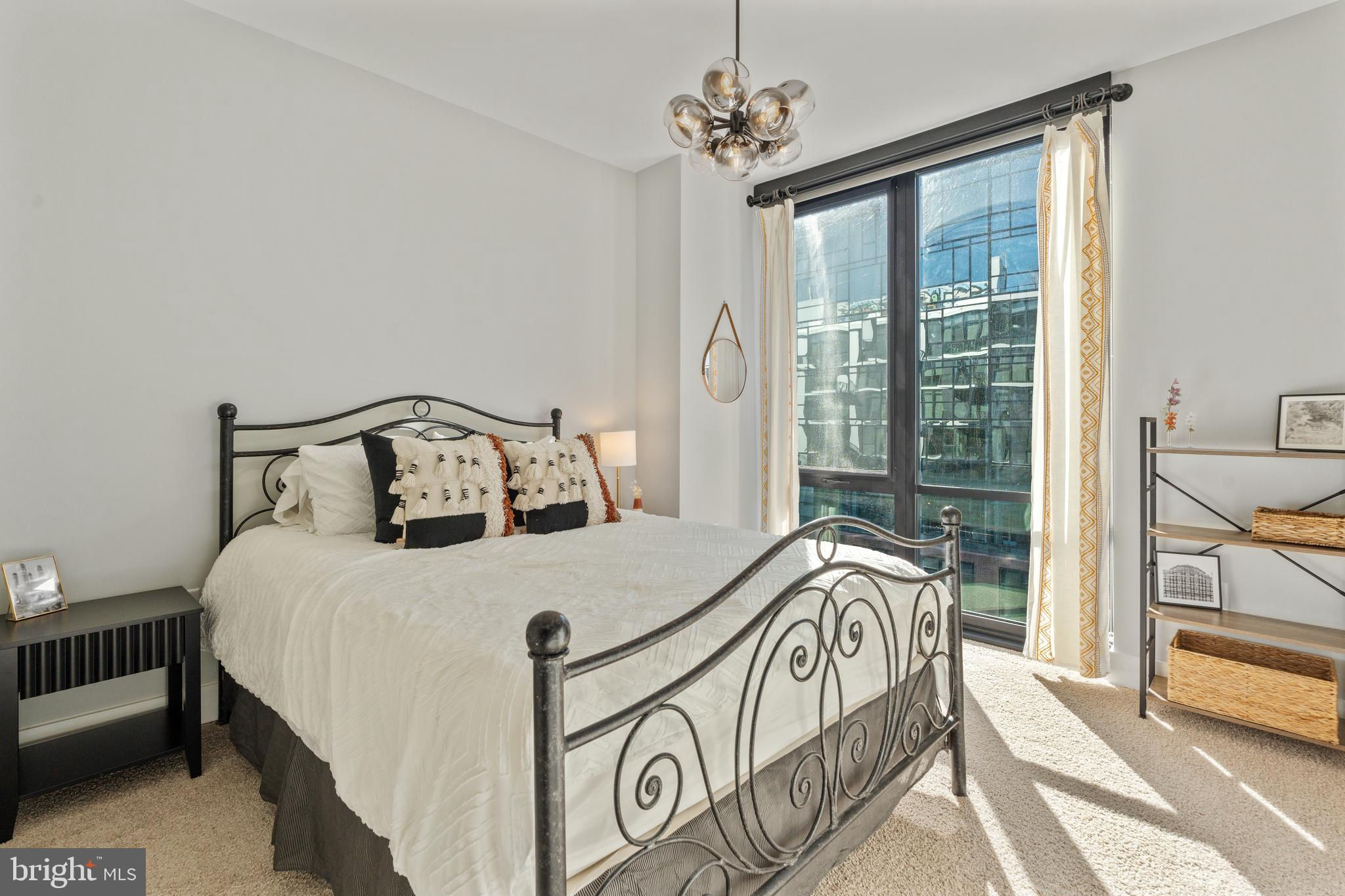 Experience the pinnacle of modern luxury at The Bower, a vibrant part of the Capitol Riverfront development. This meticulously designed 2BR/2BA residence with deeded garage parking offers nearly 1,100 square feet of bright, contemporary living space. With floor-to-ceiling windows, custom shades, and hickory-engineered wood flooring, the interiors are bathed in natural light, creating an open and inviting atmosphere. The expansive living area boasts stunning west-facing views and south-facing views of the Anacostia River, while the sleek, open kitchen is outfitted with Bosch appliances, Italian soft-close cabinetry, and quartz countertops, making it both functional and elegant. The primary suite features a spacious walk-in closet with custom shelving and a spa-inspired ensuite bath, while the generously sized second bedroom includes a custom closet and is complemented by a luxurious hall bath with a soaking tub. A Bosch in-unit washer-dryer adds to the home’s convenience. Life at The Bower is defined by unparalleled amenities and a vibrant community. Residents enjoy 24/7 concierge services, a state-of-the-art fitness center featuring a Peloton bikes, an expansive rooftop terrace with grilling stations and outdoor dining areas, as well as a stylish resident lounge perfect for entertaining. The building is also pet-friendly, making it ideal for those with furry companions. The resident-led social committee hosts monthly events, fostering a true sense of community within the building. Adding to its appeal, the Capitol Riverfront comes alive each spring and fall with events such as free fitness classes, Brunch on the Go, and more, offering an active and engaging lifestyle right outside your door.