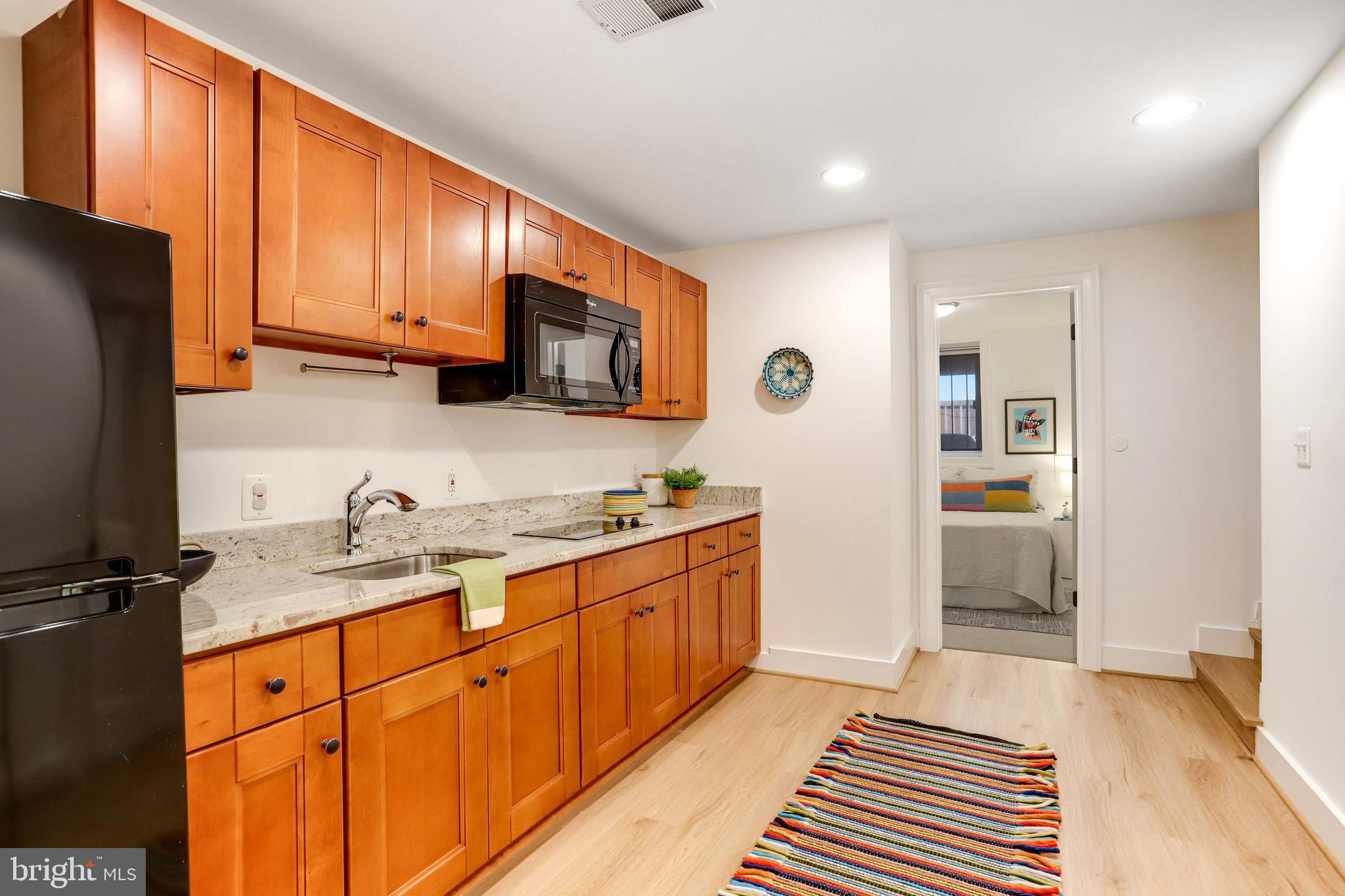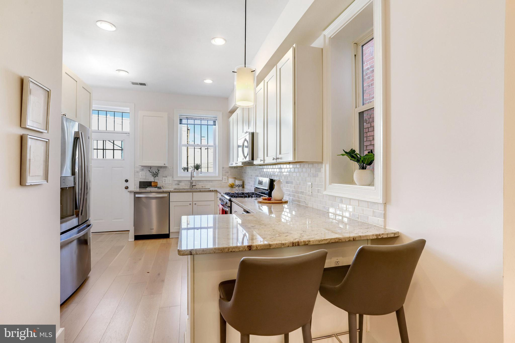 Interested in income-producing possibilities? Partial to potential parking? Focused on flexibility? New price (and recent rate dip) makes this lovely 4BR/3.5BA a great value today, and the ability to EASILY accommodate guests/au pairs, and the potential for AirBnB, puts flexibility to the forefront in the connecting lower level. And did we mention the previous owners used the rear patio for parking in the past?? Relax on the front porch and chat with neighbors. Step inside to a sunny open floorplan w/sleek floors, and exposed brick accent wall. Enjoy all modern conveniences including lovely stainless and granite kitchen w/breakfast bar on the main level, and the coveted primary ensuite bedroom w/frameless glass shower and double sink vanity upstairs. Profit from flexibility in one of the smartest lower level floorplans we’ve seen: front family room for main house usage, plus a lockable second living area w/a large kitchenette, the 4th bedroom and the 3rd full bathroom at rear. Hello holiday guests, au pairs, or possible AirBnB-ers! Step outside to multi-level living: a deck off the kitchen for morning coffee, plus lower level deck for al fresco dining, and the alley gate makes for easy bike/stroller access. Note that previous owners used the large patio as a parking pad (potential buyer should verify for themselves if parking is possible as property is not sold w/parking). Enjoy living close to Lovejoy Park playground, Lincoln Park, H Street bars and restos, Capital BikeShares, and all the Hill has to offer. As always, square footage is approximate and should not be used for property valuation.