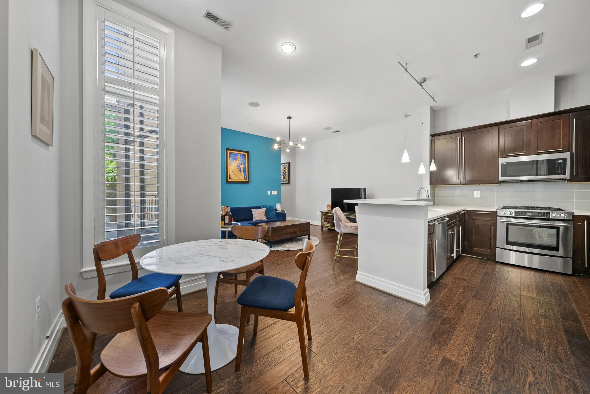 Step into urban luxury at 1307 Clifton Street NW, Unit 22, a sophisticated 2-bedroom, 2-bathroom residence in the heart of vibrant Columbia Heights. Spanning 1033 square feet, this modern retreat boasts an open floor plan with soaring ceilings, oversized windows adorned with plantation shutters, southern and eastern exposures bathing the space in natural light, hardwood floors throughout, and an integrated speaker system in every room. The spacious kitchen is seamlessly worked into the open floor plan and creates a space perfect for entertaining. Equipped with appliances from Viking, Jenn Air, Bosch and more (including a new microwave from 2023), abundant counter/cabinet space, and a breakfast bar, nothing is left to be desired. The southern-facing primary suite features a large walk-in closet, a well-appointed en-suite full bath, extra space for a dresser or reading nook, and a charming Juliet balcony. The generously sized second bedroom also includes a large walk-in closet and is ideal for a roommate, home office, or home gym. Additional convenience features include a new in-unit washer/dryer (2021), a new HVAC (2022), a separately deeded parking space, a common bike storage room, and a modern building access system. Centrally located between Columbia Heights, U Street Corridor, and Shaw, this home offers the best of city living. You truly have everything at your doorstep: central 14th Street bus lines; two Green/Yellow line metro stations equidistant (U Street Corridor and Columbia Heights); your choice of grocery (Streets, Whole Foods, Trader Joe’s, Giant); and a slew of restaurants, bars, boutique fitness, and retail. Schedule a showing today!