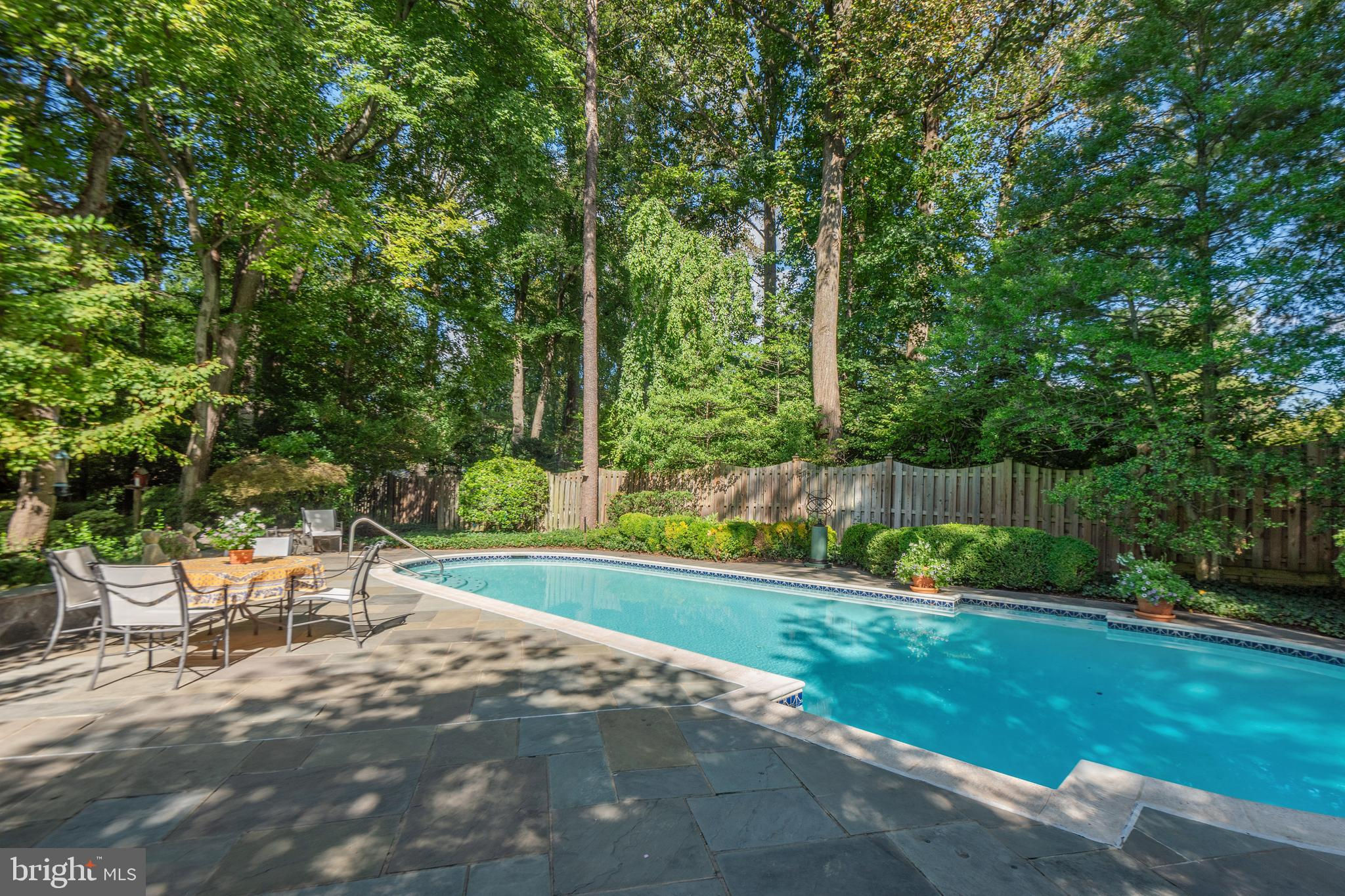 Unveiling an extraordinary residence nestled within the prestigious McLean Summerwood development. This impeccable estate caters to those seeking idyllic living infused with timeless elegance. This haven of expansive spaces, breathtaking landscaping with a tranquil pool, koi pond, and running stream awaits your discerning vision. The Summerwood location means enjoying the best of McLean. School children attend Fairfax County Schools in the Langley school pyramid. Enjoy easy access to all the amenities the vibrant community of McLean and Tyson's Corner offers. This four bedroom, five full and one half bath home has been meticulously maintained for your ultimate comfort and enjoyment. Step inside and be greeted by a symphony of light and space. Upon entering, you'll be greeted by a grand foyer that leads to the main level, featuring a spacious living room, elegant dining room, a two-story great room, a versatile library/office, and a gourmet kitchen. The great room is filled with light from a wall of windows overlooking the patio and landscaped backyard and features a floor to ceiling masonry stone gas fireplace and bar area. The library off the Great Room features a wall of built in book cases and elegant gas fireplace. The large chef's kitchen with cherry wood cabinetry has a dining area with gas fireplace making meal preparation a joy. Gather loved ones in the formal dining room for elegant evenings, or enjoy casual meals in the breakfast area adjoining the kitchen. Directly off the kitchen is the sun-drenched solarium with built in bar and elevator to the primary suite. The solarium provides access and views of the sparkling pool and pond. It incorporates the pool bath, complete with a changing area, shower, toilet, sink, and dryer offering convenience and functionality for poolside activities. Retreat to the luxurious primary bedroom suite, a sanctuary of comfort and elegance. A small foyer leads to a walk-in closet, the primary bathroom, and the primary bedroom. The bedroom features a vaulted ceiling and a gas fireplace. The spa-like en-suite bathroom boasts a deep soaking tub, walk-in shower, double sinks, multiple closets and dressing area. On the second level are three additional bedrooms: one with an en-suite bath with a shower, and the other two sharing a Jack & Jill bath with a tub, shower, and double sinks, offering flexibility and privacy for family and guests. The expansive finished basement is a haven for entertainment and recreation. Watch movies by the crackling gas fireplace, enjoy a beverage at the built-in bar, or simply unwind in this spacious haven. There is a bonus room with en-suite bath and large walk in closet for seasonal clothing storage. A dedicated laundry with ample storage space and utility rooms provide for all your needs. Step outside to your own private sanctuary. Immerse yourself in the refreshing waters of the pool, relax on the expansive deck, enjoy the tranquility of the koi pond and the gentle sounds of the babbling stream. Entertain on the flagstone patio, ideal for alfresco dining. The fully fenced backyard provides a secure haven for children and pets to play. The attached oversized two car garage with interior basement access completes the home. The overall condition of the home is excellent, three-quarters of the window were replaced in January 2024 with top-of-the-line Andersen windows, and the roof replaced in 2019. The home has Hardie brand cement board pre-pigmented siding for durability and easy maintenance. Located in the sought-after McLean and Tyson's Corner area, this residence offers convenient access to a plethora of dining, shopping, and entertainment options. With close proximity to transportation options, including major highways and public transit, commuting to and from this desirable location is a breeze. Don't miss the opportunity to make this exceptional property your own and experience the epitome of luxury l