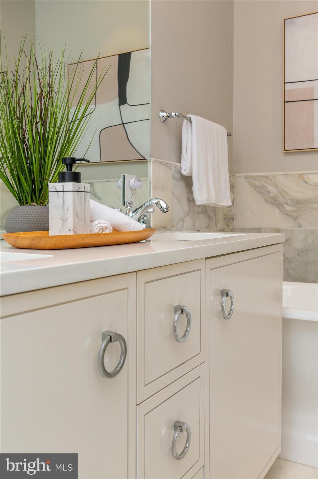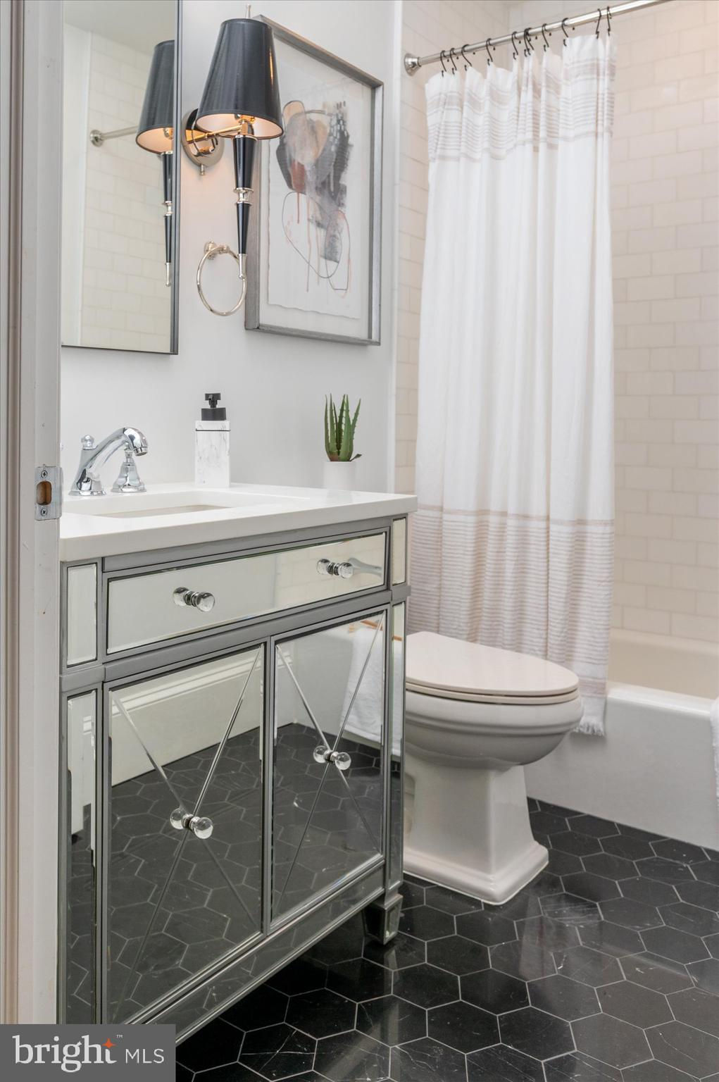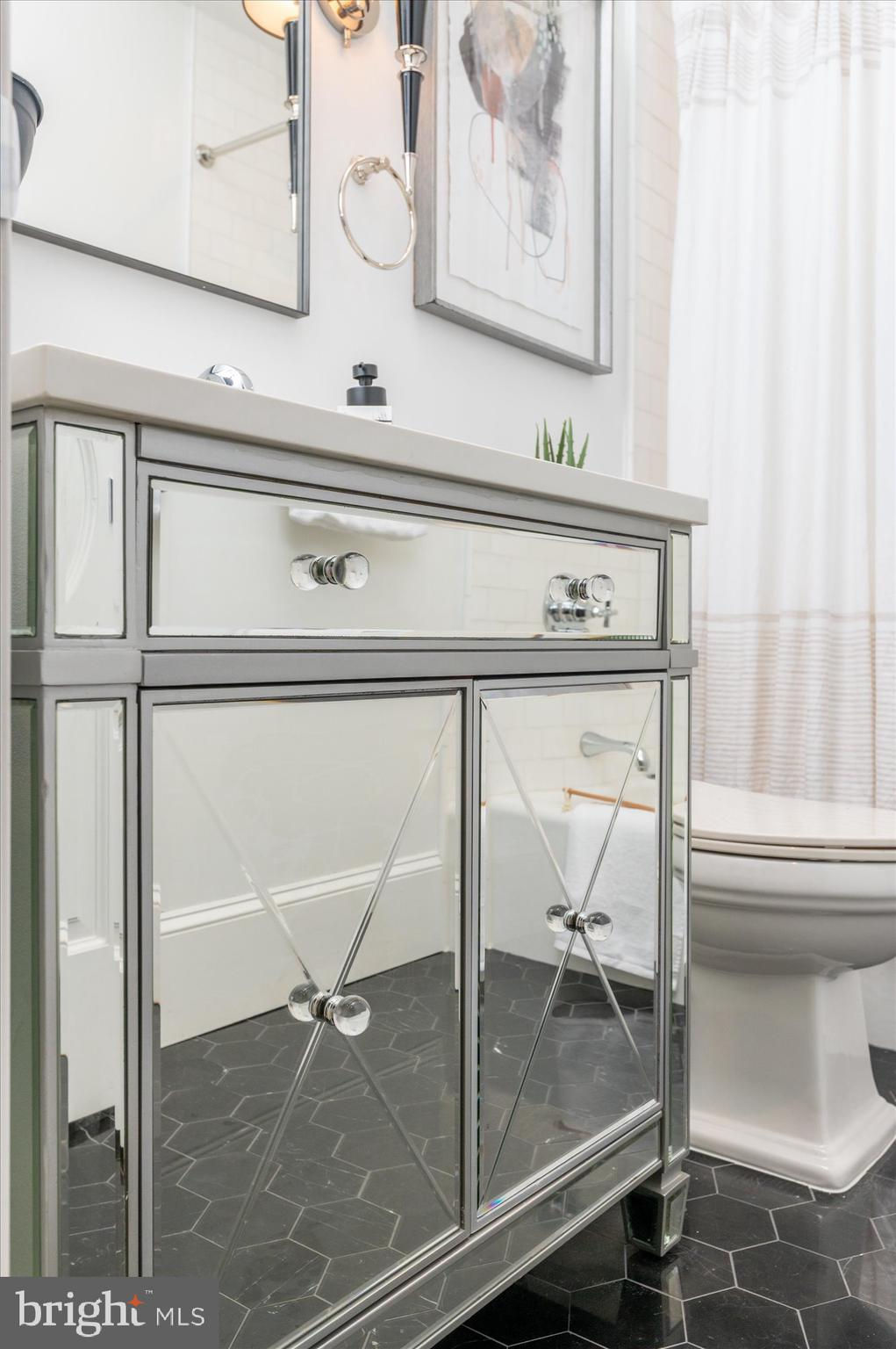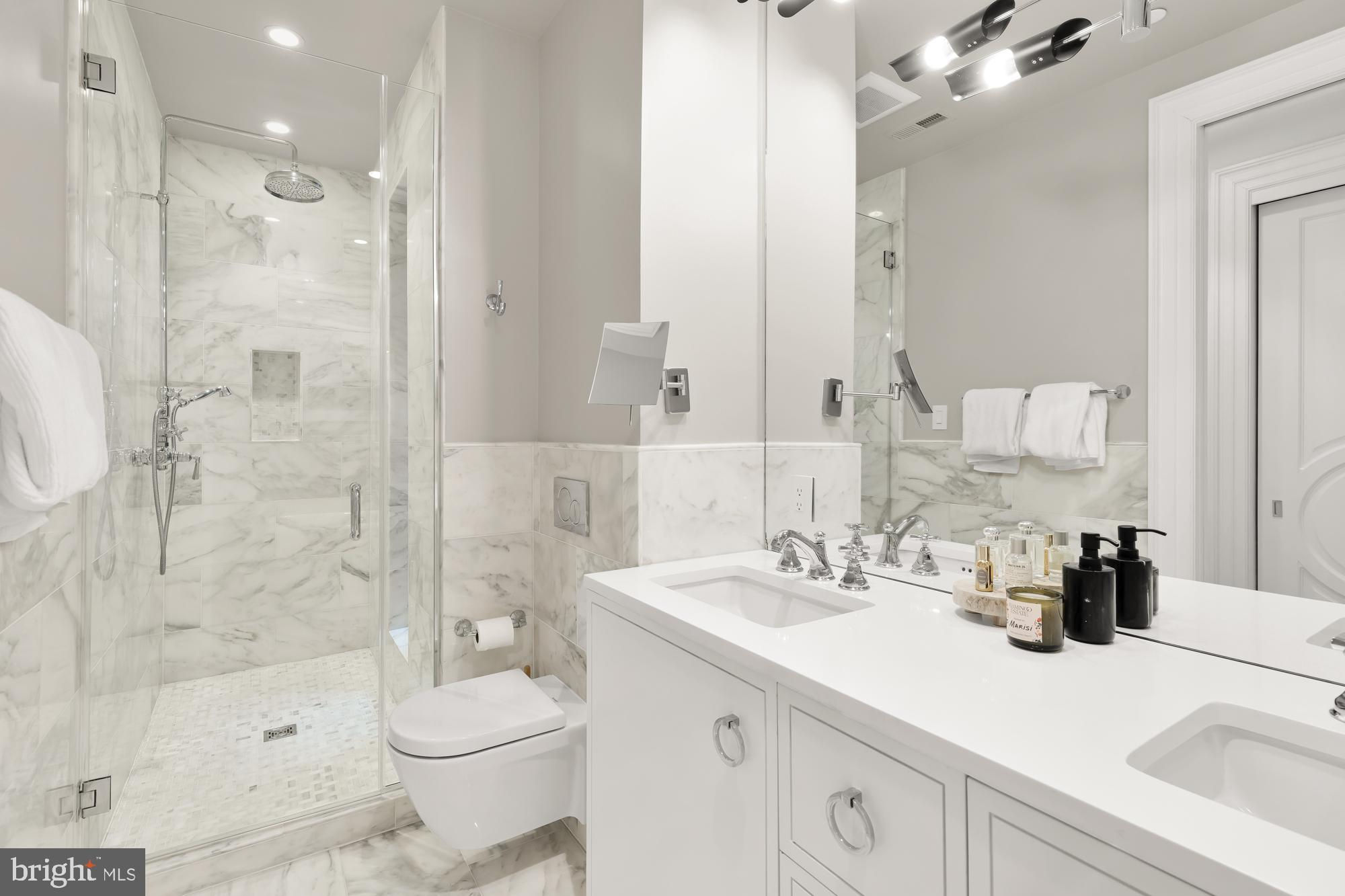 Beautiful Home, terrific Logan Circle Location! Nestled along one of Logan Circle's most coveted tree-lined streets, this exquisite two-story condo effortlessly blends historical grandeur with the luxuries of modern living. The residence preserves its architectural heritage while incorporating the conveniences and finishes that define today’s elevated lifestyle. Just steps from the vibrant 14th Street Corridor, with its eclectic mix of shops, restaurants, and cultural destinations, this home offers an unparalleled combination of location, style, and sophistication. Upon entering, the home immediately captivates with its striking white oak herringbone floors that flow seamlessly throughout, setting the tone for a space where elegance meets functionality. Custom-designed wrought iron railings add a touch of artistry to the open staircase, guiding you through a layout that balances openness with intimacy. The main level is highlighted by a dramatic dining room tucked within a turret, creating an elevated space for both entertaining and quiet reflection. A true chef’s kitchen, outfitted with sleek European cabinetry, top-tier Wolf six-burner range, and a panel-ready Sub-Zero refrigerator, invites culinary exploration. The striking quartz waterfall island serves as both a functional centerpiece and a sculptural statement. The expansive living room is bathed in light from floor-to-ceiling windows, with a seamless transition to the private terrace, ideal for enjoying a quiet evening or hosting guests. Thoughtfully placed wall moldings and a hidden powder room further elevate the home’s aesthetic, while soaring, voluminous ceilings throughout amplify the sense of space and light. On the lower level, high ceilings continue to lend a sense of grandeur, where three generously sized bedrooms are accompanied by equally stunning baths. The primary suite is a sanctuary of serenity, featuring an ensuite Zen-inspired bath complete with a freestanding soaking tub that commands attention. The spa-like experience continues with dual sinks, heated marble floors, and a separate shower. The second bedroom is equally luxurious, with its own ensuite bath boasting glamorous finishes, while the third bedroom shares a hall bath adorned with a mirrored vanity—a nod to modern opulence. A washer and dryer conveniently located on the bedroom level enhance the home's functionality. This rare gem also includes the convenience of one secure surface PARKING spot and promises an exceptional urban living experience in one of D.C.'s most desirable neighborhoods with Whole Foods and Le Diplomate just down the street. Here, history and modernity coexist harmoniously, offering a lifestyle defined by refinement and ease.