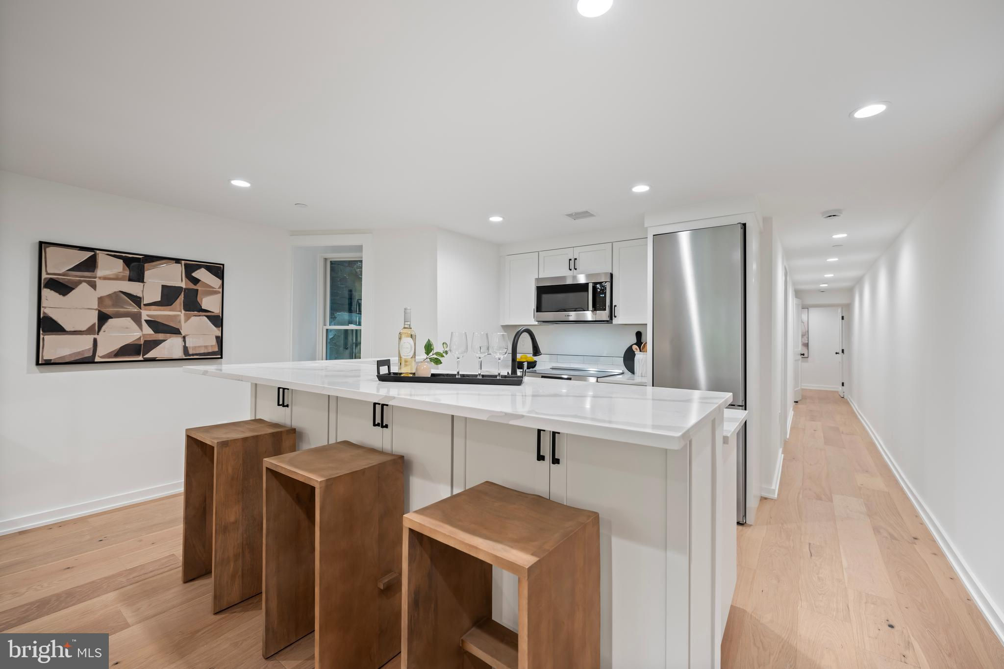 Set on a peaceful, tree-lined street in one of Capitol Hill’s most charming pockets, this inviting ground-level home is just steps from Lincoln Park and within easy walking distance of the iconic U.S. Capitol Complex—placing you right in the center of the nation’s capital. With just under 1,500 square feet of beautifully finished living space, this residence offers two bedrooms and a thoughtfully designed bathroom. Sunlight pours into the expansive living and dining areas, centered around a stunning quartz island ideal for everything from entertaining to relaxed daily living. The open-concept kitchen includes abundant storage and plenty of counter space that functions seamlessly as a casual dining spot, plus a full-sized washer and dryer for added convenience.s countertop space that doubles as a casual dining area, and a full sized washer and dryer. The bathroom impresses with timeless design, oversized shower, and elegant backlit mirrors. Additional highlights include modern recessed LED lighting throughout, a personal patio out front, and exceptionally low condo fees of just $190/month. From Eastern Market and Barracks Row to neighborhood favorites like Pacci’s and Wine & Butter, you're surrounded by Capitol Hill’s best. Enjoy nearby destinations like The Roost and the Anacostia Riverwalk Trail, with convenient access to three Metro stations—Eastern Market, Union Station, and Stadium-Armory. With parks, grocery stores, and top-rated Maury Elementary all close by, this location perfectly balances historic charm, everyday convenience, and premier access to D.C.’s most notable landmarks. Host with style—just blocks from Congress.