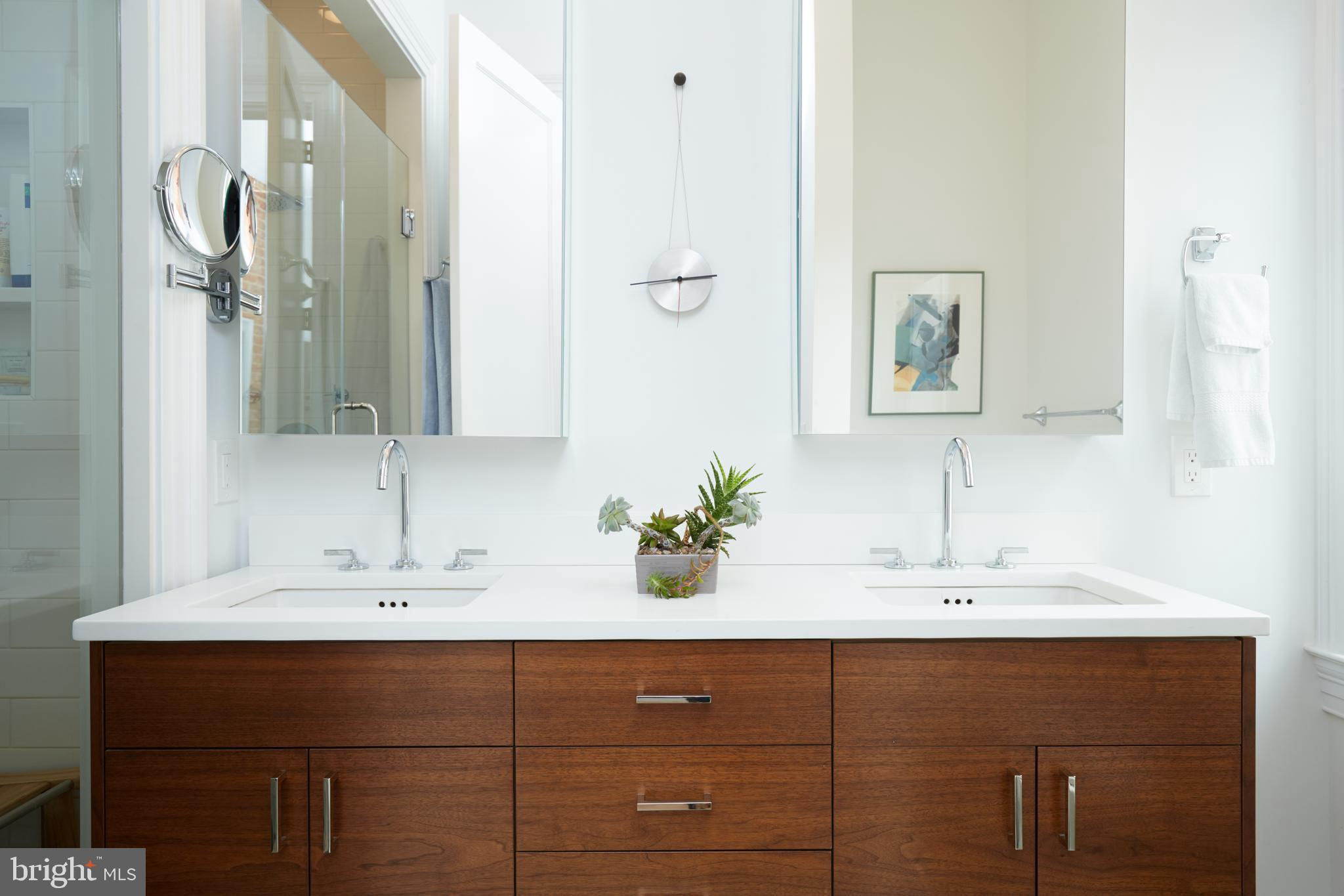 NEW PRICE! Open Sunday, October 27th from 1p - 4p. Renowned architects Thomson & Cook and interior designer Martha Vicas collaborate in Logan Circle for a show stopping circa 1890 19' wide Victorian end-unit row home with southwestern exposure. Bringing an unparalleled juxtaposition of modern minimalism and historic styles to light. Every striking detail is intentional, in the form of custom millwork throughout every room, built-in cabinetry, custom window treatments and Stark carpeting and an original exposed brick archway. Upon entering the spacious home, you will be immediately taken by the incredible layout and view through the length of the main level with three striking archways. The main level family room opening to the back patio will surely be a wonderful spot for relaxation in the home. The kitchen is crisp and bright with abundant storage and counter spaces, a chef's kitchen with a commercial Miele appliance suite, hand cut clay tile backsplash, custom cabinetry, and the original exposed brick archway. All of the spacious bedrooms feature en suite bathrooms. The terrace level offers a versatile layout perfect for a home gym, media room or guest suite. There's also the option for two car gated parking.