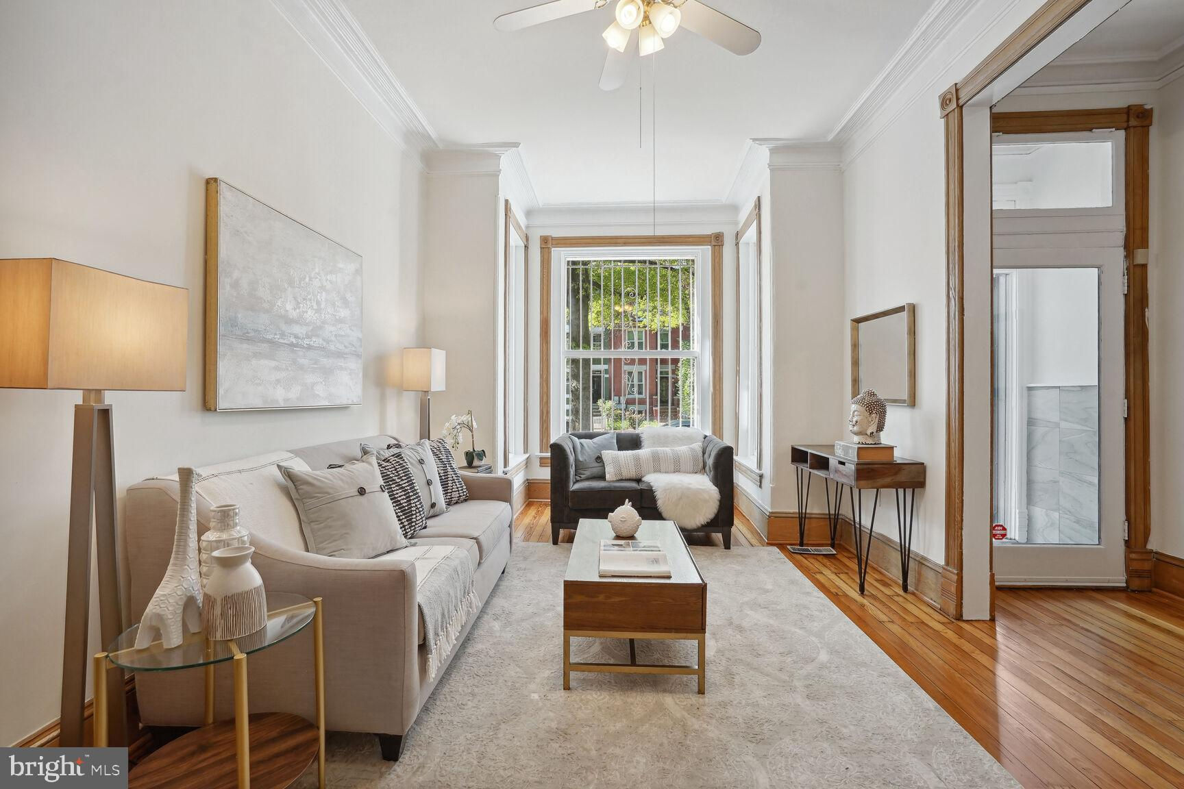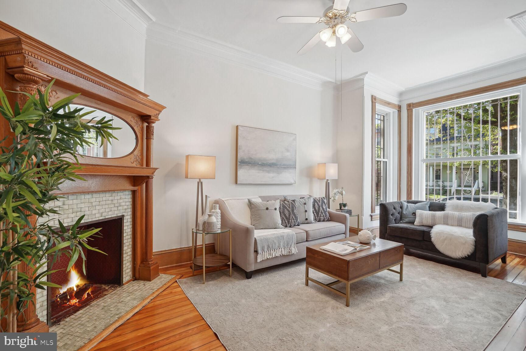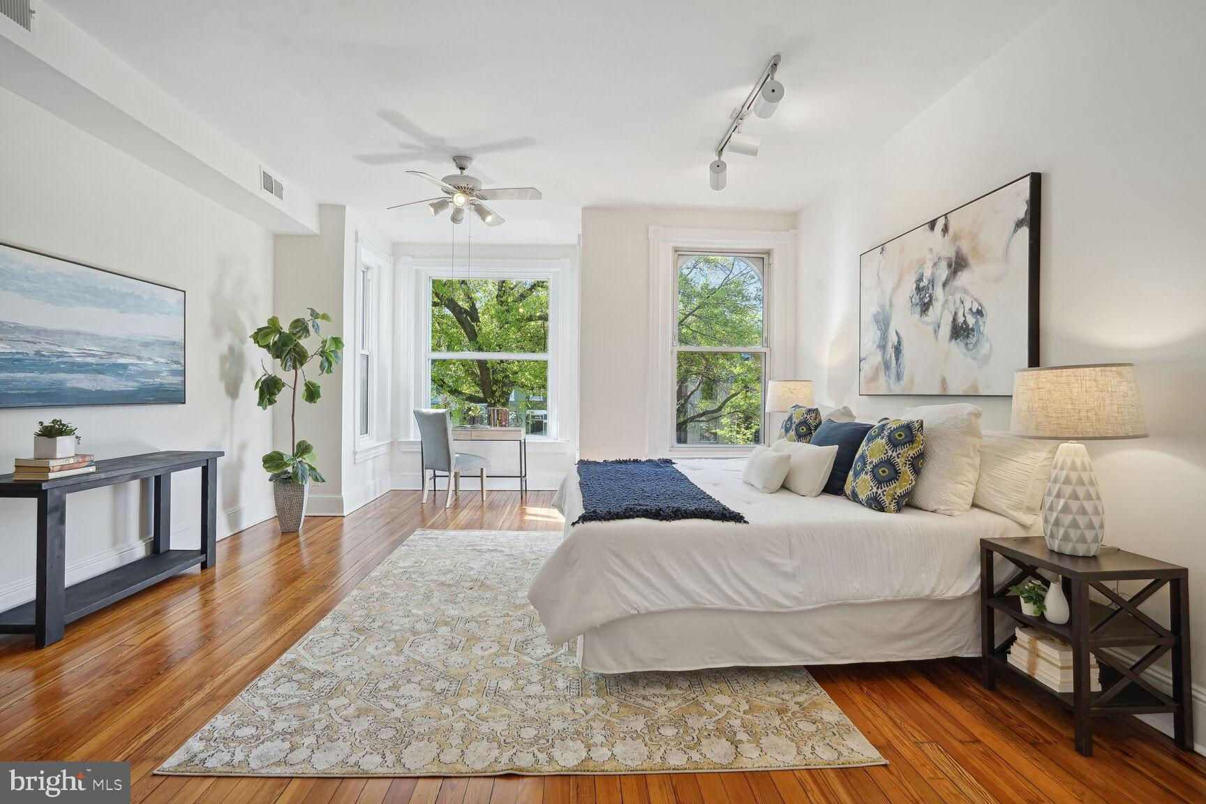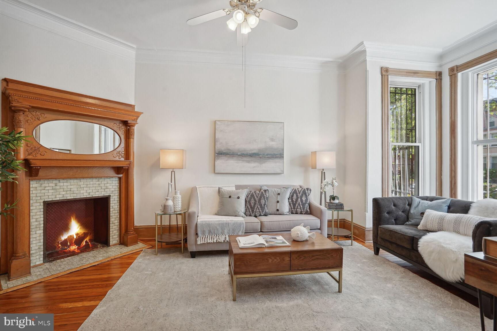 Classic Columbia Heights Victorian with beautiful setting enhanced by a lovely and deep front yard. The house has so much space - 4 finished levels, including a separate fully updated (2020) lower level 2 bedroom, 2 full bathroom rental apartment with both front and rear entrances - currently renting for $2,500 per month. The main house features 10 foot ceilings on the main level with a lovely living room, very large dining room and updated granite and stainless kitchen - which opens to a comfy wood deck. Behind the deck is off-street parking for 2-4 cars (4 if parked tandem). The second level contains 3 bedrooms, the most prominent of which is the super spacious and bright primary bedroom with south facing windows and a large walk-in closet. There is a hall full bathroom on this level. The 3rd level contains 2 more bedrooms and an updated full bathroom off the hall. Original pine floors in many rooms, central air and heat in the main house (wall units and baseboard heat on the lower level), and separate laundry for the main house and rental unit. The location - fabulous - just a half block from Metro and easy walking distance to all of the great stores and restaurants on 14th St. Property has a Certificate of Occupancy for 2 units and a current Basic Business License. Please contact your agent or the listing agent for a showing. This is a very special property!