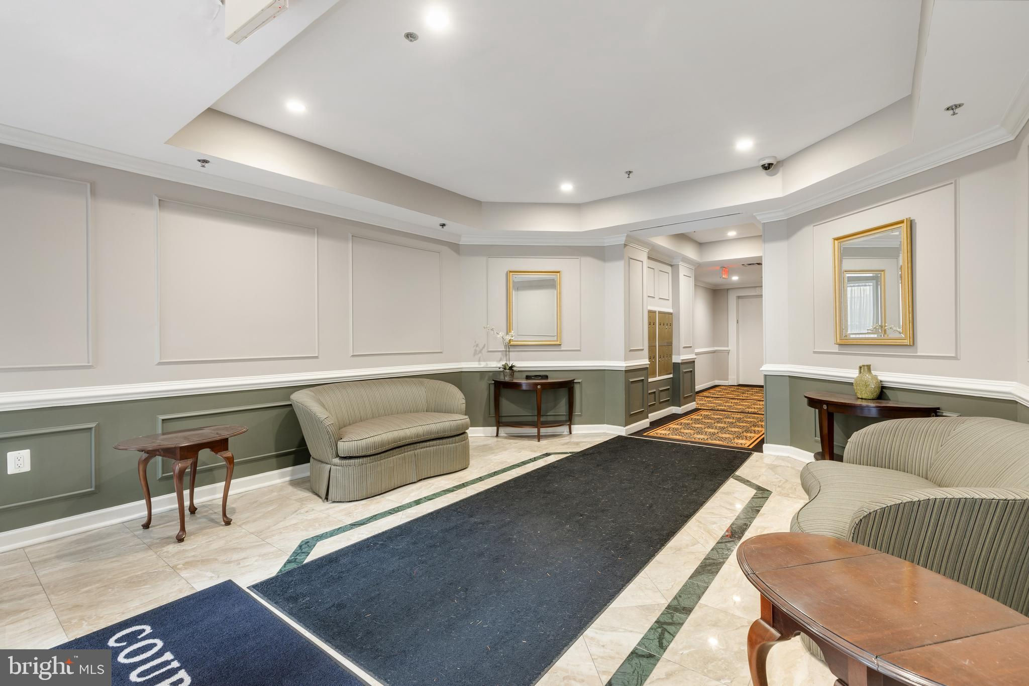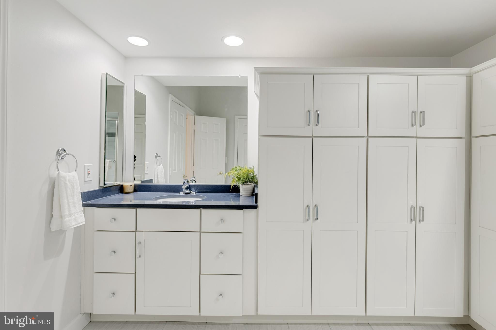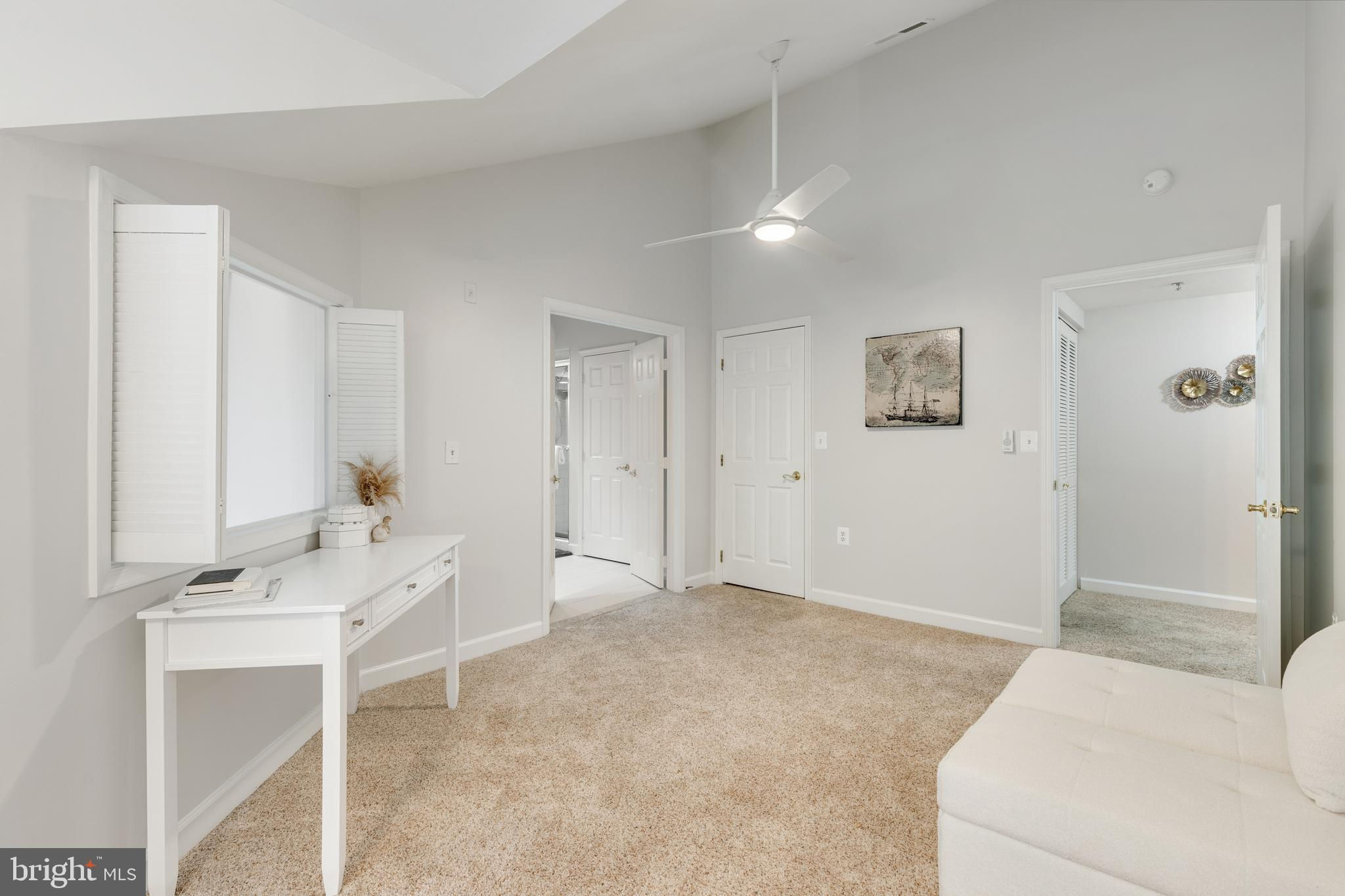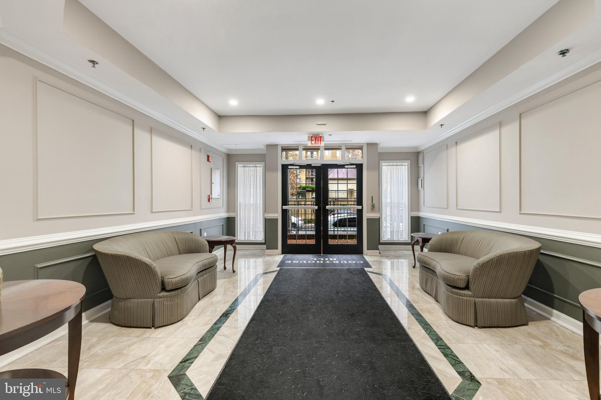 Gorgeous & RARE 3-bedroom, 2-bathroom 2-level condo located in the Courthouse Hill Condominium! This beautifully updated, freshly painted home welcomes you with a bright, open layout & wooden shutters throughout. Upon entry, the kitchen sits to your right, offering white cabinetry, stone countertops, a classic white subway tile backsplash, stainless steel appliances including a new dishwasher (2025), & hardwood flooring. To the left, the separate dining area provides plenty of room to entertain and includes convenient under-stair storage. A pantry closet in the back hallway adds even more functionality.The spacious living room features soaring vaulted ceilings with a skylight that flood the space with natural light, plus a ceiling fan, gas fireplace, & a built-in alcove perfect for your TV setup. Step out onto the private covered balcony - an ideal spot to enjoy morning coffee or unwind at the end of the day. The main level offers two carpeted bedrooms - one with soaring ceilings, a chandelier, & a walk-in closet, and the other featuring a charming light fixture & a serene view overlooking the balcony. The full bathroom on this level is accented with recessed lighting, a dual stone-topped vanity, tile flooring, & a sparkling white tiled shower with a sliding glass door & tub.Head upstairs to find plush carpeting throughout the upper level & a modern chandelier illuminating the stairway. A laundry closet with a stacked newer washer & dryer (2023) provides everyday convenience. The upper level is home to the HUGE primary bedroom suite, complete with overhead lighting, a massive walk-in closet, a sitting area with a ceiling fan with light, & a window that opens to overlook to the main level below. The en-suite bathroom includes oversized tile flooring, two separate stone-topped vanities, a white subway-tiled walk-in shower, & abundant built-in cabinetry for endless storage!Home includes 2 assigned garage parking spaces (#G2-48 & G2-49) that convey. Courthouse Hill offers fantastic amenities including a community pool, gym, party room, and bike storage. Just steps from Whole Foods, restaurants, shopping, the Metro, & MORE!