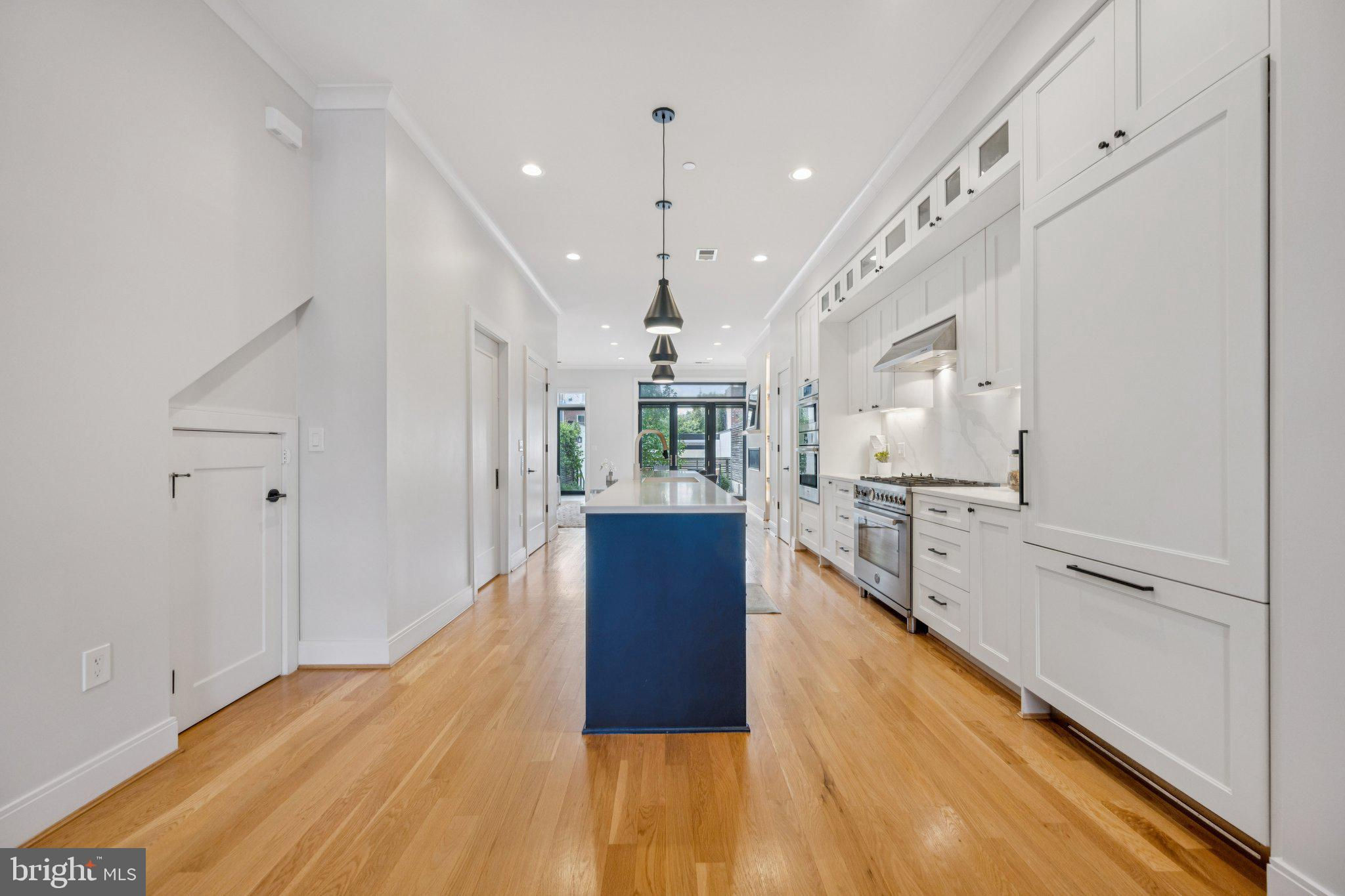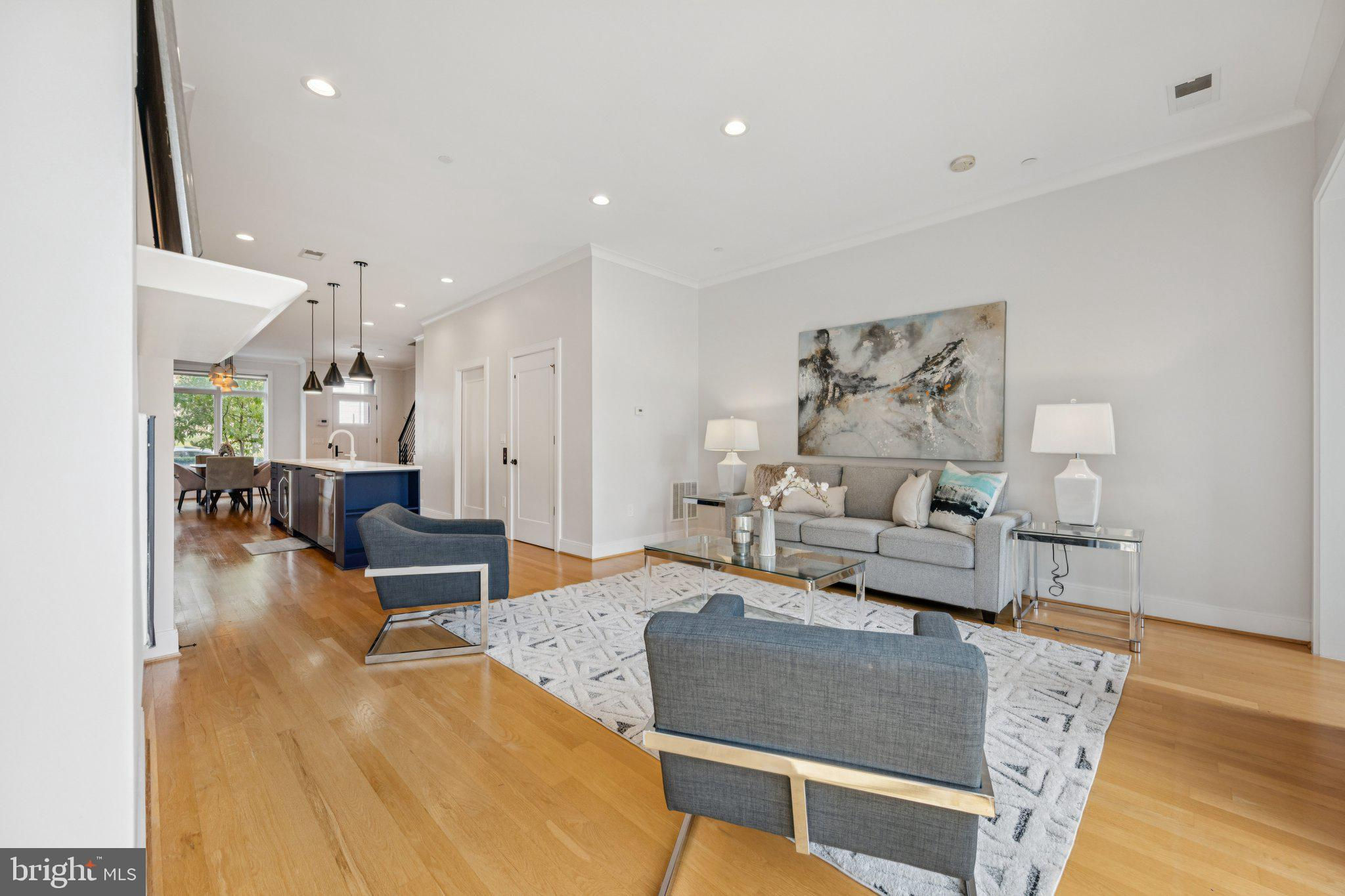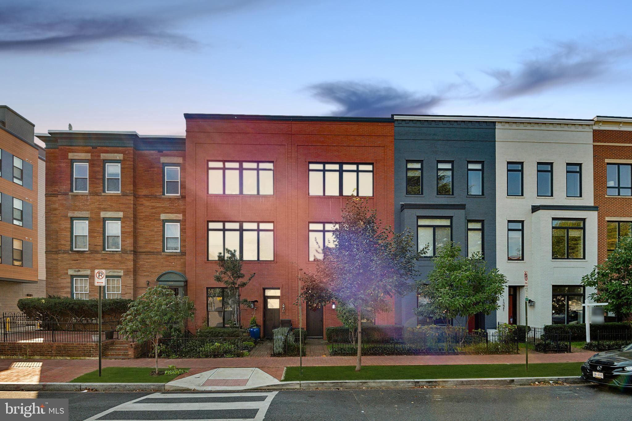 Located in the sought-after Founders' Collection at Buchanan Park, this luxurious townhome offers over 2,800 sqft of modern living space across 4 spacious bedrooms and 4.5 beautifully appointed baths. Step inside to find high-end finishes, with an elevator servicing all three levels for ultimate convenience. The gourmet kitchen is a chef’s dream, featuring top-of-the-line Bertazzoni and Bosch appliances, sleek quartz countertops, and a Kohler cast iron sink, making it ideal for both everyday meals and entertaining. The open-concept living area flows seamlessly to a private blue stone patio—perfect for al fresco dining or relaxing in privacy. The family room features a cozy fireplace, adding warmth and charm to the space. Upstairs, the luxurious master suite provides a tranquil retreat with a spa-like bathroom and its own private balcony. Each additional bedroom is equally spacious, offering ample storage and natural light. The expansive rooftop terrace offers sweeping views of Capitol Hill—an ideal spot for entertaining guests or enjoying quiet moments with a backdrop of the iconic cityscape. This home also comes with a private carport equipped with the ability to add an electric charging station. Additional features include a state-of-the-art security system and custom blinds/shades throughout the house for added convenience and privacy. Walk to Eastern Market, Nationals Park, Barracks Row, and H-Street for easy access to the city’s best dining, entertainment, and shopping options. With its ideal location and contemporary finishes, this property is a true gem in the heart of Capitol Hill.