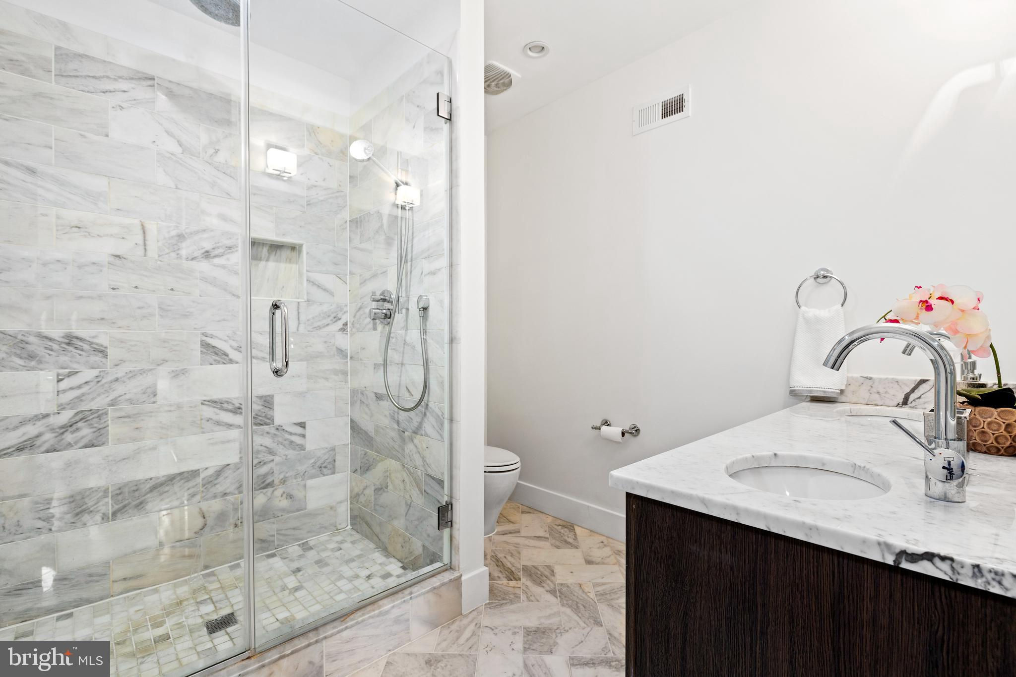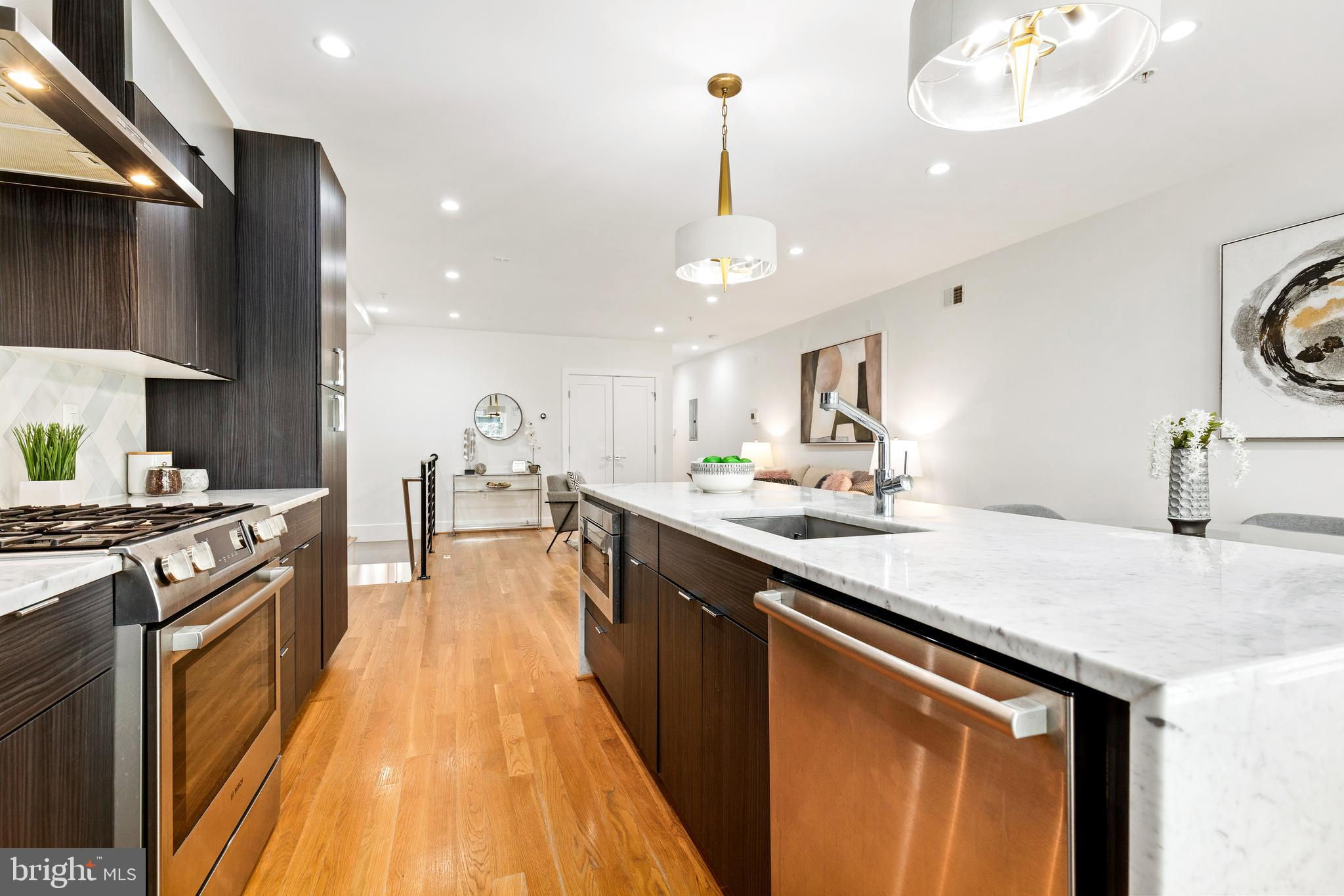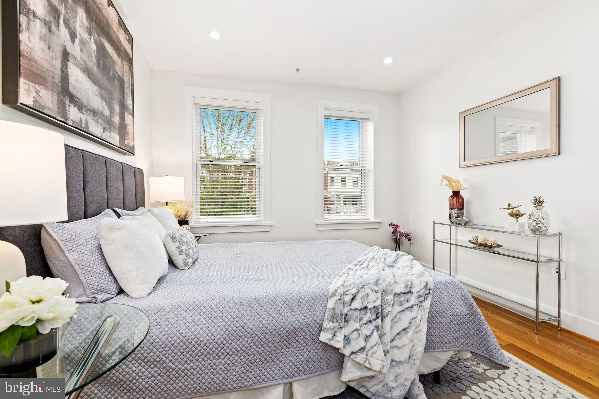 **This property is eligible for a $7500 grant and free rate buy down program. No income restrictions! Ask me about it today** In coveted Petworth, this sun-drenched gem boasts 3 bedrooms and 3 bathrooms, hardwood floors and an open kitchen with marble counters, stainless steel appliances, a Bosch gas stove, a huge island with informal seating, and ample space for a dining table as well. Filled with natural light and generous windows, the primary bedroom includes a marble, spa bath with a glass, rain shower, and the second bedroom on the main level is perfect for a nursery or an office. The lower level includes a spacious family room and laundry. Grow herbs outside in the garden and dine al fresco on the private patio. The boutique building is on a lovely street that serves as a quiet oasis conveniently located near the bustle of 14th Street. Enjoy the many restaurants on 14th Street, from tacos and pupusas to Ethiopian, and shop at Target and Giant. Relax at Bluebell Spa and the Petworth Meditation Garden or pick up a good book at the historic Petworth library. The metro is half of a mile away, or directly access your two parking spaces from your back patio.