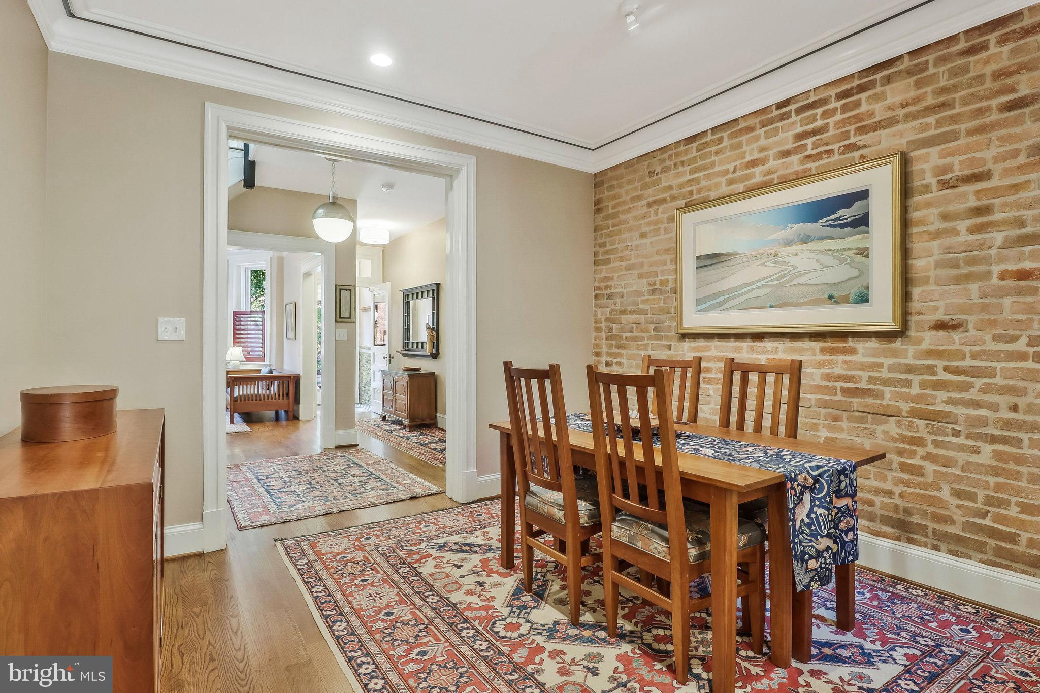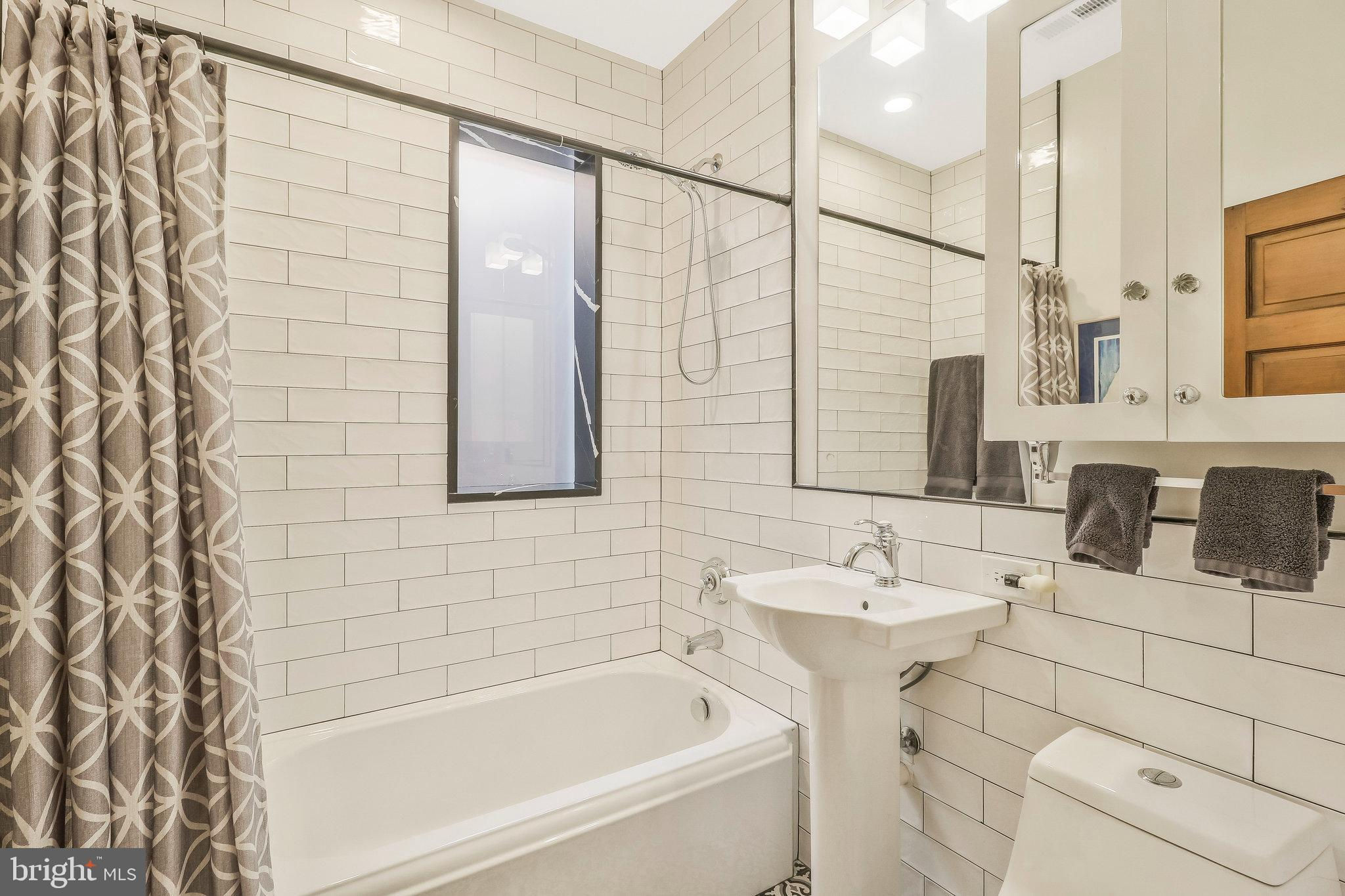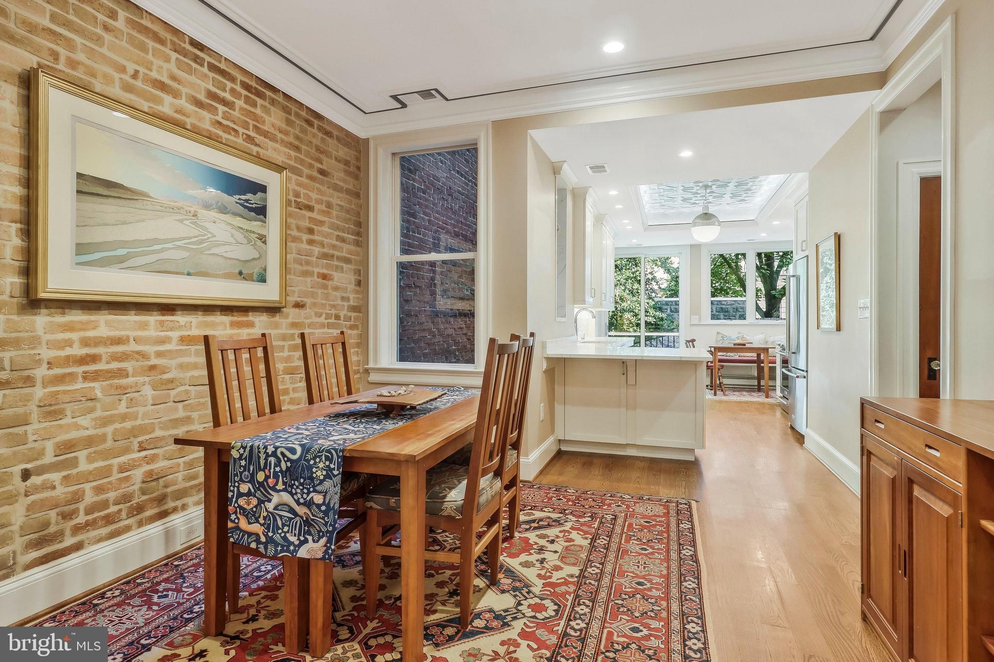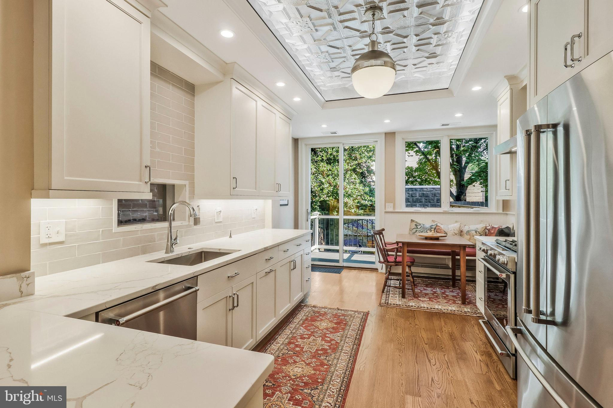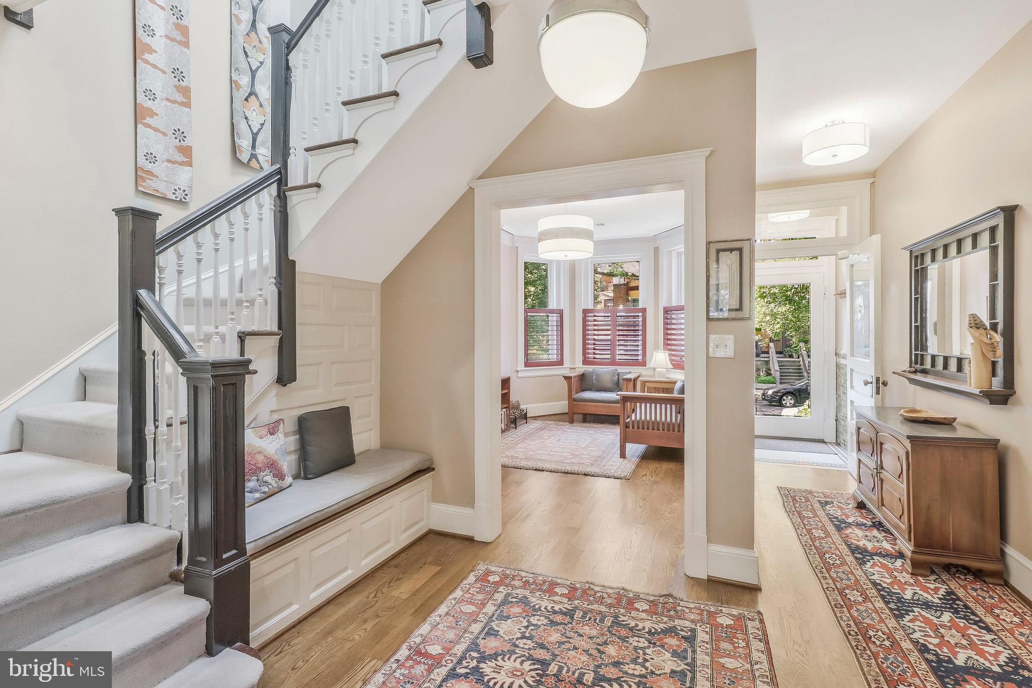 Just off of Lincoln Park on a quiet side street sits this historically updated perfect 5 bedroom, 3.5 bath, 3 level, 2478 SF (per floorplan) townhome. Thoughtfully renovated in 2018 and meticulously maintained since, the home exudes the perfect balance of old-world charm meets modern convenience. Features include: gleaming oak hardwood floors, 5 panel doors, unique black and white crown molding, classic stairway newel posts and balusters, exposed brick, and timeless lighting fixtures. The quintessential Capitol Hill metal steps and tiled vestibule entry are a nod to bygone eras. The Living Room features a bright bay with custom shutters, a pendant drum light with ceiling medallion, and a cozy gas fireplace with historic mantle. The landing to the winding staircase houses a tidy, utilitarian coat closet. An intact pocket door separates the landing from the Dining Room with vaulted ceiling, which opens to a wide, perfectly arranged chef’s Kitchen with: breakfast bar, playful silver tin recessed ceiling, corner built-in booth seating with table, white silestone counters with classic grey vein, copious cabinets and drawers, sink with window above, Kitchenaid appliances, and a bright window and sliding glass door leading to the rear yard. The recently built back deck is perched above a shaded private brick patio (currently covered with artificial grass - could easily be returned to brick.) Conveniently tucked off the Kitchen lies a Half Bathroom across from the door to the lower level interior stairs. Upstairs, light from a large skylight over the stairway landing dances in a wall mirror, brightening the hallway to the 3 bedrooms. The en-suite Primary BR features a bright bay window reading nook; a sliding door to the primary black and white marble Bathroom with a bright window and a glass-door shower; and a gigantic closet outfitted with a custom drawer and storage system. The 2nd/Center Bedroom has a window and sizable closet, and comfortably fits a queen bed. Down the hall, the Bathroom has a full shower/tub with a large marble ledge, oversized horizontal subway tile, and a playful Moroccan mosaic floor tile pattern. The new large stacked W/D is conveniently tucked into a closet between the hall bath and the 3rd Bedroom, which has a skylight and a wall of 3 windows overlooking the rear deck/yard, as well as a large closet. The fully finished, connected Lower Level In-Law Suite offers front and rear egress, 2 BRs (or 1 BR plus den, office, or workout space), a full bathroom with shower, a flexible great room, and a kitchenette with sink, drink fridge, and a 2nd small fridge (behind which a 2nd W/D hookup exists.) There is also a storage closet tucked beneath the stairs. An under-deck utility/storage area is at the back of the house beyond the rear BR. PRIMO location: easy access to 395 and 295, close to the Capitol, 3 metro stops, Eastern Market, The Roost, Barracks Row, H Street, Union Market, Safeway, Capital Bikeshares, Lincoln Park. Come see it for yourself! (Note that SF figures shown are not to be used for valuations.)