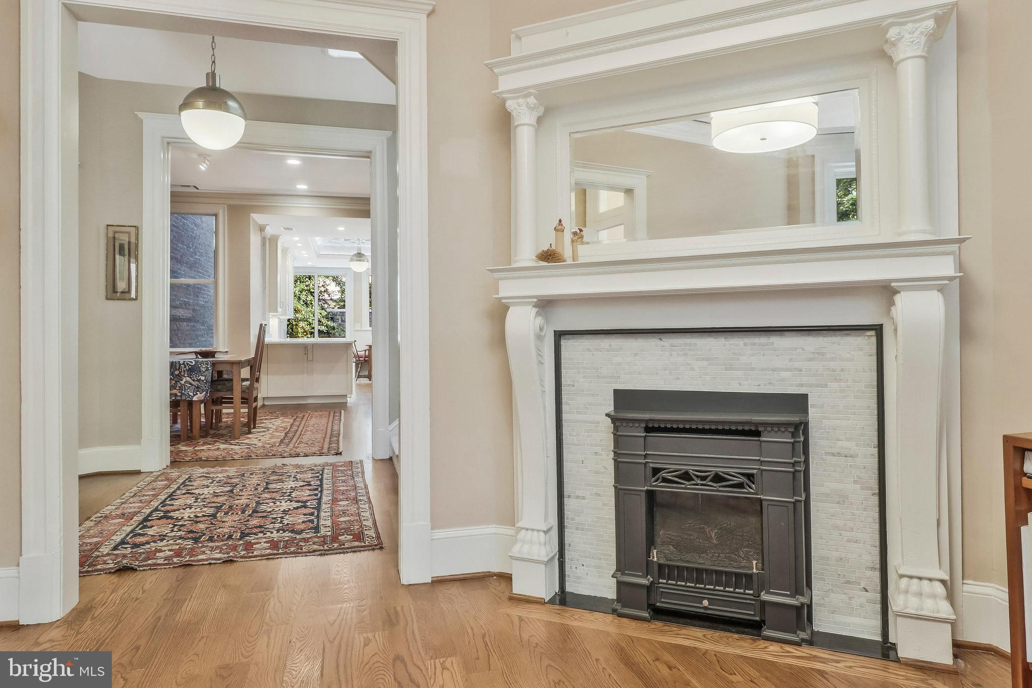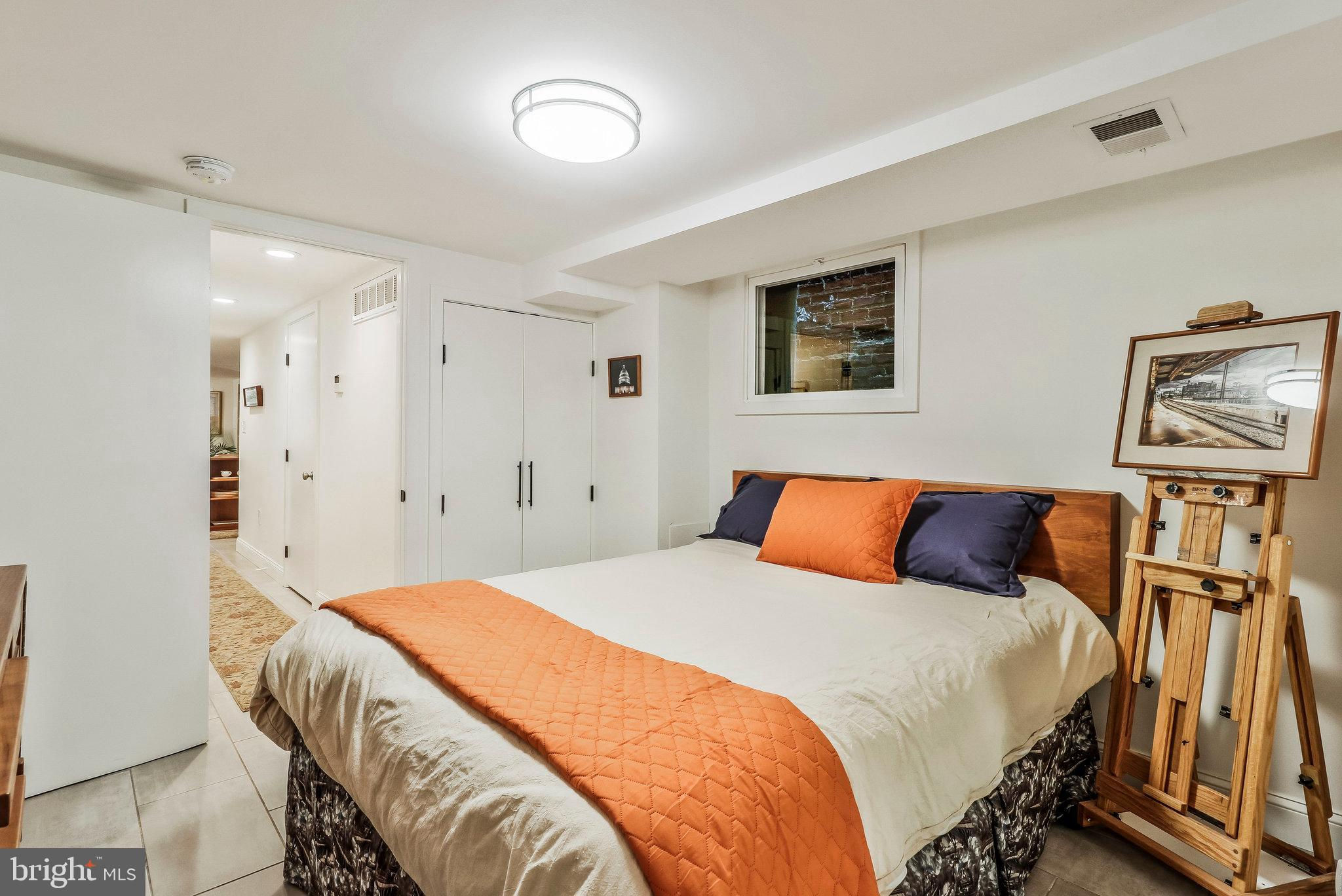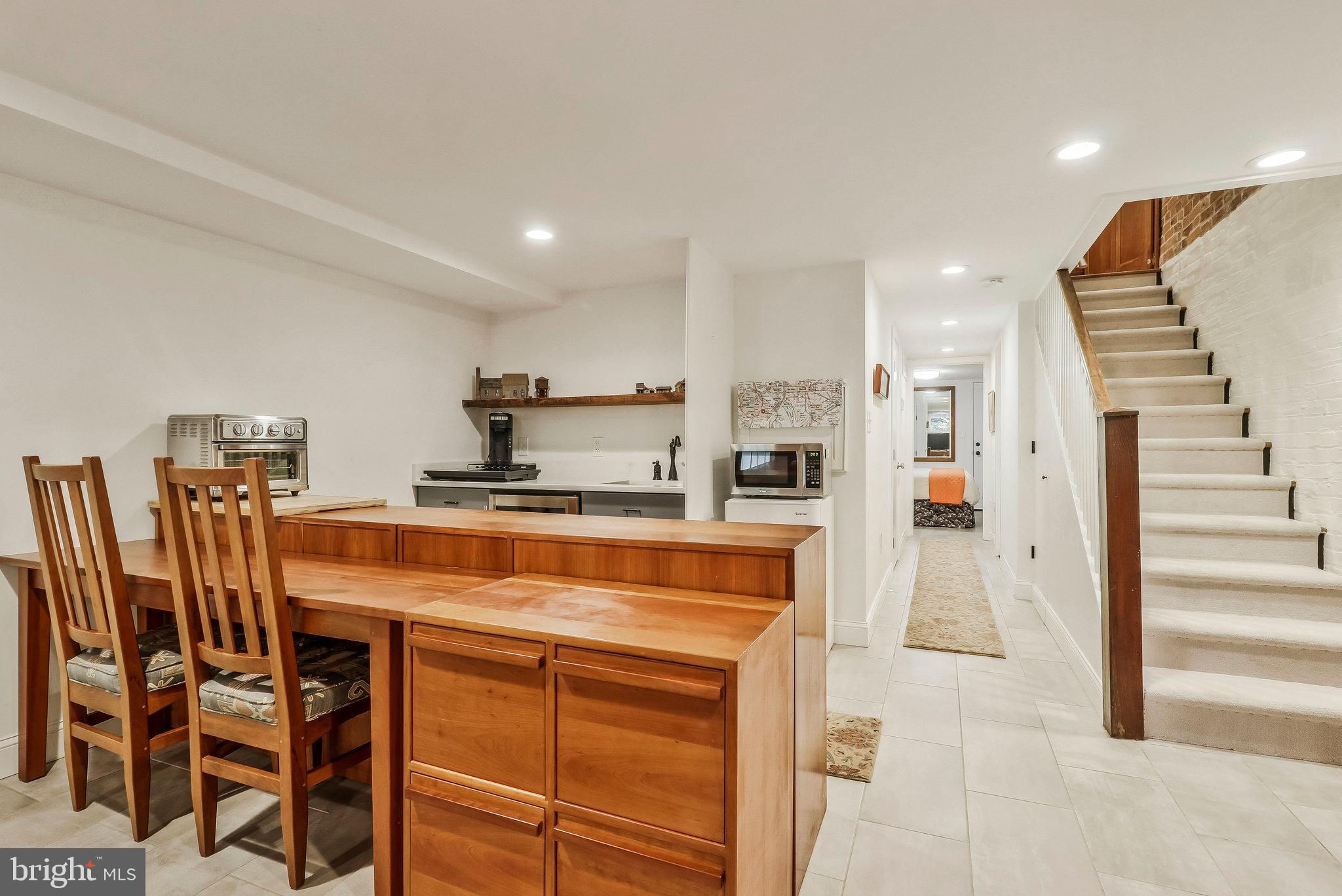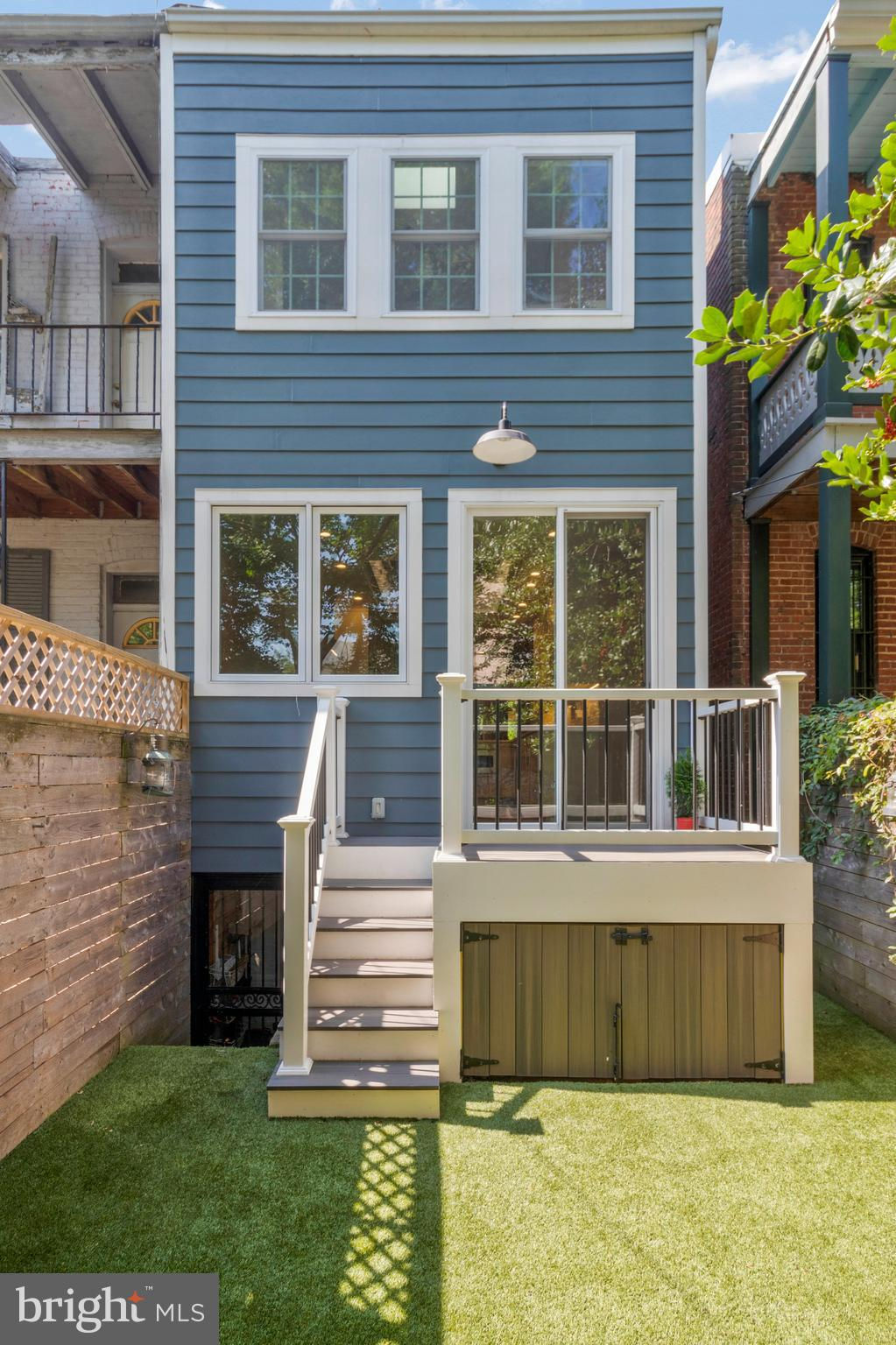 Just off of Lincoln Park on a quiet side street sits this historically updated perfect 5 bedroom, 3.5 bath, 3 level, 2478 SF (per floorplan) townhome. Thoughtfully renovated in 2018 and meticulously maintained since, the home exudes the perfect balance of old-world charm meets modern convenience. Features include: gleaming oak hardwood floors, 5 panel doors, unique black and white crown molding, classic stairway newel posts and balusters, exposed brick, and timeless lighting fixtures. The quintessential Capitol Hill metal steps and tiled vestibule entry are a nod to bygone eras. The Living Room features a bright bay with custom shutters, a pendant drum light with ceiling medallion, and a cozy gas fireplace with historic mantle. The landing to the winding staircase houses a tidy, utilitarian coat closet. An intact pocket door separates the landing from the Dining Room with vaulted ceiling, which opens to a wide, perfectly arranged chef’s Kitchen with: breakfast bar, playful silver tin recessed ceiling, corner built-in booth seating with table, white silestone counters with classic grey vein, copious cabinets and drawers, sink with window above, Kitchenaid appliances, and a bright window and sliding glass door leading to the rear yard. The recently built back deck is perched above a shaded private brick patio (currently covered with artificial grass - could easily be returned to brick.) Conveniently tucked off the Kitchen lies a Half Bathroom across from the door to the lower level interior stairs. Upstairs, light from a large skylight over the stairway landing dances in a wall mirror, brightening the hallway to the 3 bedrooms. The en-suite Primary BR features a bright bay window reading nook; a sliding door to the primary black and white marble Bathroom with a bright window and a glass-door shower; and a gigantic closet outfitted with a custom drawer and storage system. The 2nd/Center Bedroom has a window and sizable closet, and comfortably fits a queen bed. Down the hall, the Bathroom has a full shower/tub with a large marble ledge, oversized horizontal subway tile, and a playful Moroccan mosaic floor tile pattern. The new large stacked W/D is conveniently tucked into a closet between the hall bath and the 3rd Bedroom, which has a skylight and a wall of 3 windows overlooking the rear deck/yard, as well as a large closet. The fully finished, connected Lower Level In-Law Suite offers front and rear egress, 2 BRs (or 1 BR plus den, office, or workout space), a full bathroom with shower, a flexible great room, and a kitchenette with sink, drink fridge, and a 2nd small fridge (behind which a 2nd W/D hookup exists.) There is also a storage closet tucked beneath the stairs. An under-deck utility/storage area is at the back of the house beyond the rear BR. PRIMO location: easy access to 395 and 295, close to the Capitol, 3 metro stops, Eastern Market, The Roost, Barracks Row, H Street, Union Market, Safeway, Capital Bikeshares, Lincoln Park. Come see it for yourself! (Note that SF figures shown are not to be used for valuations.)