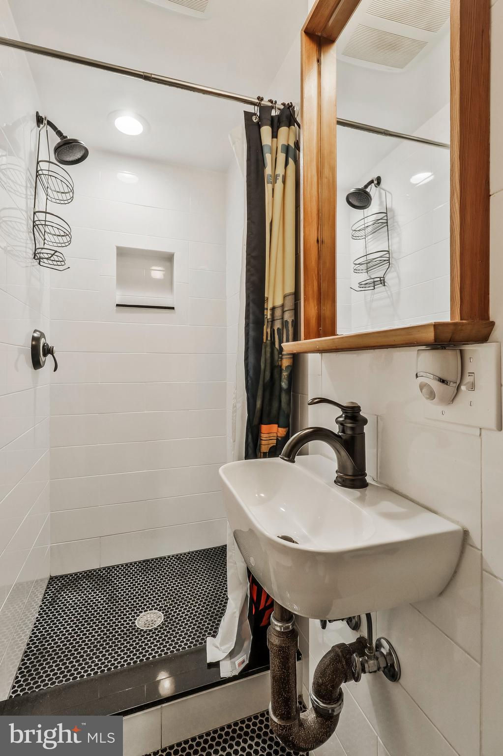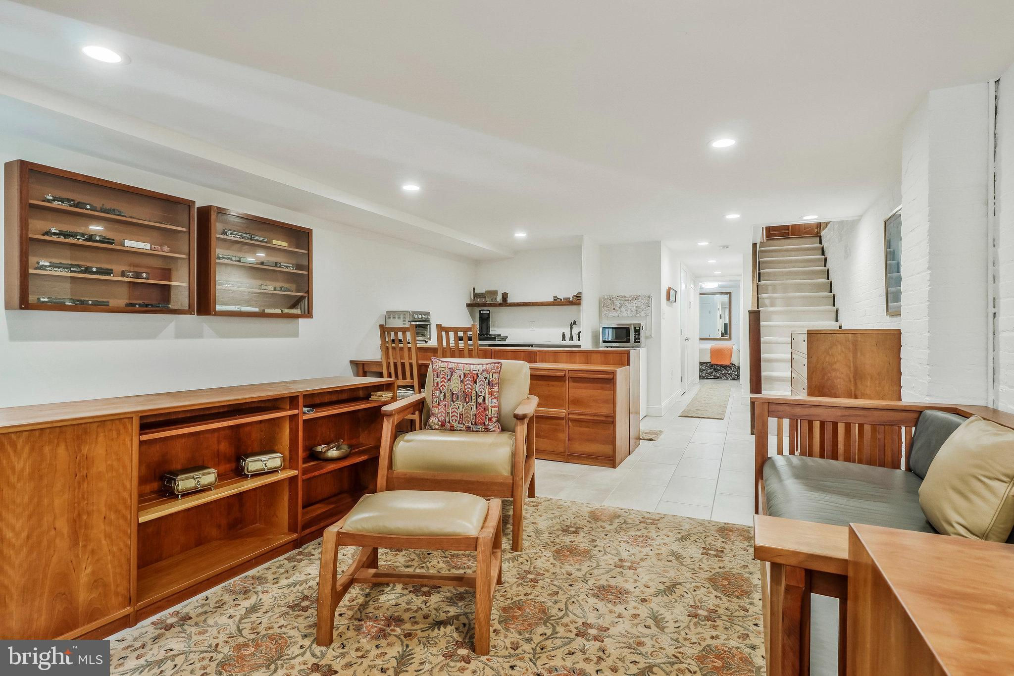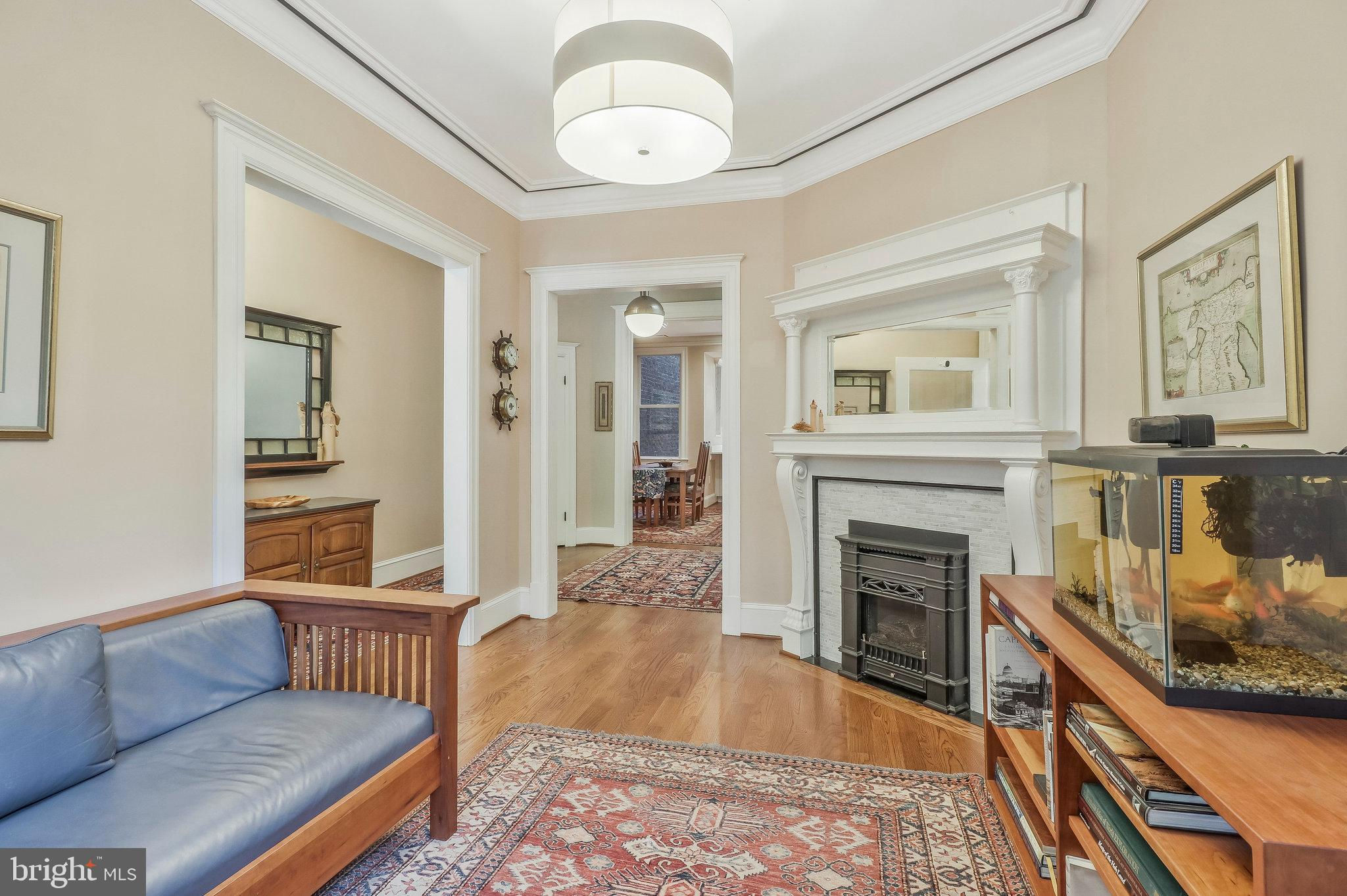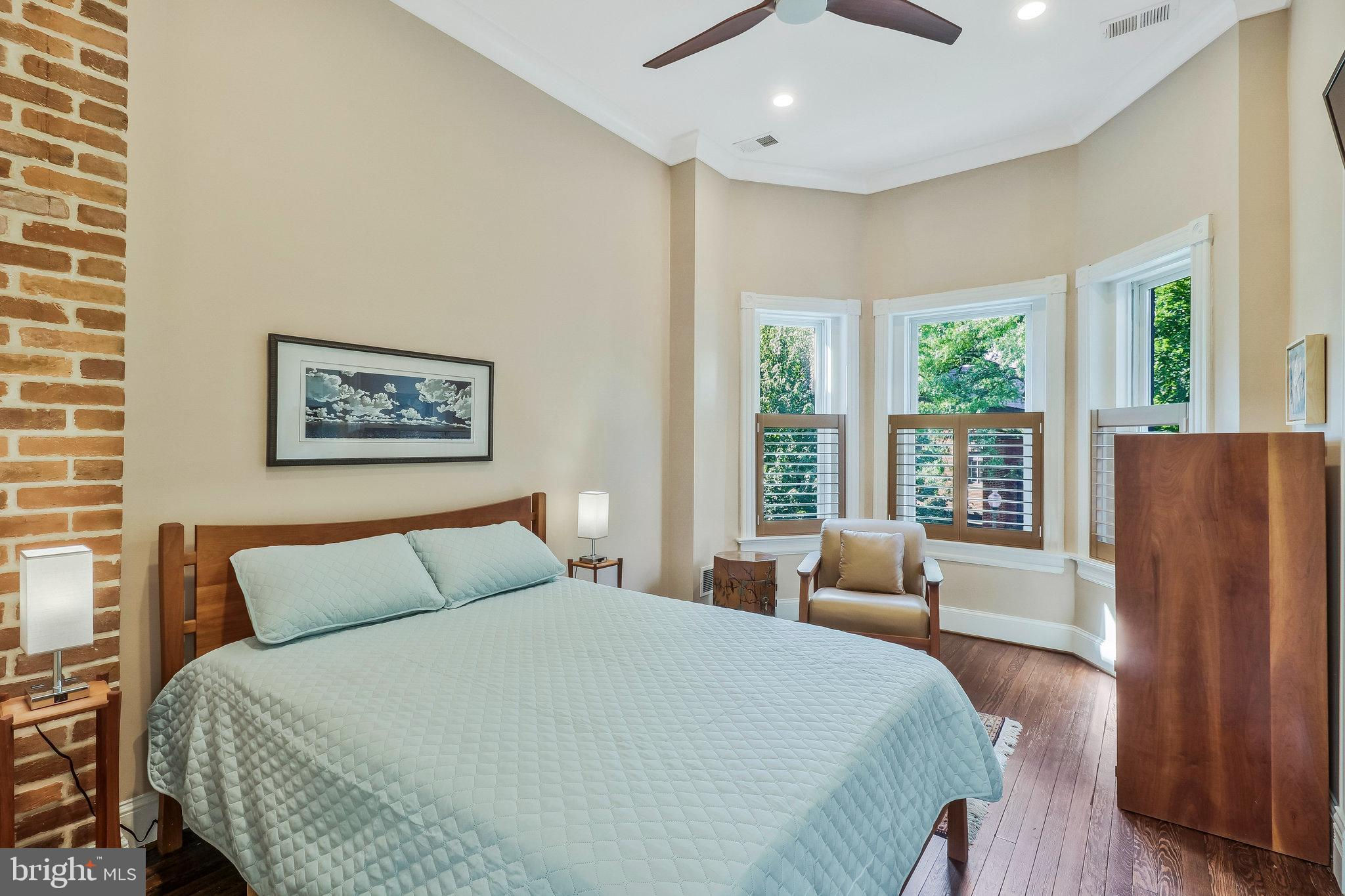 Just off of Lincoln Park on a quiet side street sits this historically updated perfect 5 bedroom, 3.5 bath, 3 level, 2478 SF (per floorplan) townhome. Thoughtfully renovated in 2018 and meticulously maintained since, the home exudes the perfect balance of old-world charm meets modern convenience. Features include: gleaming oak hardwood floors, 5 panel doors, unique black and white crown molding, classic stairway newel posts and balusters, exposed brick, and timeless lighting fixtures. The quintessential Capitol Hill metal steps and tiled vestibule entry are a nod to bygone eras. The Living Room features a bright bay with custom shutters, a pendant drum light with ceiling medallion, and a cozy gas fireplace with historic mantle. The landing to the winding staircase houses a tidy, utilitarian coat closet. An intact pocket door separates the landing from the Dining Room with vaulted ceiling, which opens to a wide, perfectly arranged chef’s Kitchen with: breakfast bar, playful silver tin recessed ceiling, corner built-in booth seating with table, white silestone counters with classic grey vein, copious cabinets and drawers, sink with window above, Kitchenaid appliances, and a bright window and sliding glass door leading to the rear yard. The recently built back deck is perched above a shaded private brick patio (currently covered with artificial grass - could easily be returned to brick.) Conveniently tucked off the Kitchen lies a Half Bathroom across from the door to the lower level interior stairs. Upstairs, light from a large skylight over the stairway landing dances in a wall mirror, brightening the hallway to the 3 bedrooms. The en-suite Primary BR features a bright bay window reading nook; a sliding door to the primary black and white marble Bathroom with a bright window and a glass-door shower; and a gigantic closet outfitted with a custom drawer and storage system. The 2nd/Center Bedroom has a window and sizable closet, and comfortably fits a queen bed. Down the hall, the Bathroom has a full shower/tub with a large marble ledge, oversized horizontal subway tile, and a playful Moroccan mosaic floor tile pattern. The new large stacked W/D is conveniently tucked into a closet between the hall bath and the 3rd Bedroom, which has a skylight and a wall of 3 windows overlooking the rear deck/yard, as well as a large closet. The fully finished, connected Lower Level In-Law Suite offers front and rear egress, 2 BRs (or 1 BR plus den, office, or workout space), a full bathroom with shower, a flexible great room, and a kitchenette with sink, drink fridge, and a 2nd small fridge (behind which a 2nd W/D hookup exists.) There is also a storage closet tucked beneath the stairs. An under-deck utility/storage area is at the back of the house beyond the rear BR. PRIMO location: easy access to 395 and 295, close to the Capitol, 3 metro stops, Eastern Market, The Roost, Barracks Row, H Street, Union Market, Safeway, Capital Bikeshares, Lincoln Park. Come see it for yourself! (Note that SF figures shown are not to be used for valuations.)