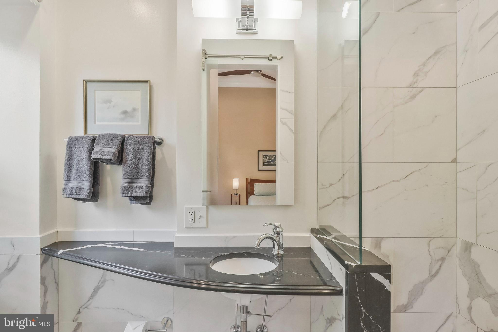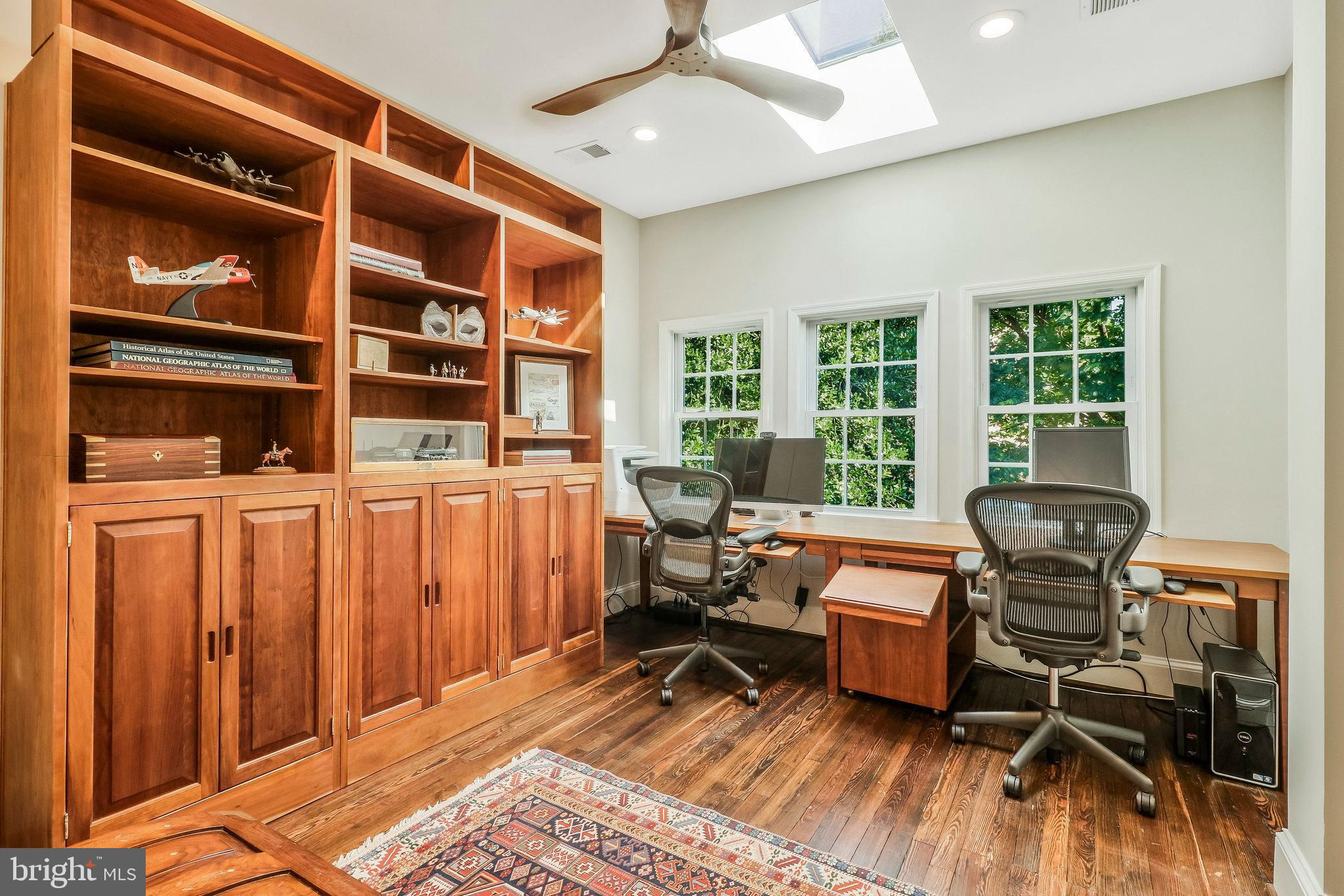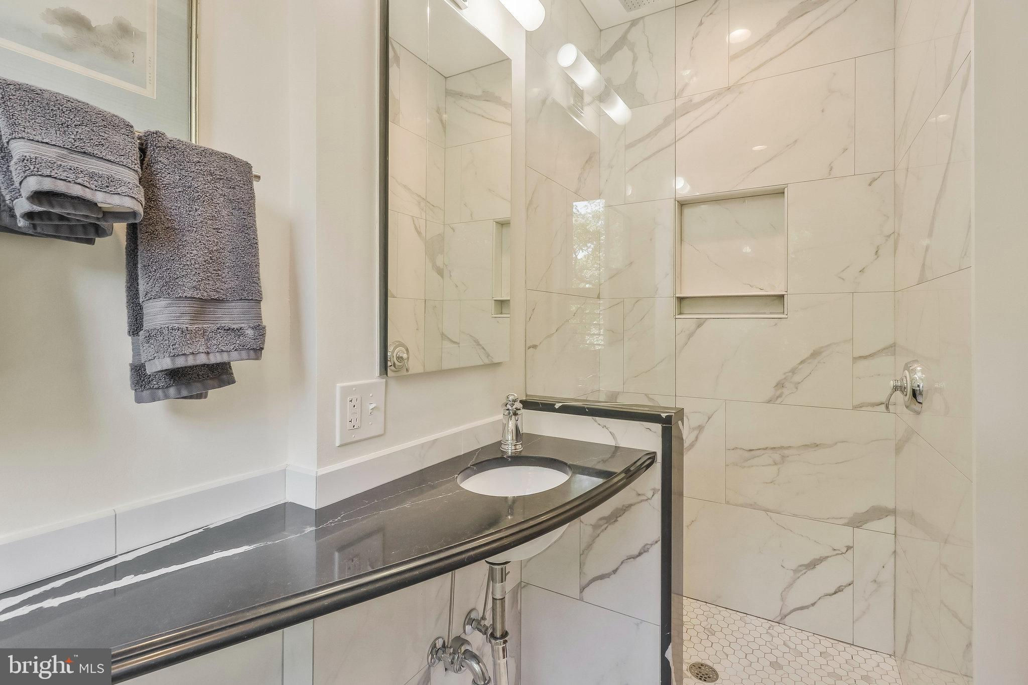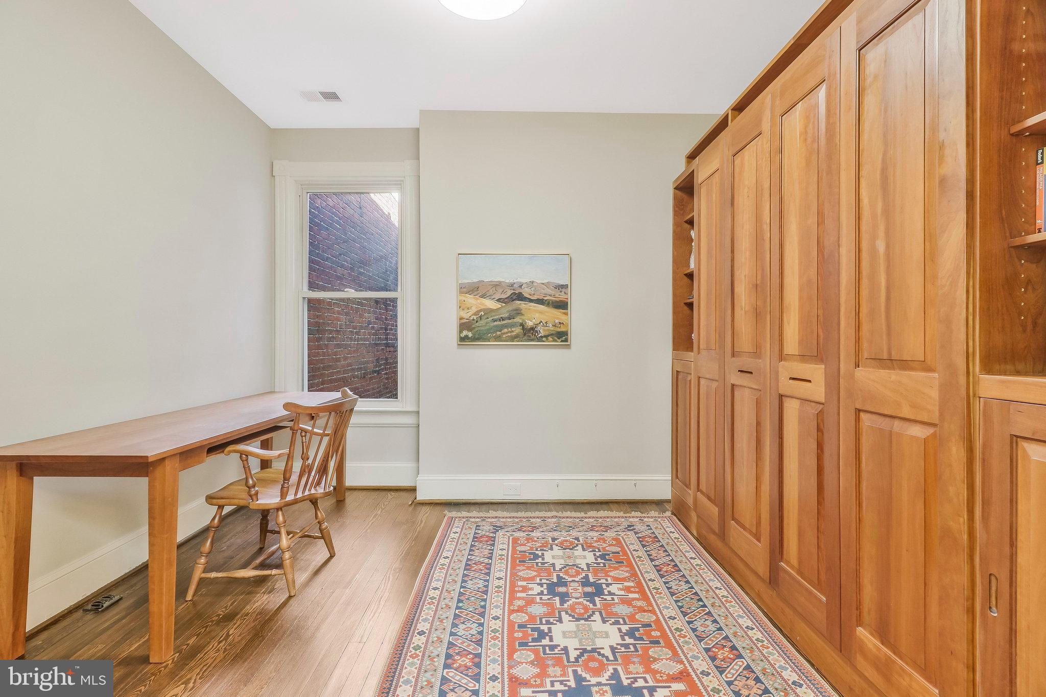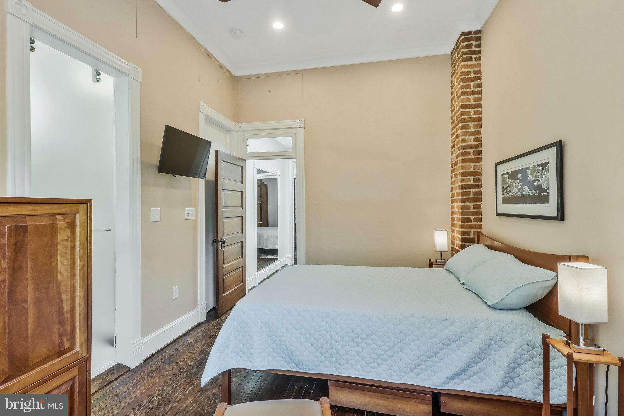 Just off of Lincoln Park on a quiet side street sits this historically updated perfect 5 bedroom, 3.5 bath, 3 level, 2478 SF (per floorplan) townhome. Thoughtfully renovated in 2018 and meticulously maintained since, the home exudes the perfect balance of old-world charm meets modern convenience. Features include: gleaming oak hardwood floors, 5 panel doors, unique black and white crown molding, classic stairway newel posts and balusters, exposed brick, and timeless lighting fixtures. The quintessential Capitol Hill metal steps and tiled vestibule entry are a nod to bygone eras. The Living Room features a bright bay with custom shutters, a pendant drum light with ceiling medallion, and a cozy gas fireplace with historic mantle. The landing to the winding staircase houses a tidy, utilitarian coat closet. An intact pocket door separates the landing from the Dining Room with vaulted ceiling, which opens to a wide, perfectly arranged chef’s Kitchen with: breakfast bar, playful silver tin recessed ceiling, corner built-in booth seating with table, white silestone counters with classic grey vein, copious cabinets and drawers, sink with window above, Kitchenaid appliances, and a bright window and sliding glass door leading to the rear yard. The recently built back deck is perched above a shaded private brick patio (currently covered with artificial grass - could easily be returned to brick.) Conveniently tucked off the Kitchen lies a Half Bathroom across from the door to the lower level interior stairs. Upstairs, light from a large skylight over the stairway landing dances in a wall mirror, brightening the hallway to the 3 bedrooms. The en-suite Primary BR features a bright bay window reading nook; a sliding door to the primary black and white marble Bathroom with a bright window and a glass-door shower; and a gigantic closet outfitted with a custom drawer and storage system. The 2nd/Center Bedroom has a window and sizable closet, and comfortably fits a queen bed. Down the hall, the Bathroom has a full shower/tub with a large marble ledge, oversized horizontal subway tile, and a playful Moroccan mosaic floor tile pattern. The new large stacked W/D is conveniently tucked into a closet between the hall bath and the 3rd Bedroom, which has a skylight and a wall of 3 windows overlooking the rear deck/yard, as well as a large closet. The fully finished, connected Lower Level In-Law Suite offers front and rear egress, 2 BRs (or 1 BR plus den, office, or workout space), a full bathroom with shower, a flexible great room, and a kitchenette with sink, drink fridge, and a 2nd small fridge (behind which a 2nd W/D hookup exists.) There is also a storage closet tucked beneath the stairs. An under-deck utility/storage area is at the back of the house beyond the rear BR. PRIMO location: easy access to 395 and 295, close to the Capitol, 3 metro stops, Eastern Market, The Roost, Barracks Row, H Street, Union Market, Safeway, Capital Bikeshares, Lincoln Park. Come see it for yourself! (Note that SF figures shown are not to be used for valuations.)