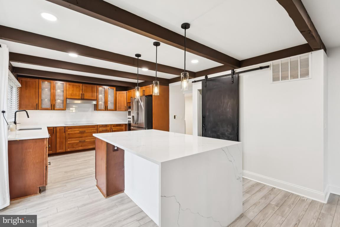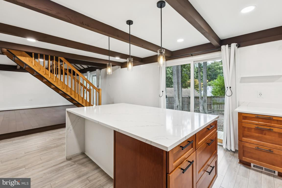 Modern Comfort Meets Natural Charm — Welcome to 13401 Kiama Court Nestled at the end of a quiet cul-de-sac, this beautifully updated single-level home blends modern functionality with peaceful surroundings. Featuring clean contemporary finishes, a bright interior, and thoughtful updates throughout, this property is move-in ready. Interior Features: Bright and spacious open floor plan with large windows that invite natural light. Sleek laundry/mudroom with stacked washer & dryer, custom cabinetry, and a butcher block folding station. Cozy primary suite or flex space with plush carpet, ceiling fan, and direct access to the backyard via sliding glass doors. Exterior Features: Fresh curb appeal with modern paneling and minimalist landscaping. Spacious backyard surrounded by mature trees and privacy fencing — perfect for entertaining, gardening, or relaxing in nature. Generous driveway and two-car garage. Location Highlights: Easy access to major routes including MD-295 and MD-197 Close to shopping, dining, and parks.